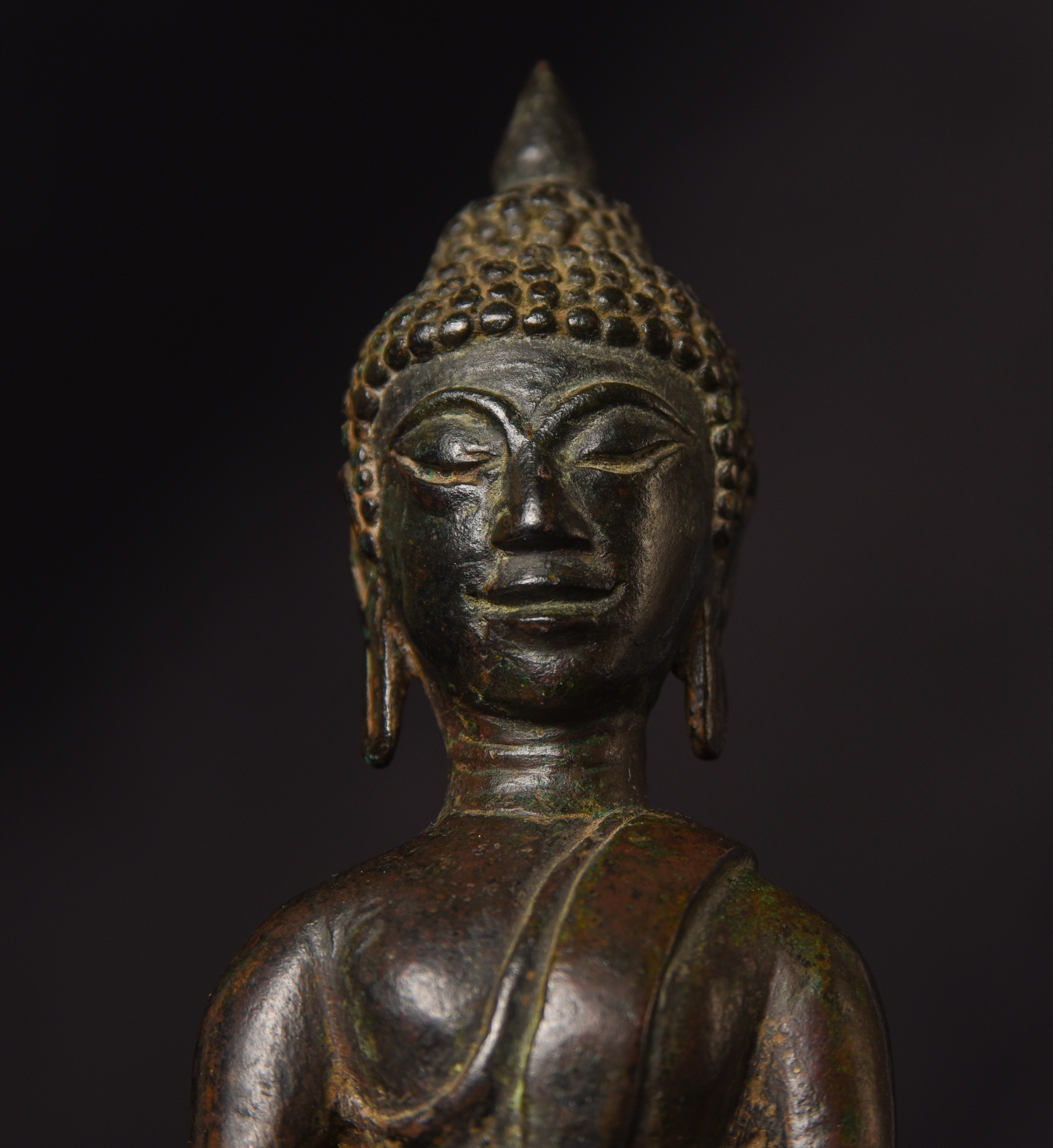 Excellent quality Northern Thai Buddha. Lots of personality. this type is especially valued and hard to find.  H 5.25" (13.335cm)