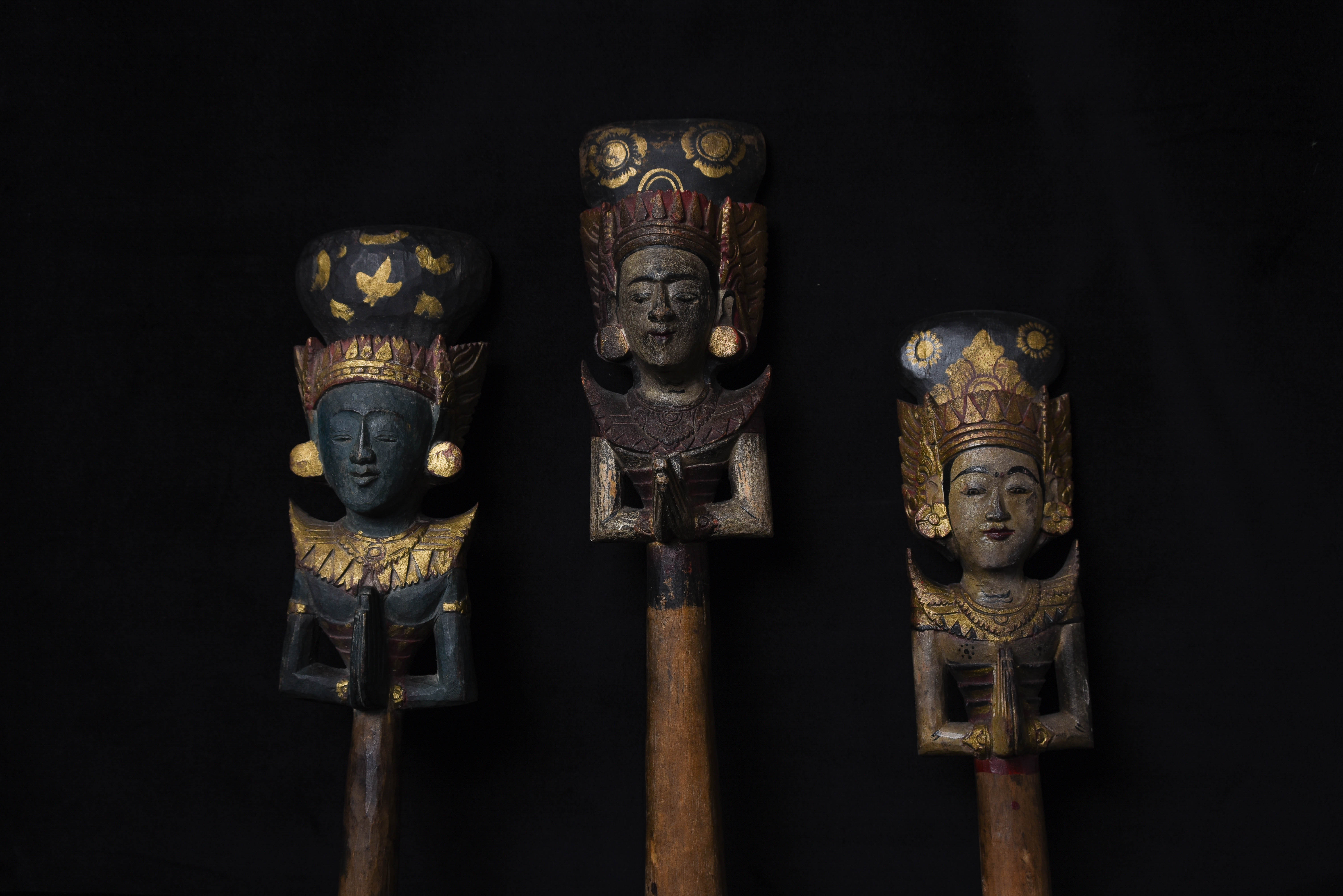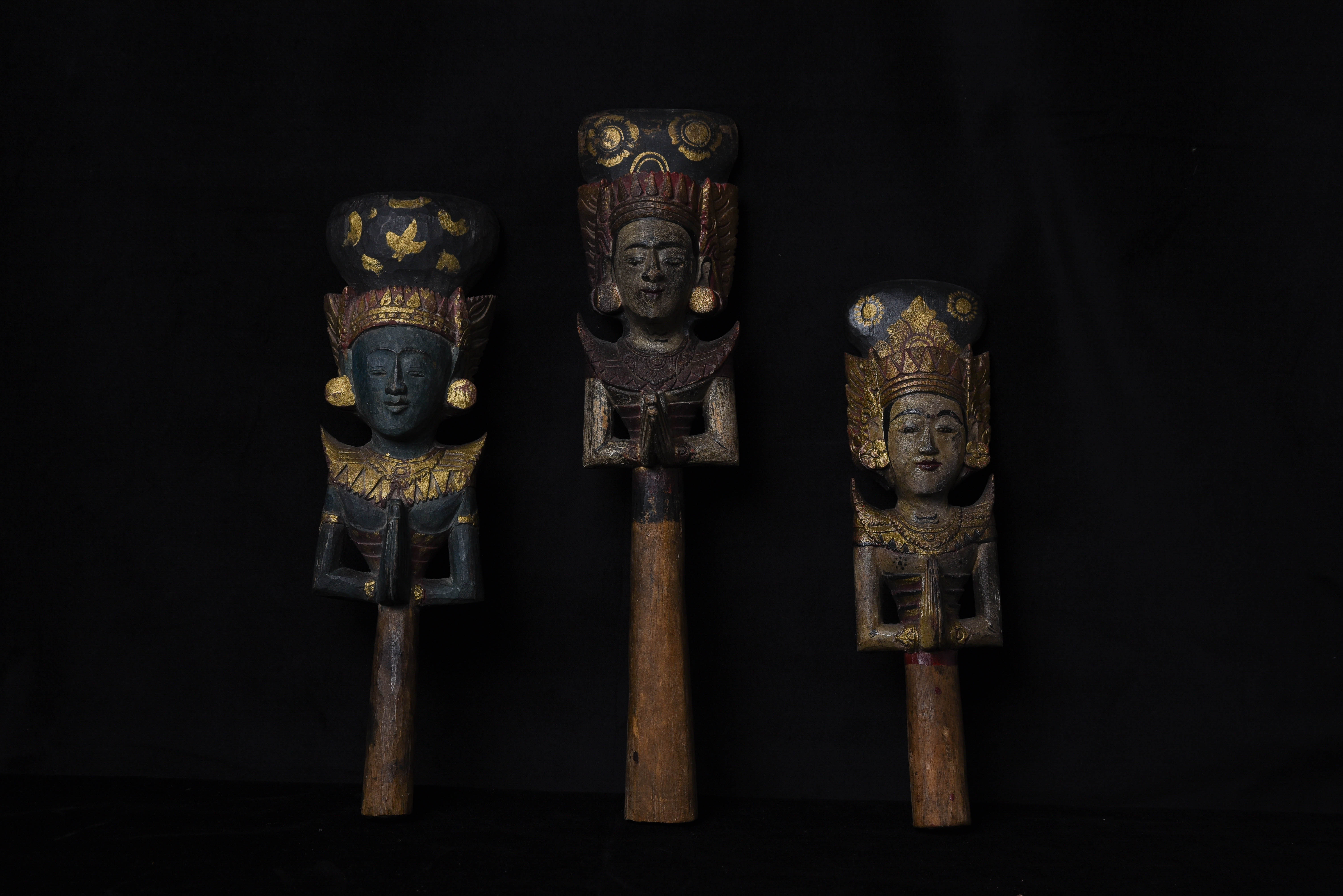 Antique Indonesian Bridal Figures- 2 females, one male. Very well carved and painted. Superb patina. Exceptional early 20thC examples.