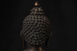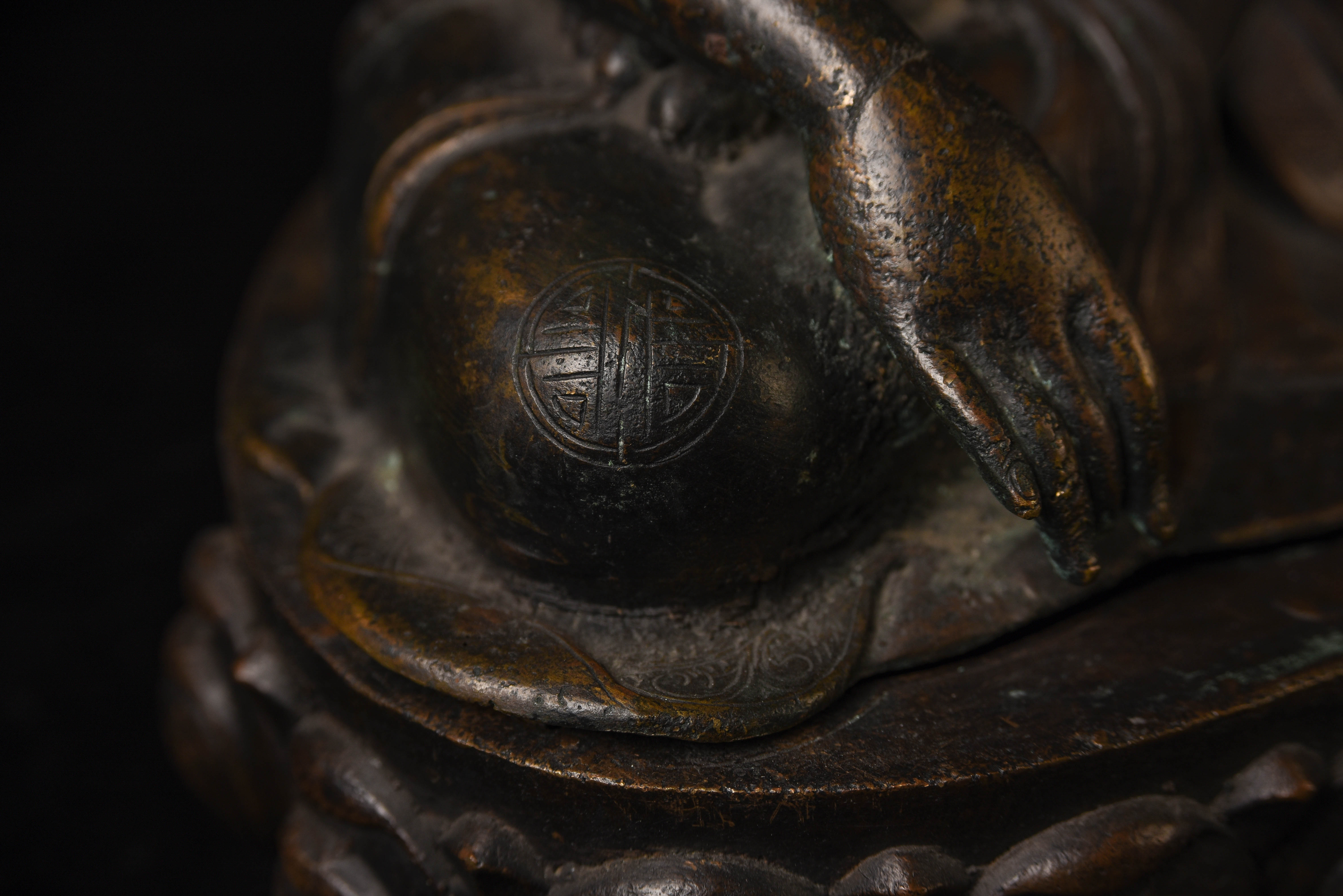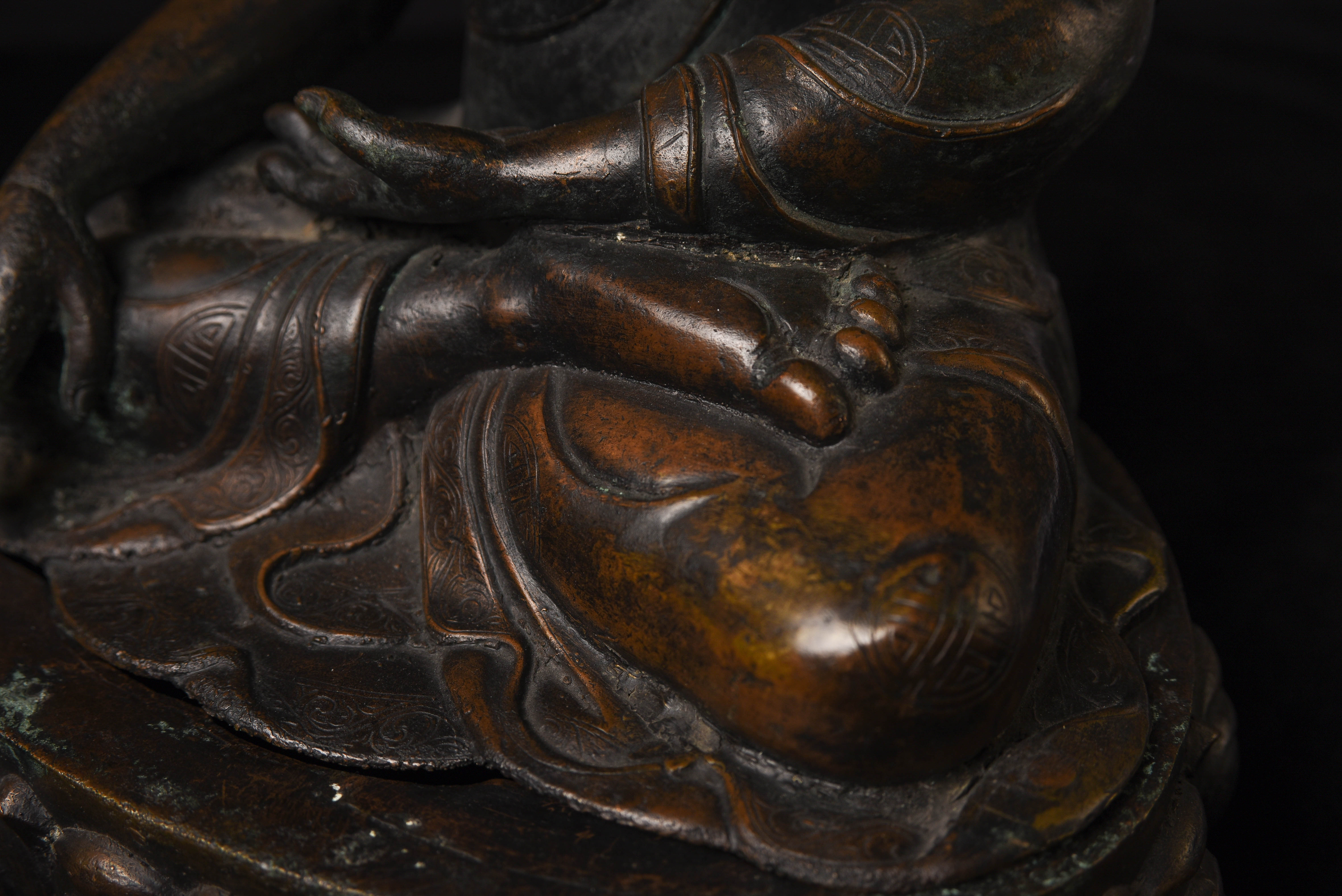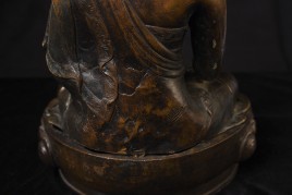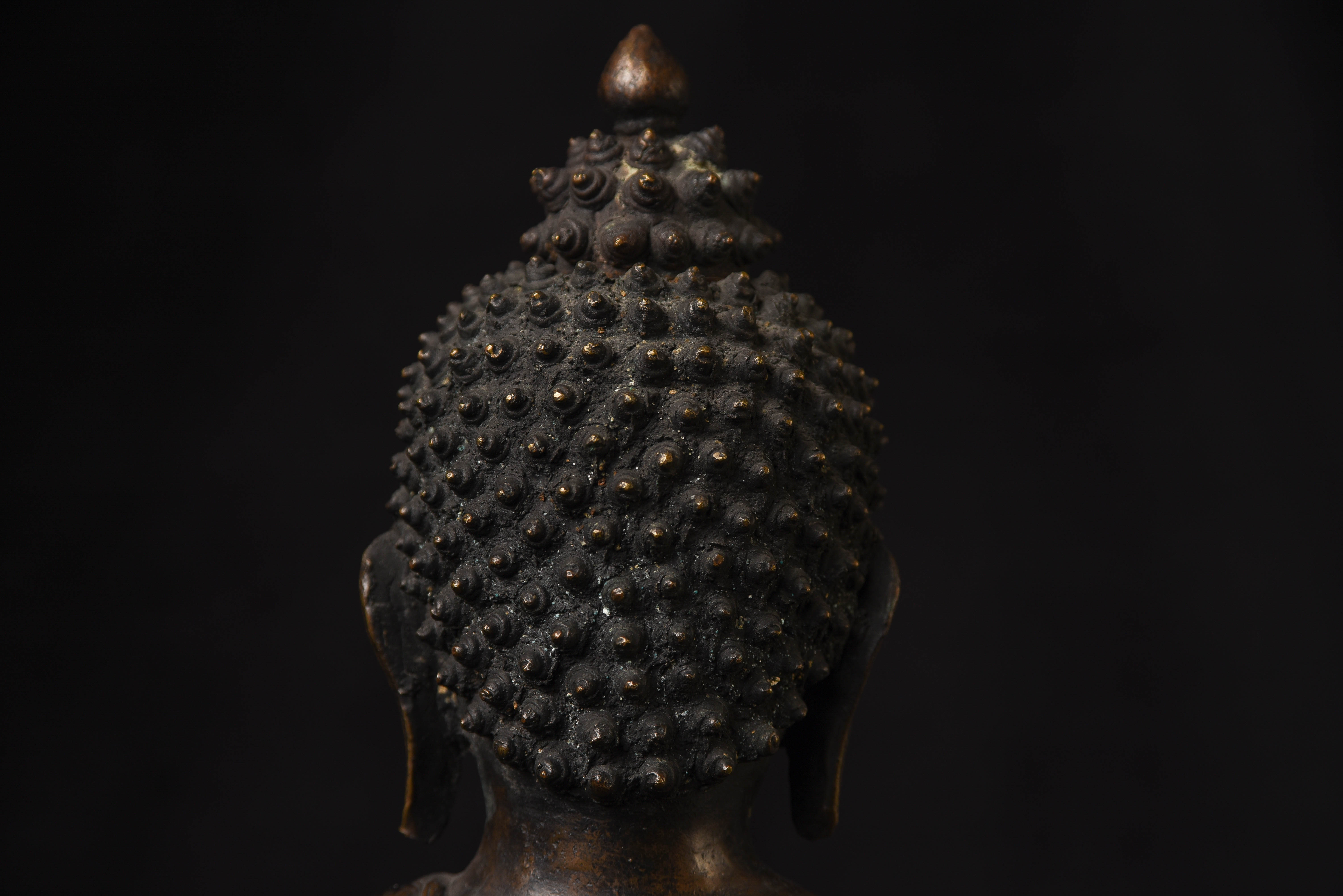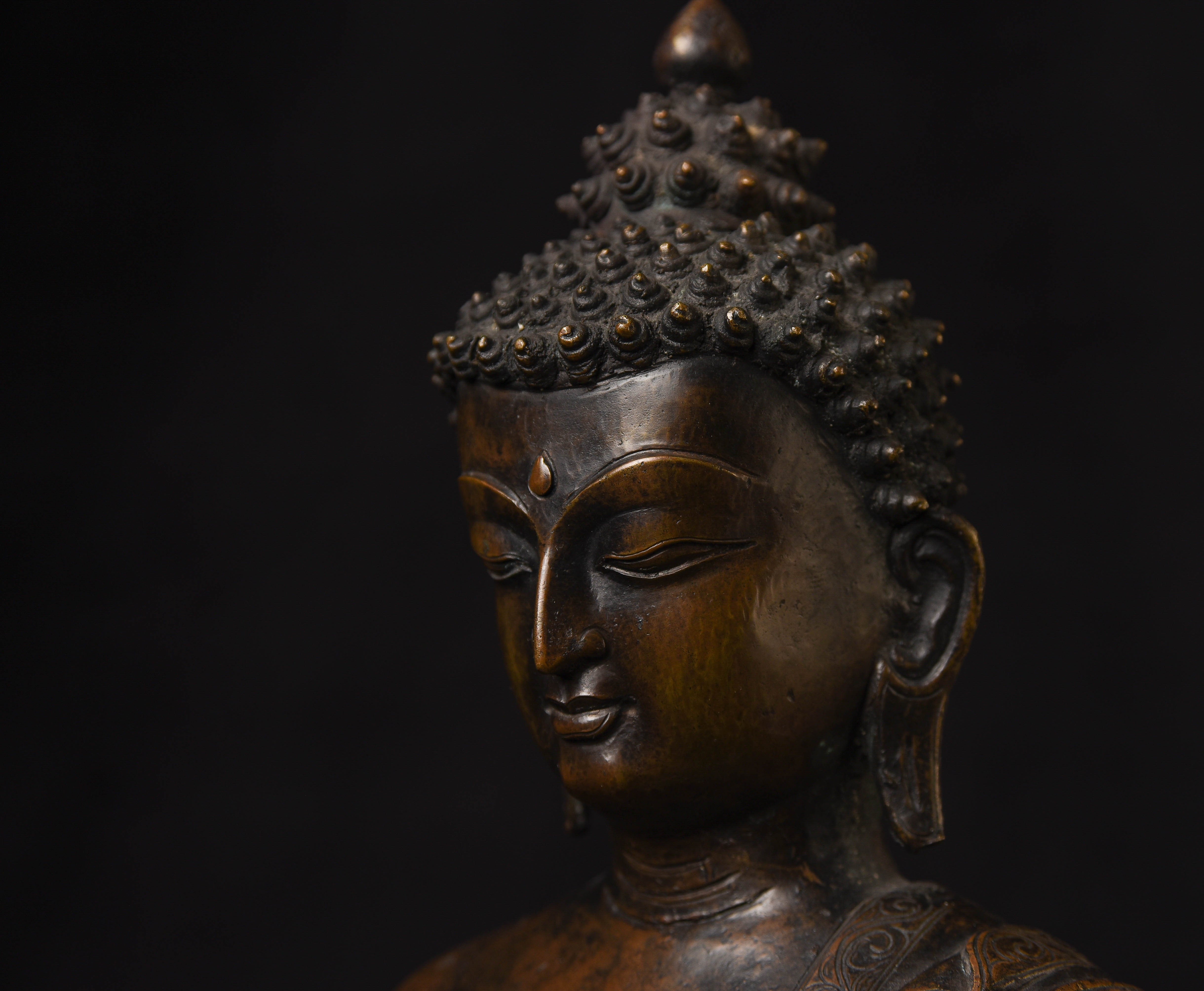 Fine and large early 20thC Nepalese Buddha. Beautiful chocolate patina. Nice crisp casting. Looks to be sculpted out of a copper alloy. Supremely peaceful. 16"H x 12"