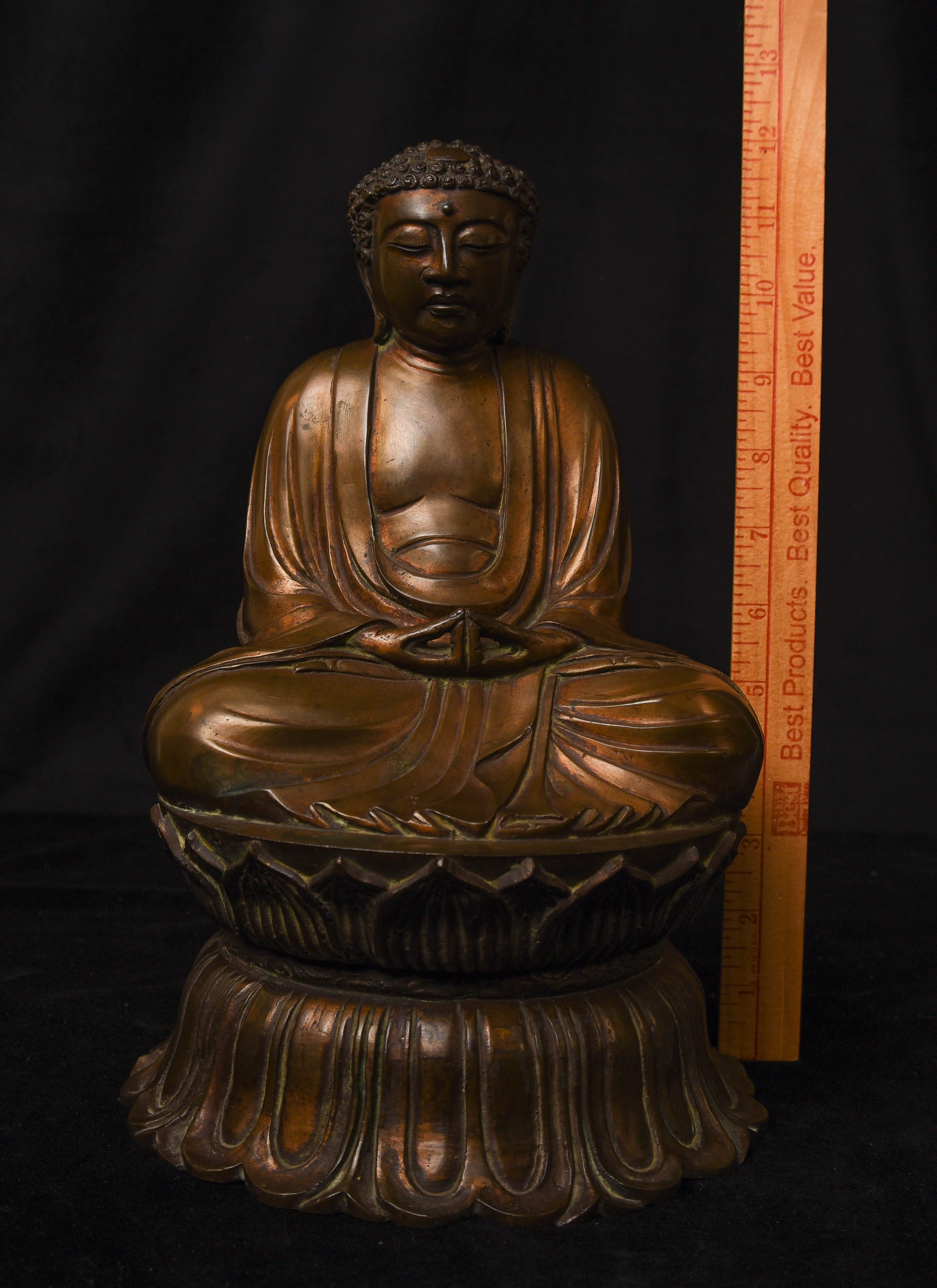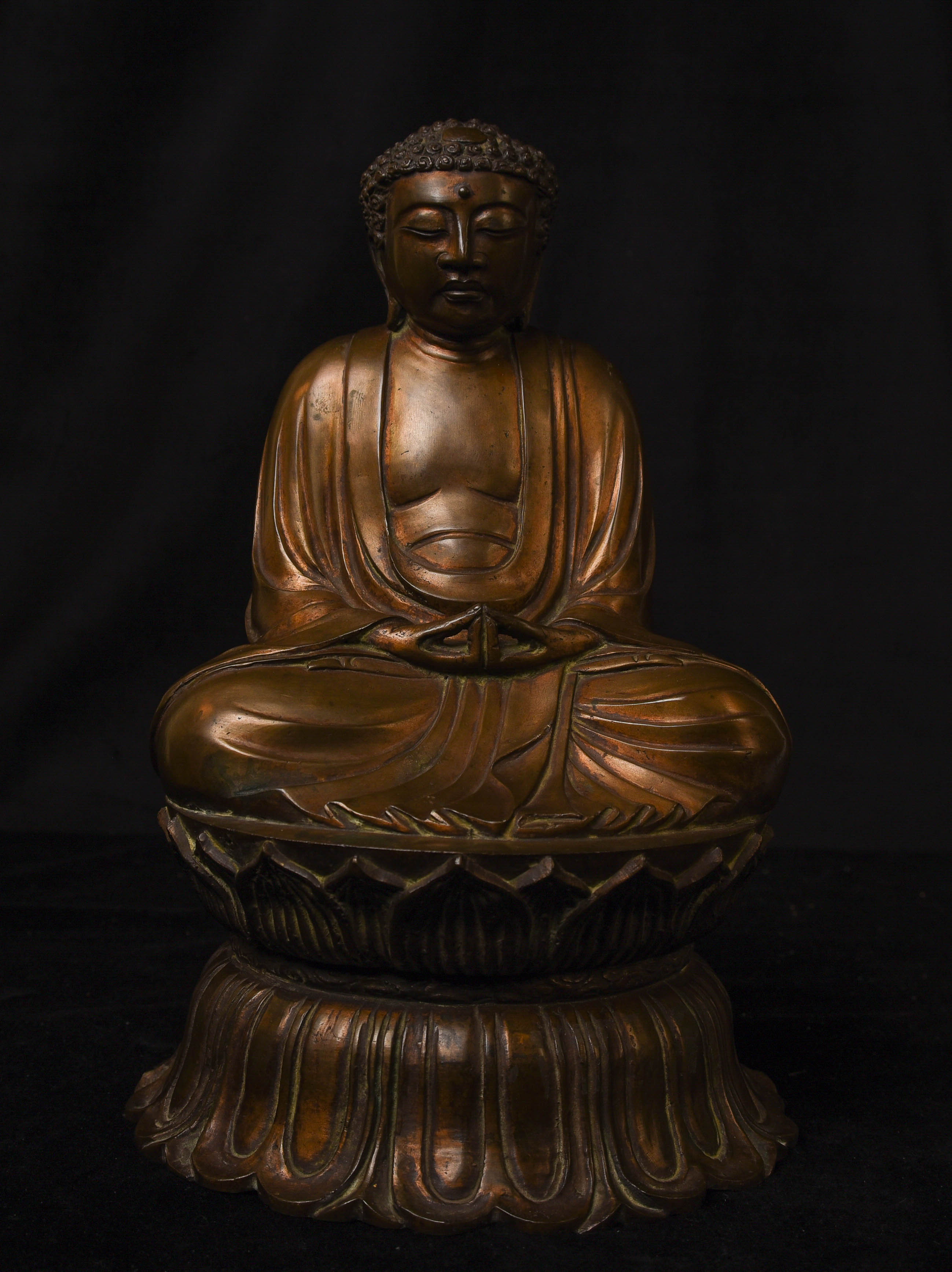 This Buddha has a classic face and body shape related to The Great Kamakura Buddha,which was completed in 1252, and it had an impact on the style of Buddhas being sculpted in Japan for hundreds of years to follow.
