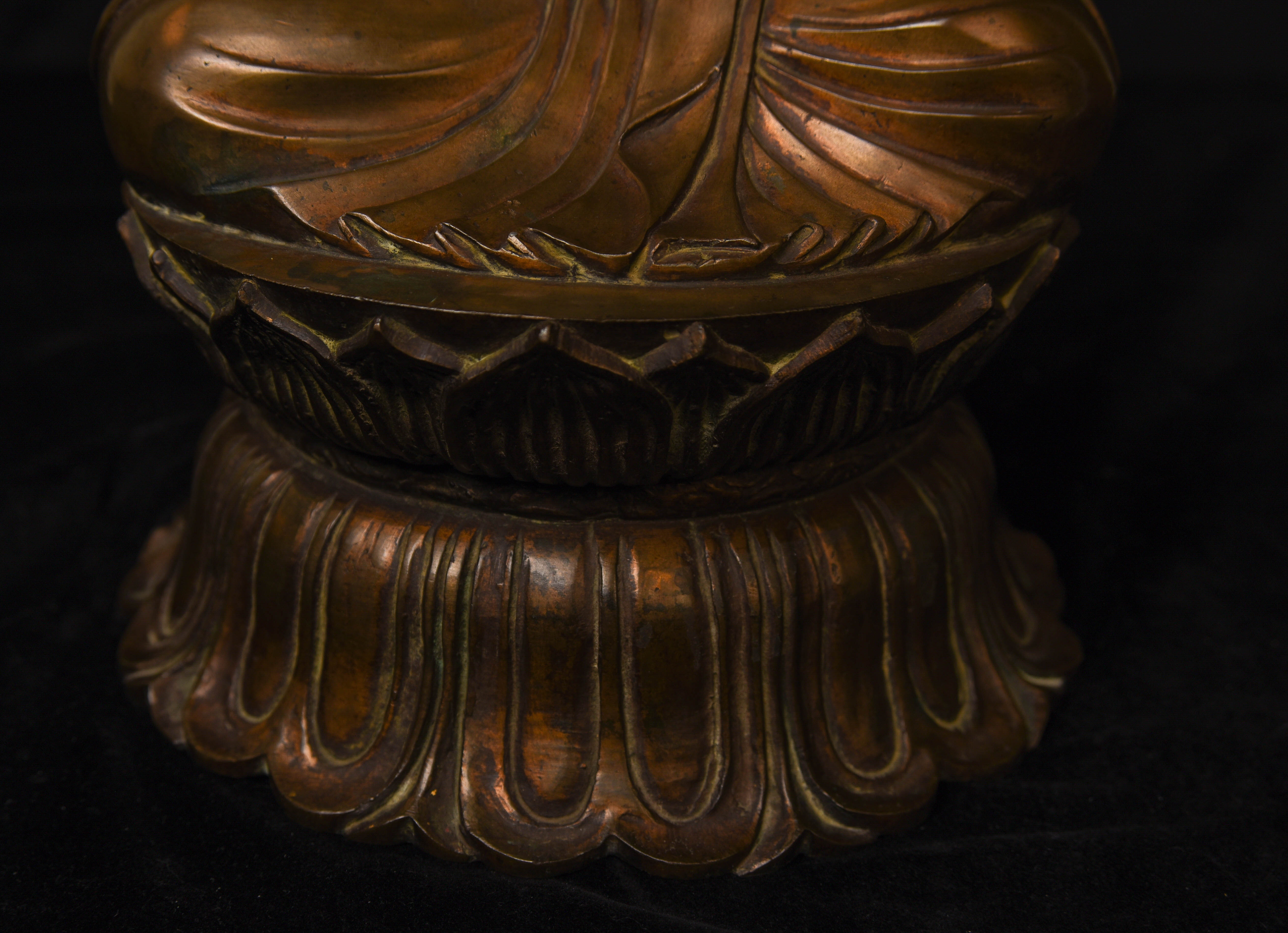 When I first looked at this Buddha I thought it was an eighteenth-century emulation of an earlier style. The more I researched it, the more I began to believe it actually was much earlier, and that it was actually a period piece or from the centuries that directly followed. I've been unable to find comparable examples.