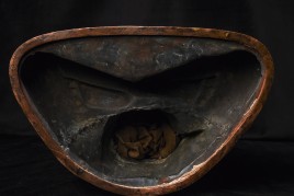 Extremely large at 22.5 in tall by 16.5 inches wide at the knees for the bronze alone, and on its original wooden base over 25 inches tall by almost 18 in. wide at the knees. Very fine casting and finishing. Spend time looking at the pictures. You'll see how crisp every detail is. Cold gilt applied to the face only. Very distinctive sculpting, with a large head and strong neck and head tilted ever so slightly to one side. The consecration plate on the bottom was loose and had clearly been previously removed, so I removed it so I could photograph the inside. To give a sense of how substantial the statue is, the copper consecration plate weighs a pound and a half by itself. Comes from an old European Collection. Weighs 45+lbs