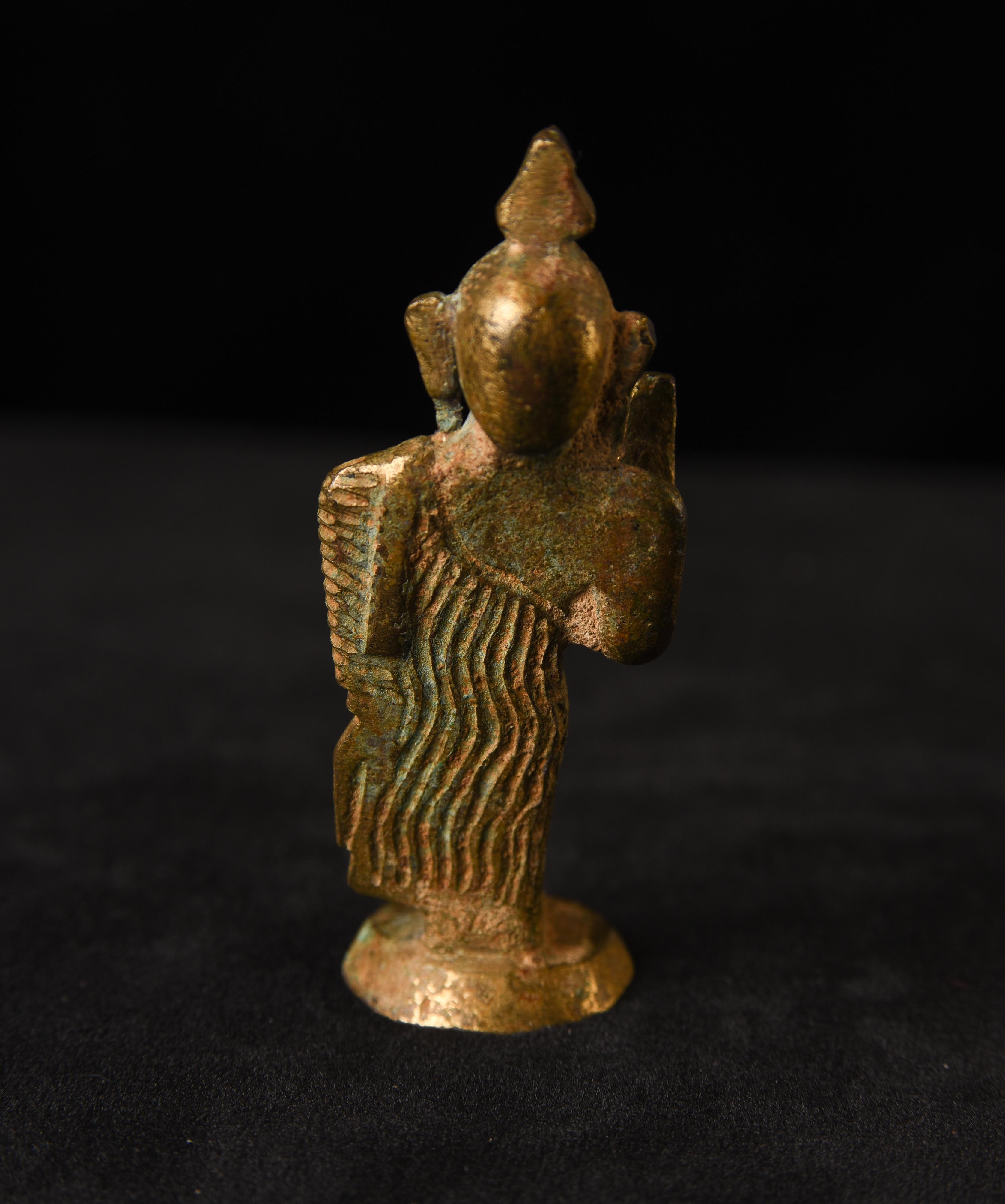 Small 18thC solid cast Sri Lankan Standing Buddha - .15lbs - .070kg _ 3"H x 1.125"W.