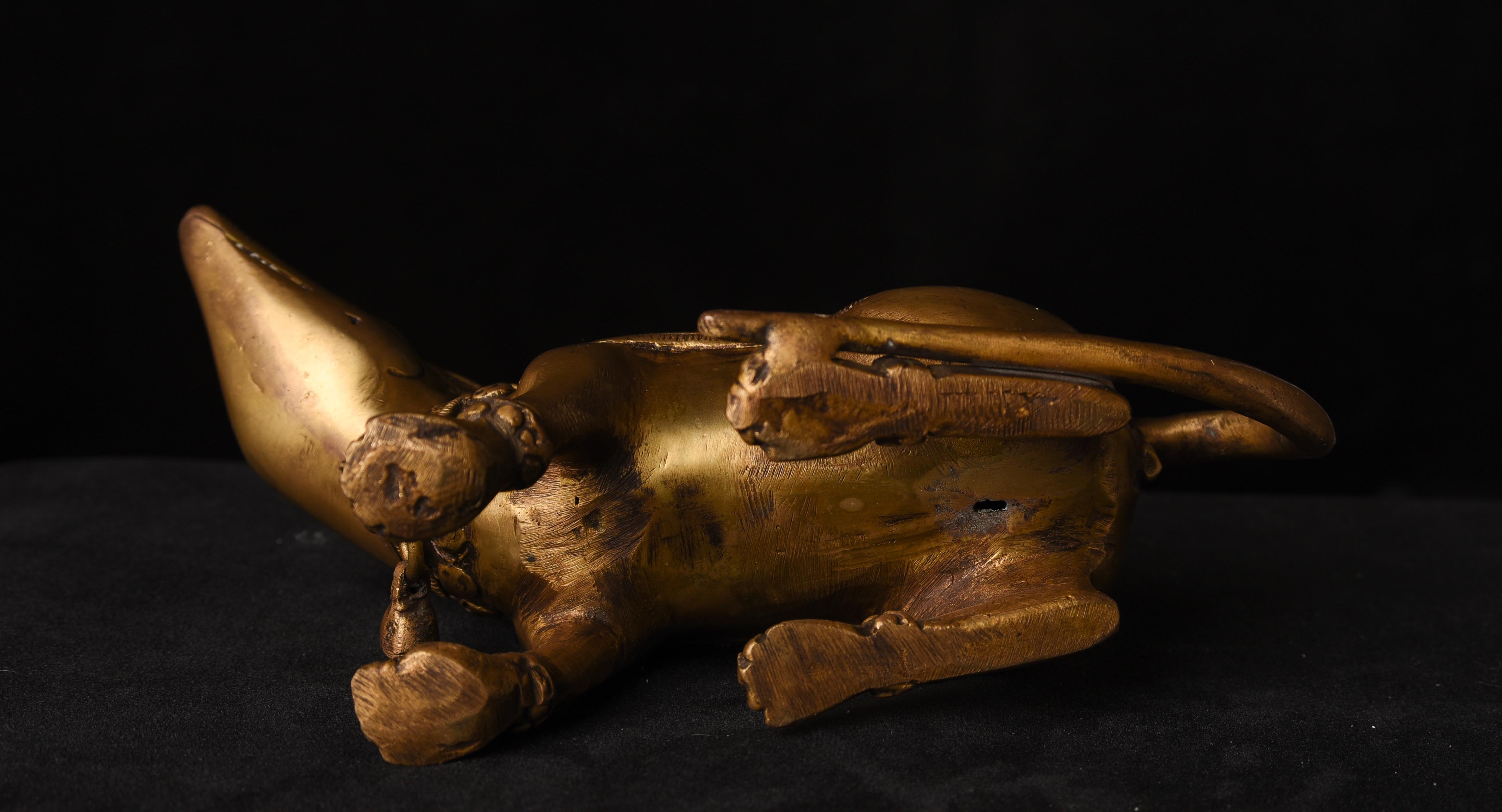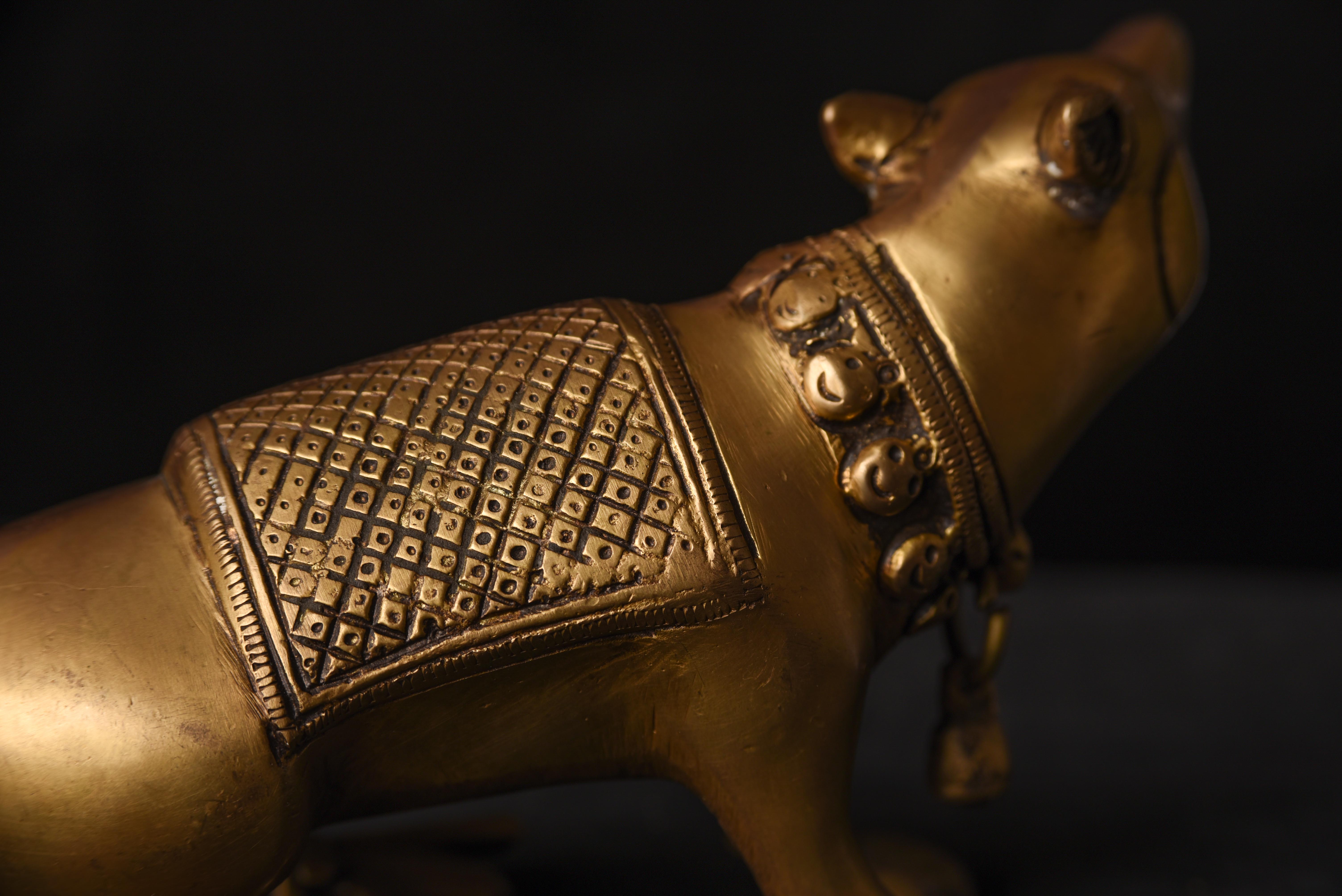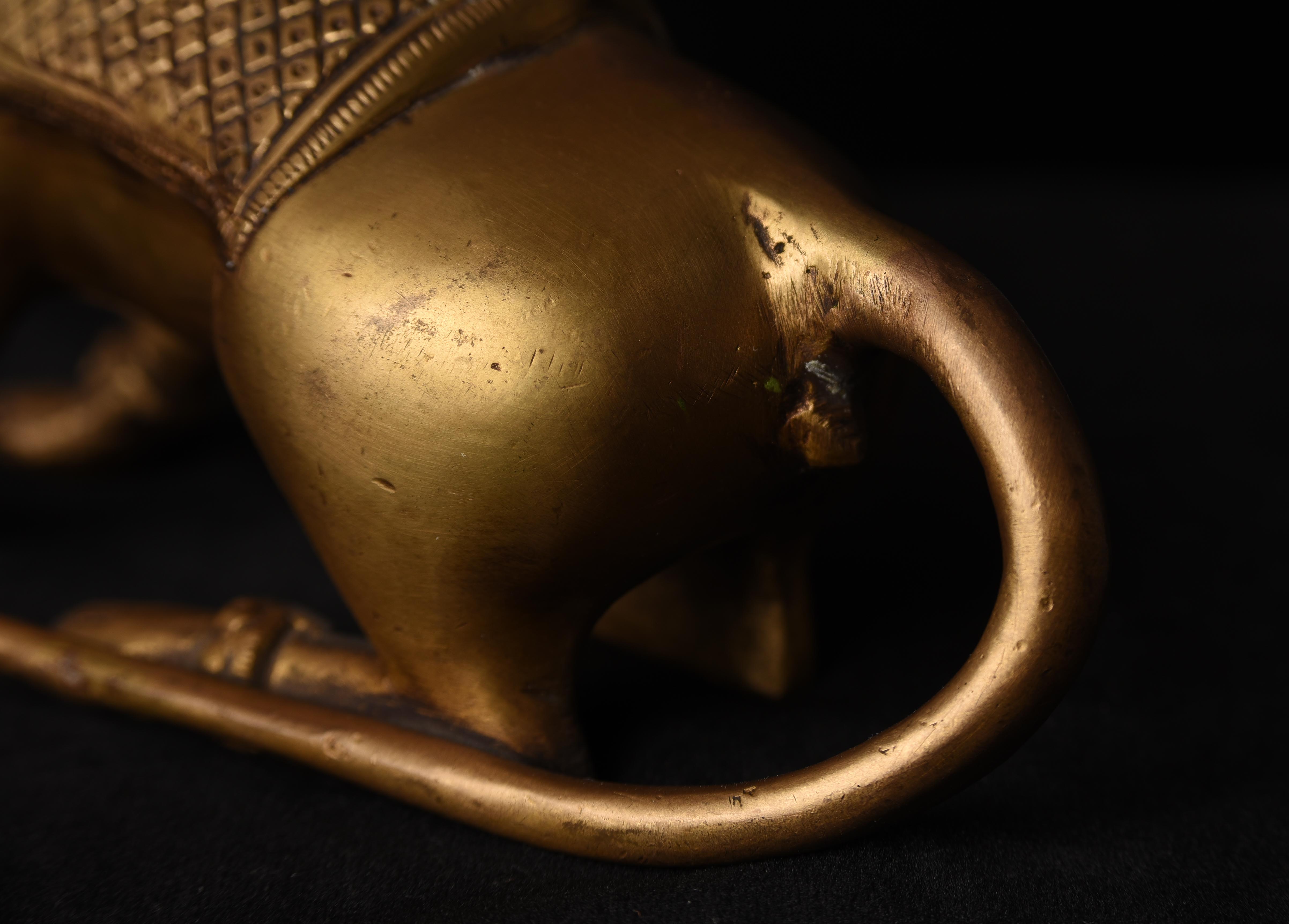 Something I've never come across before in all my years of collecting and dealing-a large solid cast rat- sidekick to Ganesh. This fellow has the stance of a devoted dog. The sculptor managed to turn his head in a way that makes him look almost alive. Note he is wearing a saddle , plus a necklace covered with skulls (look more like smiley faces) - 3.46lbs - 1.570kg _ 7.5"H x 4.25"W.
