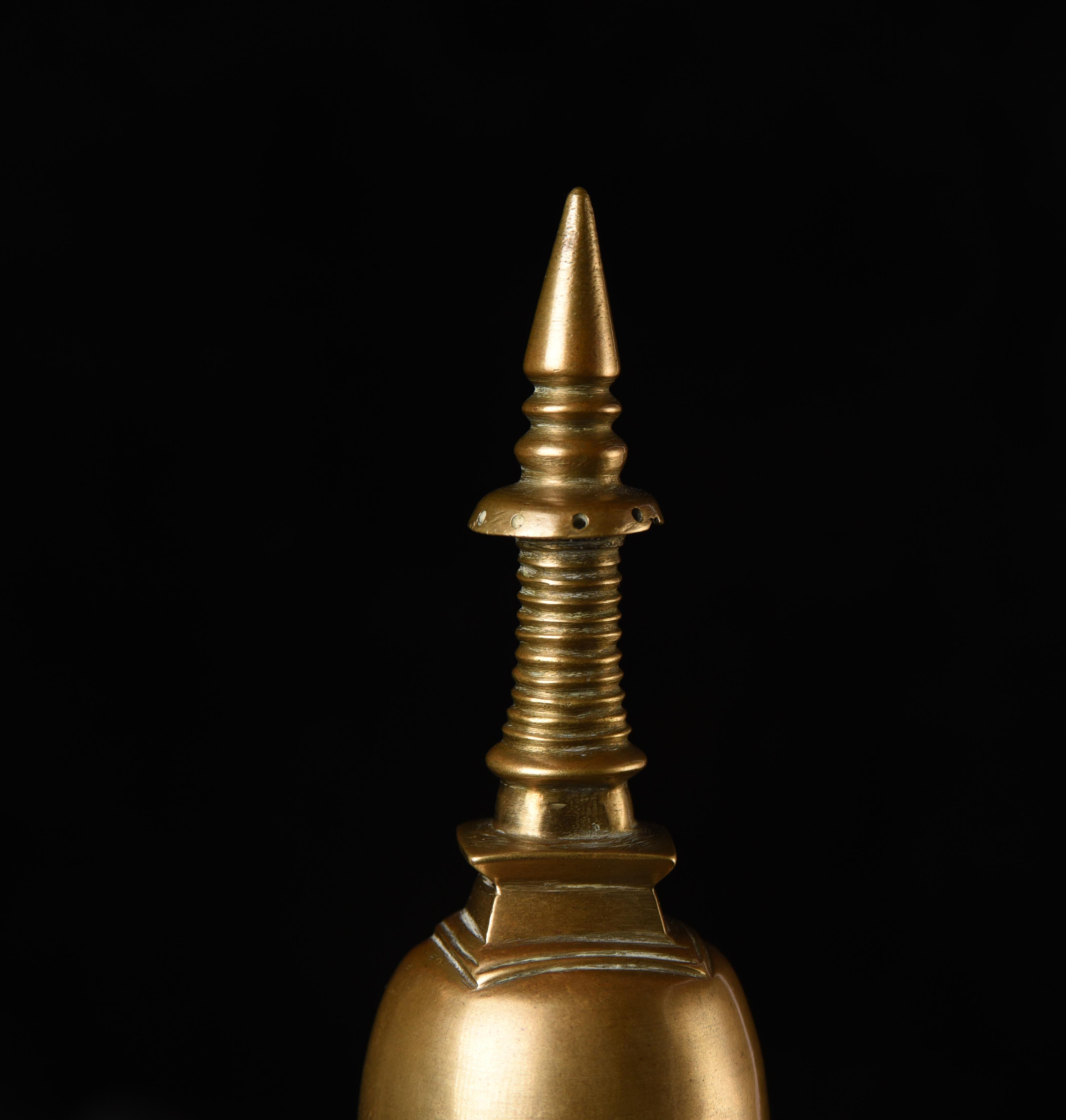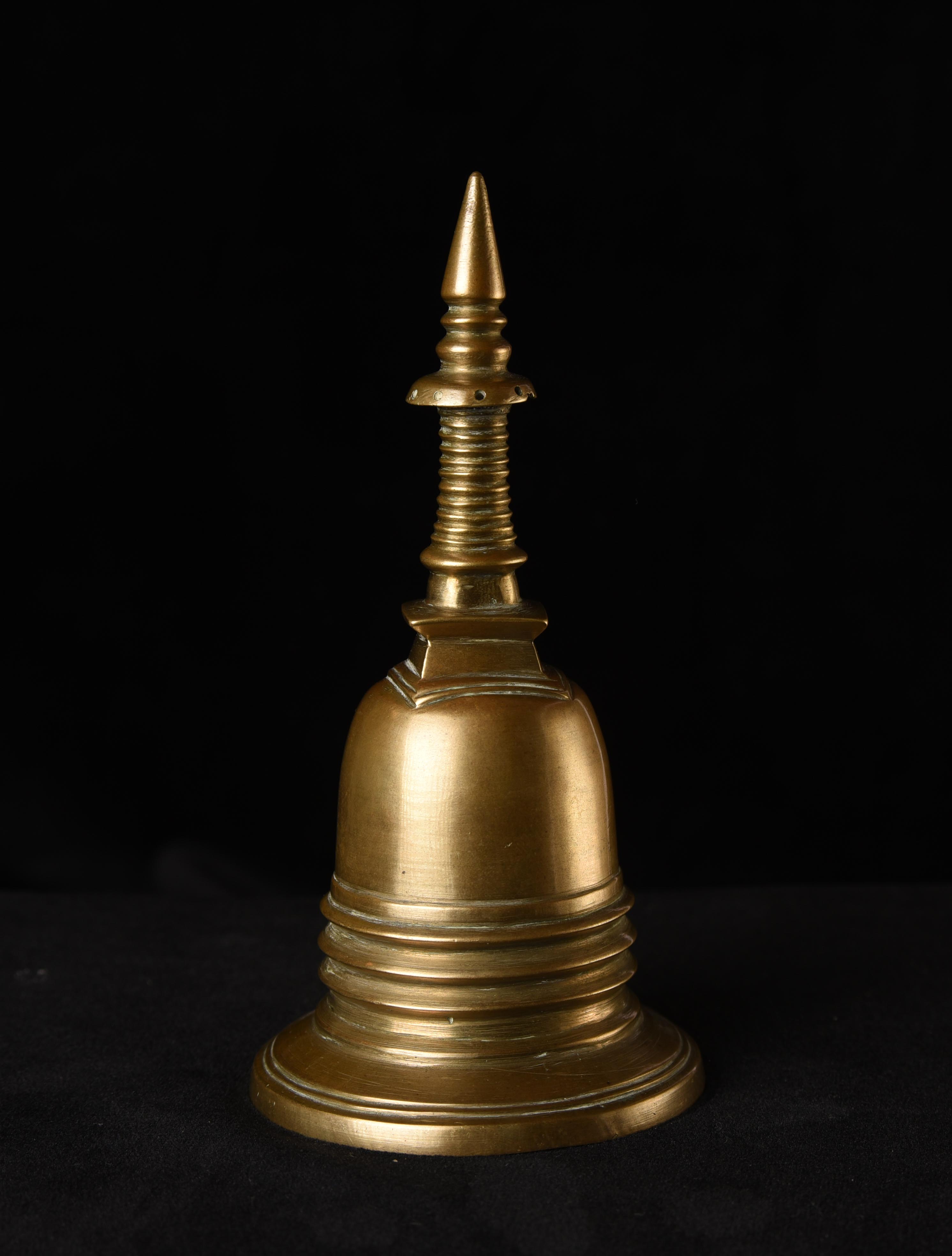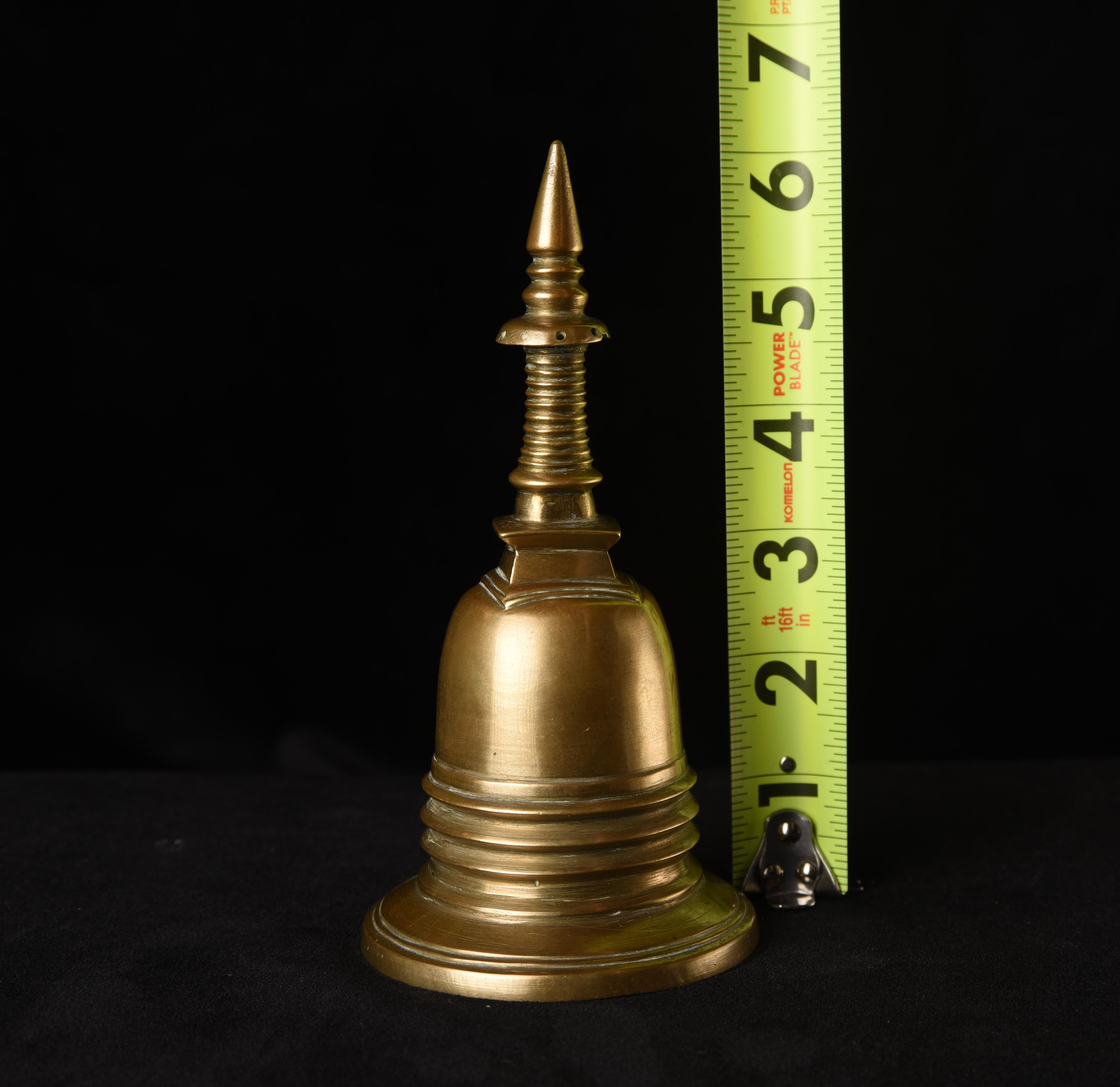 18/19thC Sri Lankan Stupa in bell form. Many of the Kandy era stupas were made in this form. Good quality stupa, though does not sound much like a bell. 6.25"Hx3"W _ .63lbs - .285kg