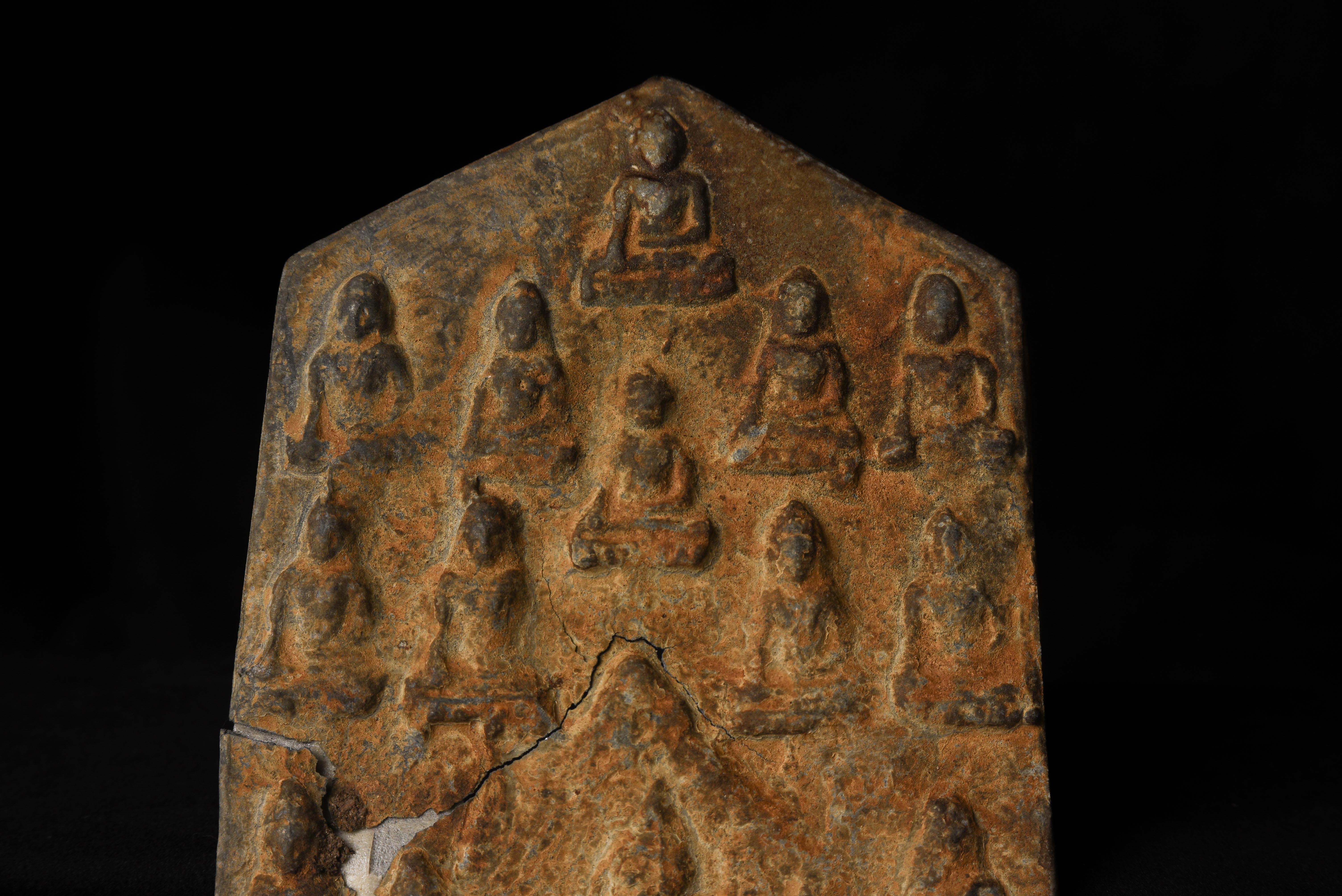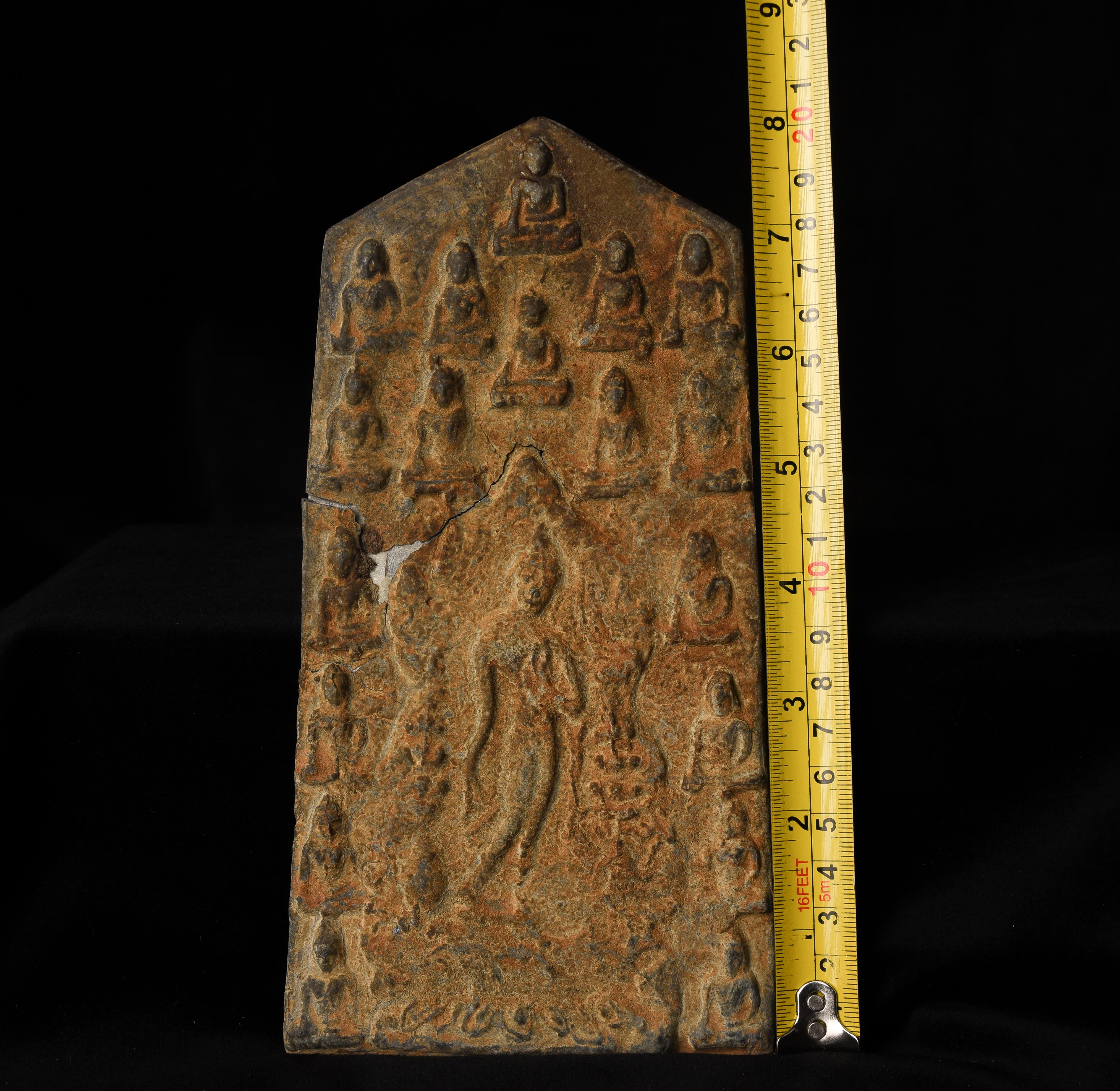 13-15thC Sukothai Metal Buddha Plaque- An exceptional example- came from the best collection of these I have ever seen. Rare to find authentic early Buddhist plaques in any condition-especially so large and cast in metal. It has a bit of damage as seen in the photos and is a bit fragile (reflected in the price) Quite large for its type