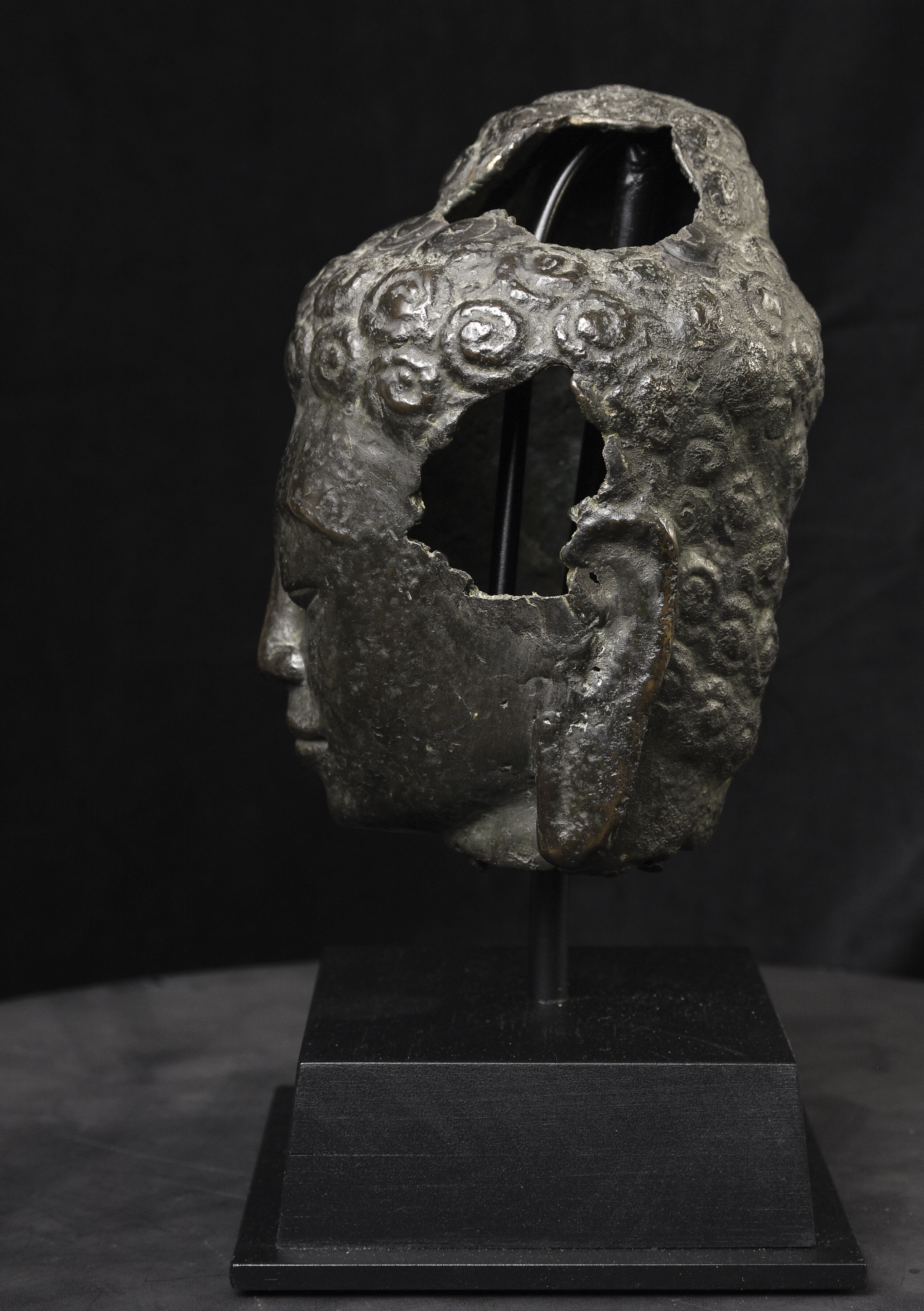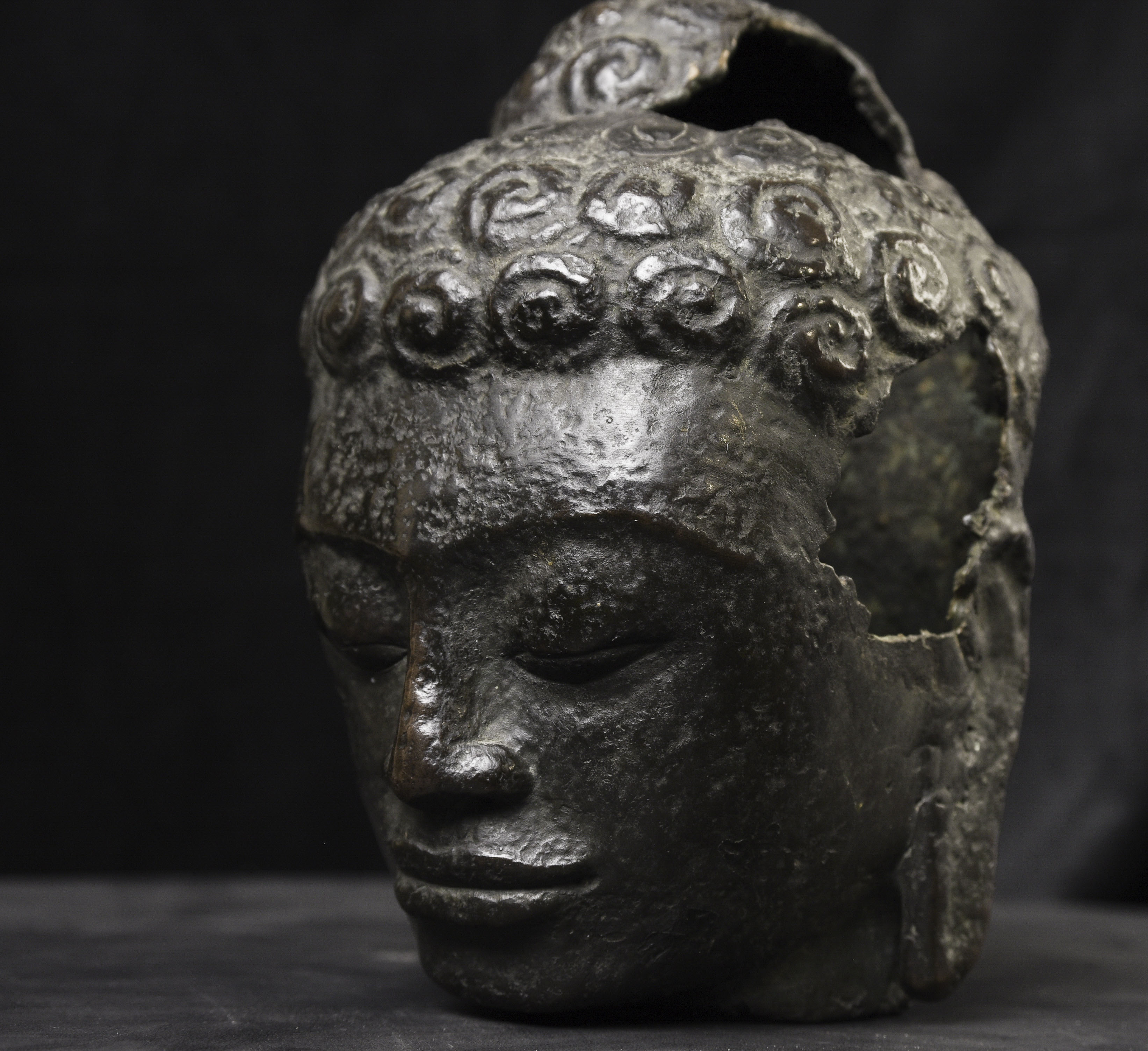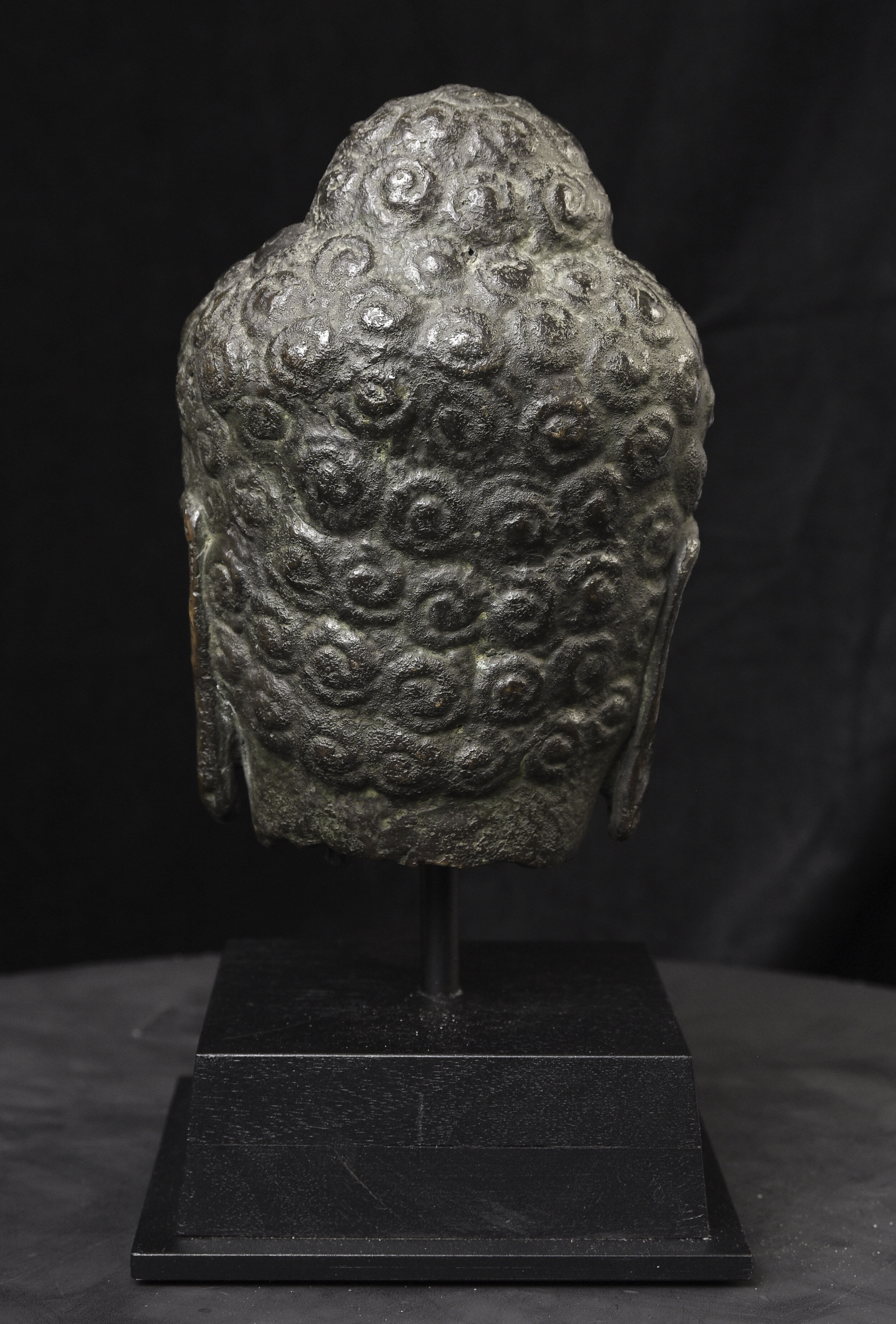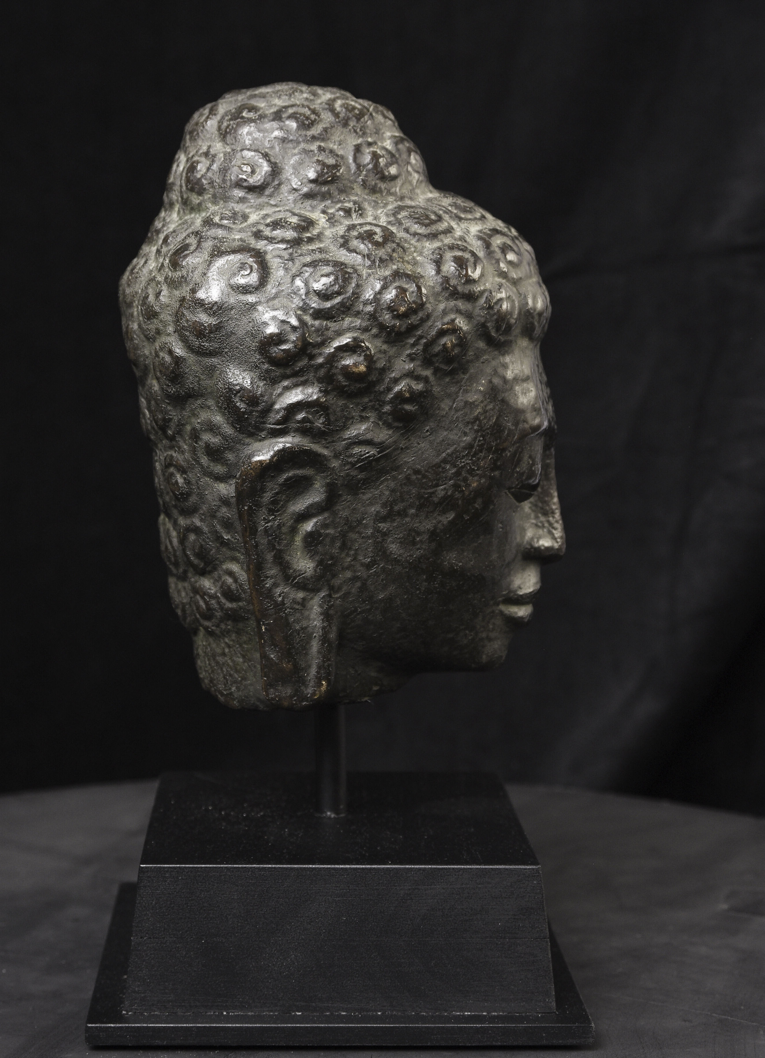 Magnificent 11thC Dvarati Bronze Buddha Head. Superb face, casting, sculpting, and finishing. Plus, the patina and wear show 1,000 years of devotion and add tremendously. From a knowledgeable French collector.
