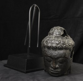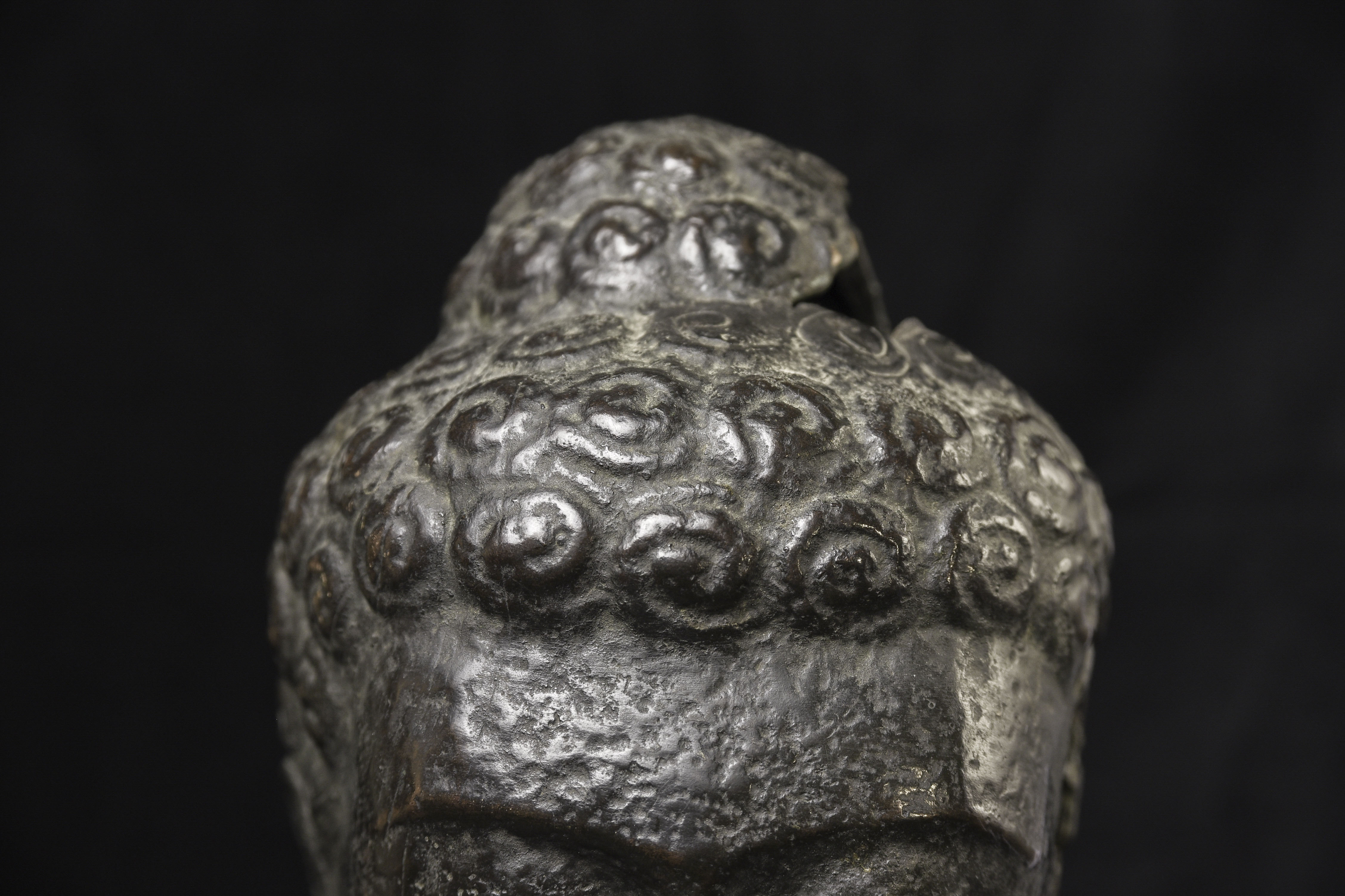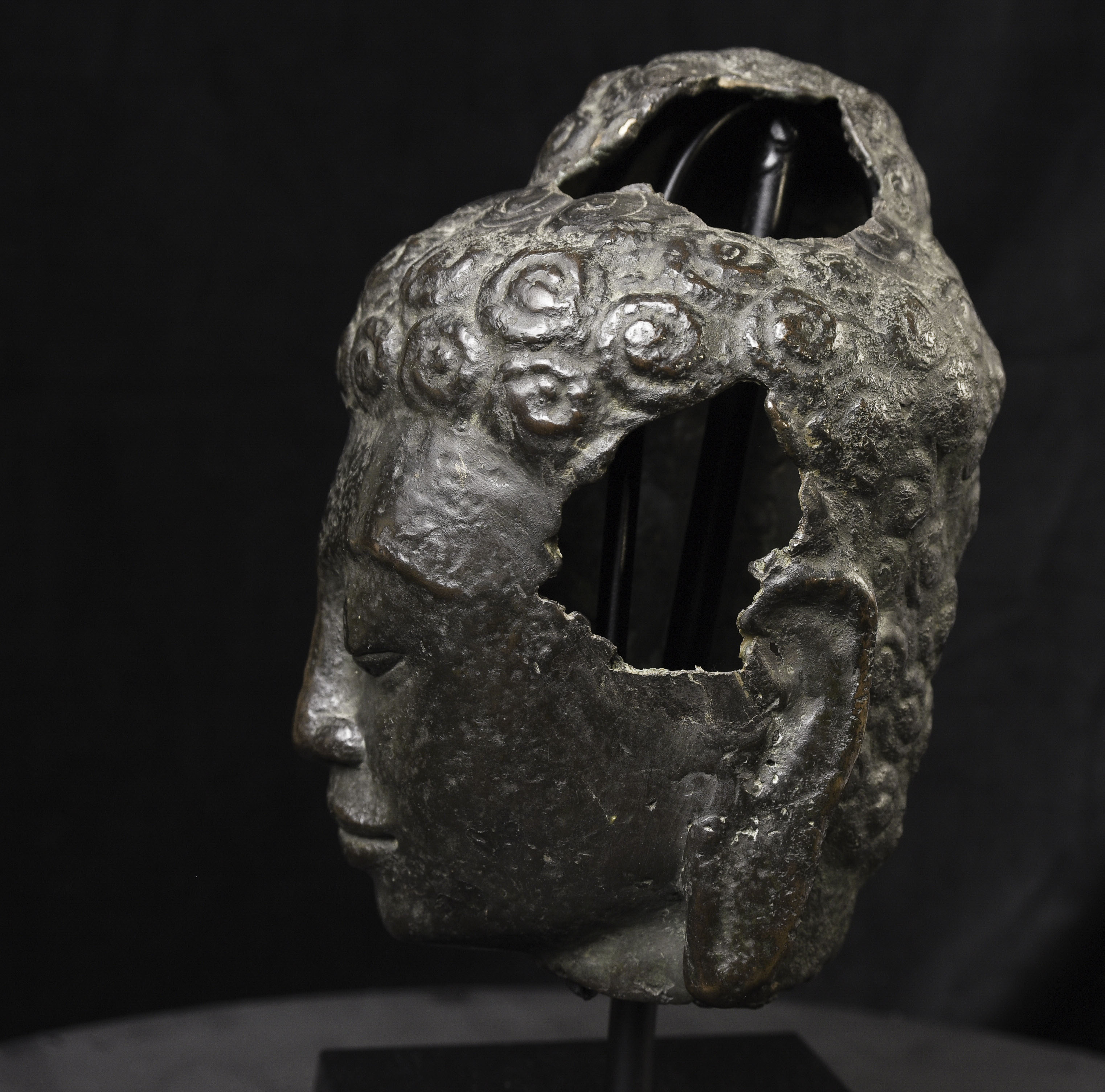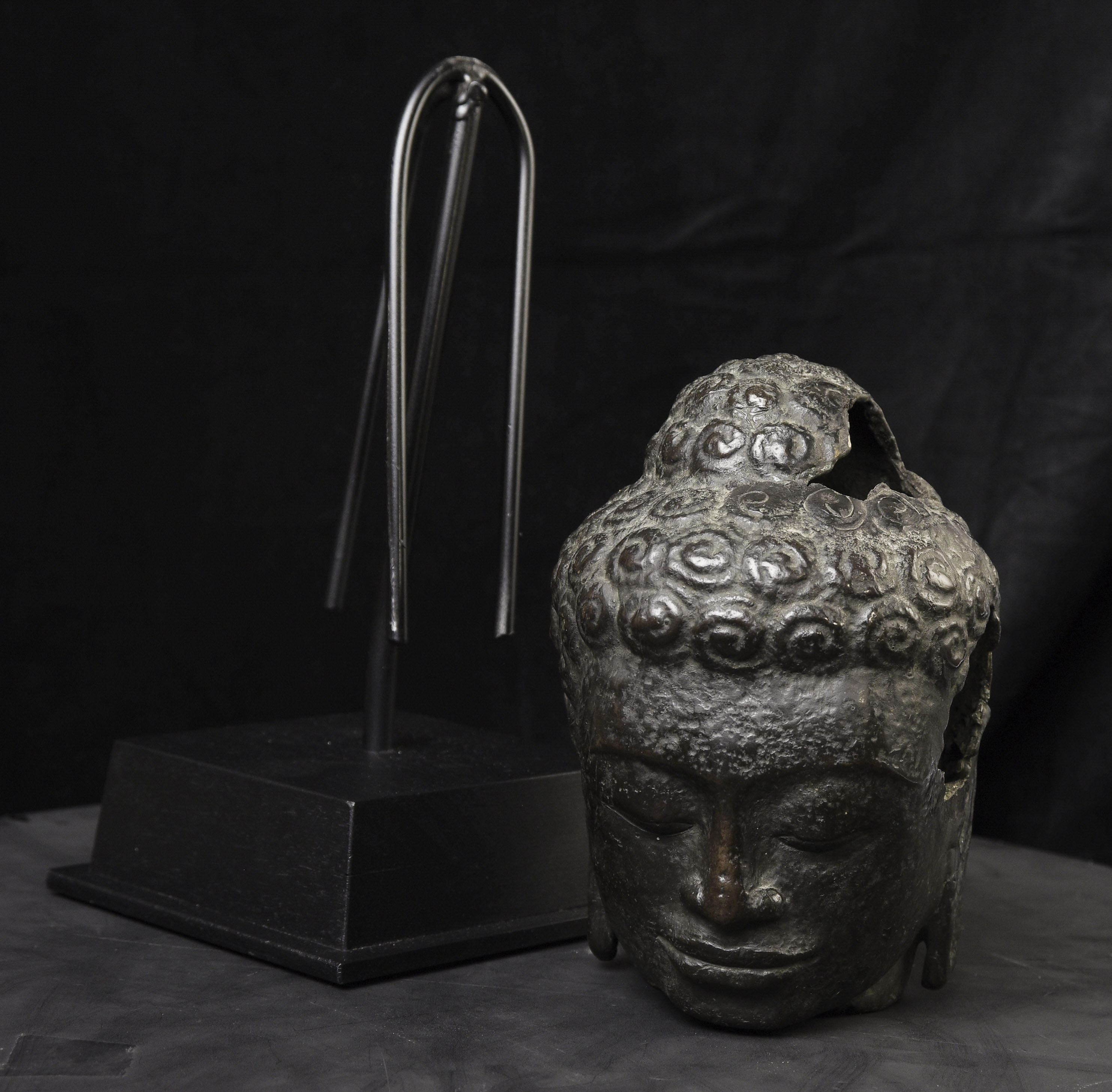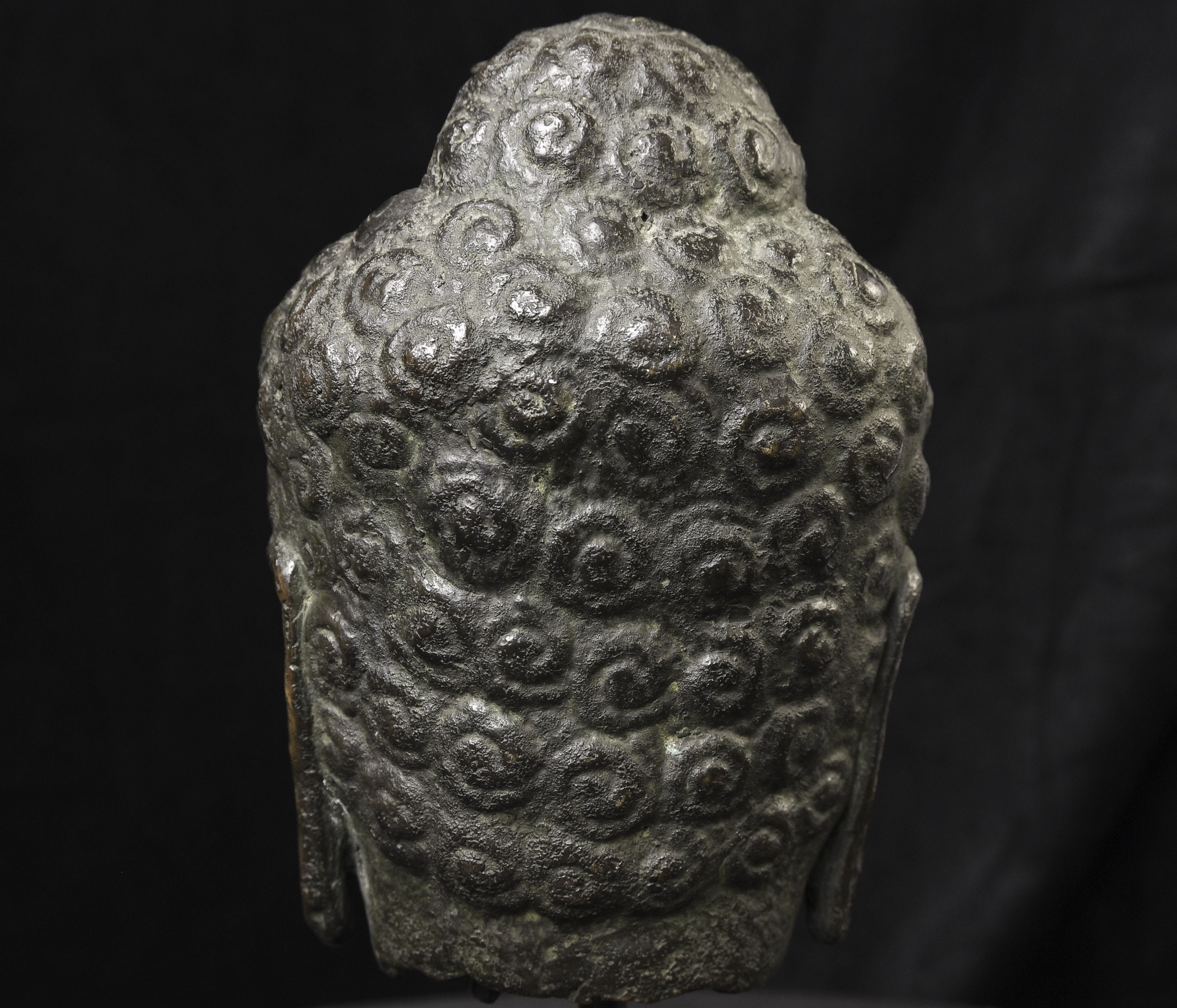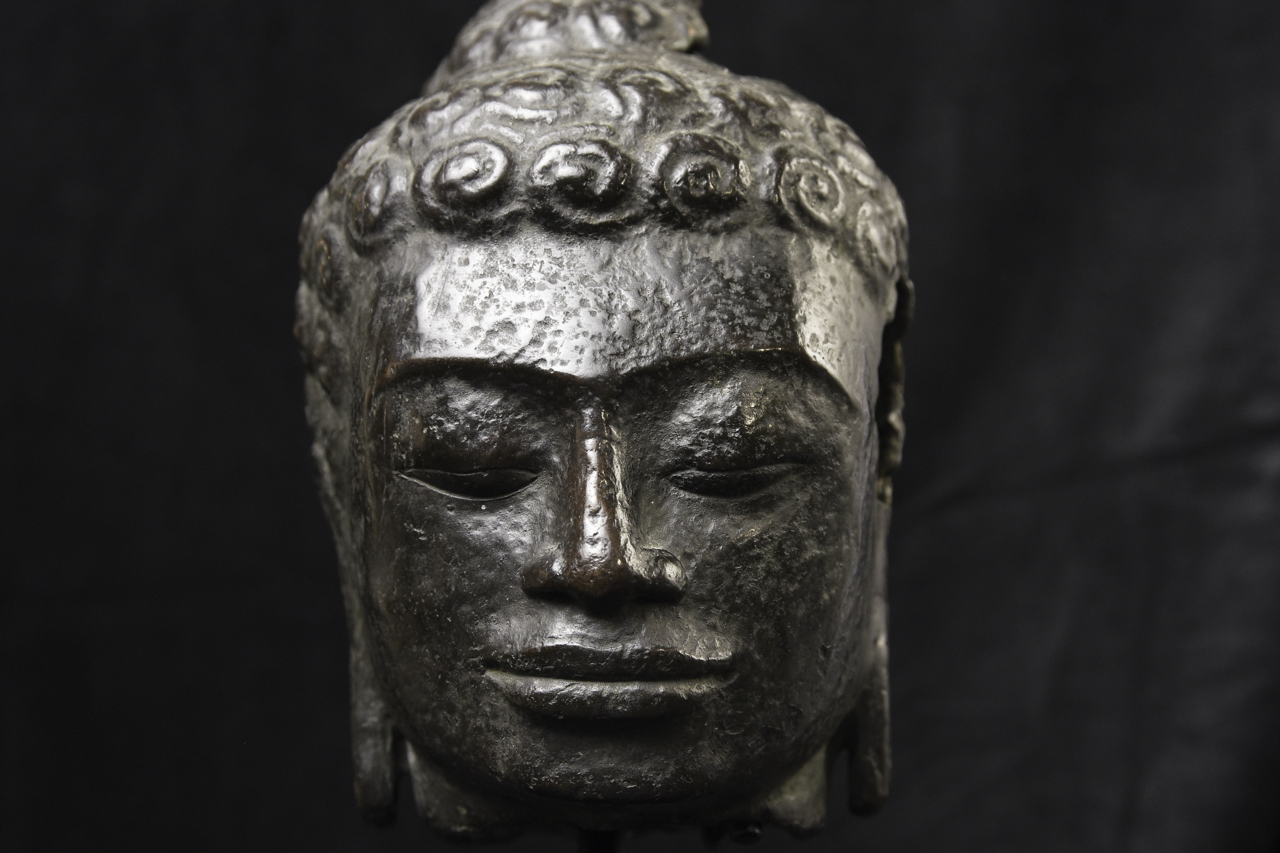 Magnificent 11thC Dvarati Bronze Buddha Head. Superb face, casting, sculpting, and finishing. Plus, the patina and wear show 1,000 years of devotion and add tremendously. From a knowledgeable French collector.