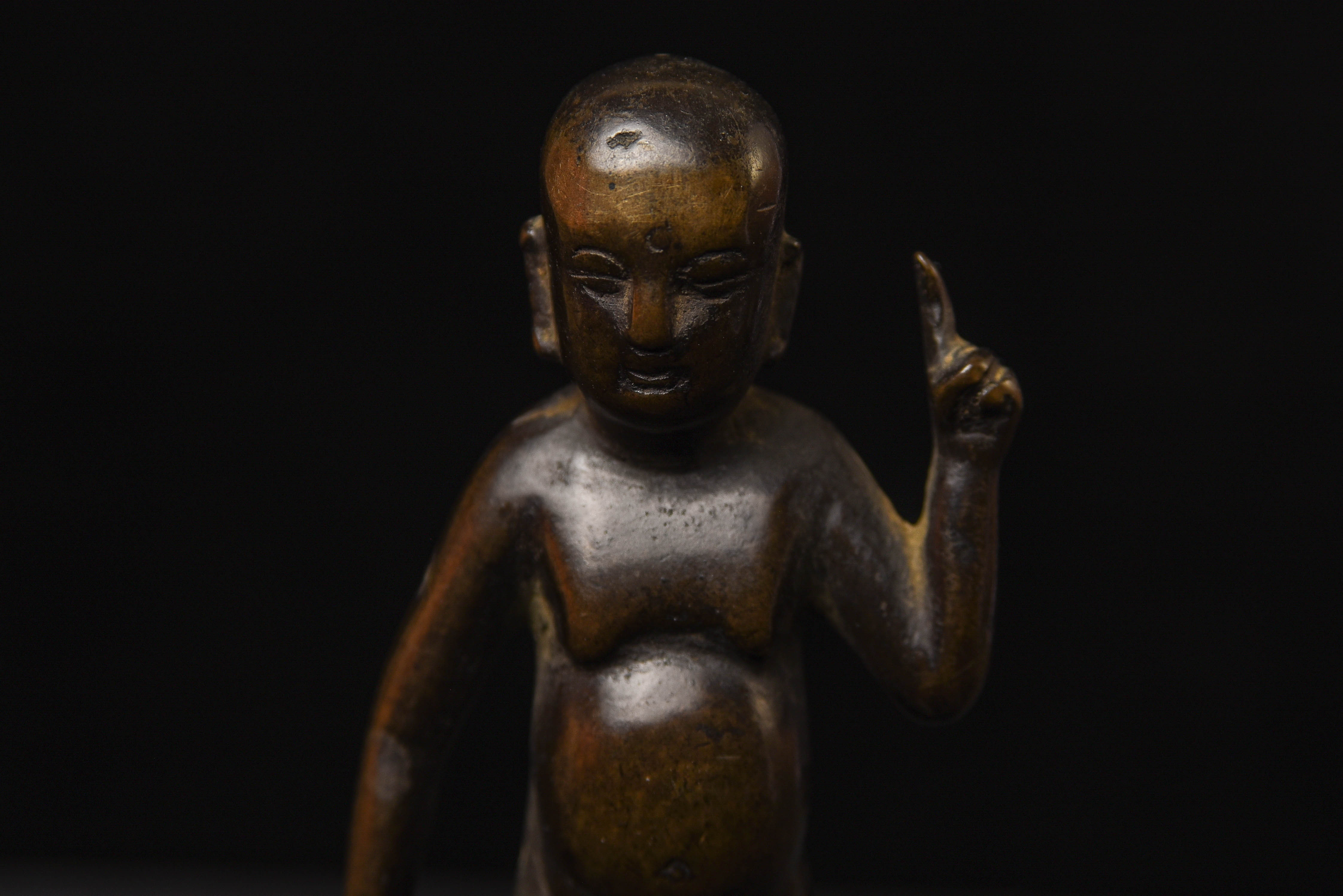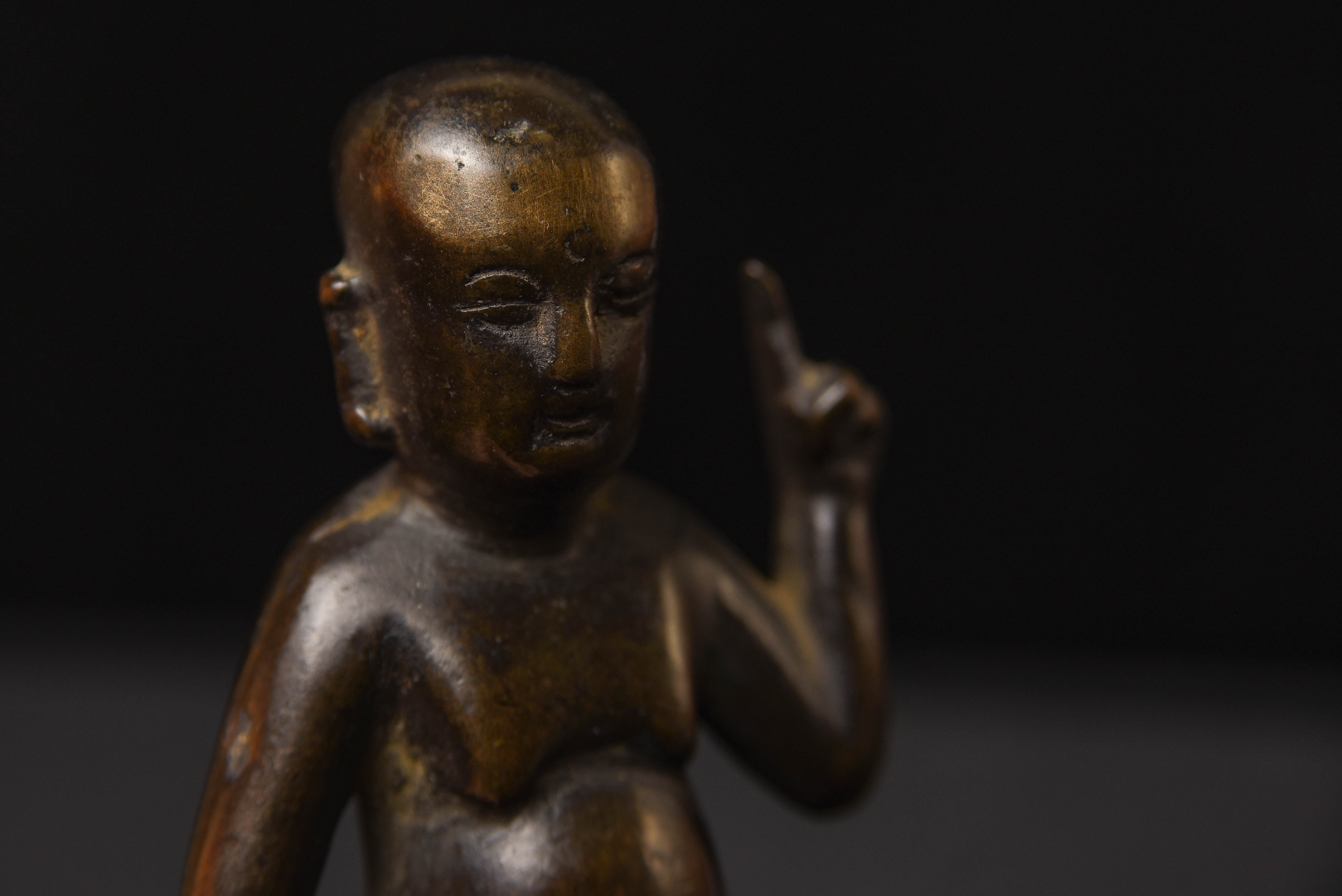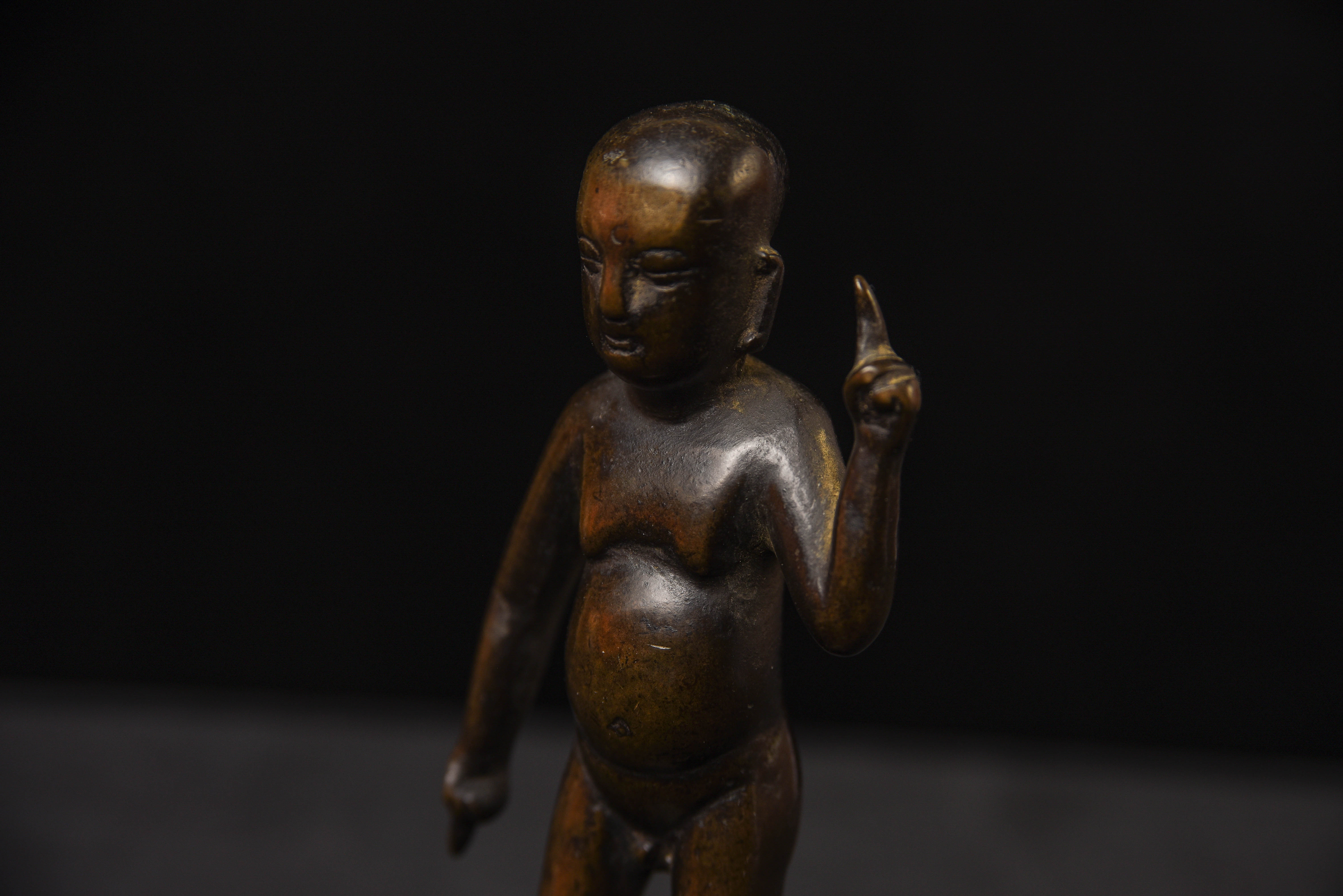 Ming to Ching Baby buddha pointing towards heaven and earth. Looks a bit like an old man's body. Certainly authentic. (5.5"H x 2.5"W - .75lbs - .340kg)