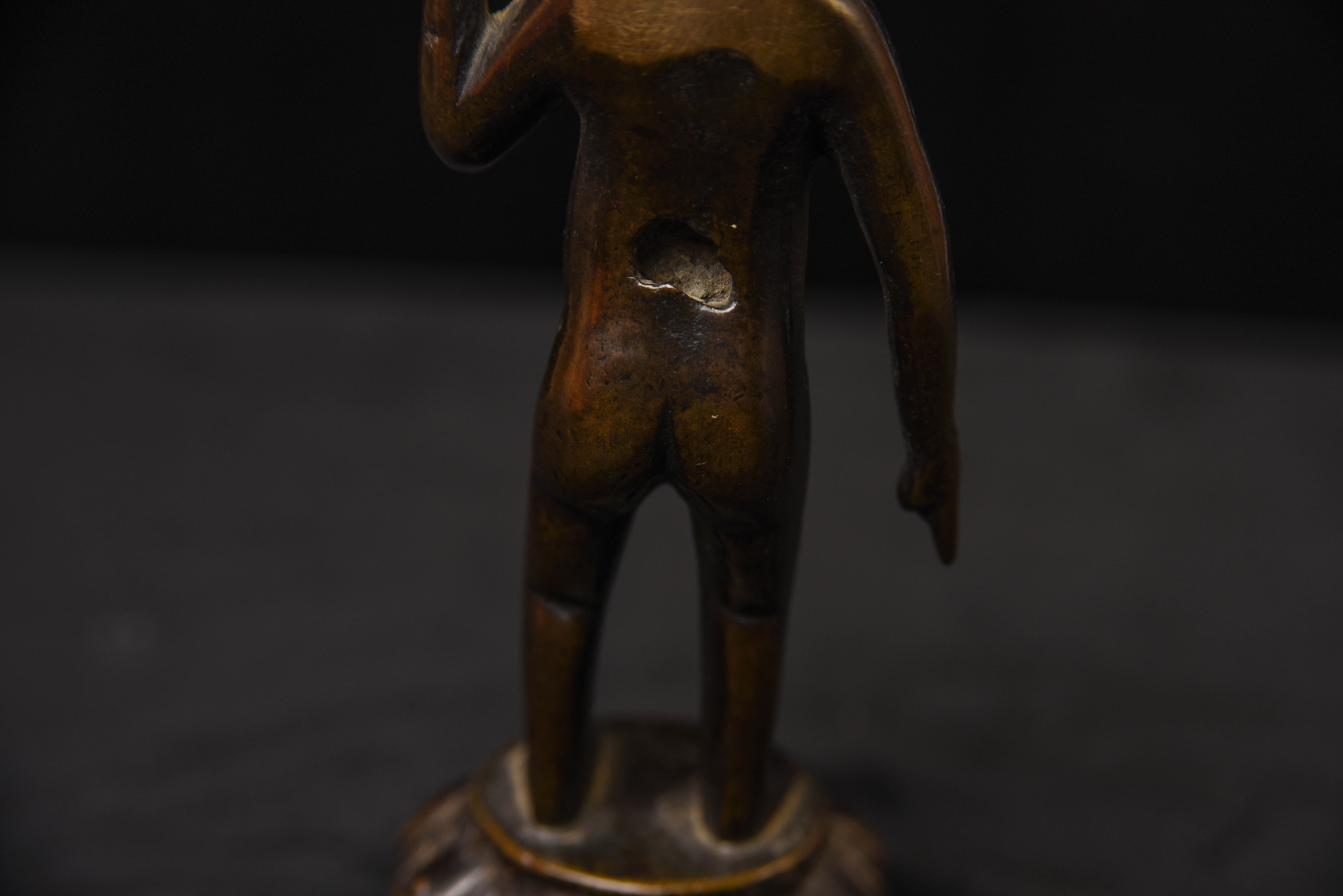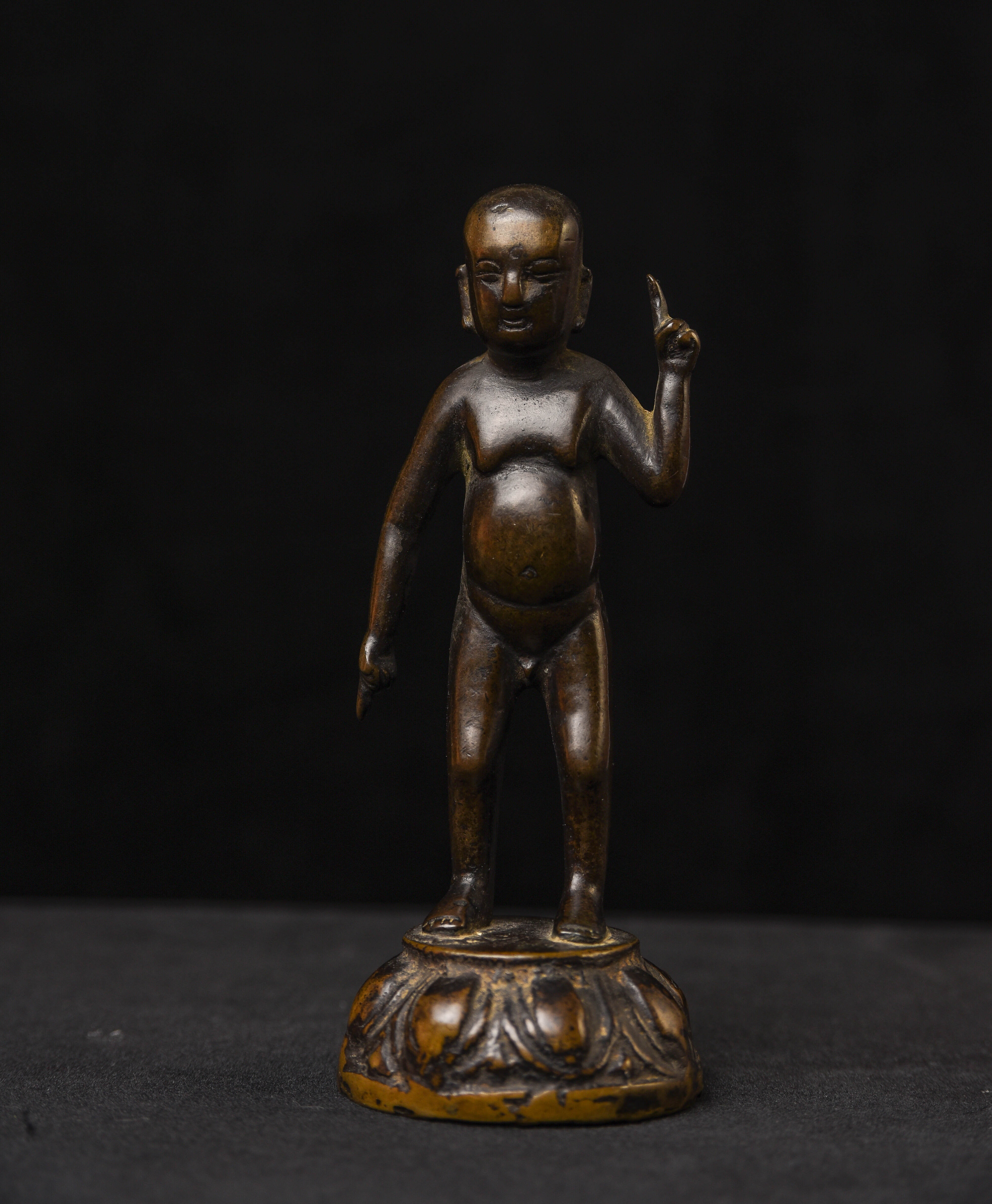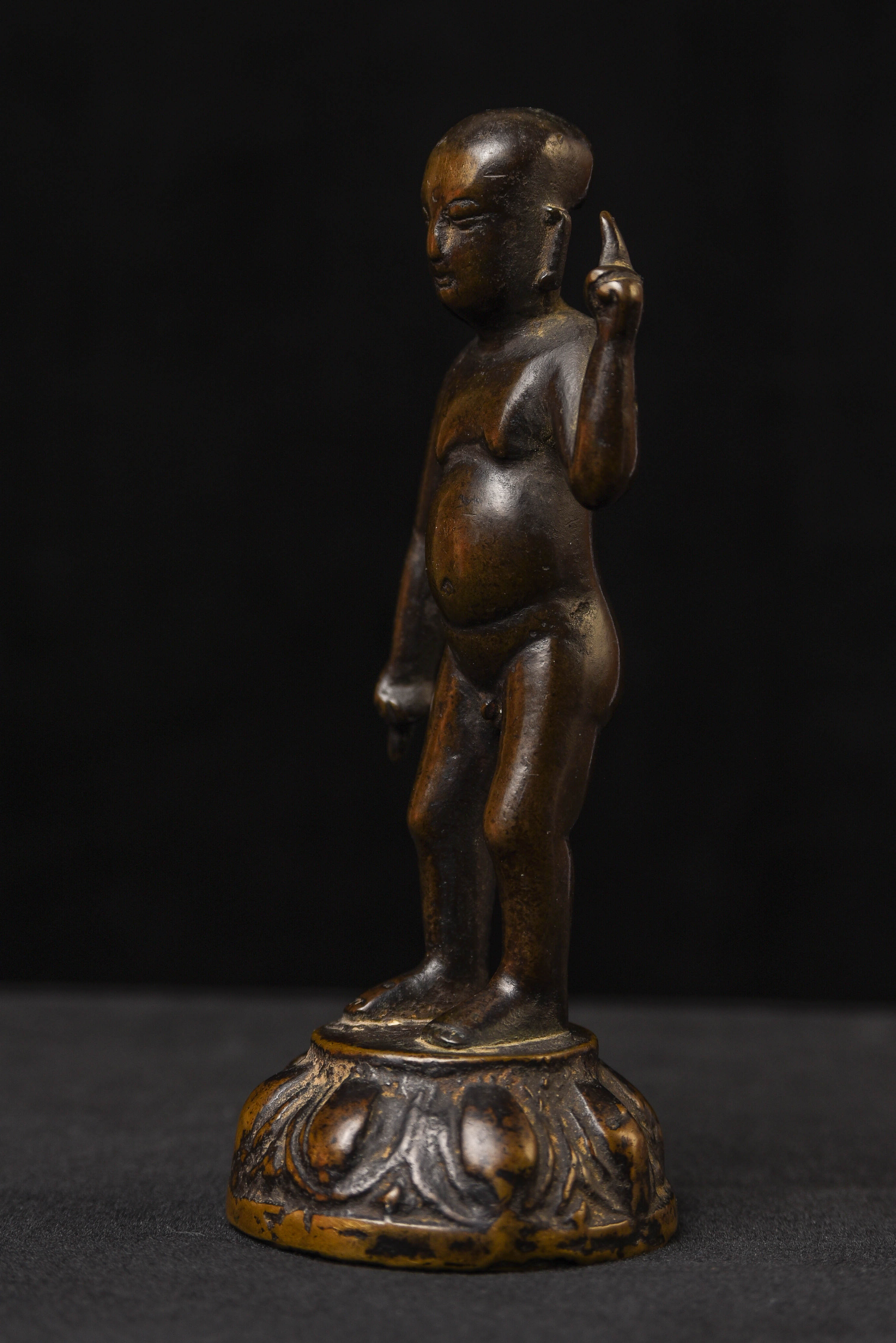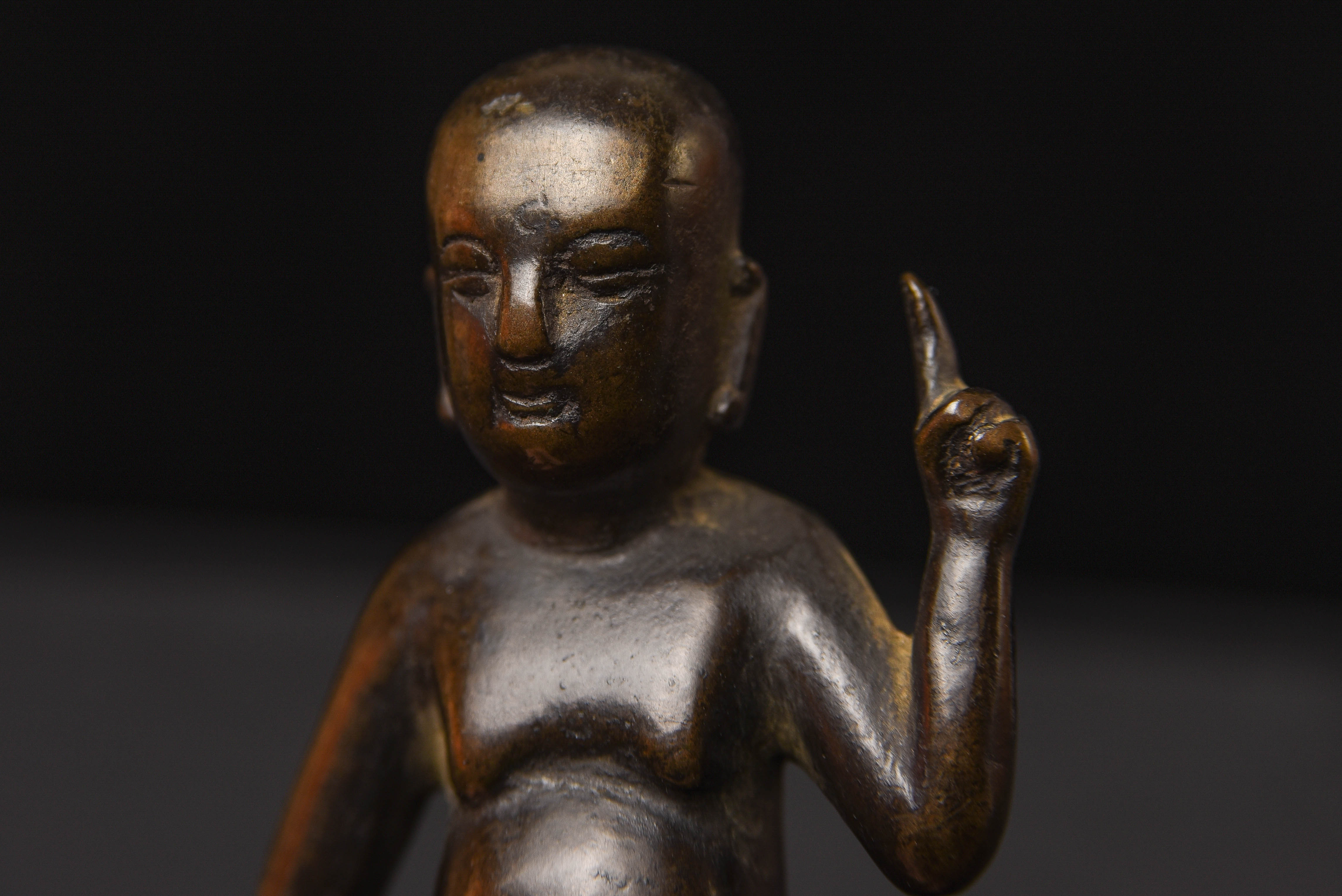 Ming to Ching Baby buddha pointing towards heaven and earth. Looks a bit like an old man's body. Certainly authentic. (5.5"H x 2.5"W - .75lbs - .340kg)