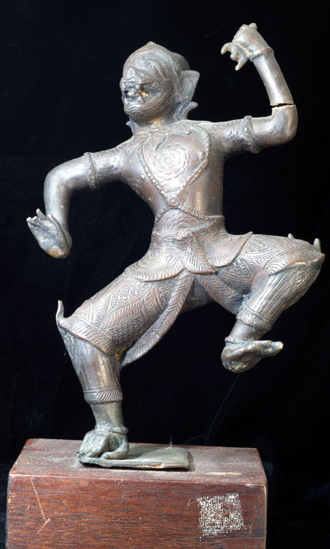 Wonderful antique bronze Hannuman approx 10 inches tall. Break to one arm. From the Ramakien story, which is the Thai version of th Ramayana.