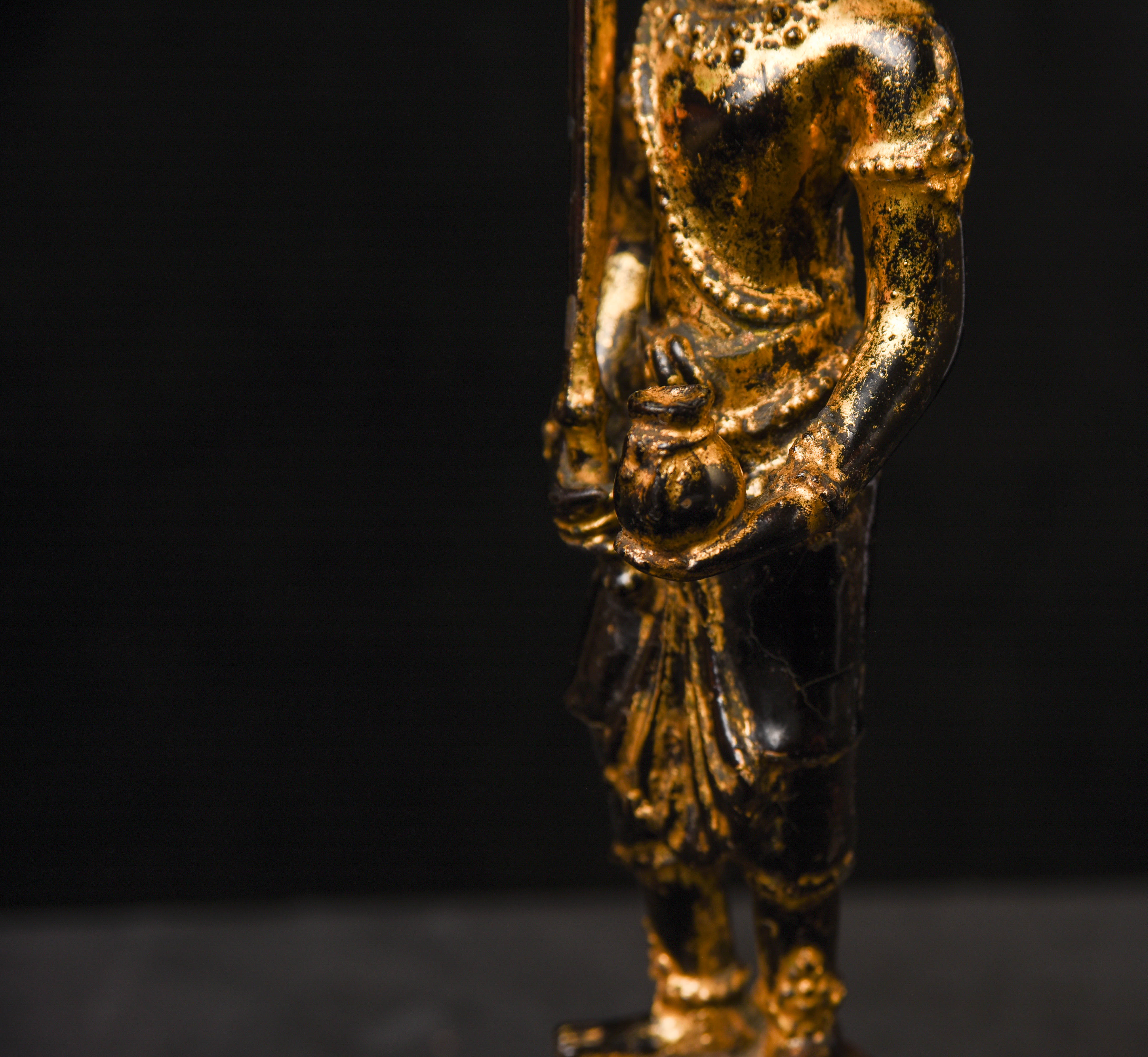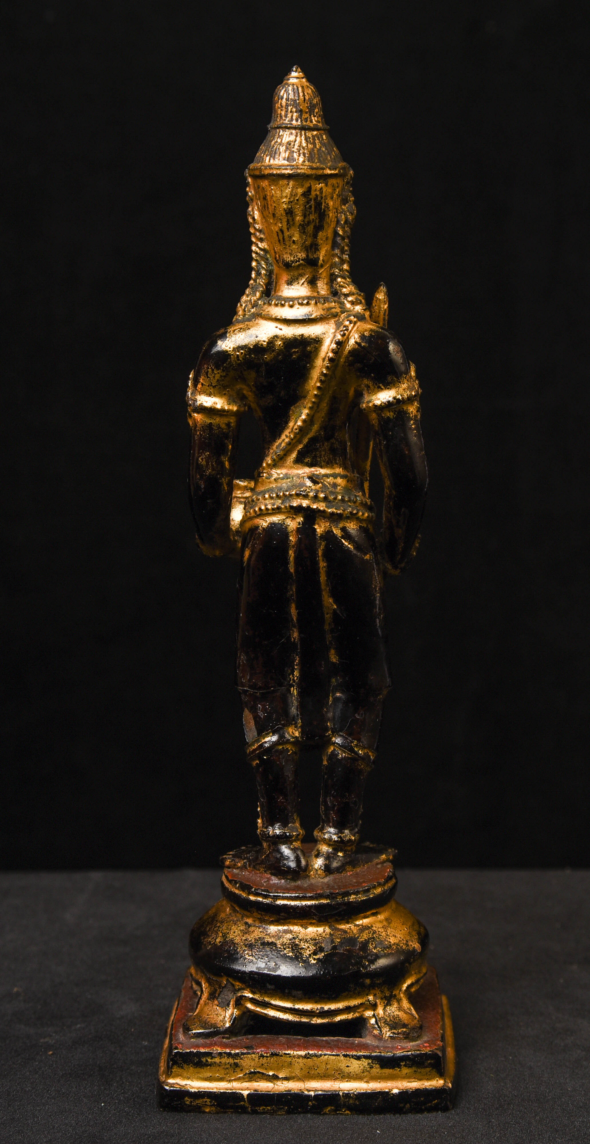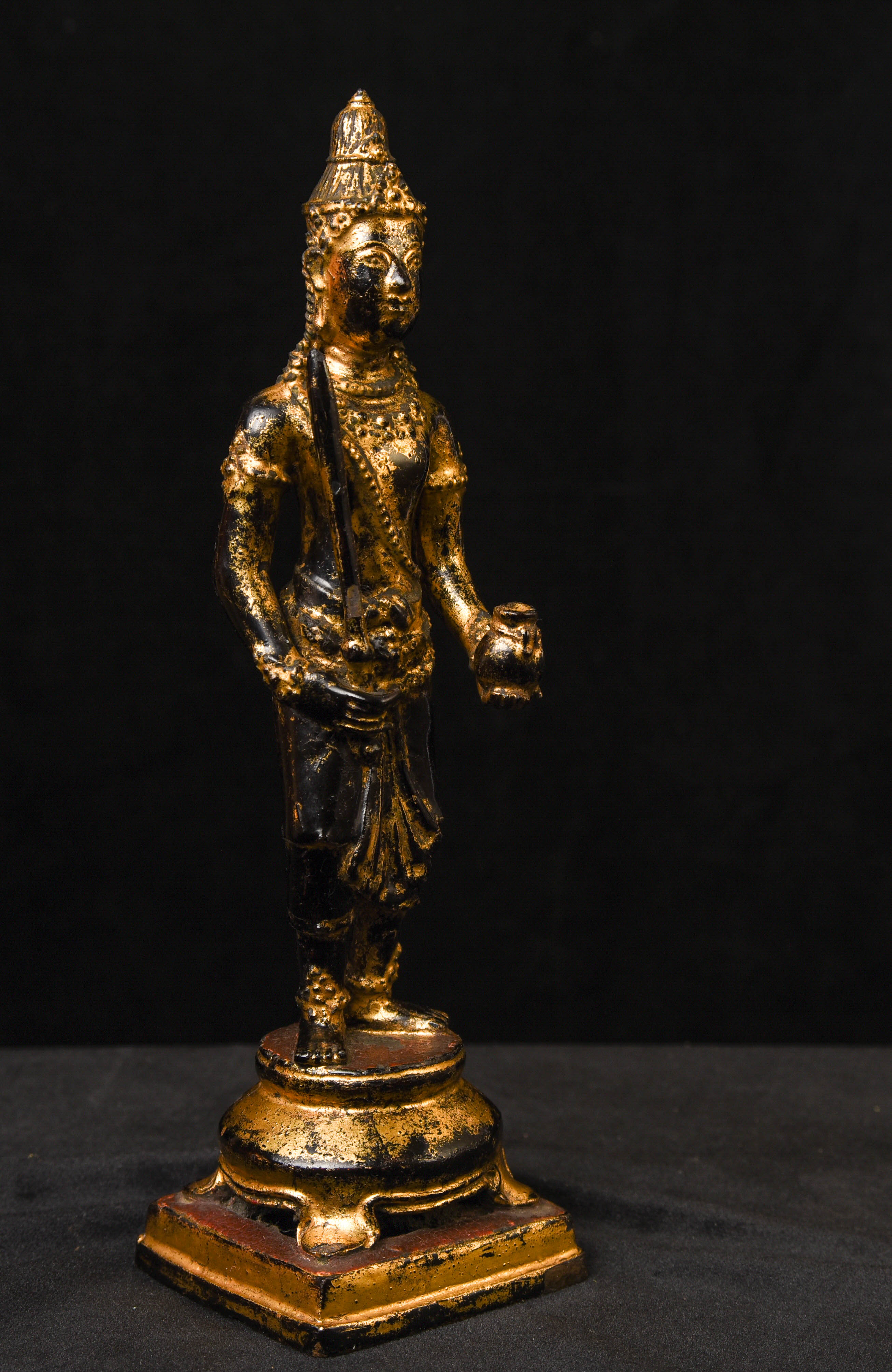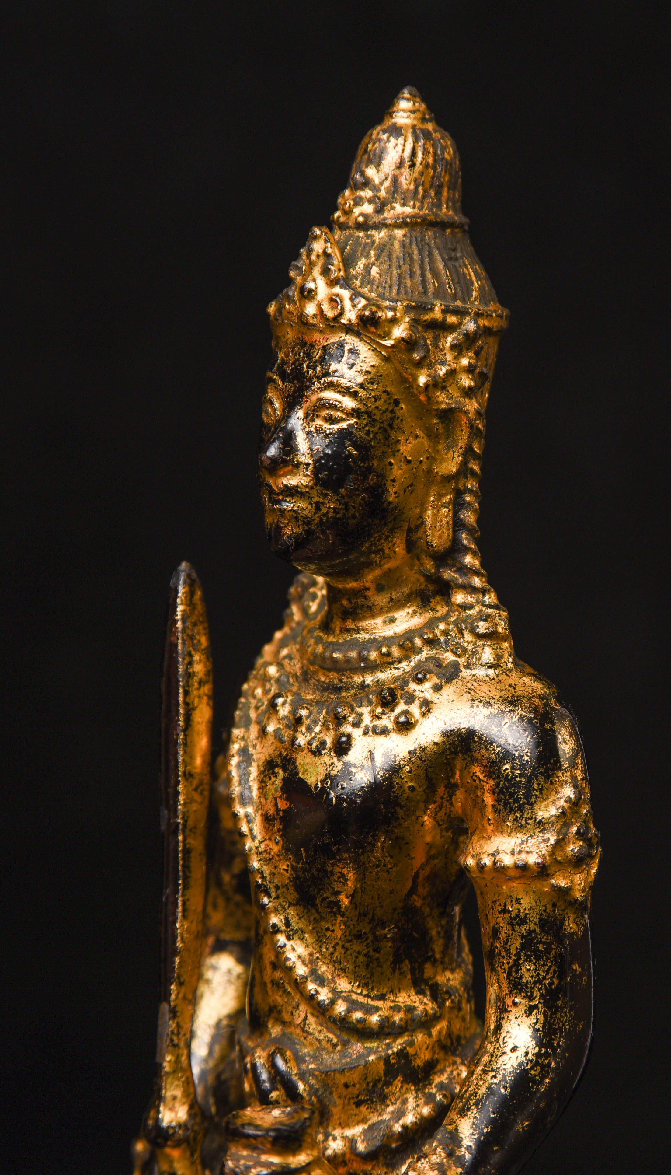 Bronze Bodhisattva with very distinctive features that look to be Dali Kingdom (12th 13th century south China Kingdom), though other features (hollow casting) plus overall look and feel point to a later dating . Extremely heavy for its size. Fine casting. ( 8.75"H x 2.625"W ) 2.19lbs