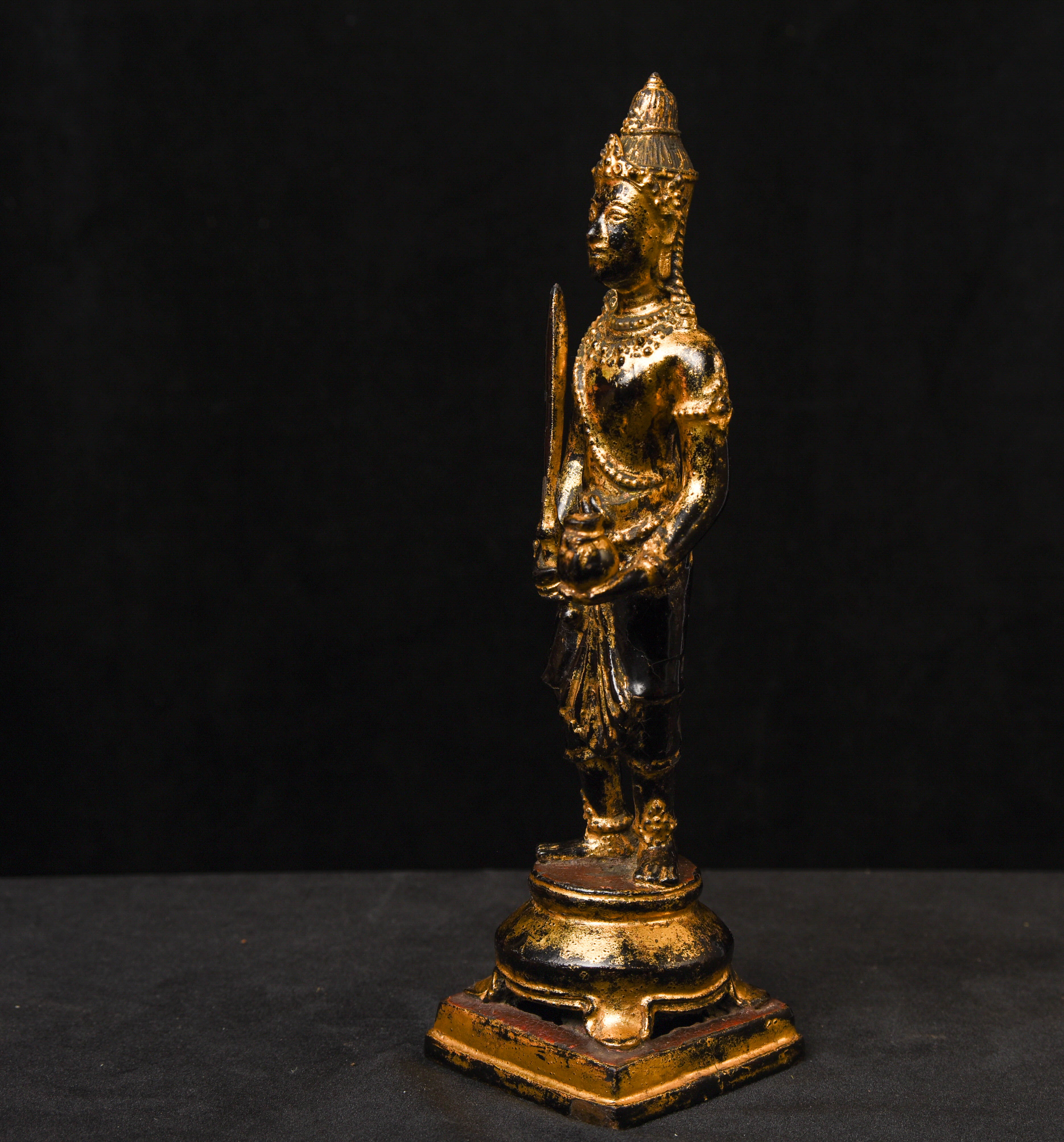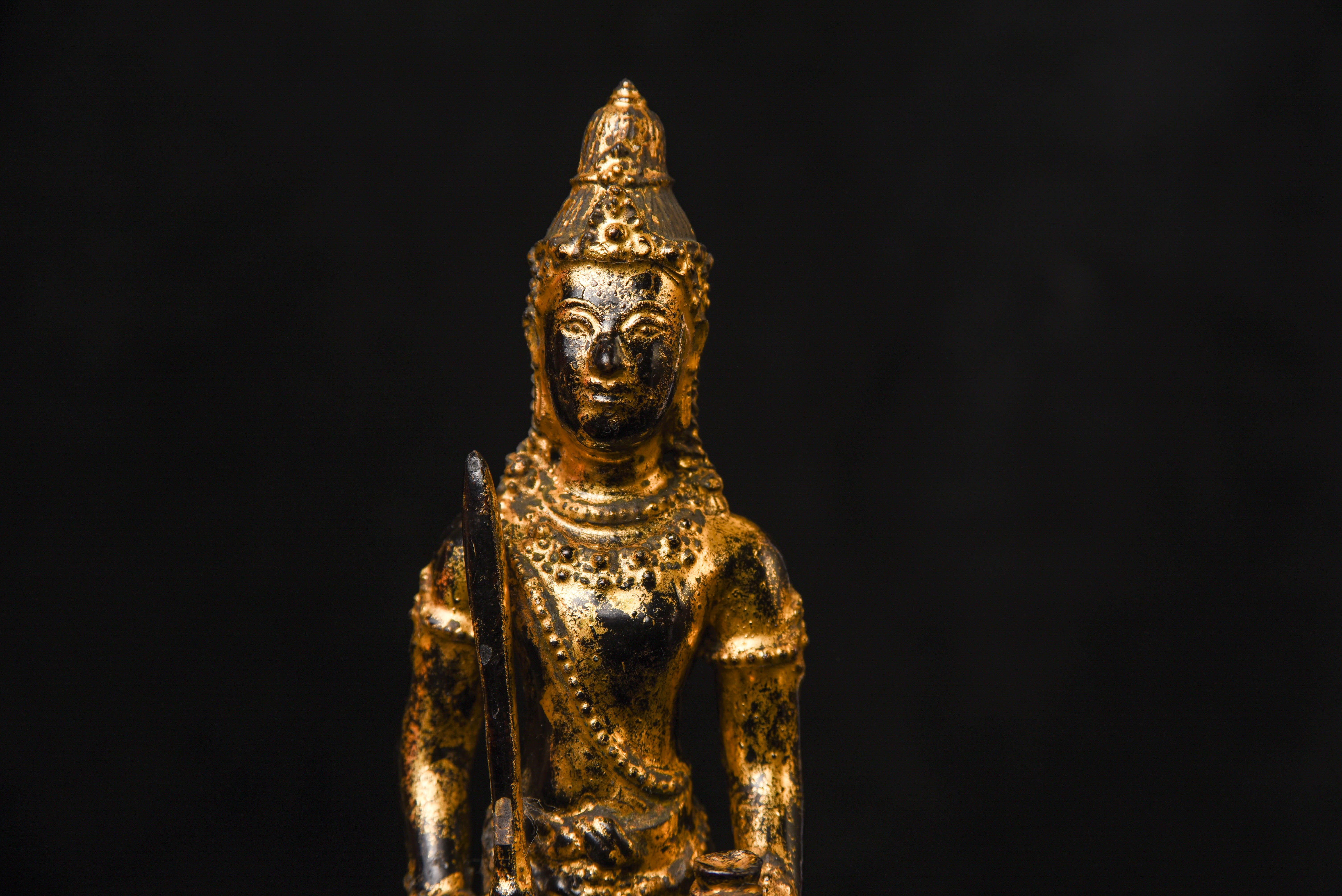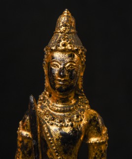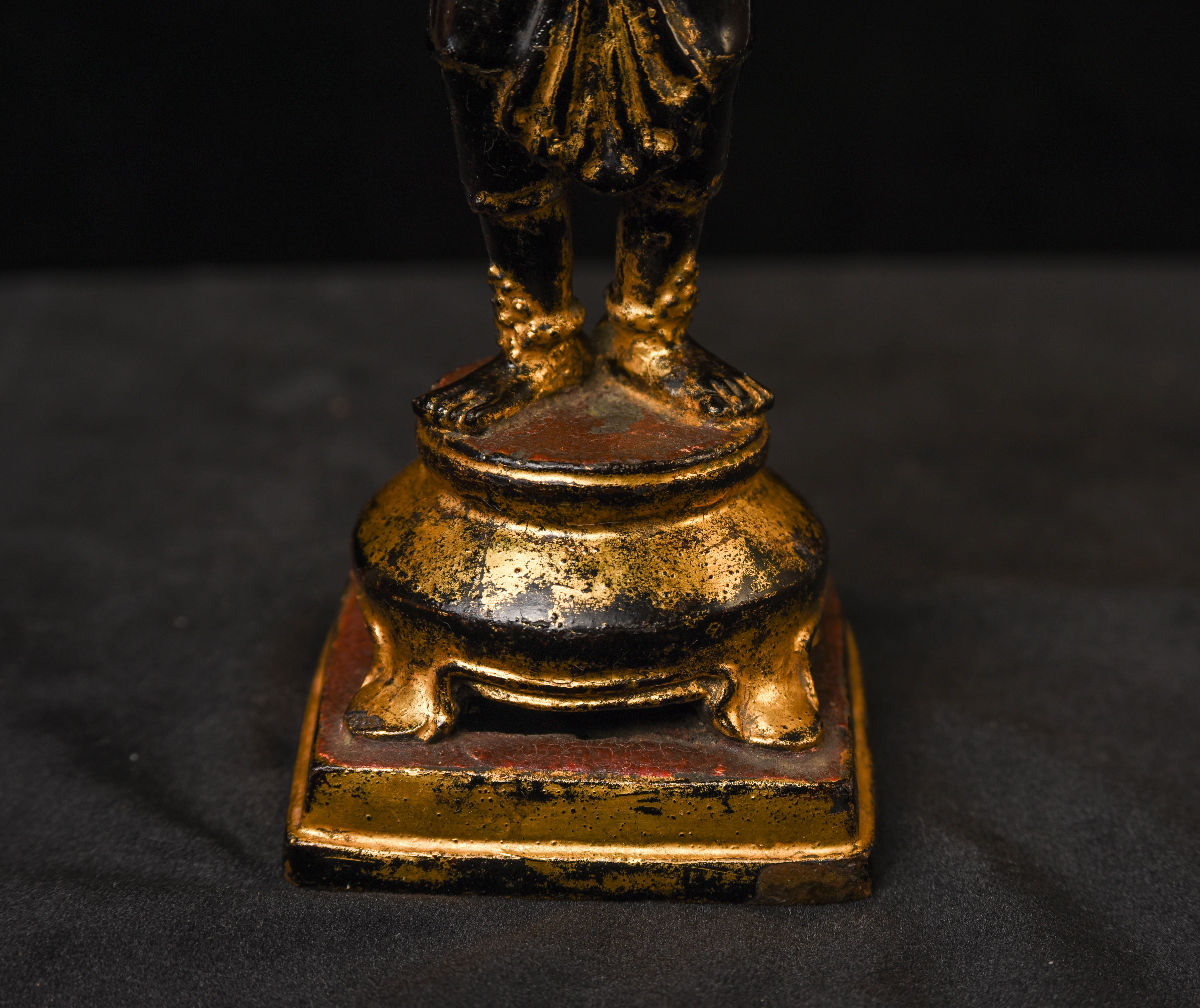 Bronze Bodhisattva with very distinctive features that look to be Dali Kingdom (12th 13th century south China Kingdom), though other features (hollow casting) plus overall look and feel point to a later dating . Extremely heavy for its size. Fine casting. ( 8.75"H x 2.625"W ) 2.19lbs