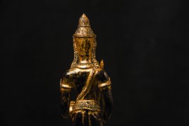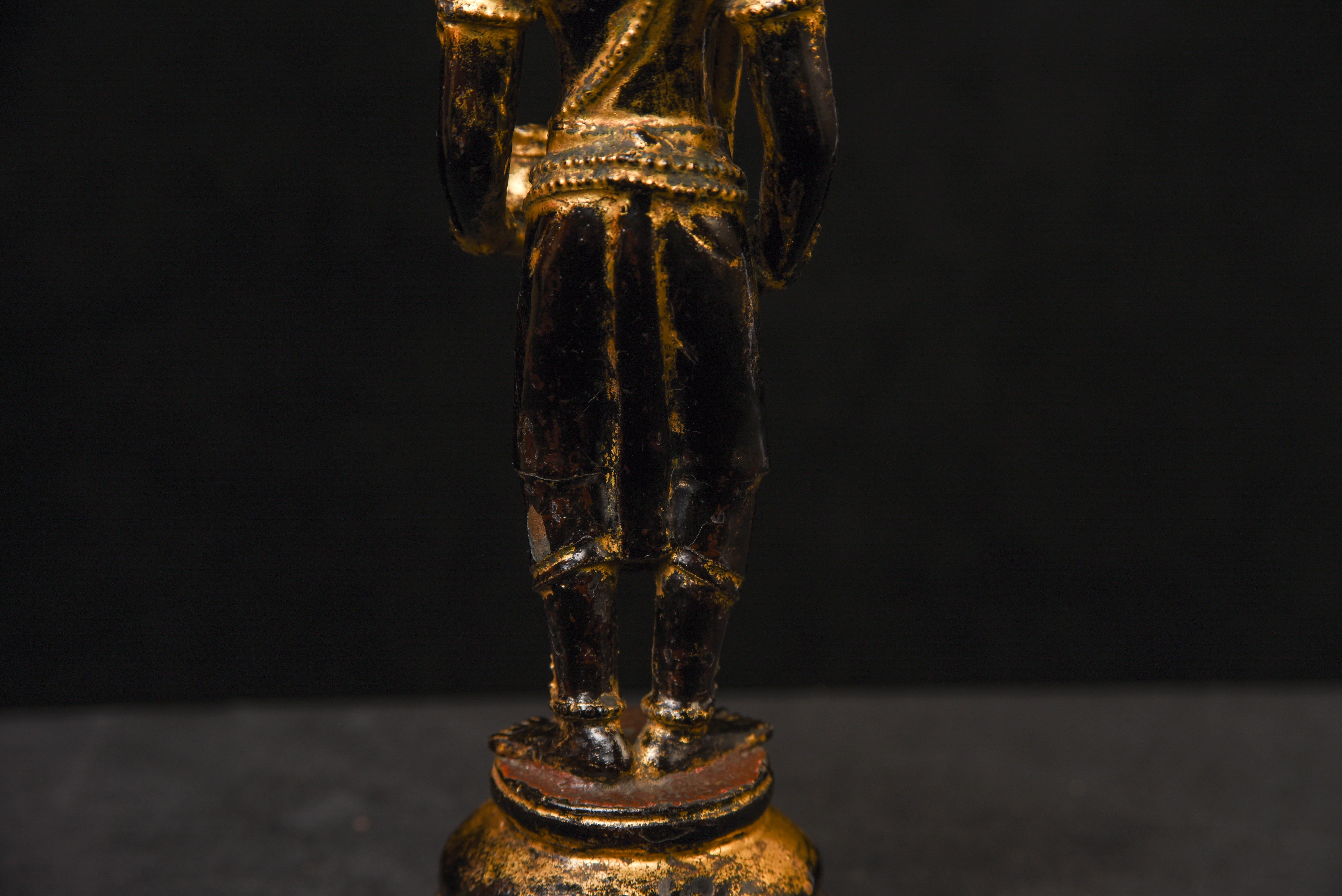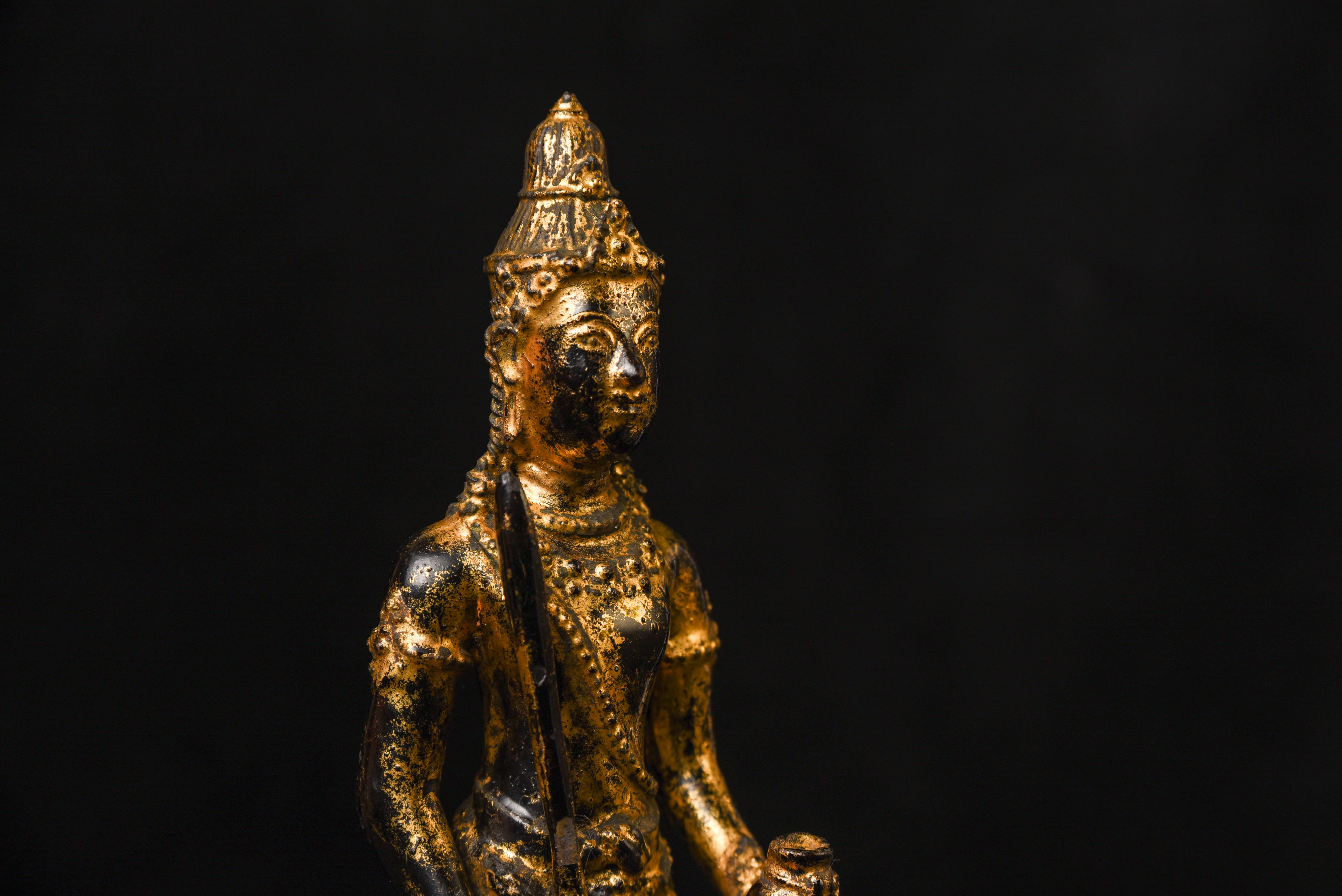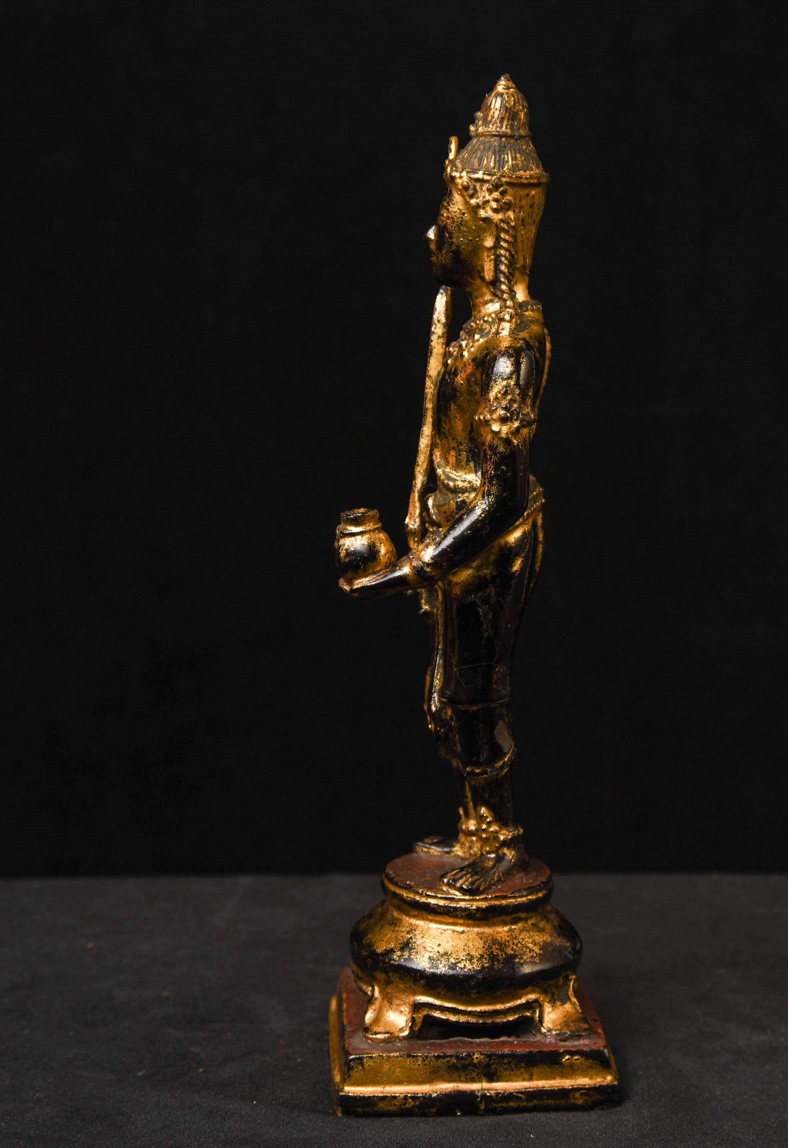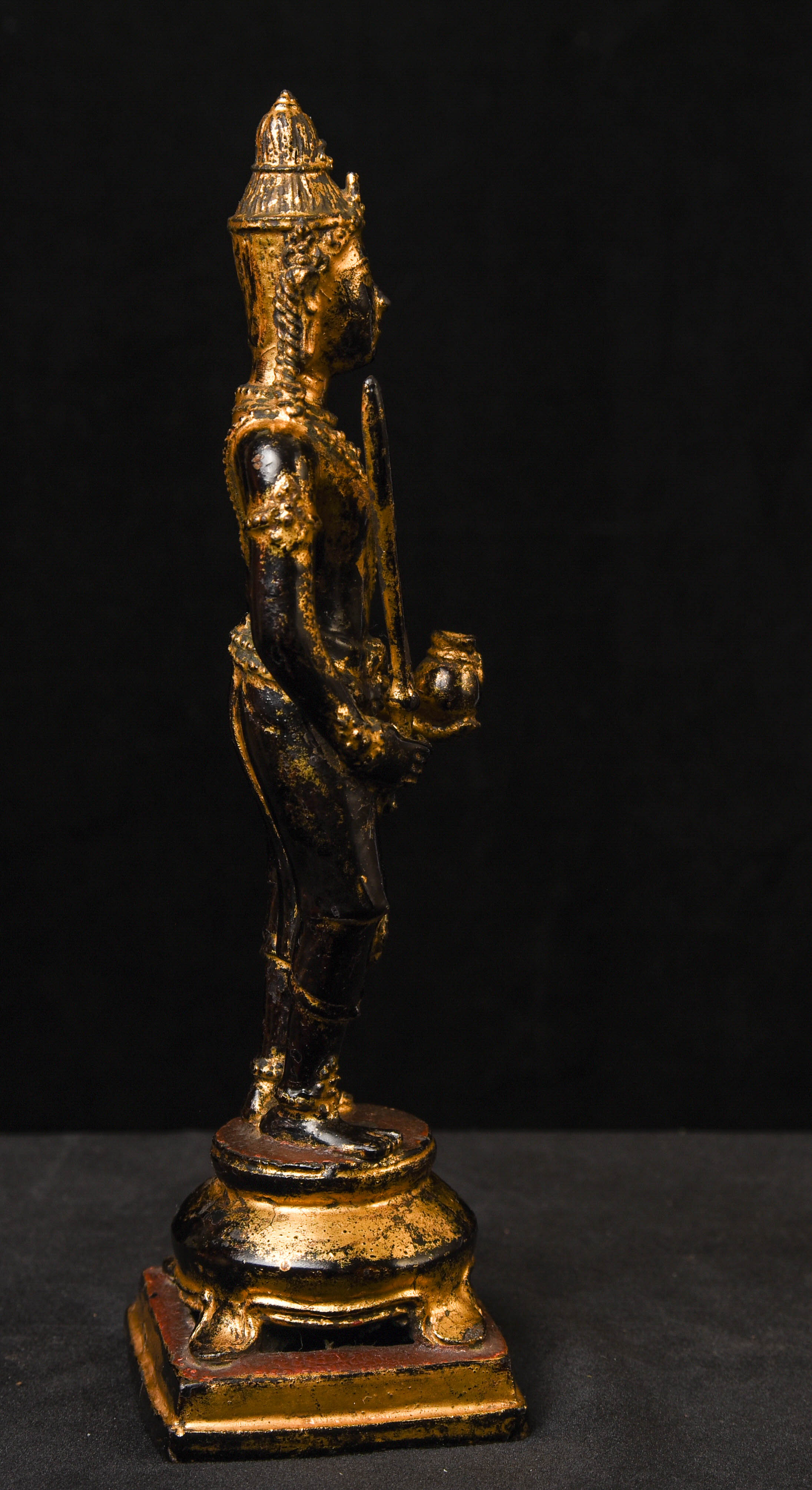 Bronze Bodhisattva with very distinctive features that look to be Dali Kingdom (12th 13th century south China Kingdom), though other features (hollow casting) plus overall look and feel point to a later dating . Extremely heavy for its size. Fine casting. ( 8.75"H x 2.625"W ) 2.19lbs