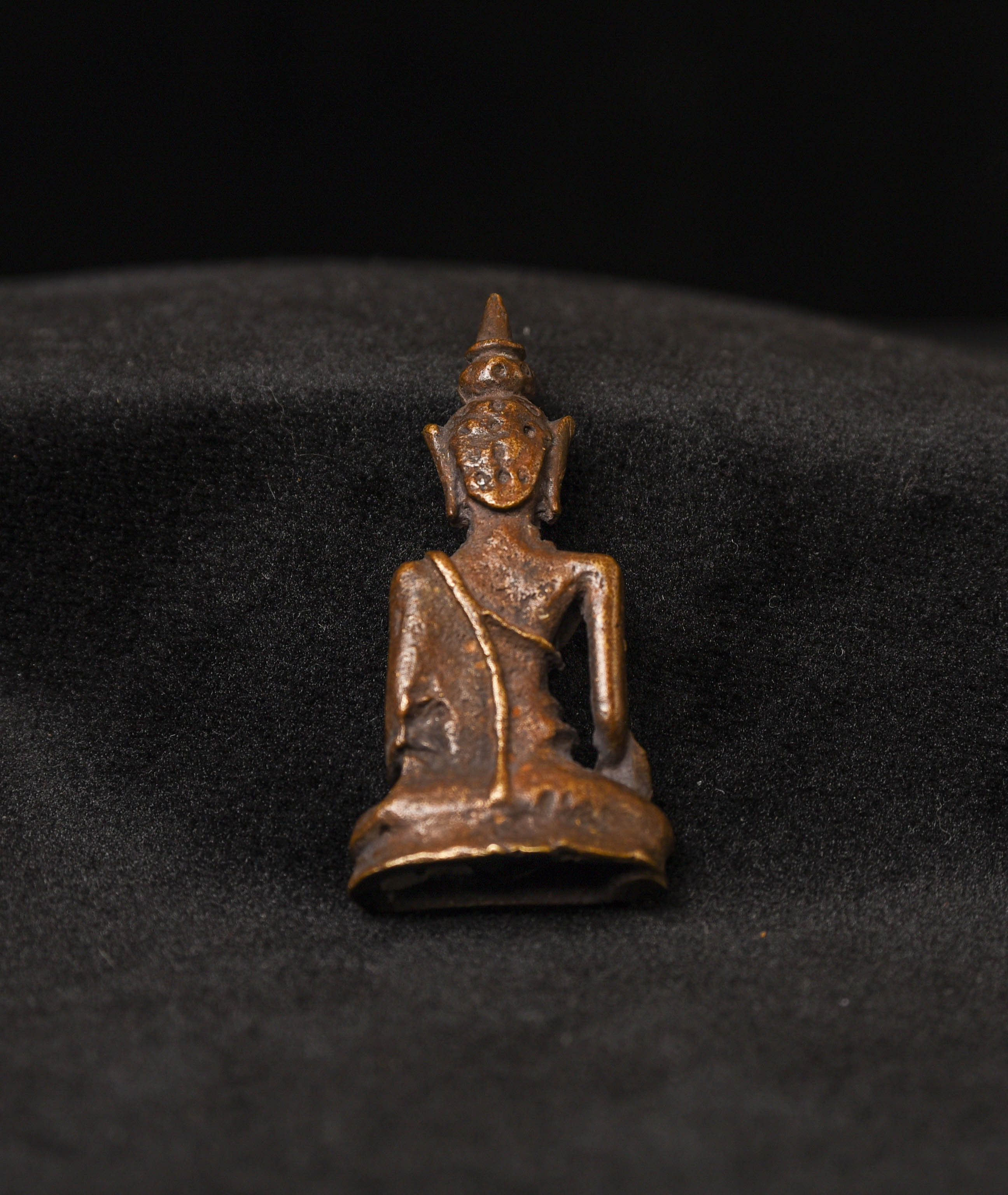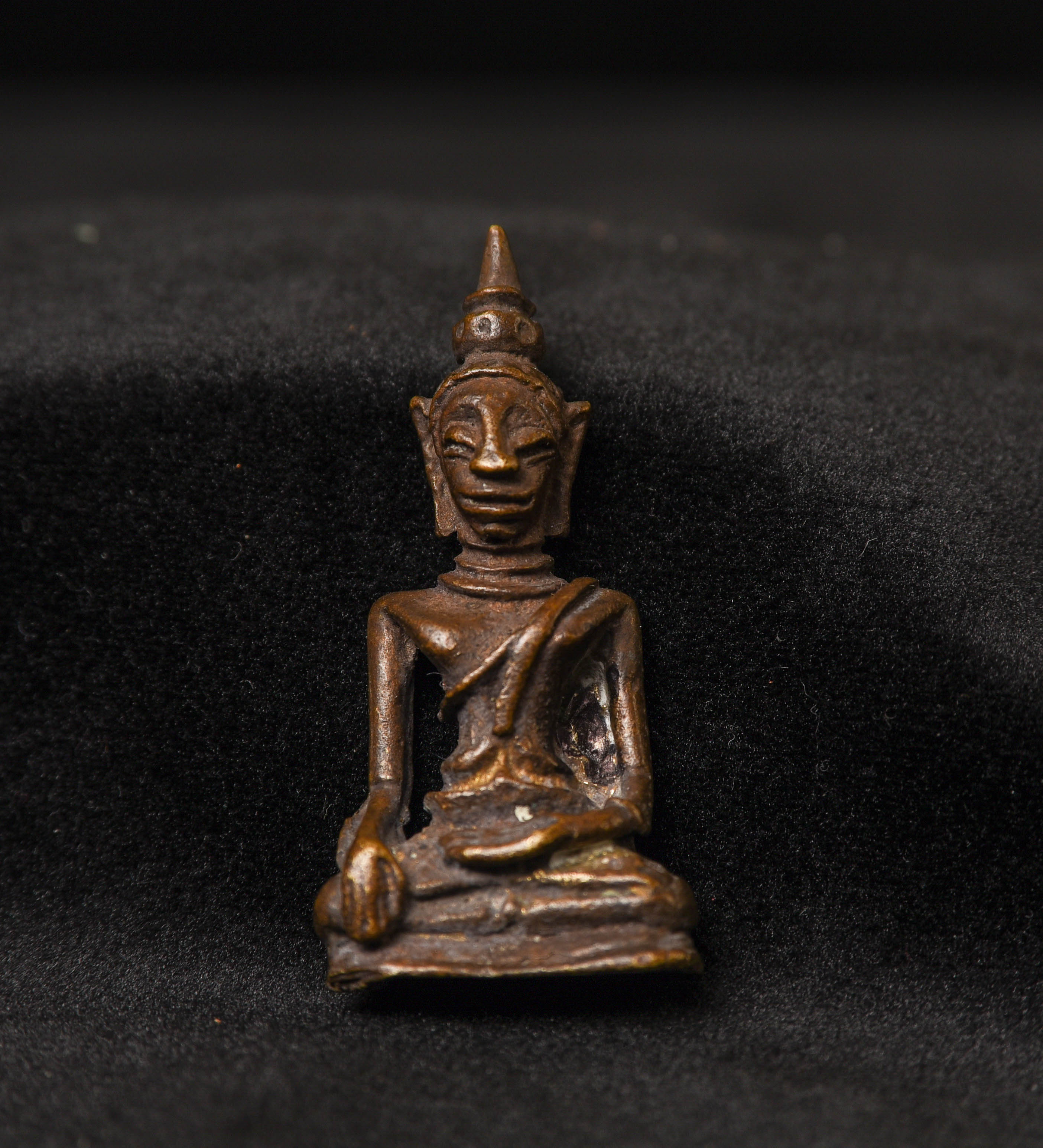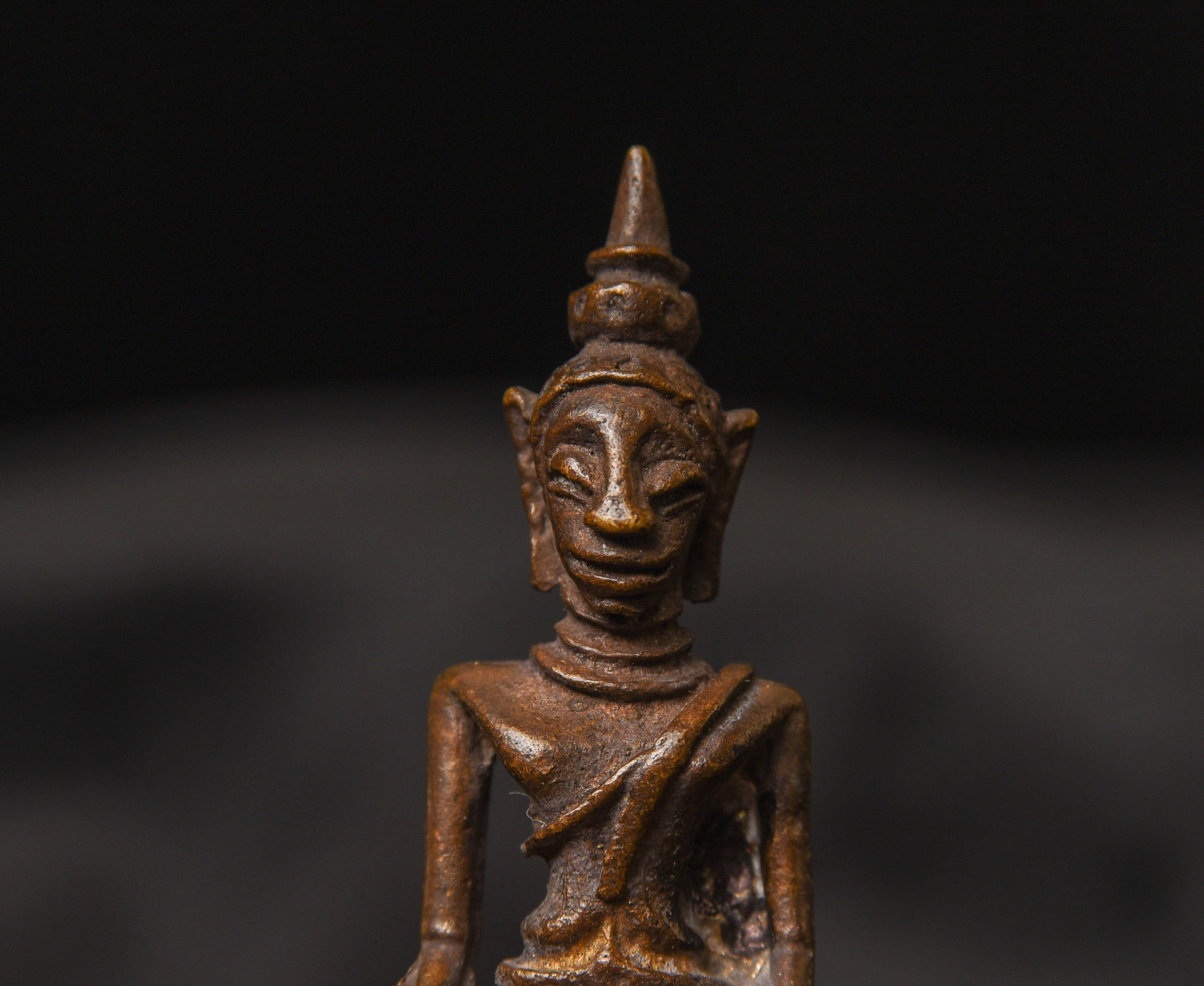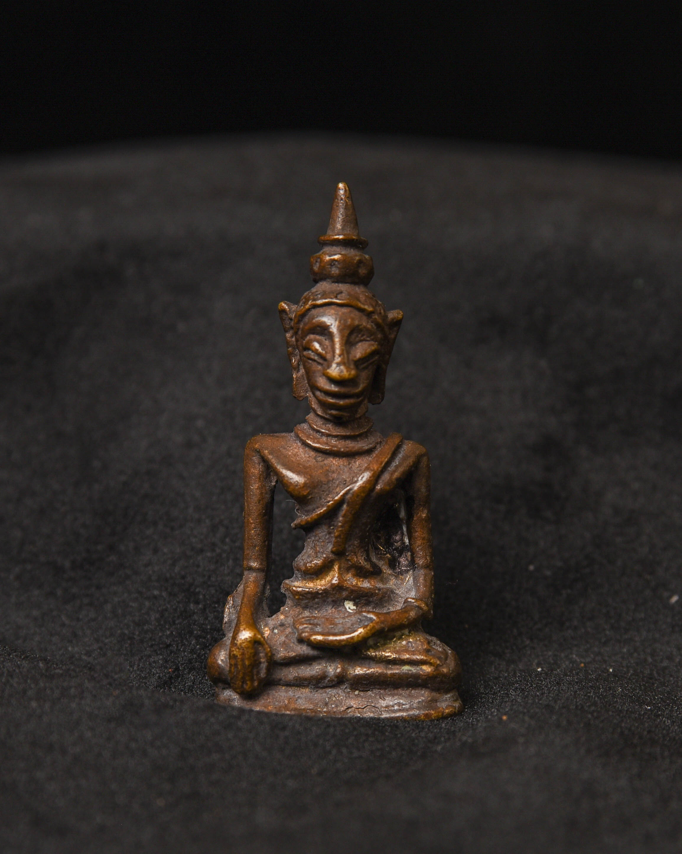 Vintage solid-cast miniature Solid-cast Laos Buddha. ( 1.625"H x 0.875"W )