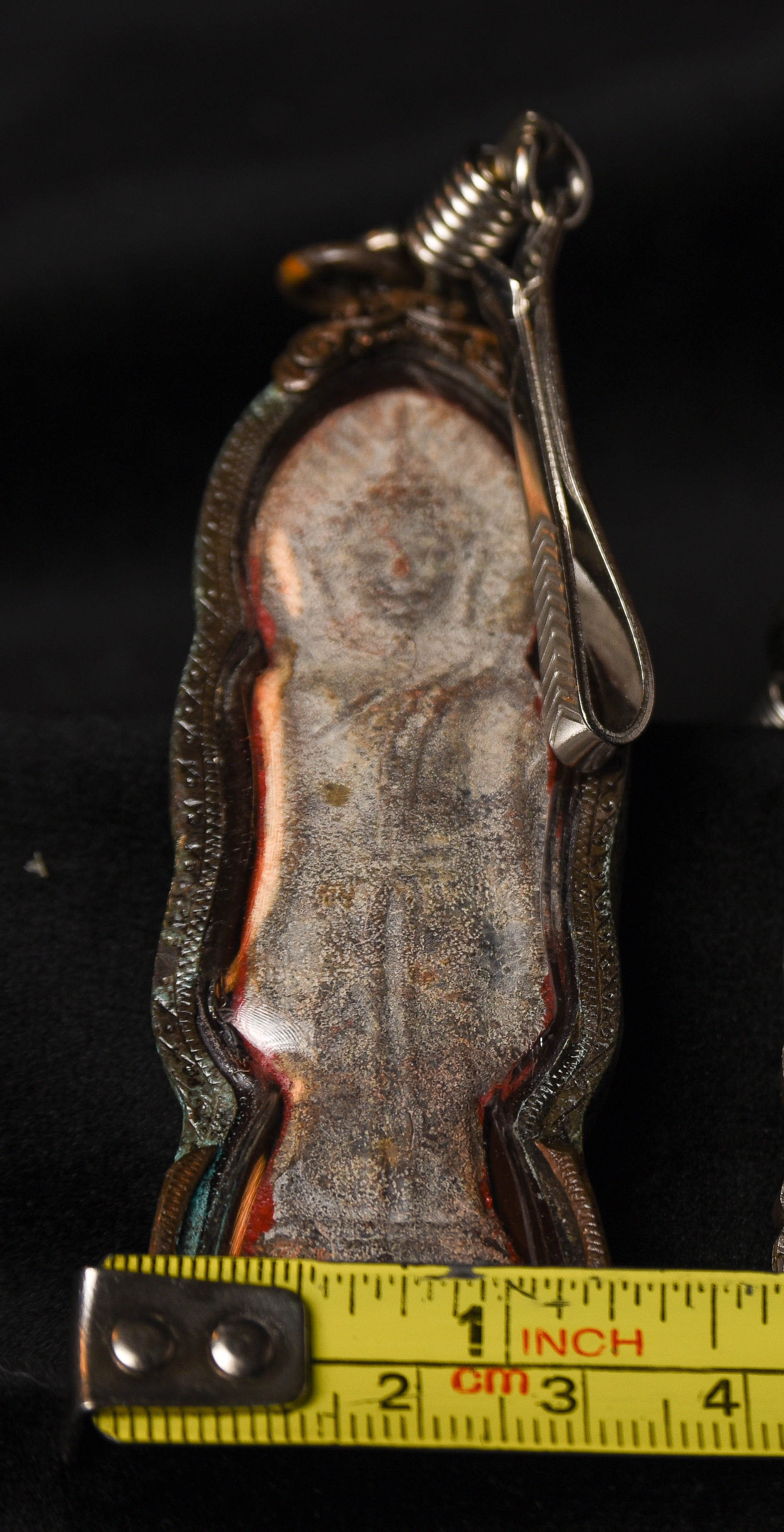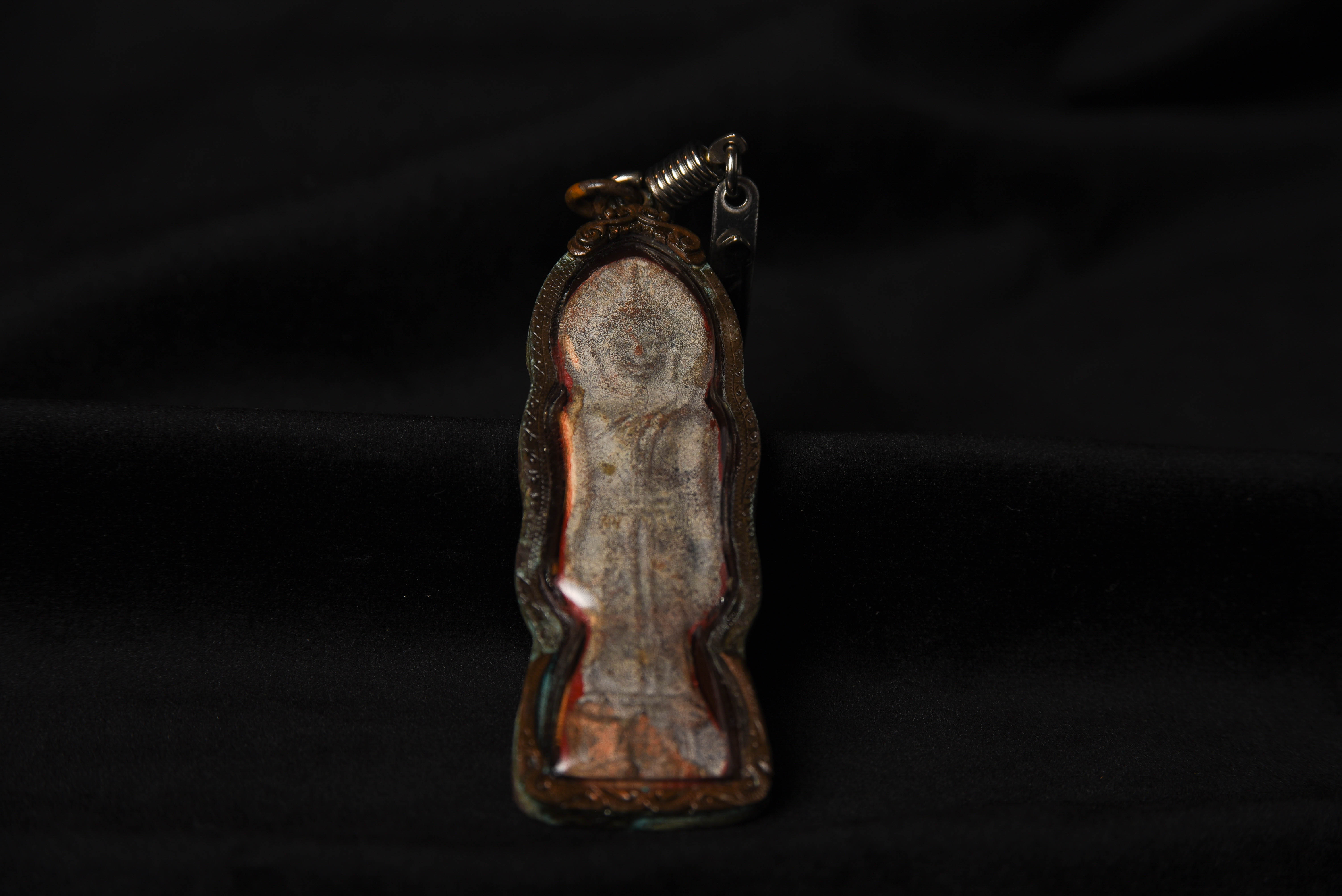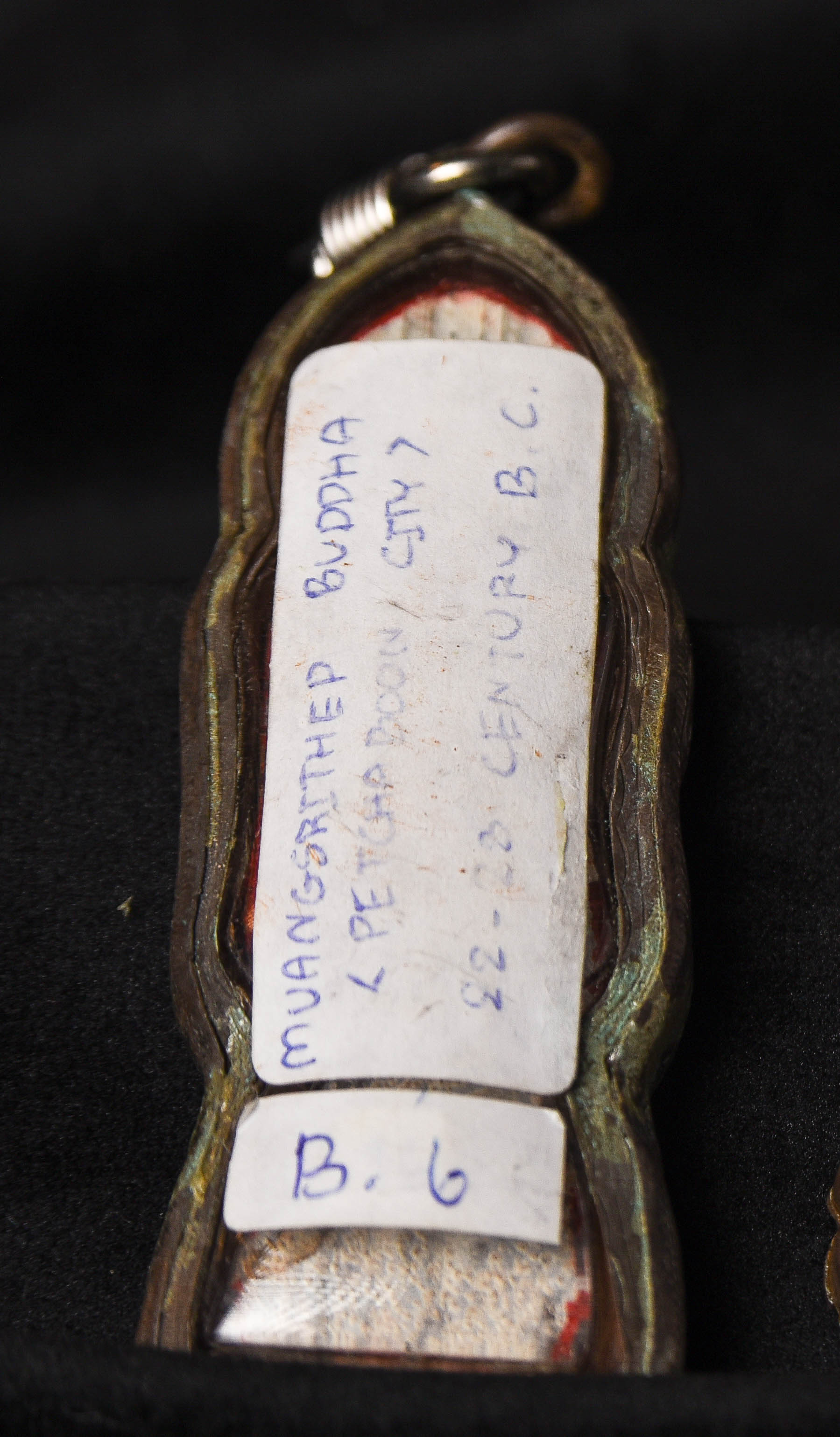 The back of this one has a sticker that says it is from Phetchaboon City In Thailand in the 22nd / 23rd century. We are currently in the year 2564 in the Buddhist Calendar, So this amulet is 250+ years old. they were collected in the 1990s, and I had assistance getting a number of related pieces identified and verified by friends and business connections I had at that time. Some, like this one oh, I bought a number of examples that were excavated together and had custom-made amulet cases made for some of them. most of my amulets were sold in the late 1990s and early 2000s, but as I prepare for retirement and I go through everything, I'm finding small treasures like this one.