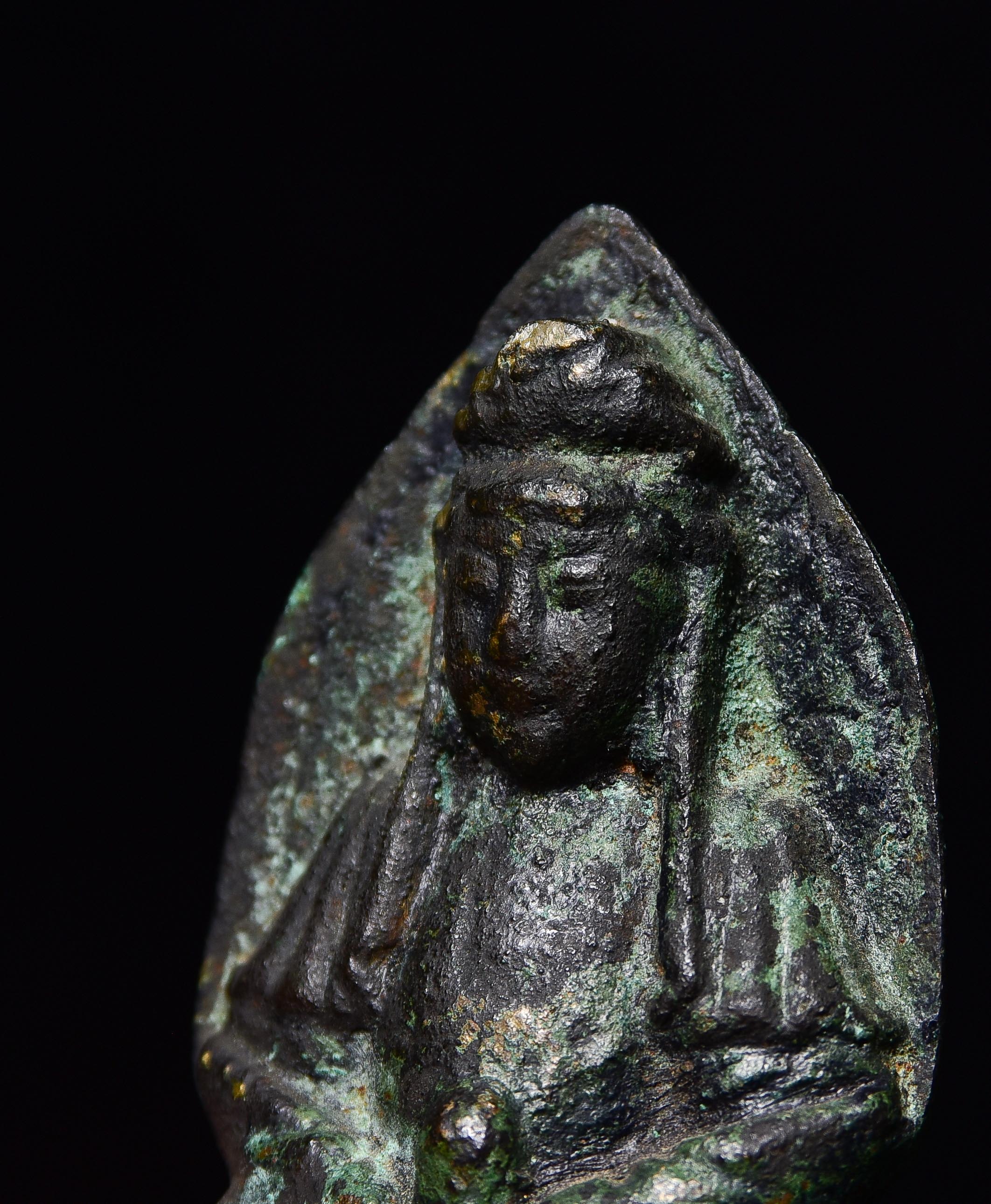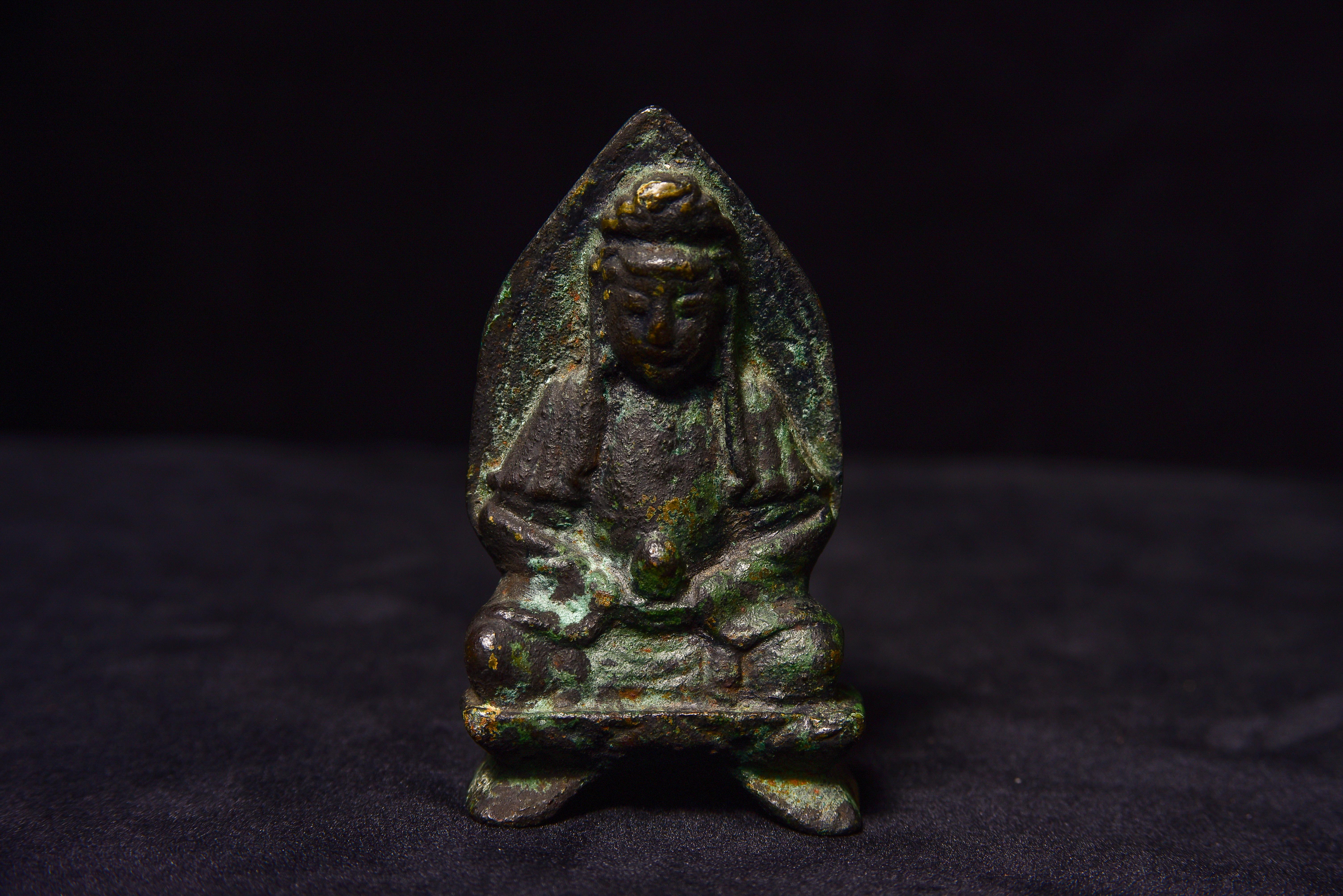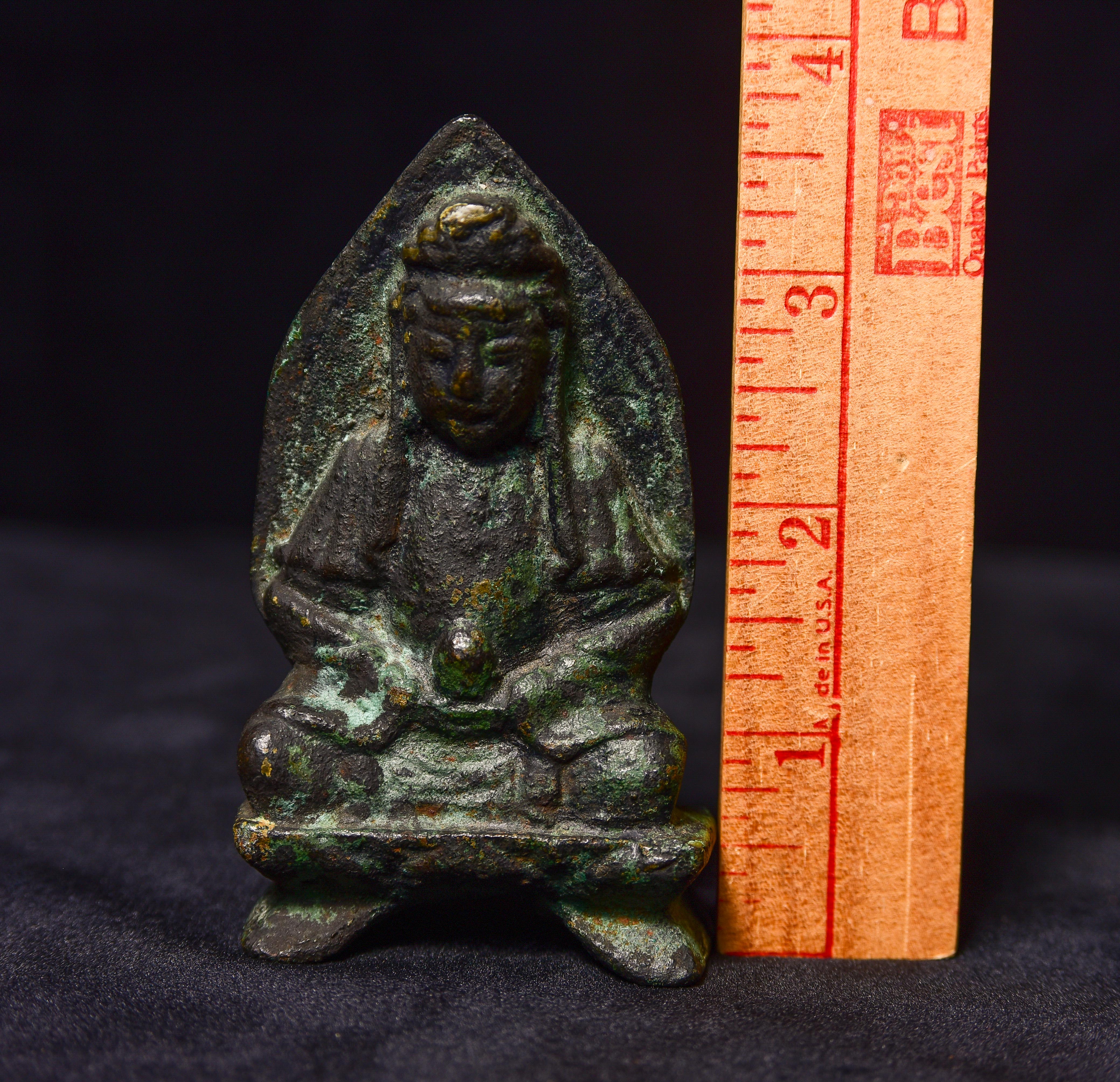 A nice early 17th-19thC Japanese bronze Edo Bodhisattva. Measures 3.5" tall,2" wide, .75" deep
