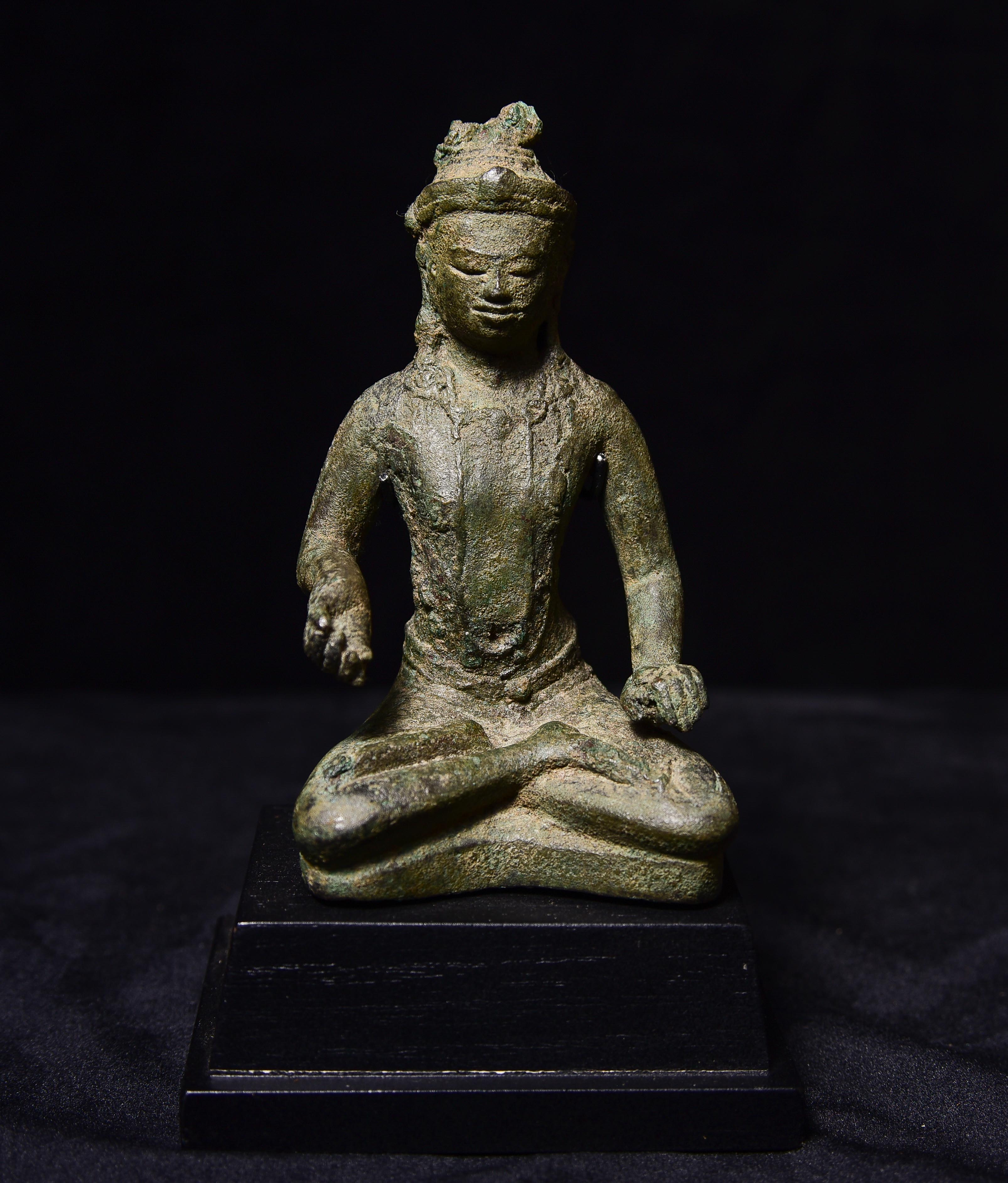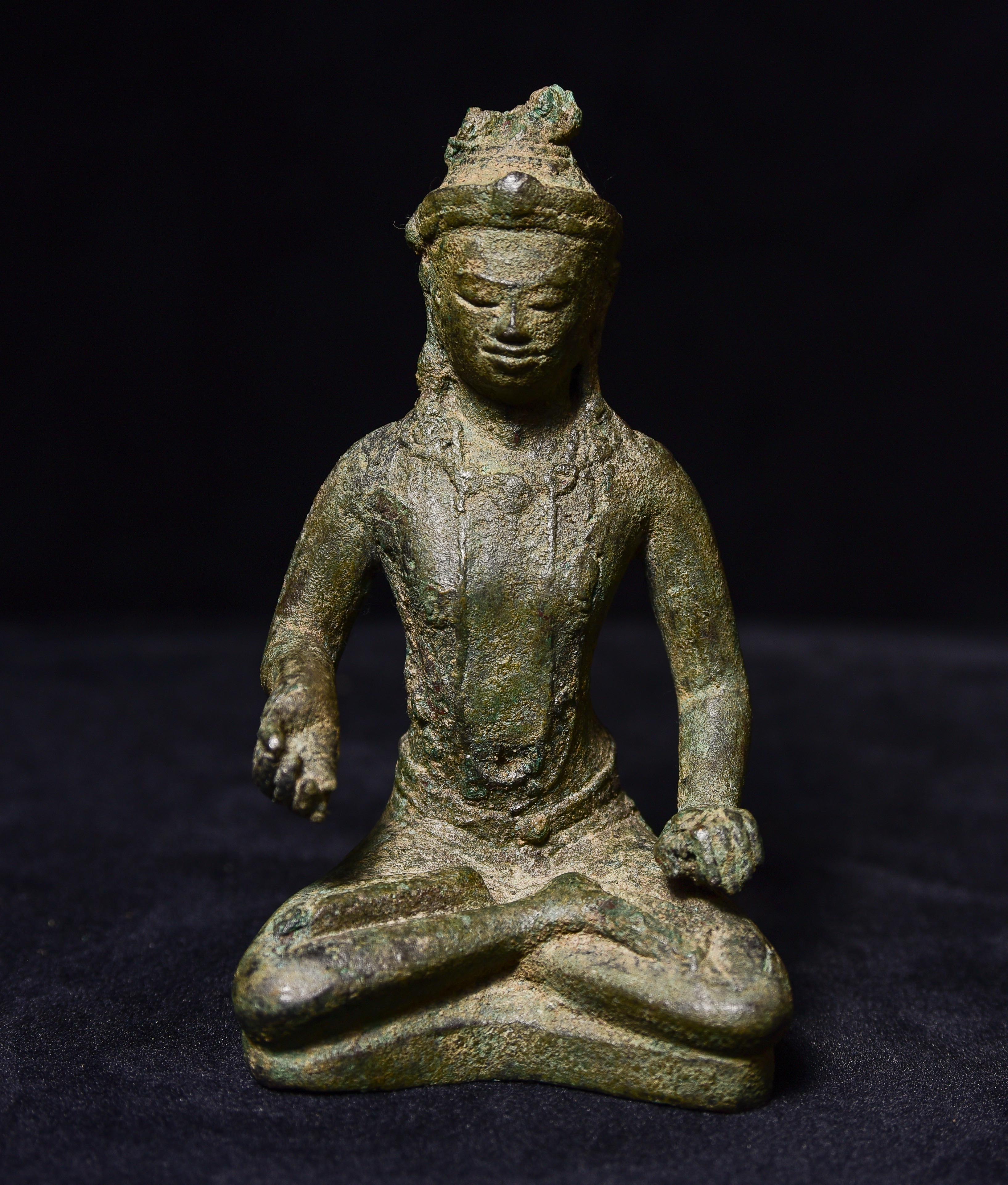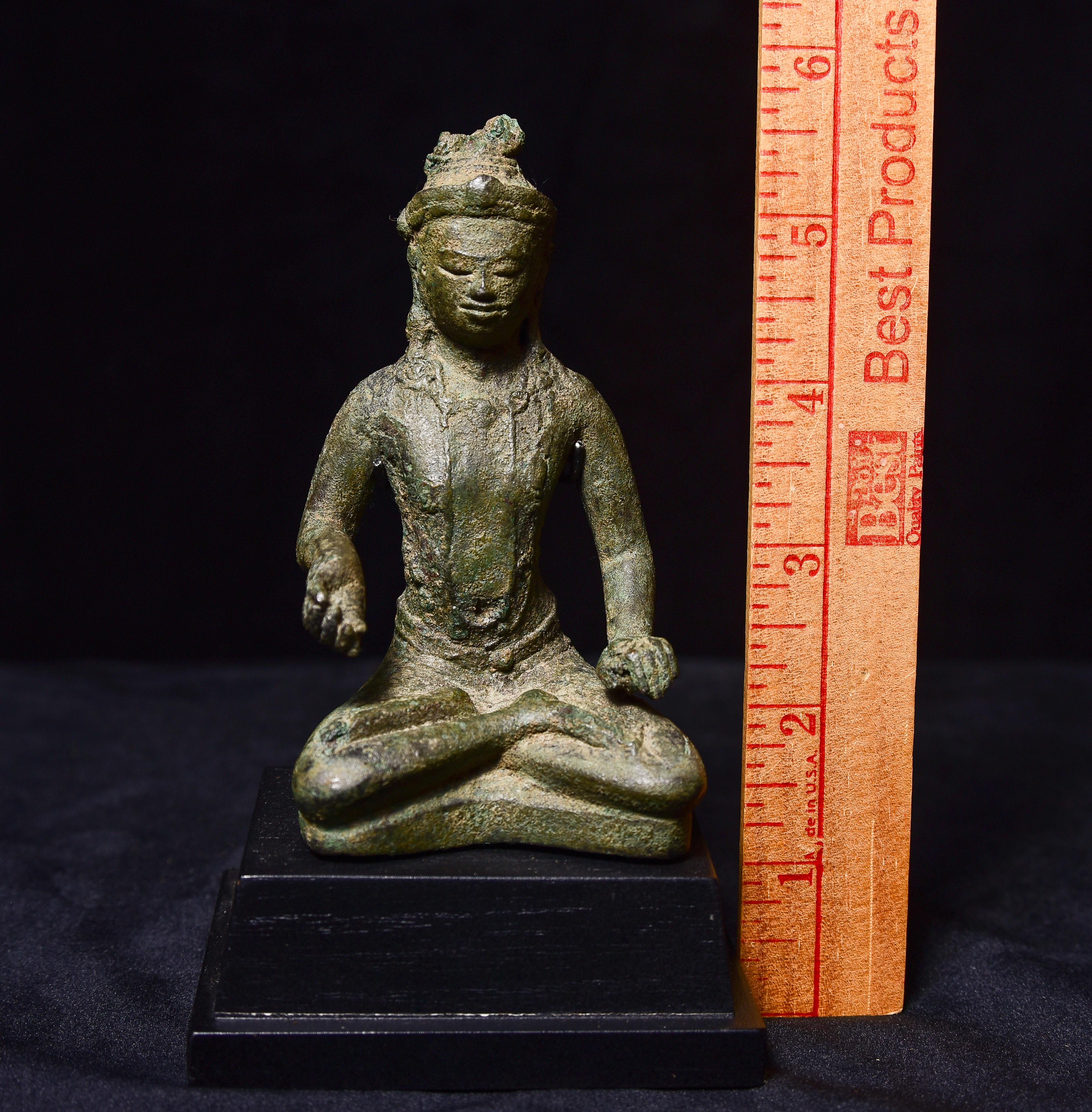 11th/12thC. Fantastic, early, southern Thai Buddha--quite uncommon and lovely. Solid cast. Far rarer than its Khmer counterparts. Sits about 4 1/8 inches tall.