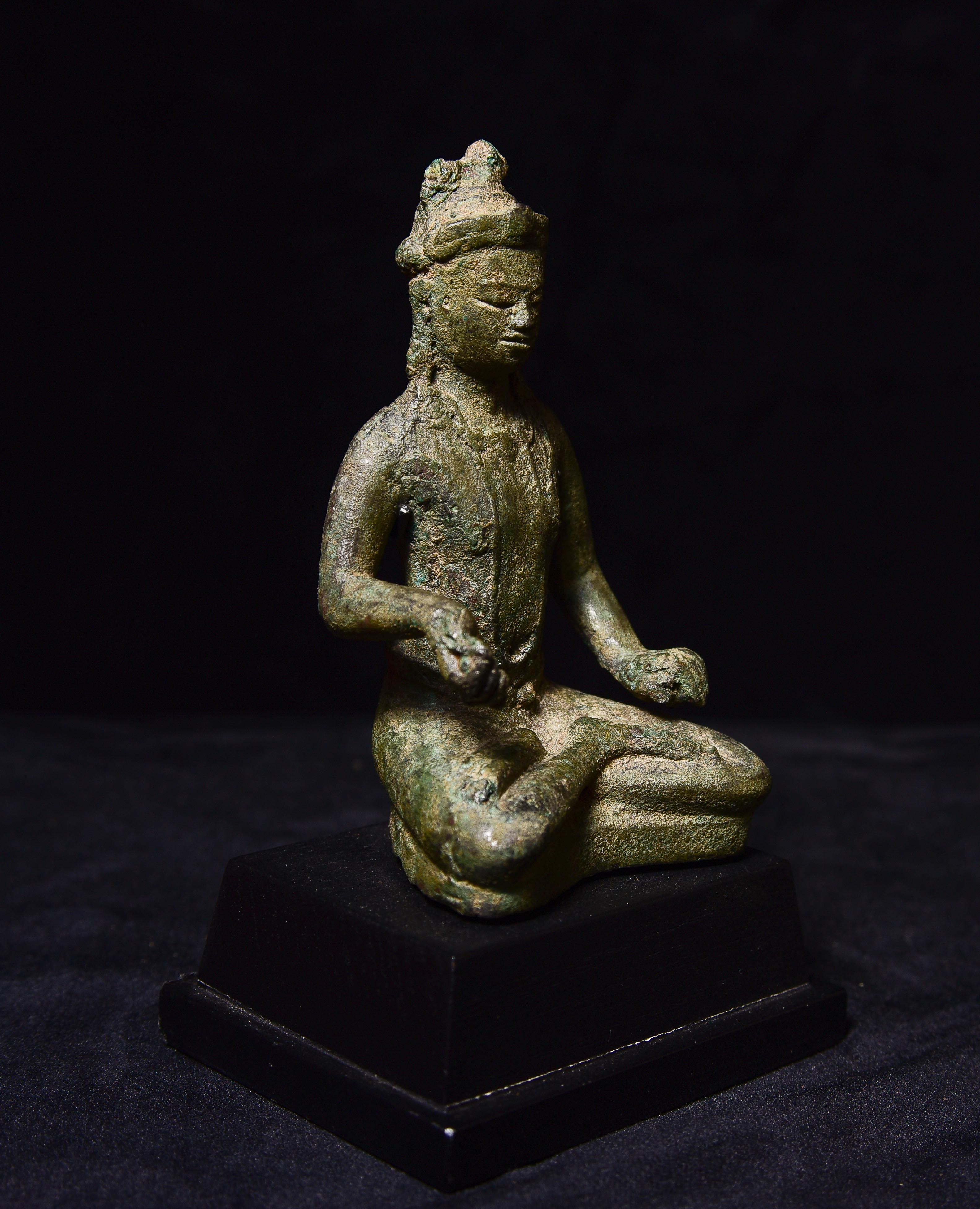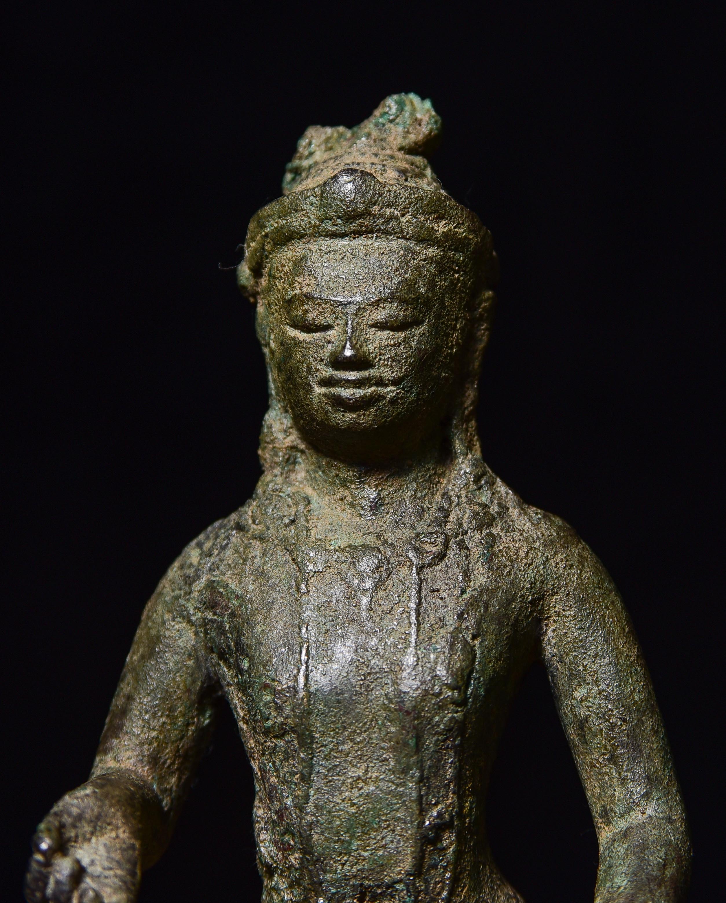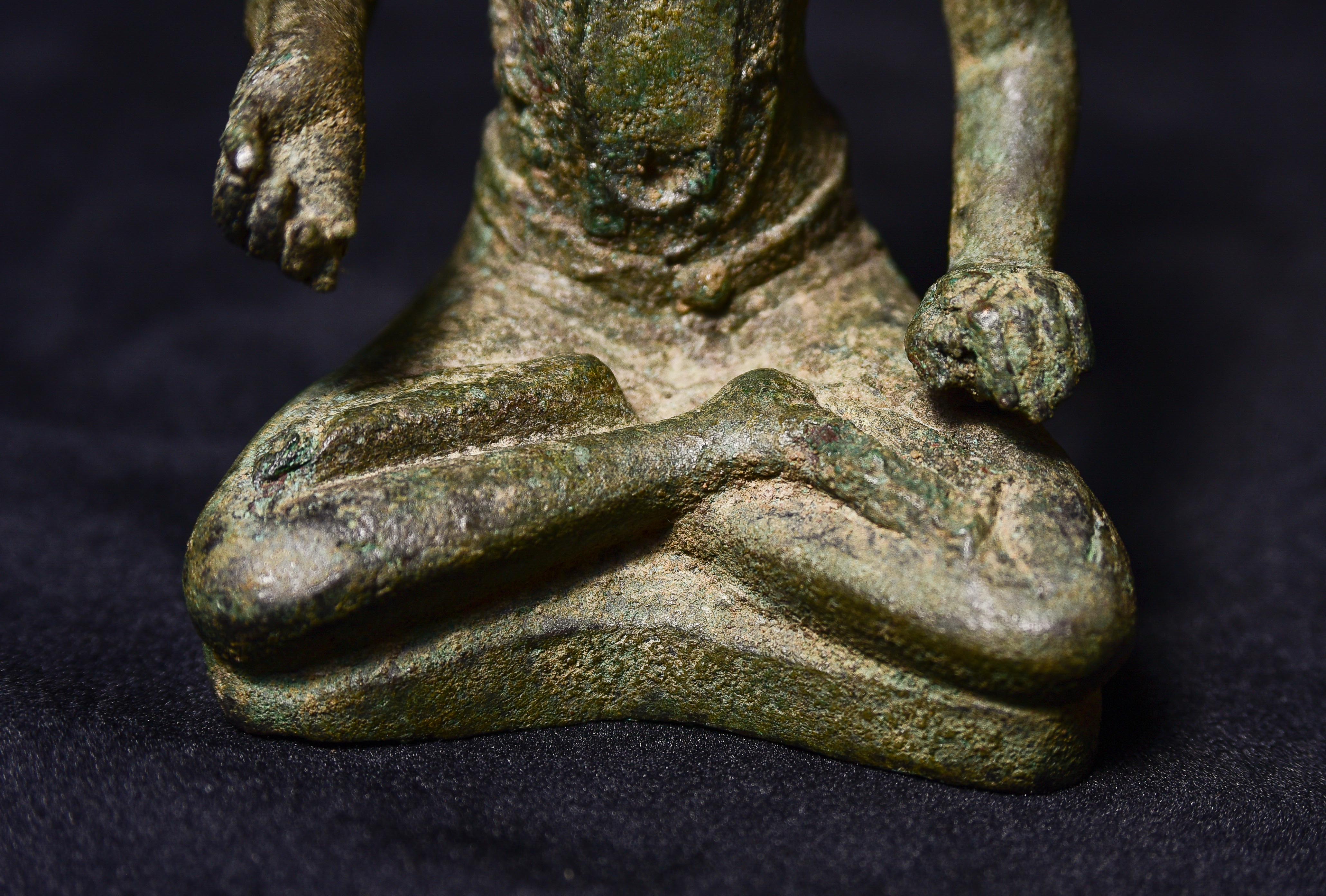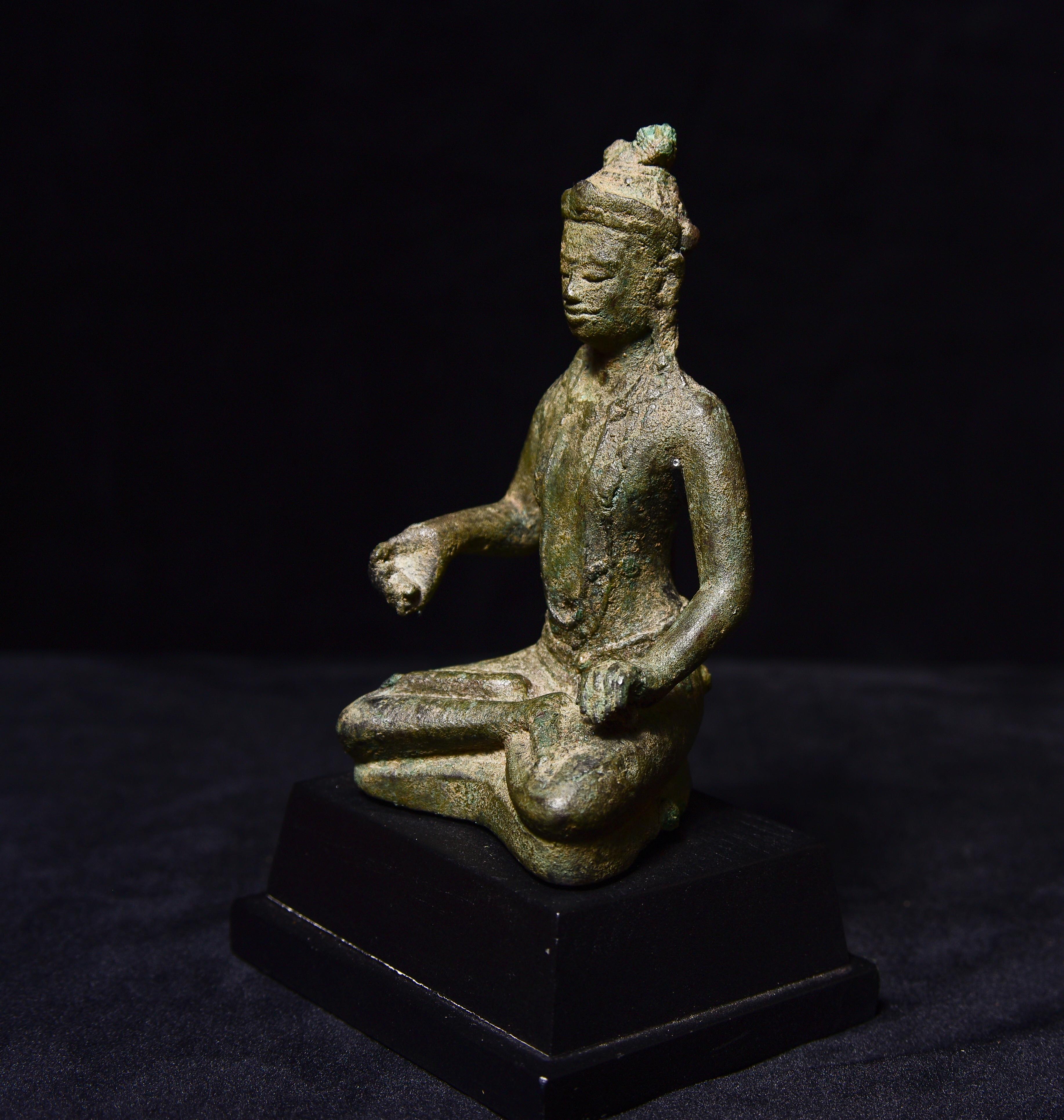 11th/12thC. Fantastic, early, southern Thai Buddha--quite uncommon and lovely. Solid cast. Far rarer than its Khmer counterparts. Sits about 4 1/8 inches tall.