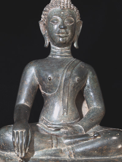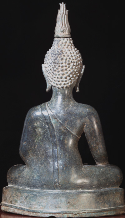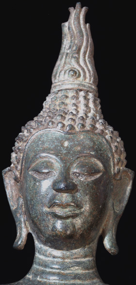 A personal favorite, and one of my best- World Class Northern Thai with Lao influence. Superb face, and jade patina. Large as 15.5 inches tall by 9 inches wide at the knees.