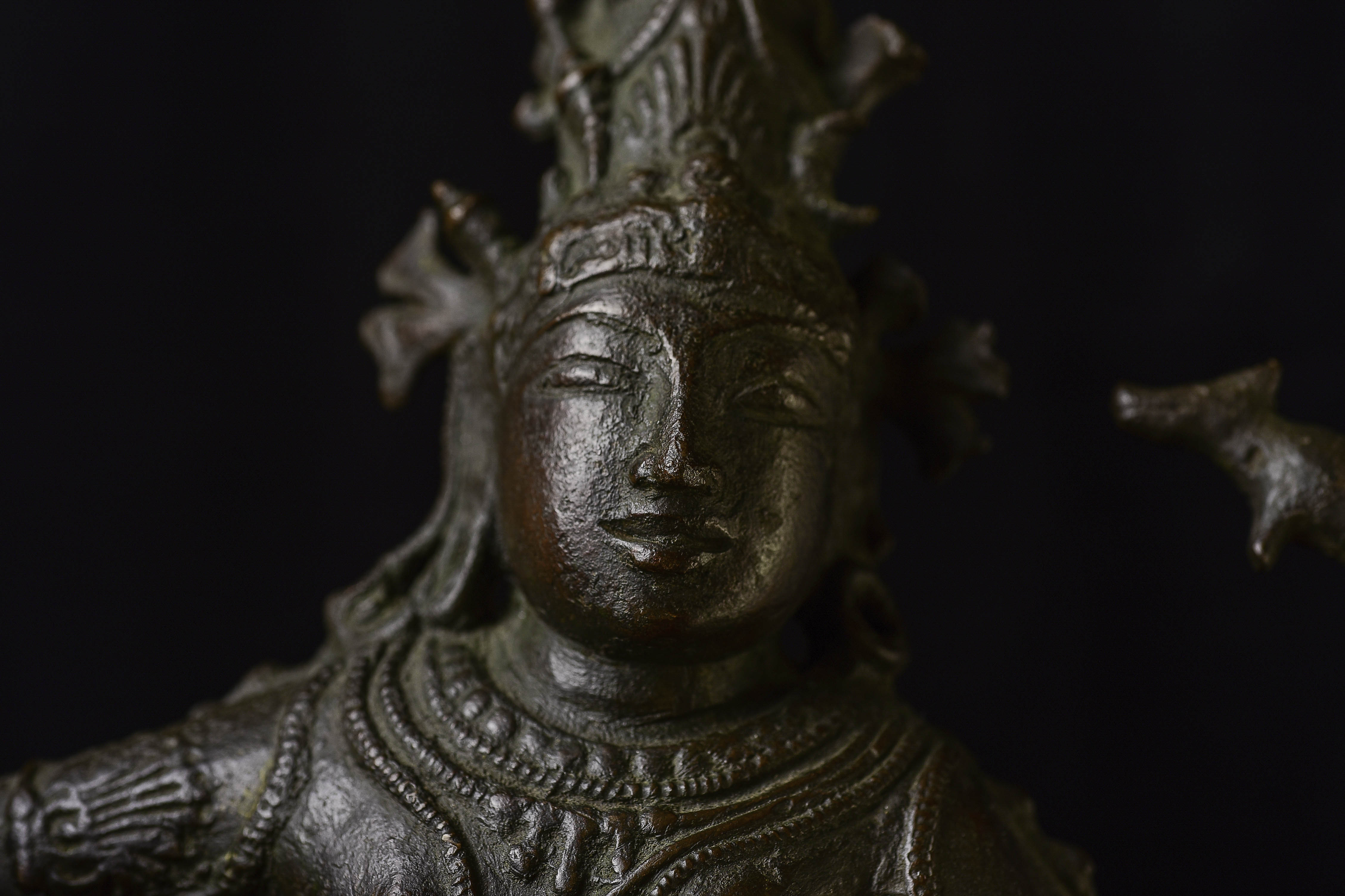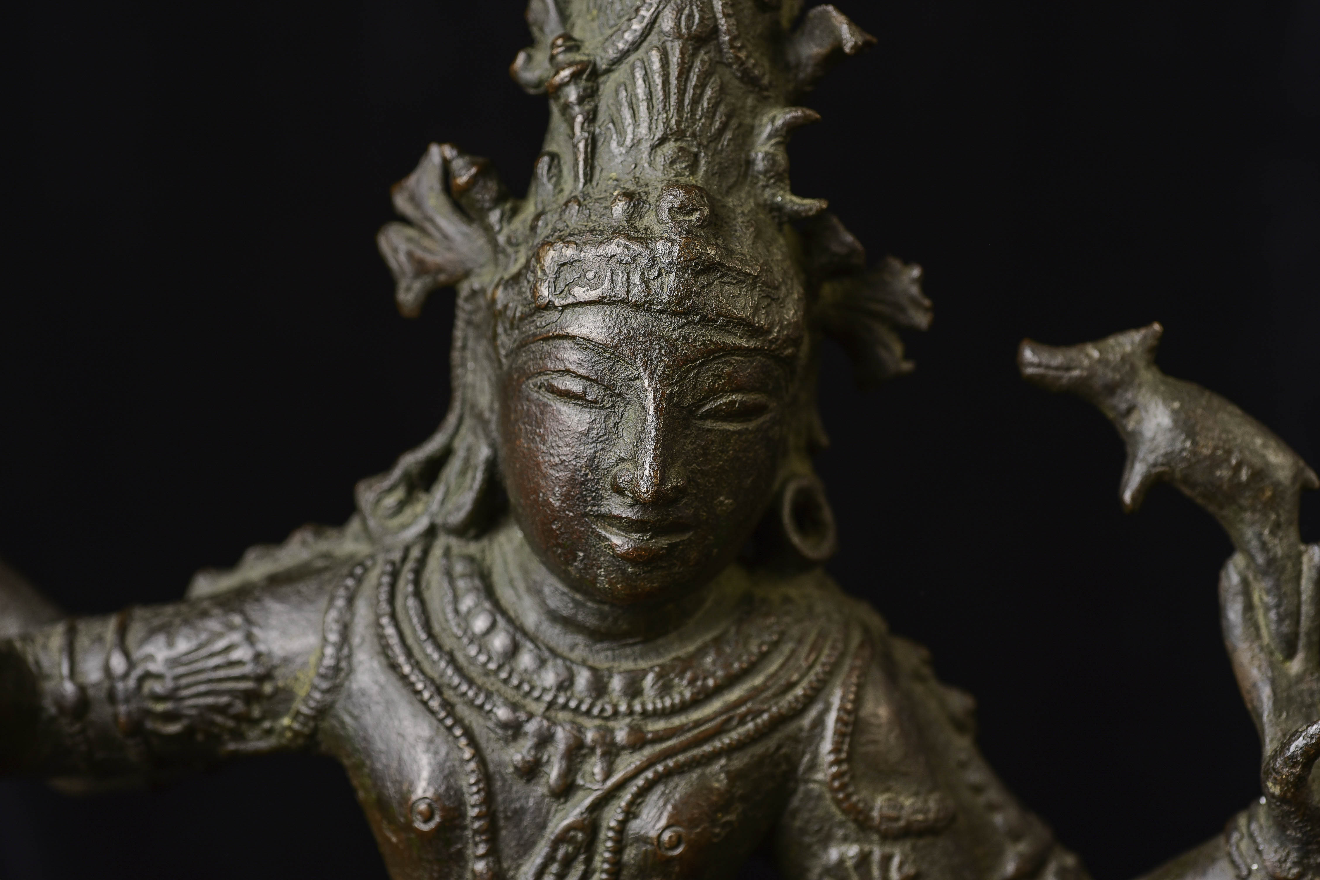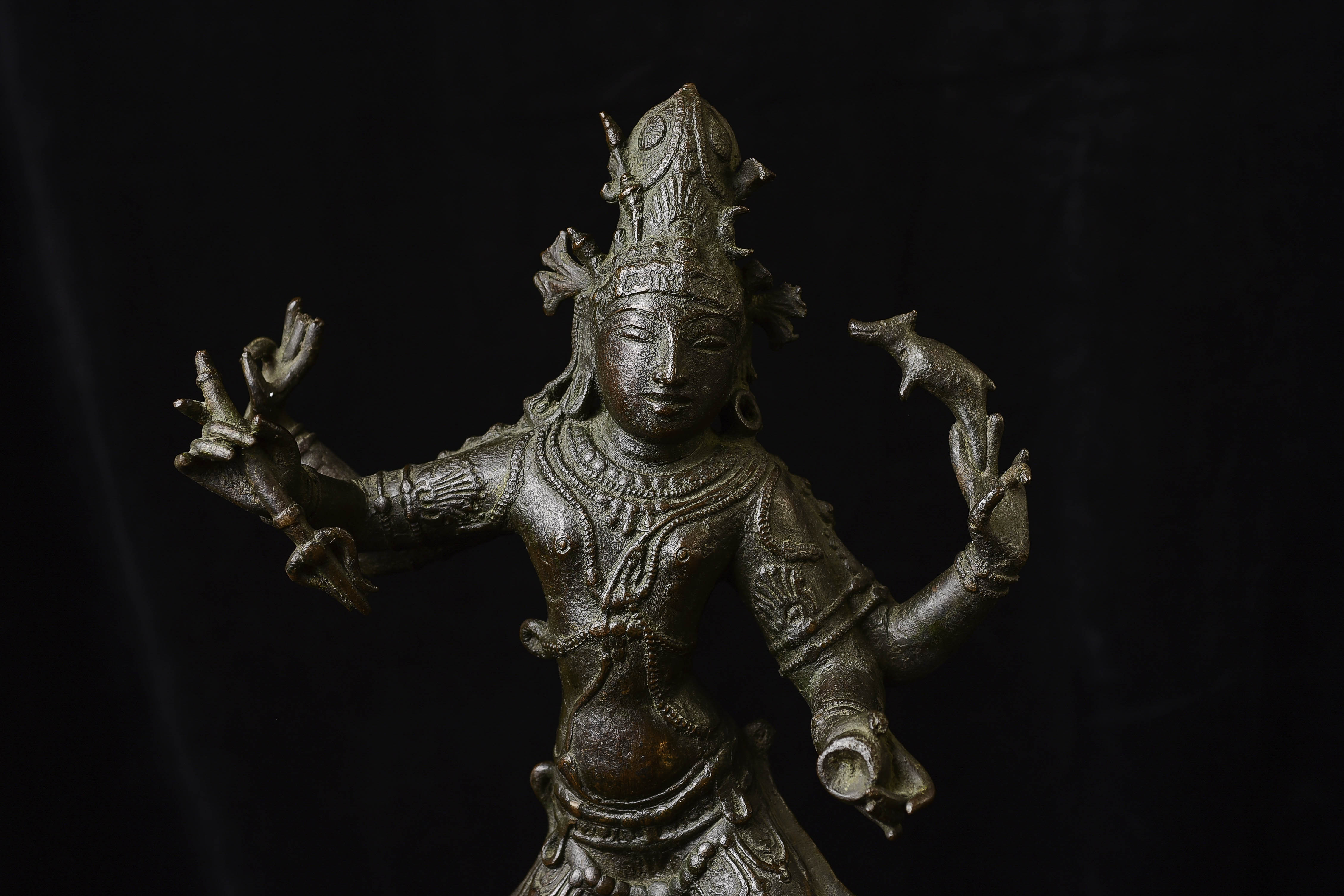 Antique Shiva Nataraja-Large Indian Bronze Sculpture-Dancing the Dance. It is tough to find examples with really good faces, that have well-articulated hands, and that capture fluid body motion. Scroll to the photo with the measuring stick to get the size.