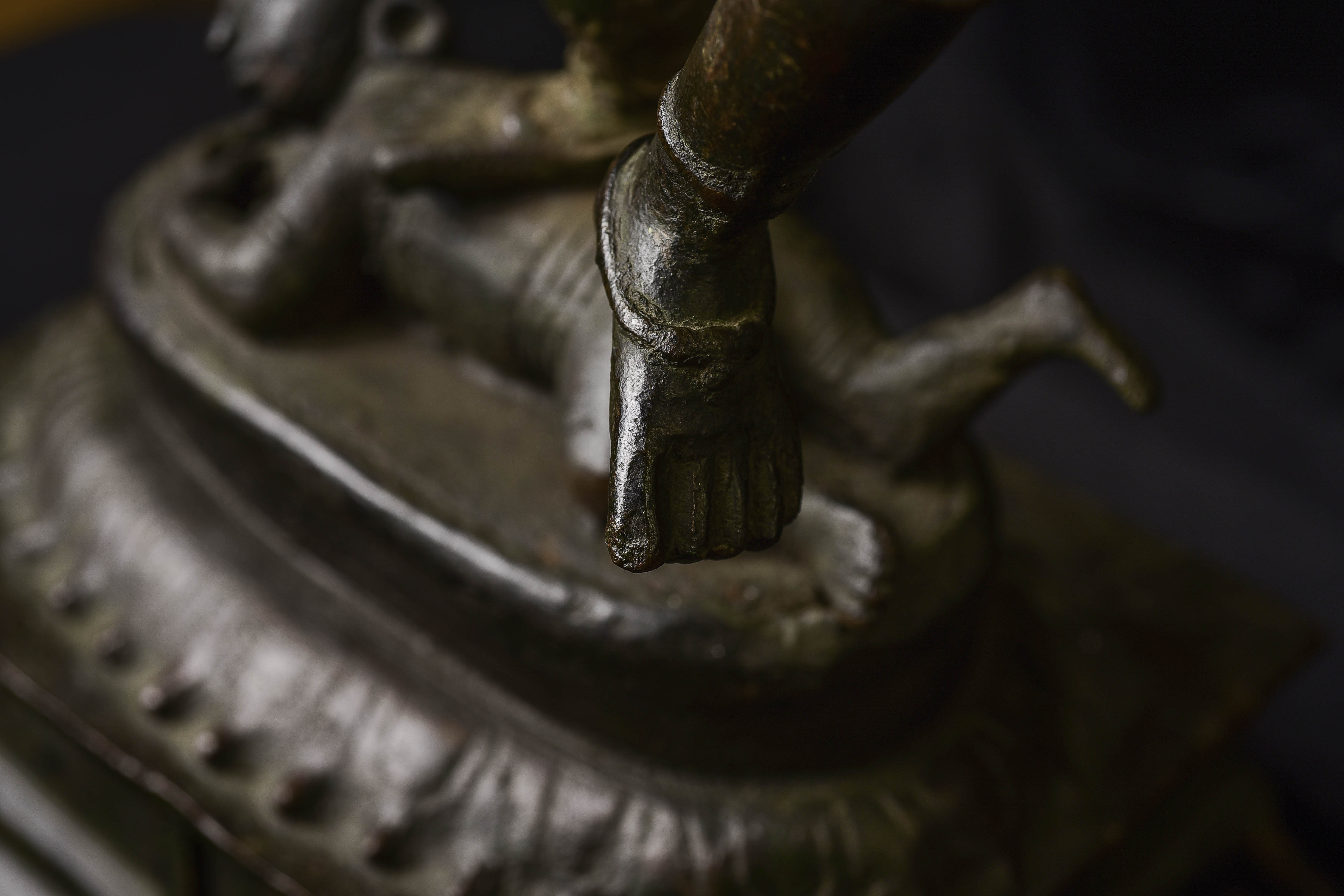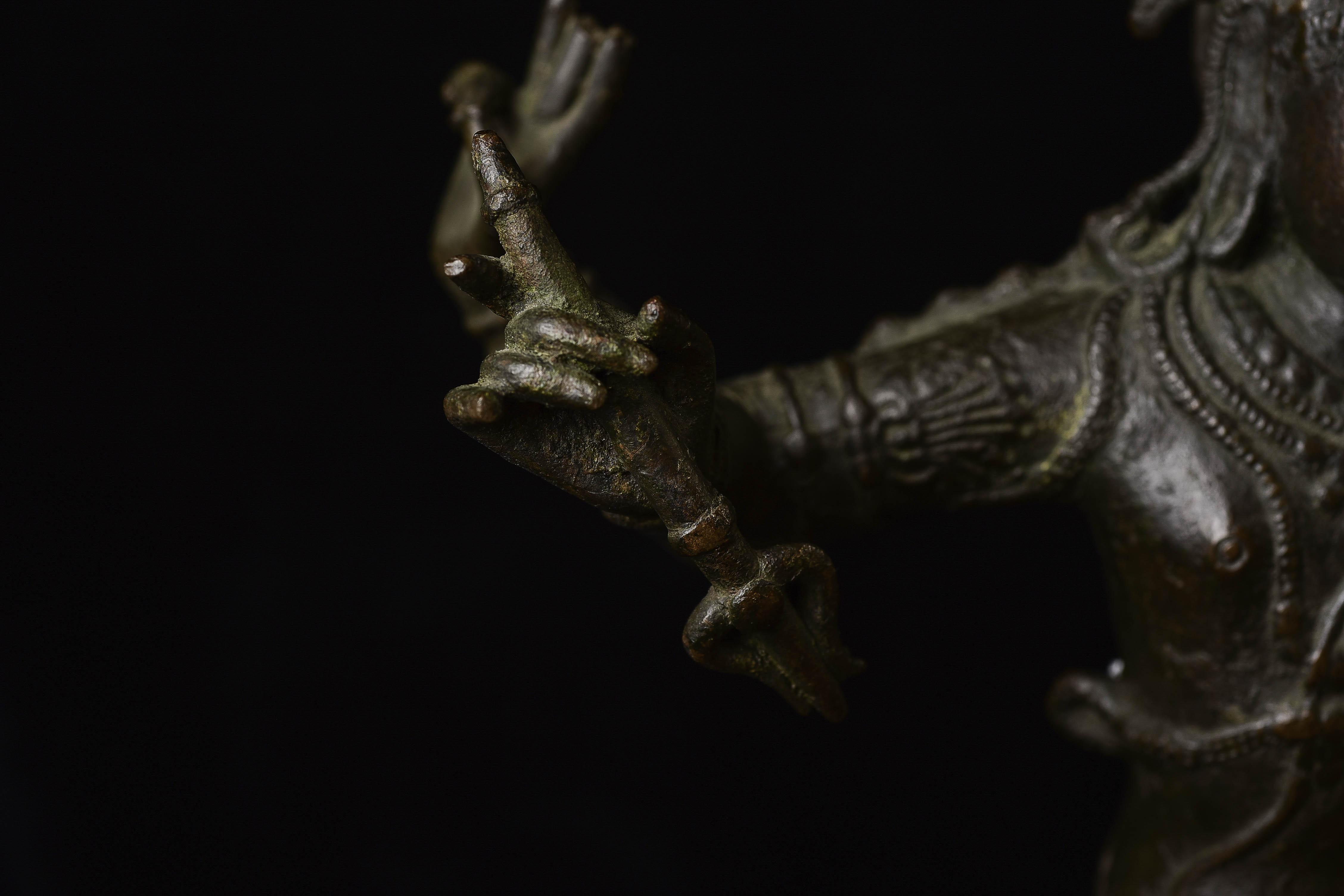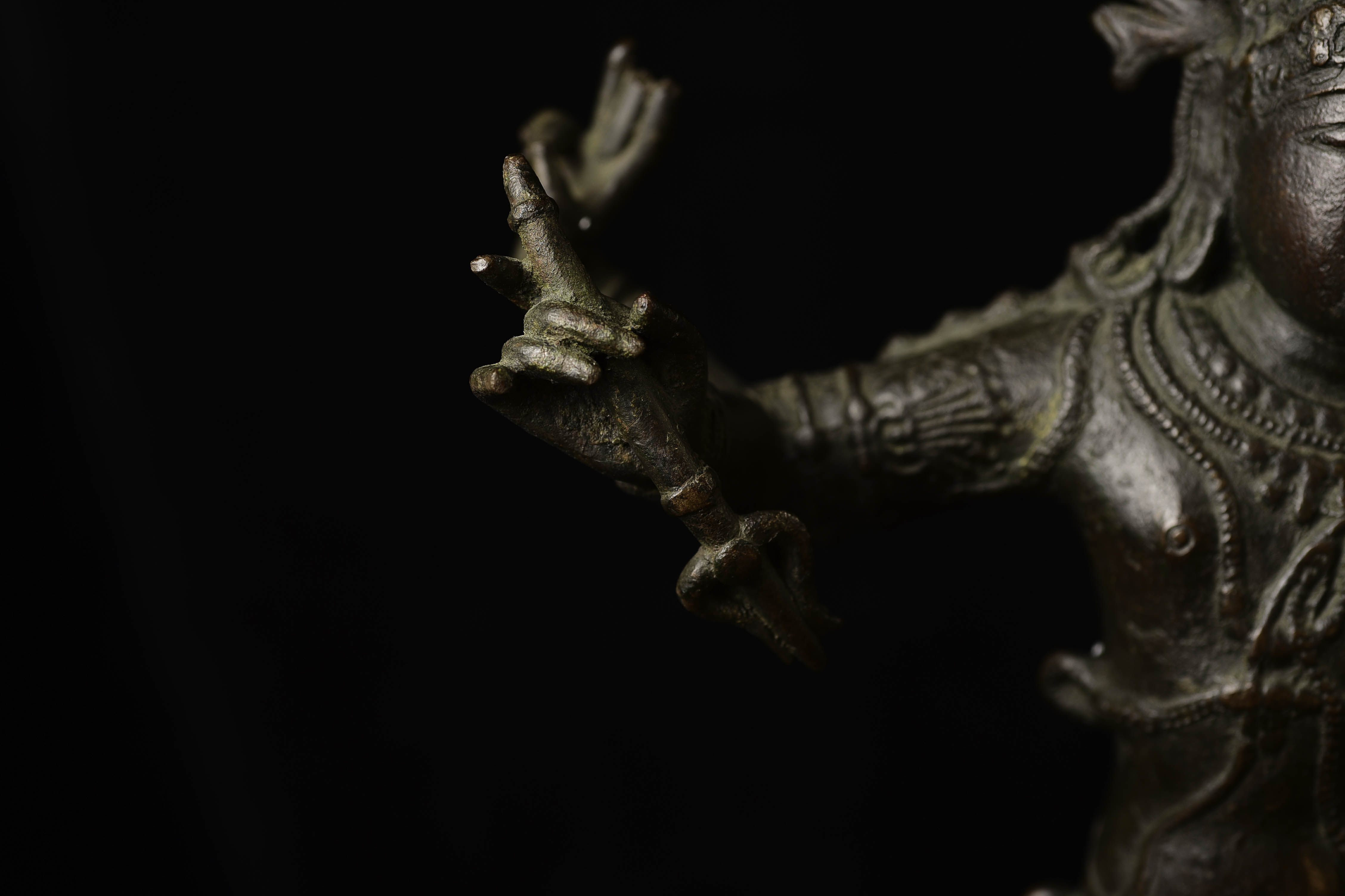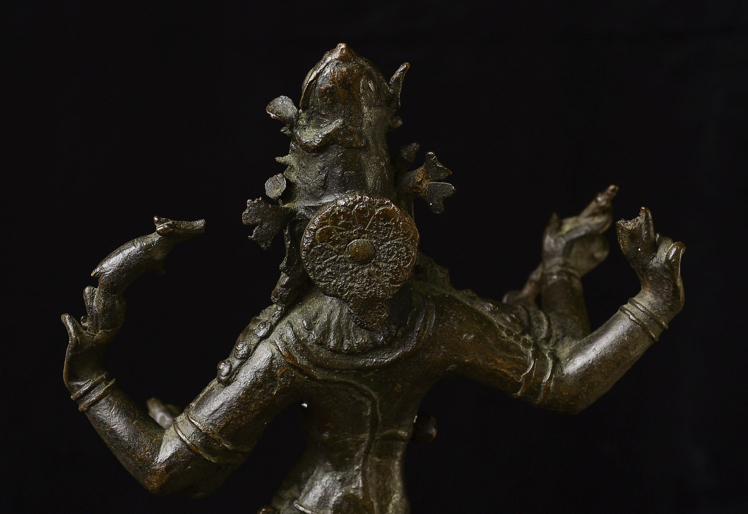 Antique Shiva Nataraja-Large Indian Bronze Sculpture-Dancing the Dance. It is tough to find examples with really good faces, that have well-articulated hands, and that capture fluid body motion. Scroll to the photo with the measuring stick to get the size.