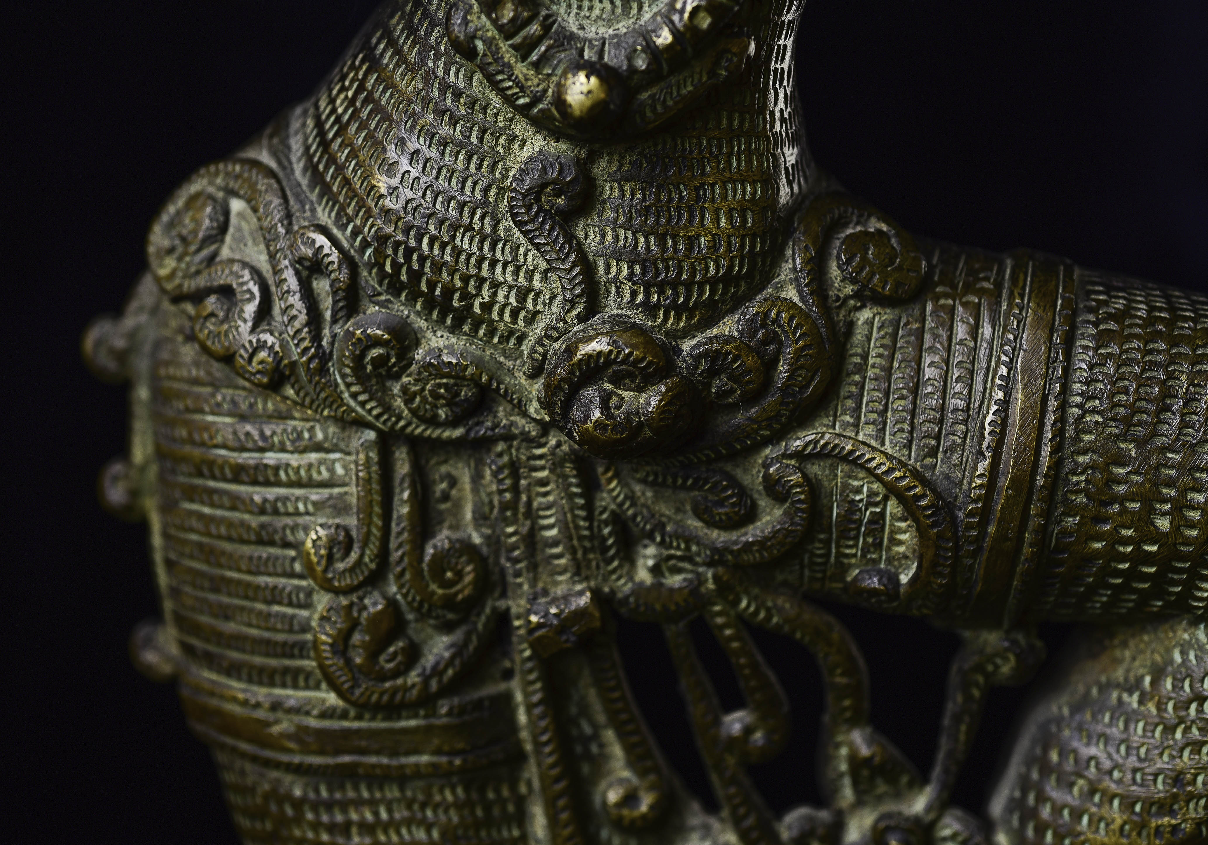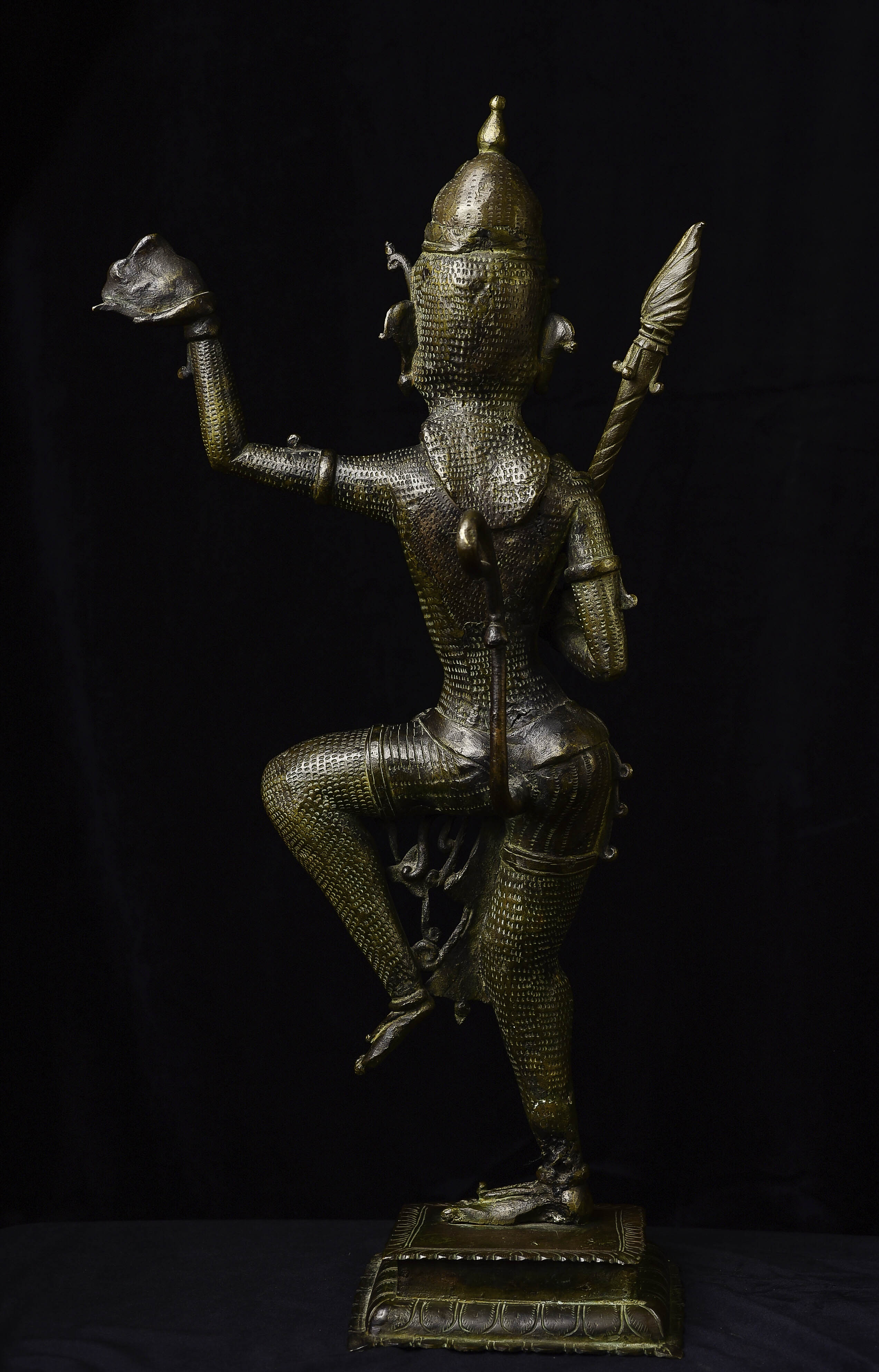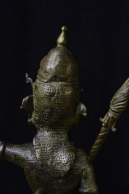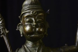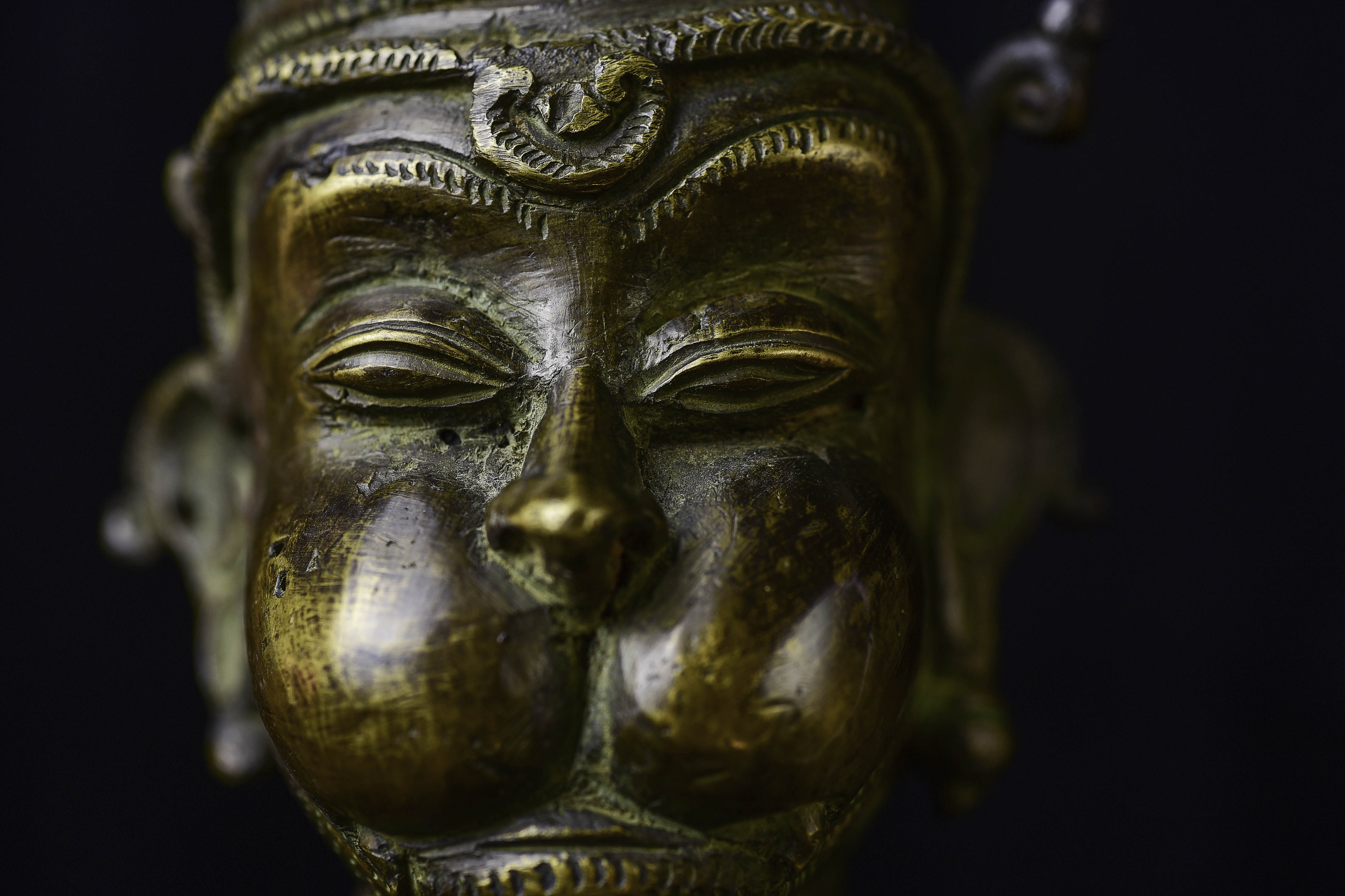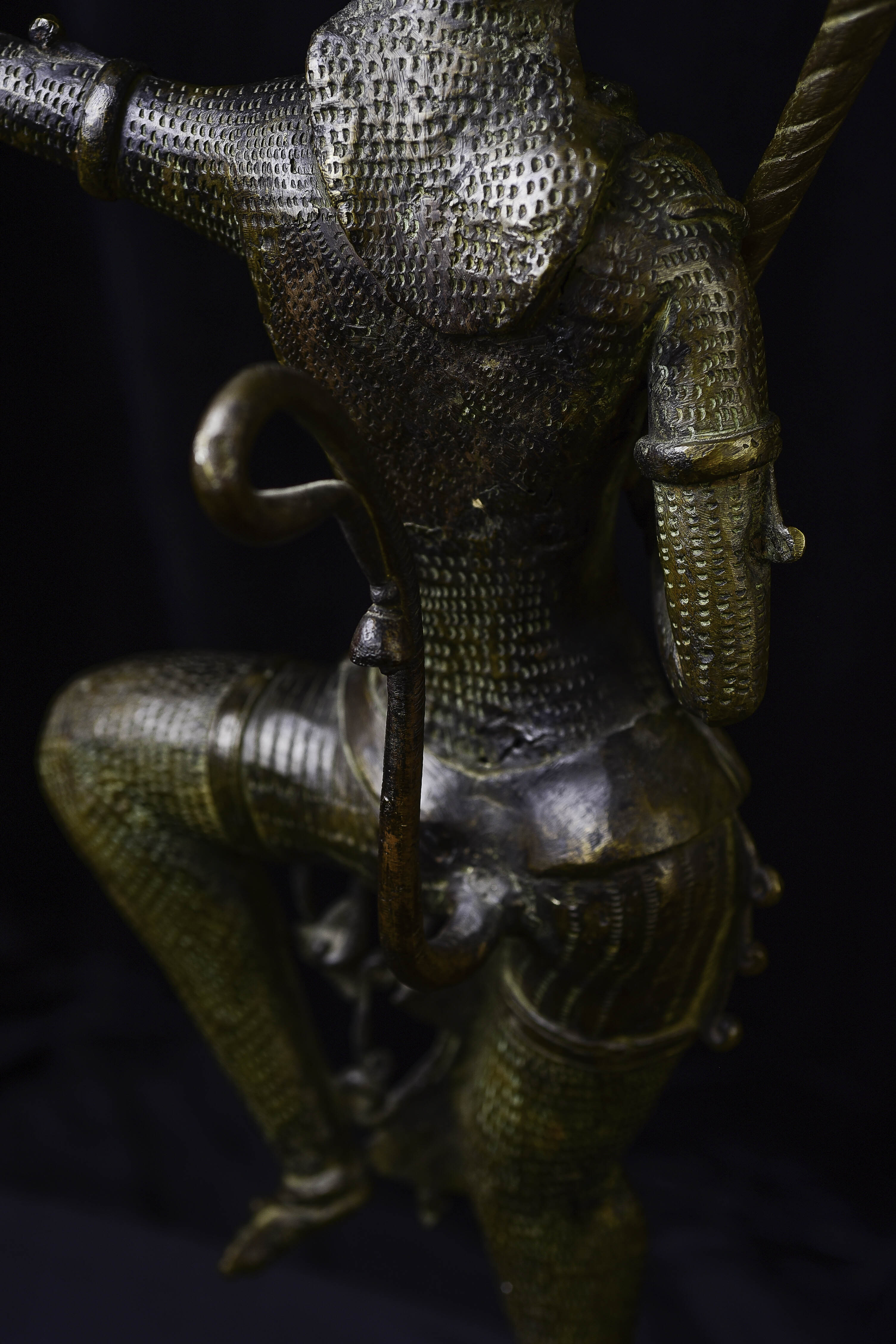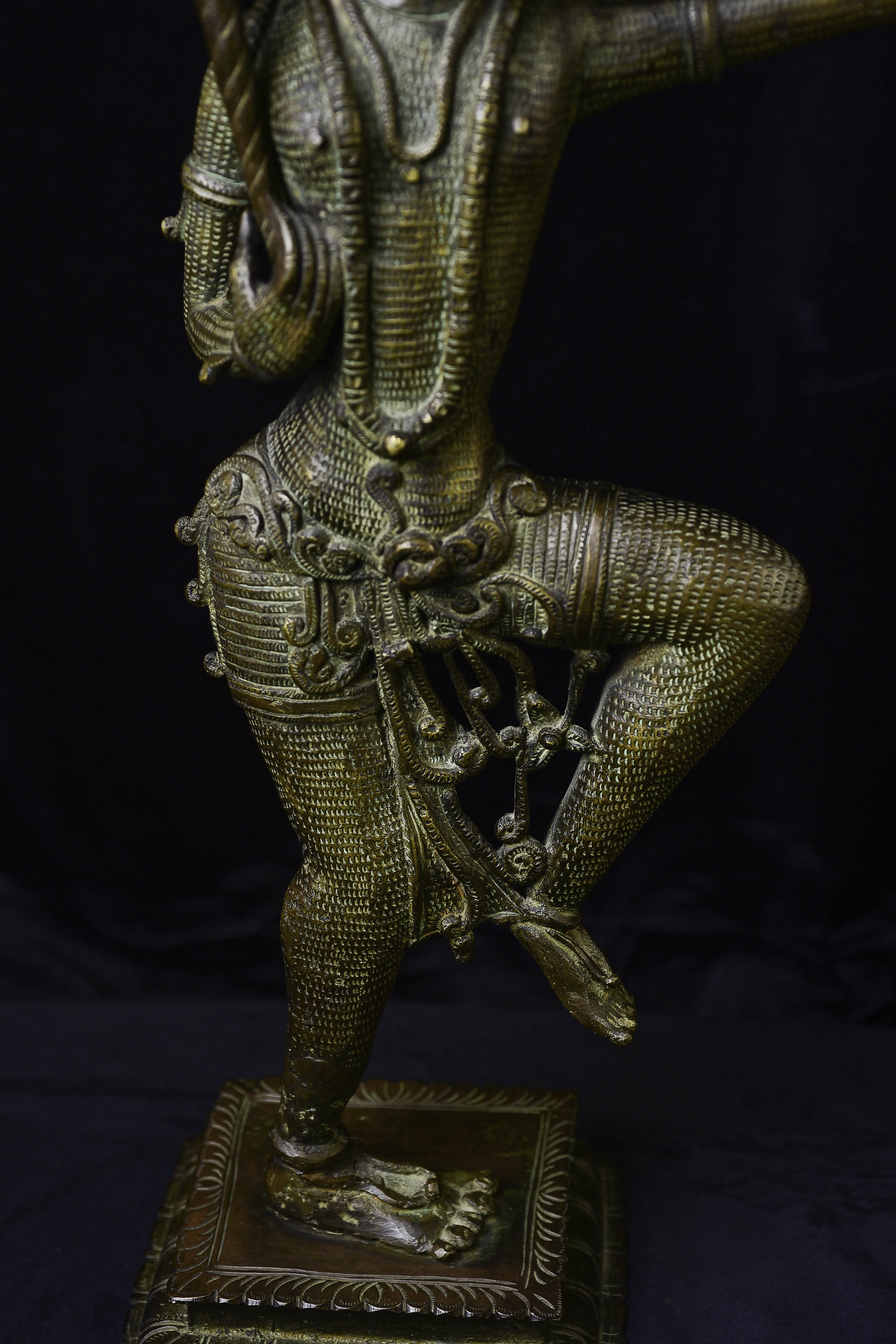 Early20thC Hanuman from India. Charismatic and Lively. Makes everyone smile. Very large- see the photo with the ruler for reference. Outstanding condition. One corner of the base is chipped and the figure leans into the base due to time and gravity causing everything to sag a bit. Can be compensated for with a shim under one or 2 feet. Special.