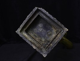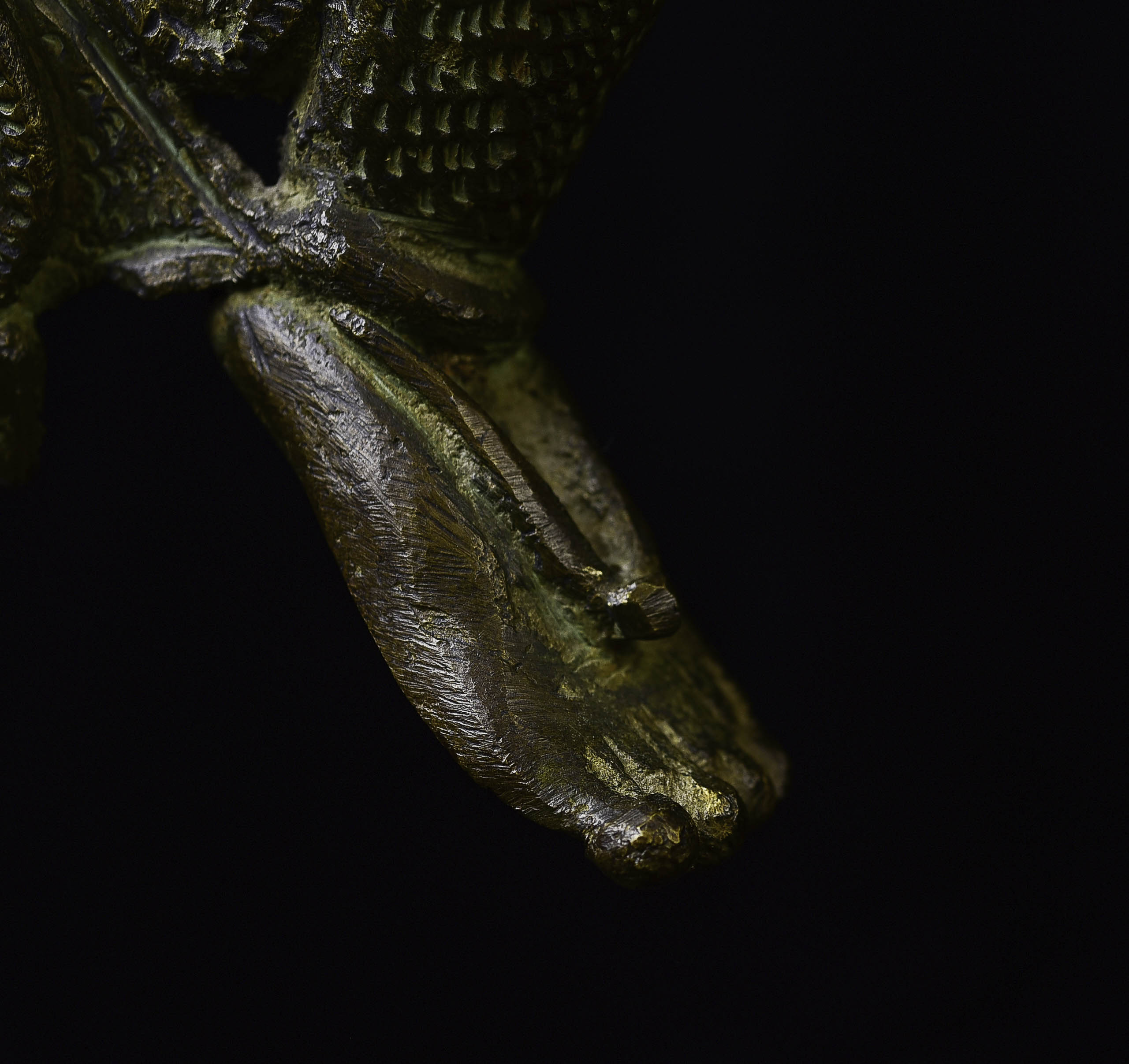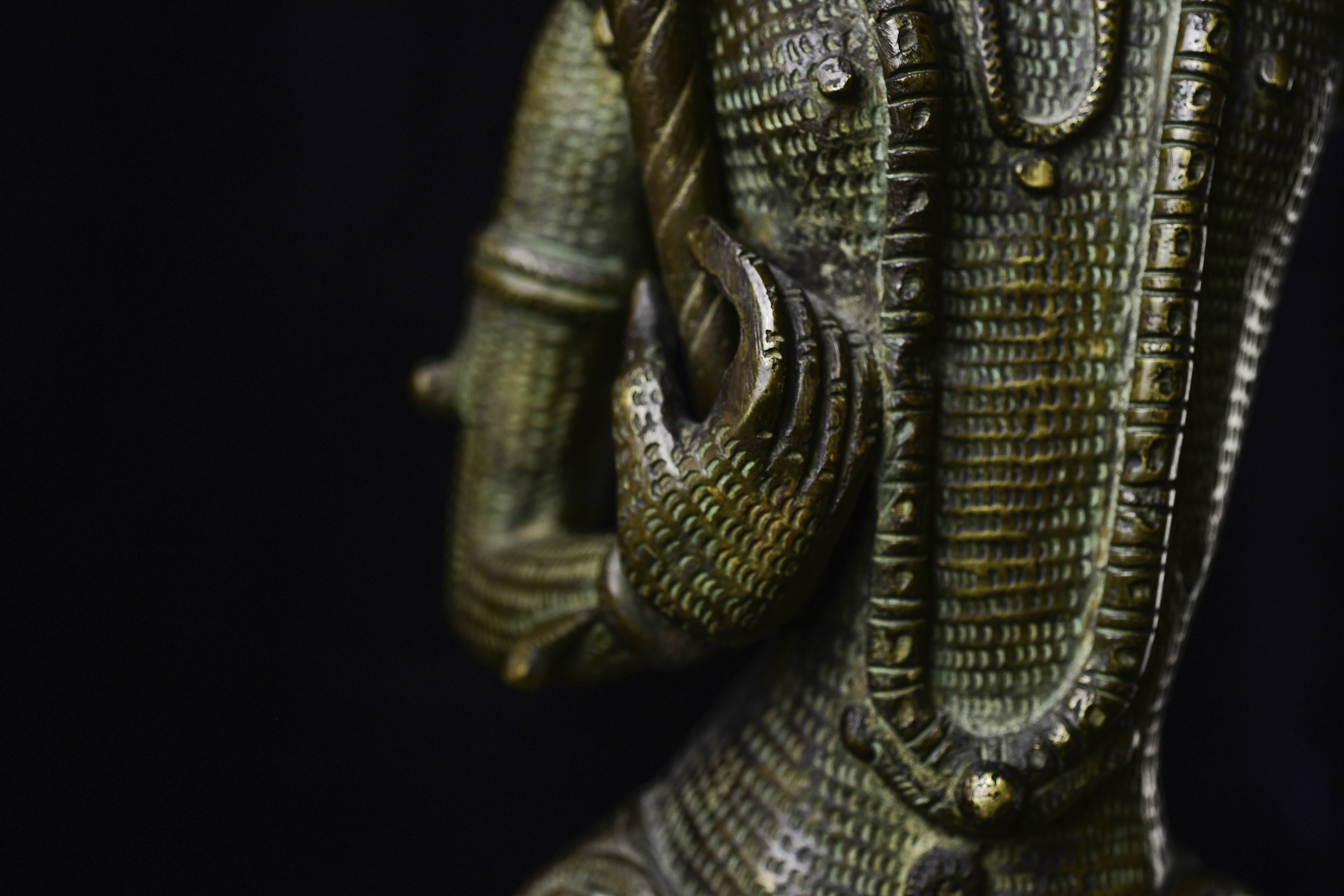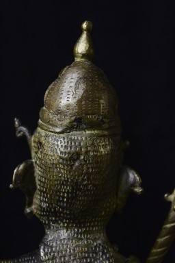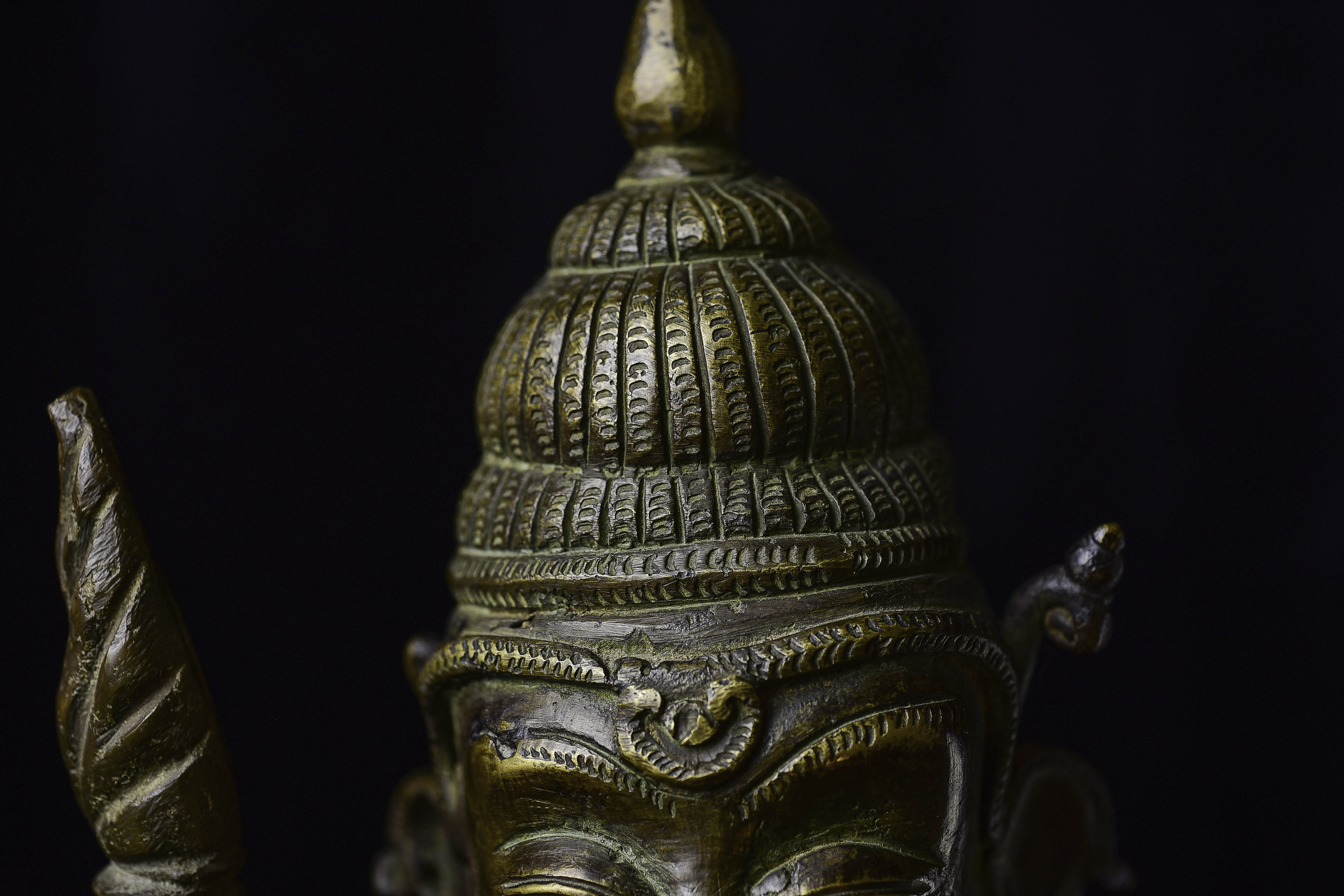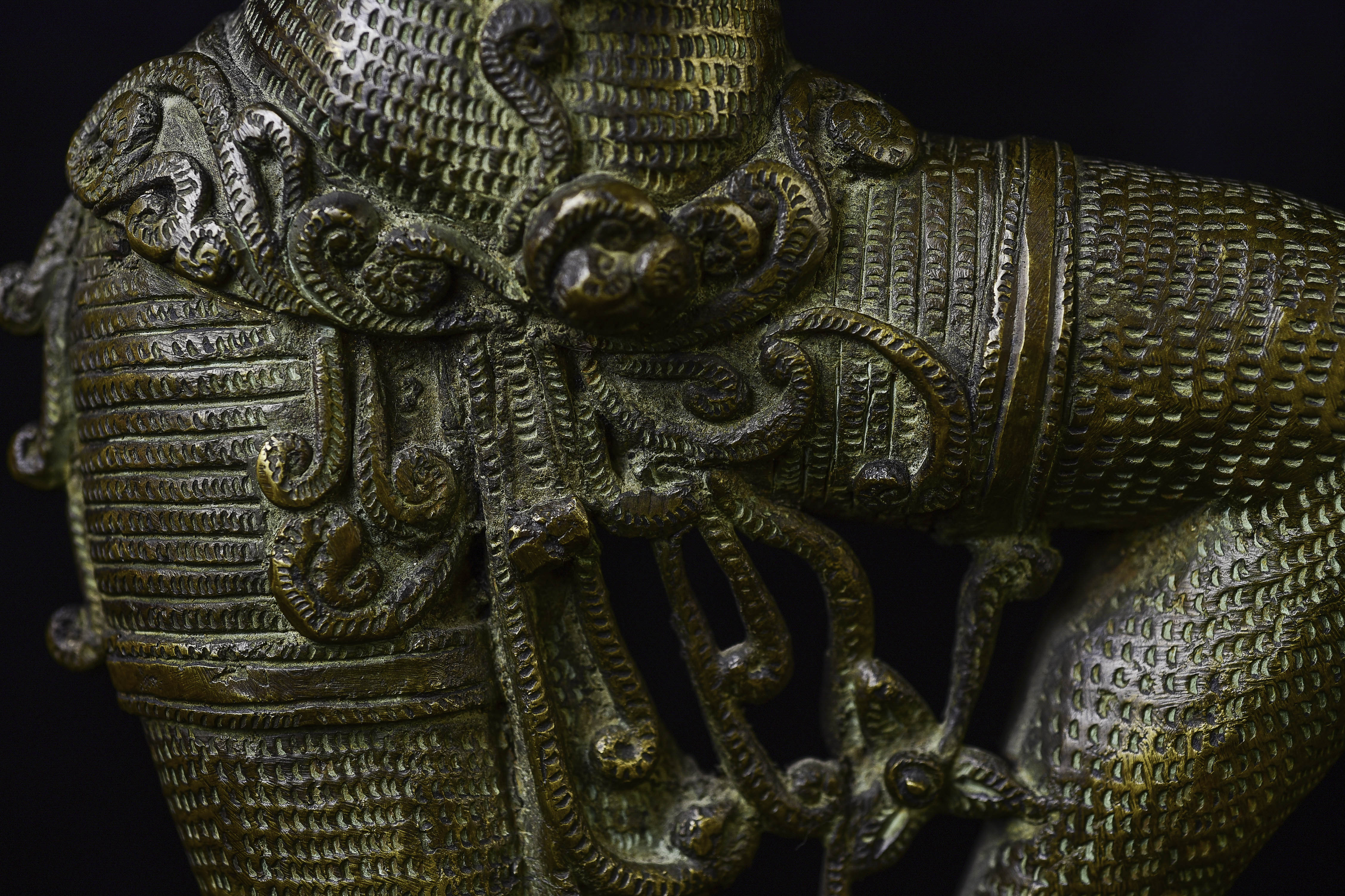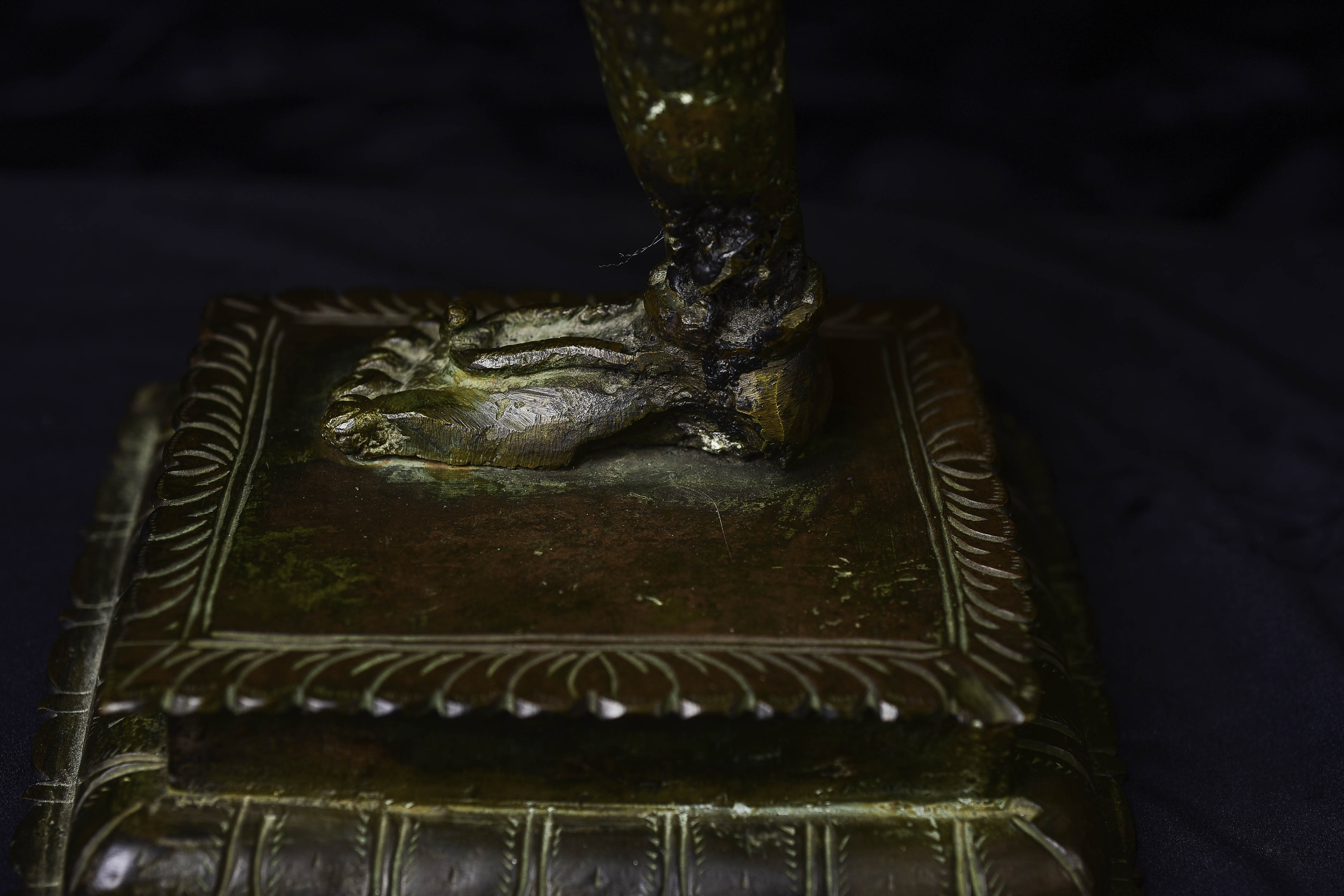 Early20thC Hanuman from India. Charismatic and Lively. Makes everyone smile. Very large- see the photo with the ruler for reference. Outstanding condition. One corner of the base is chipped and the figure leans into the base due to time and gravity causing everything to sag a bit. Can be compensated for with a shim under one or 2 feet. Special.