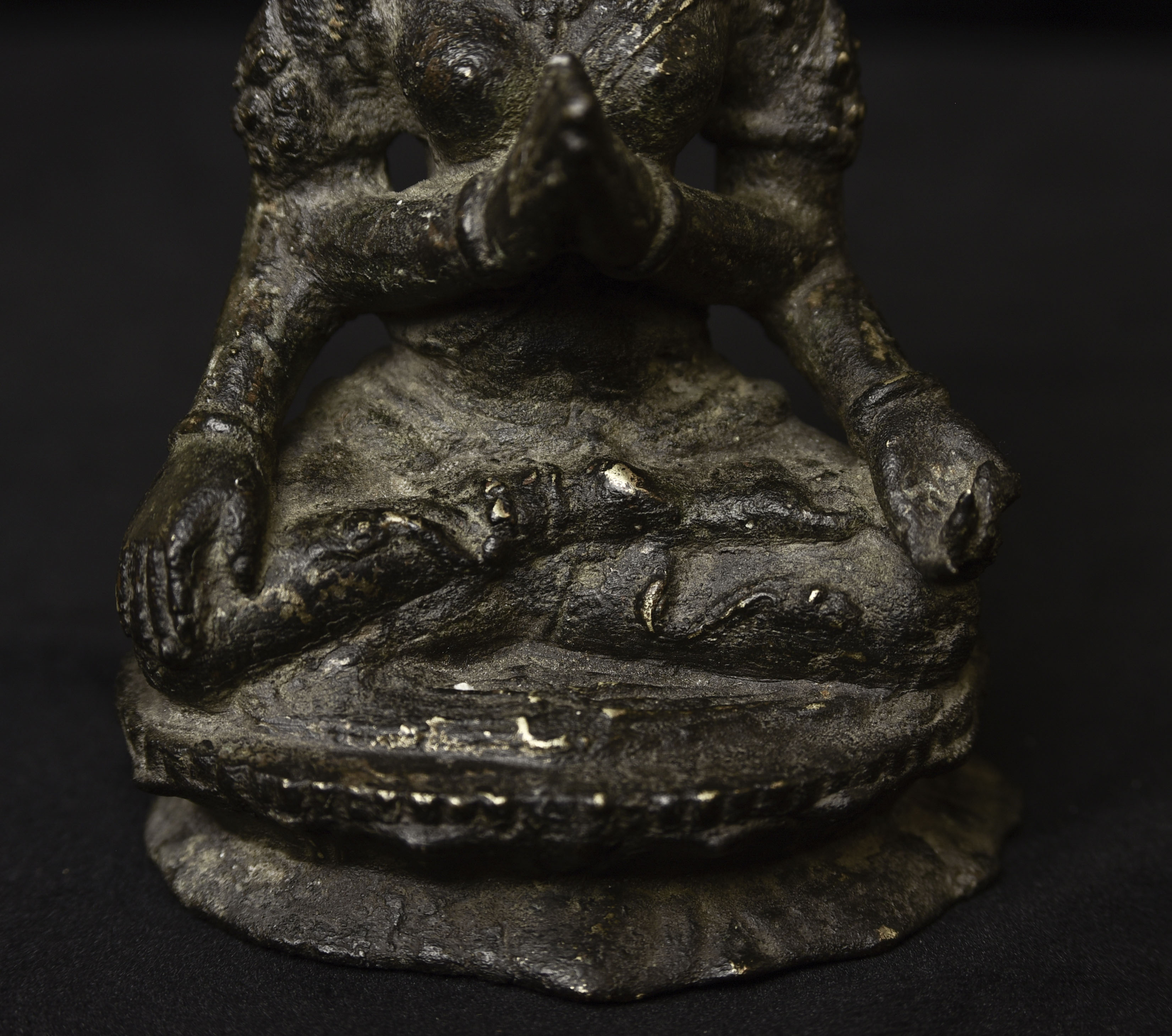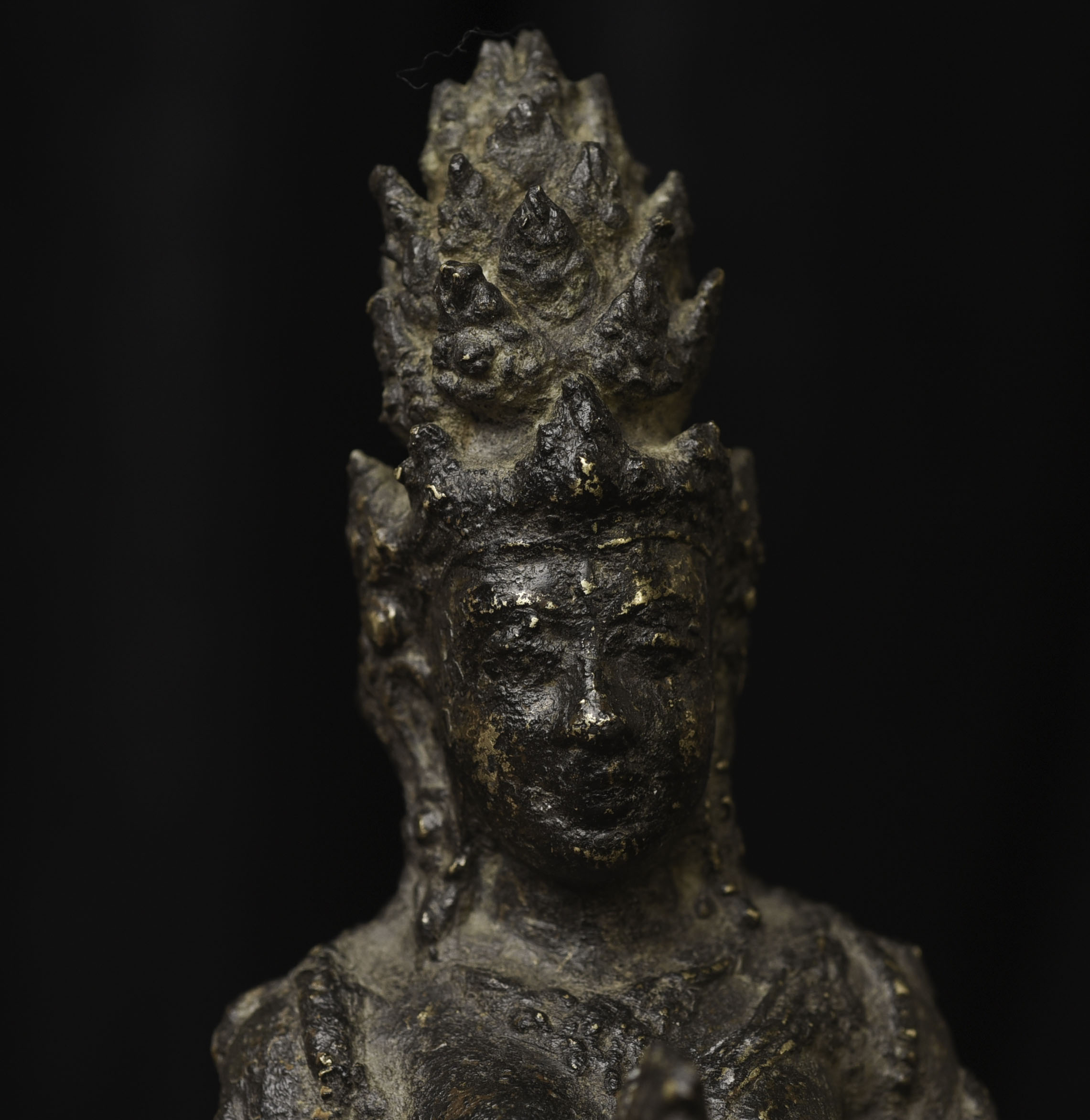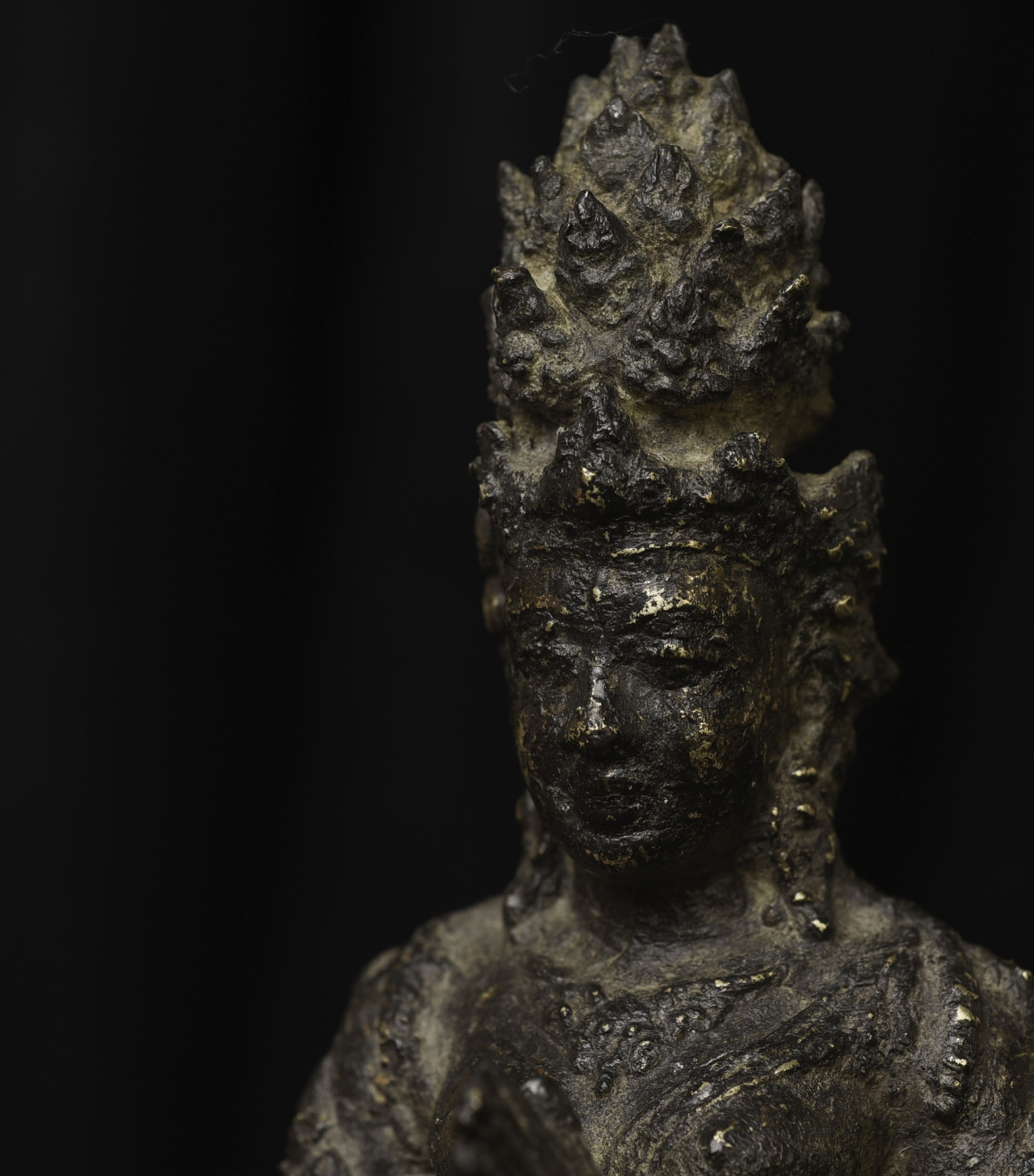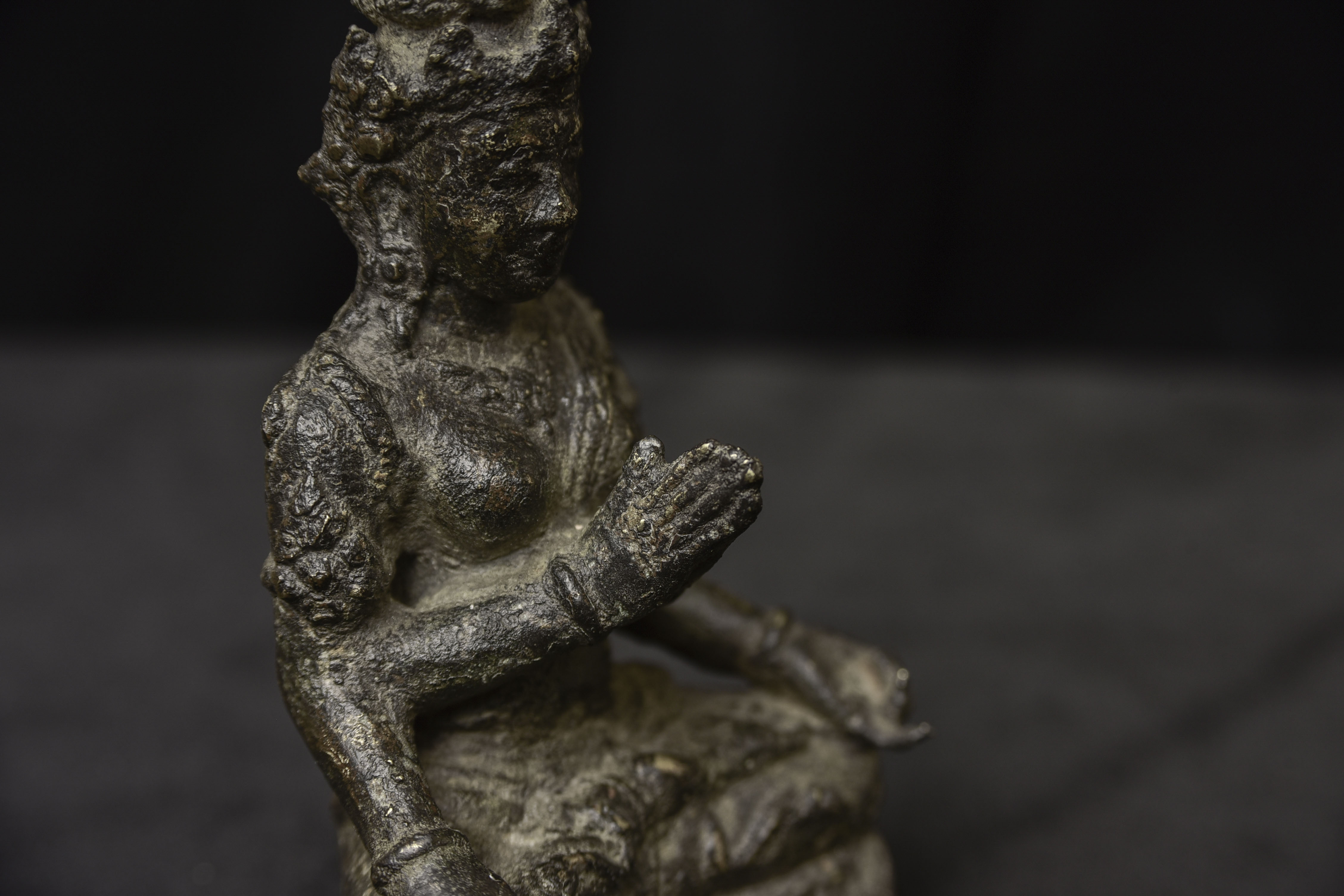 Indonesian Bronze Hindu Figure with elaborate headdress. Unsure of dating. Measures 5.5" tall.