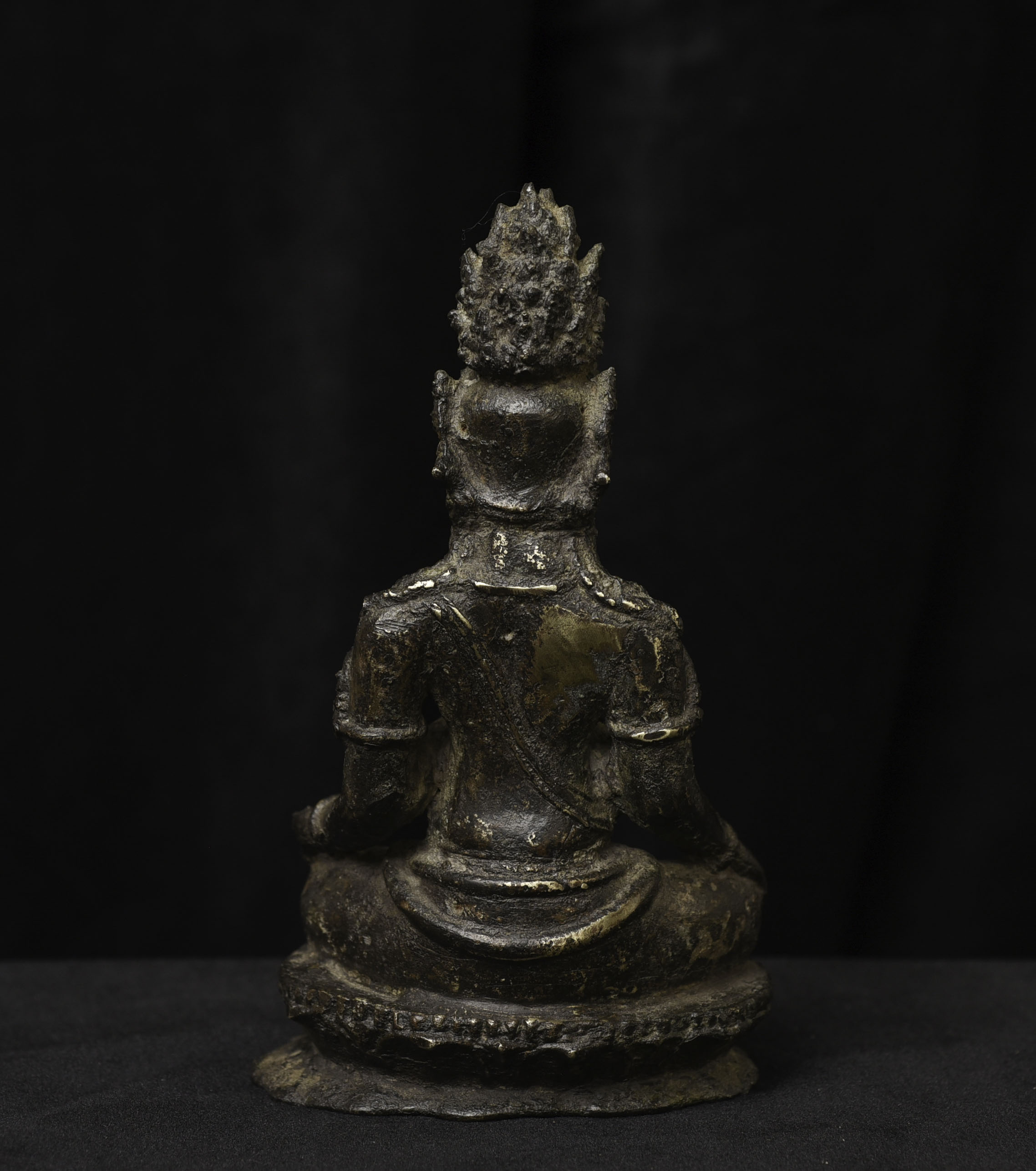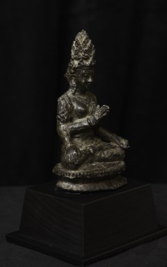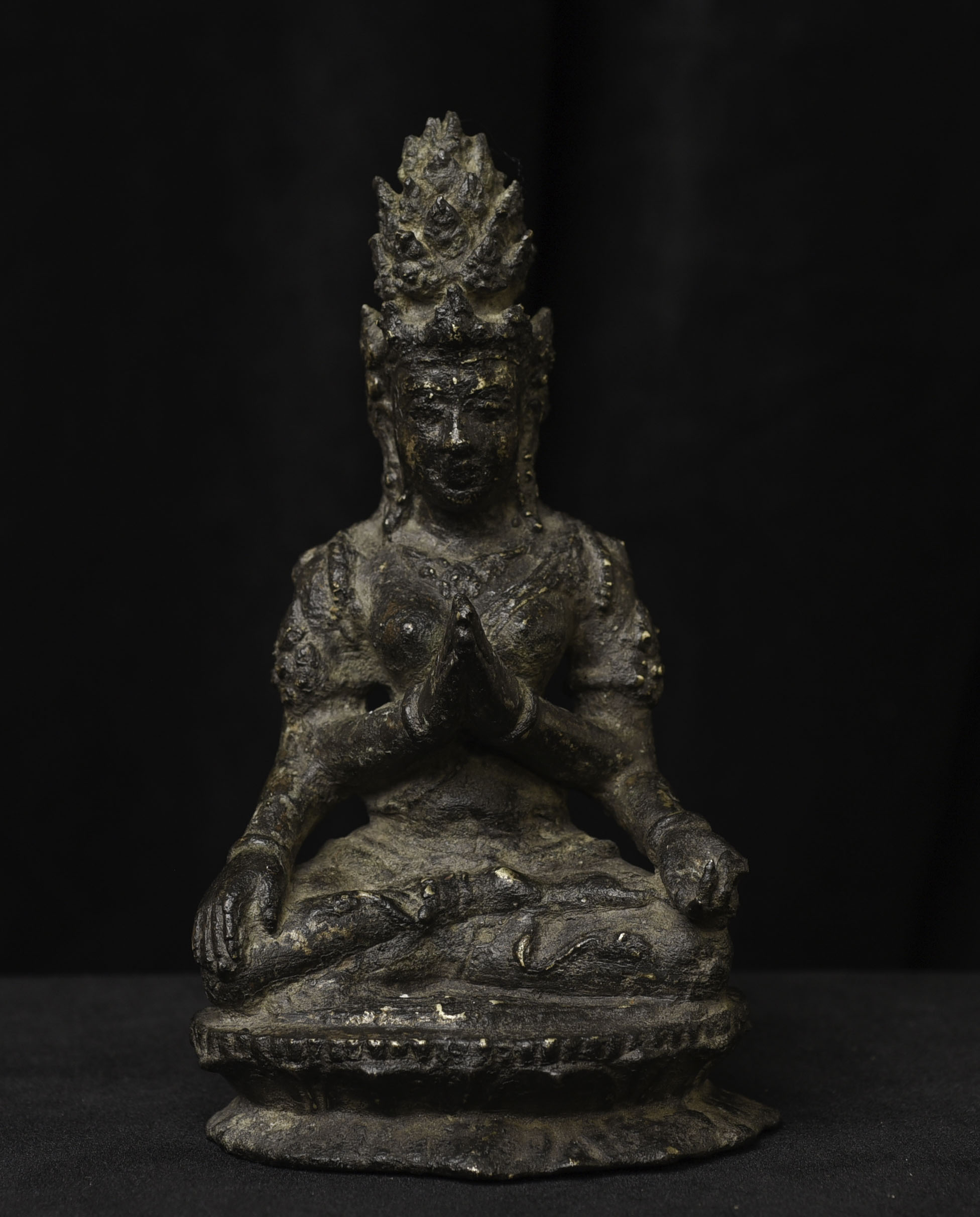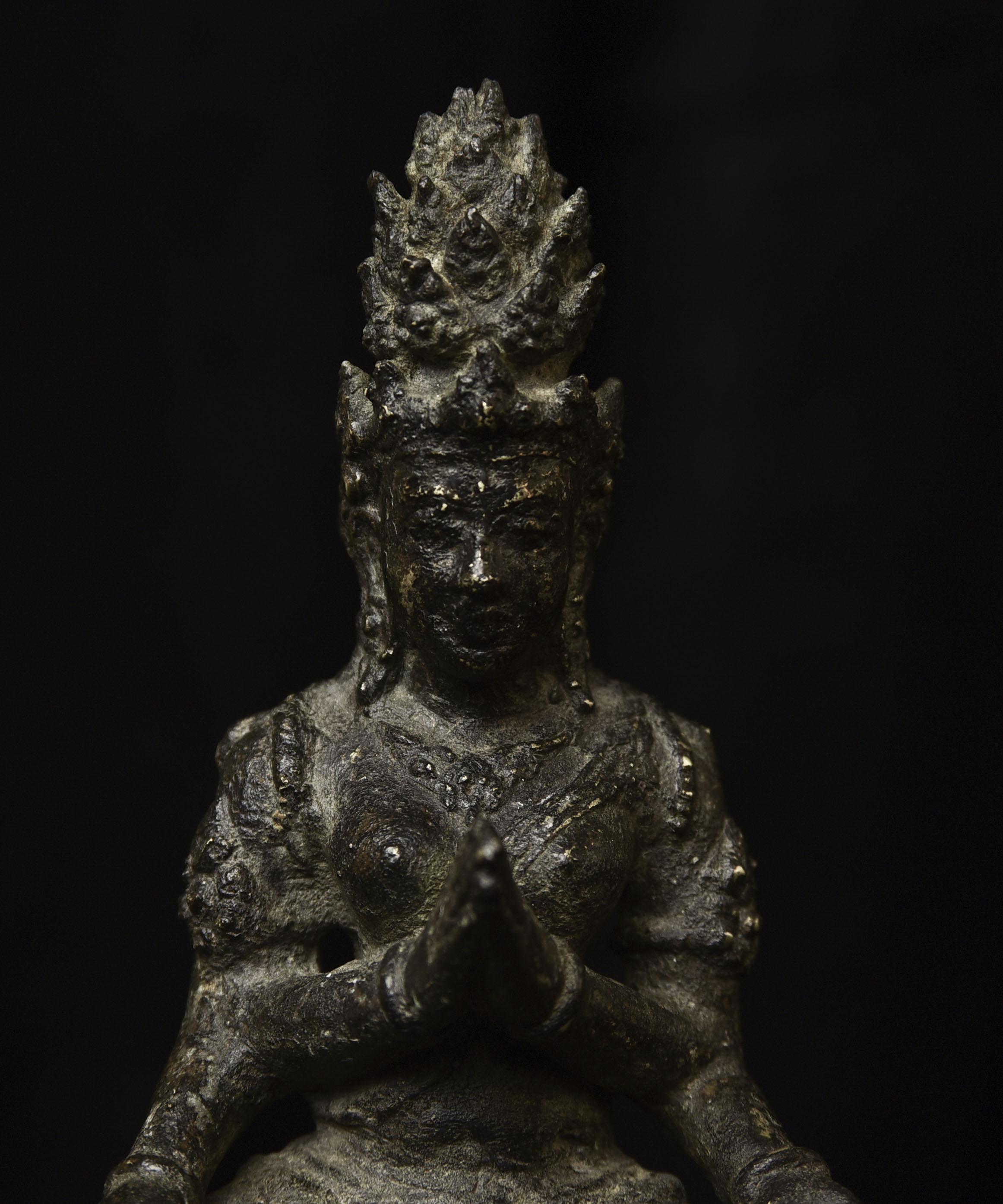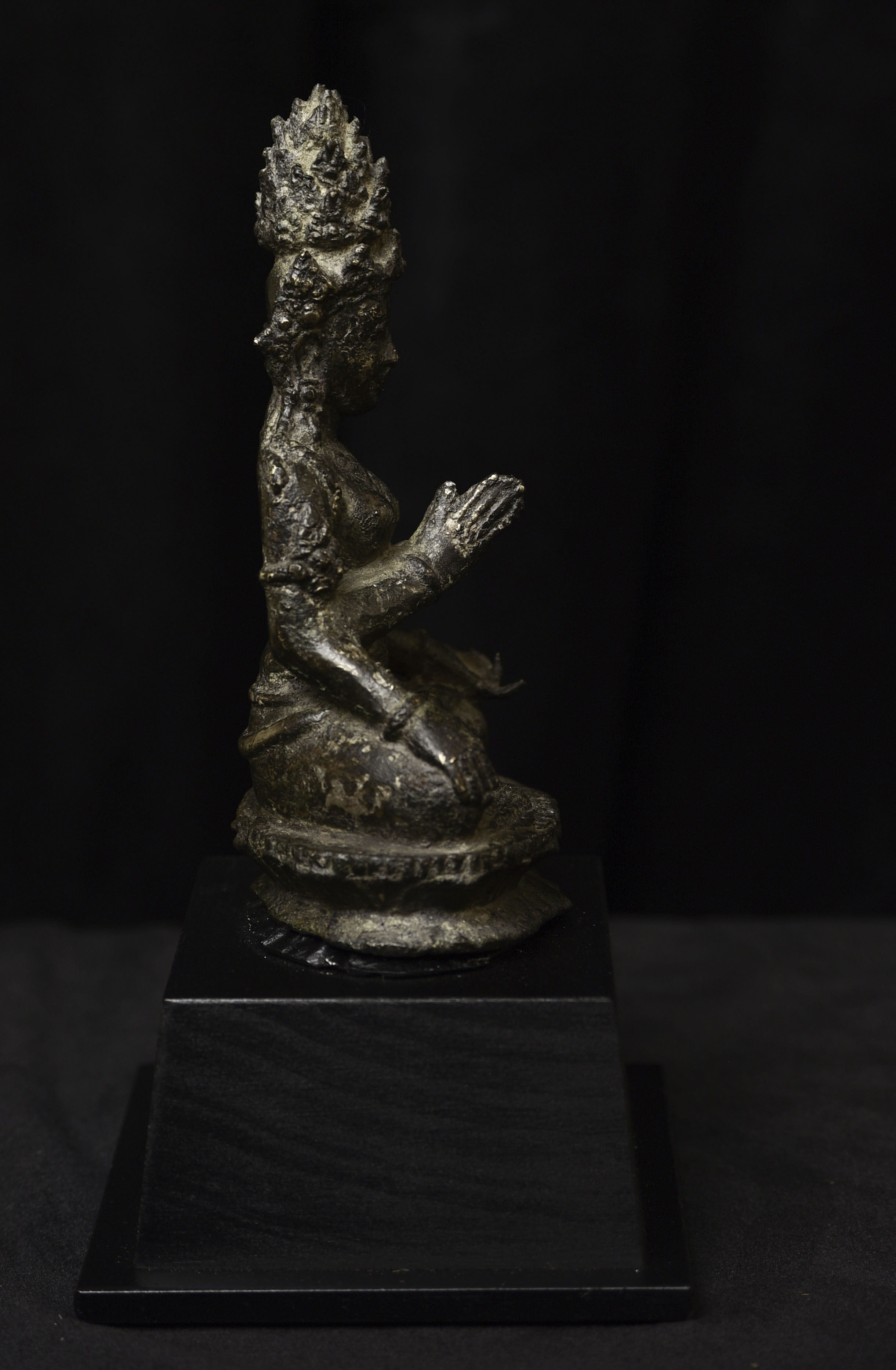 Indonesian Bronze Hindu Figure with elaborate headdress. Unsure of dating. Measures 5.5" tall.
