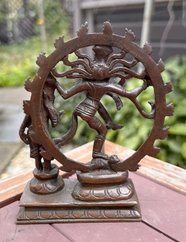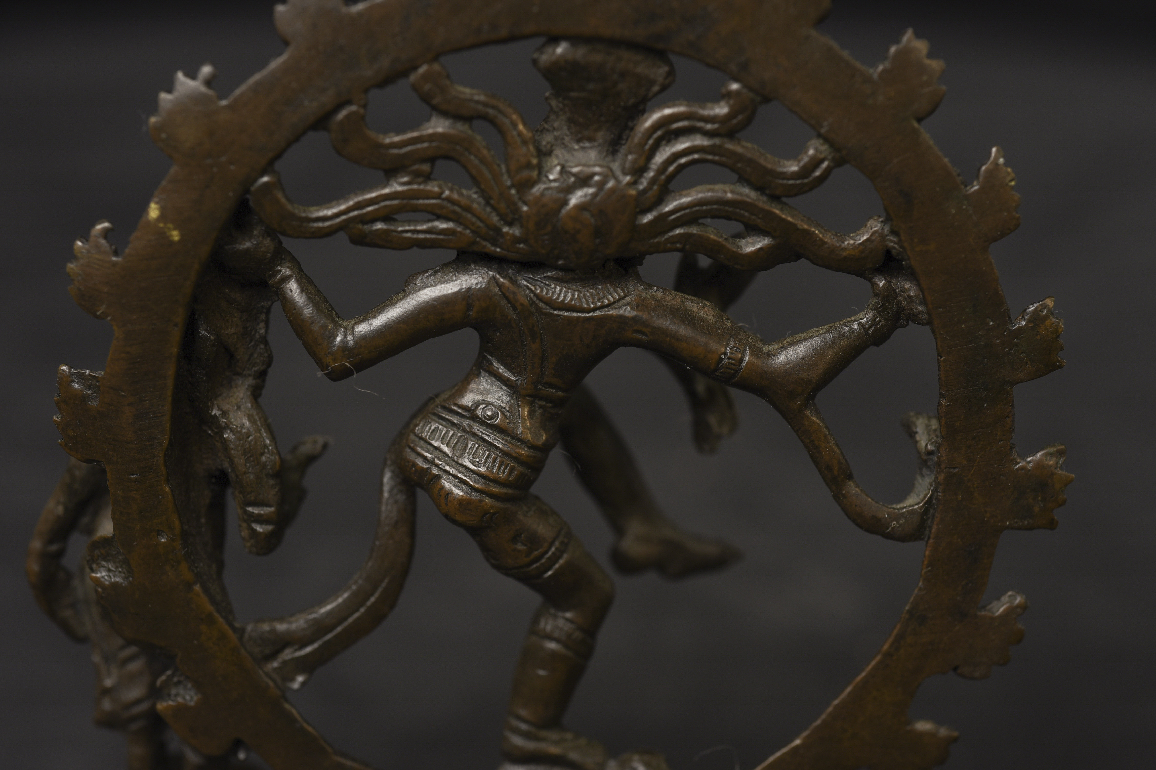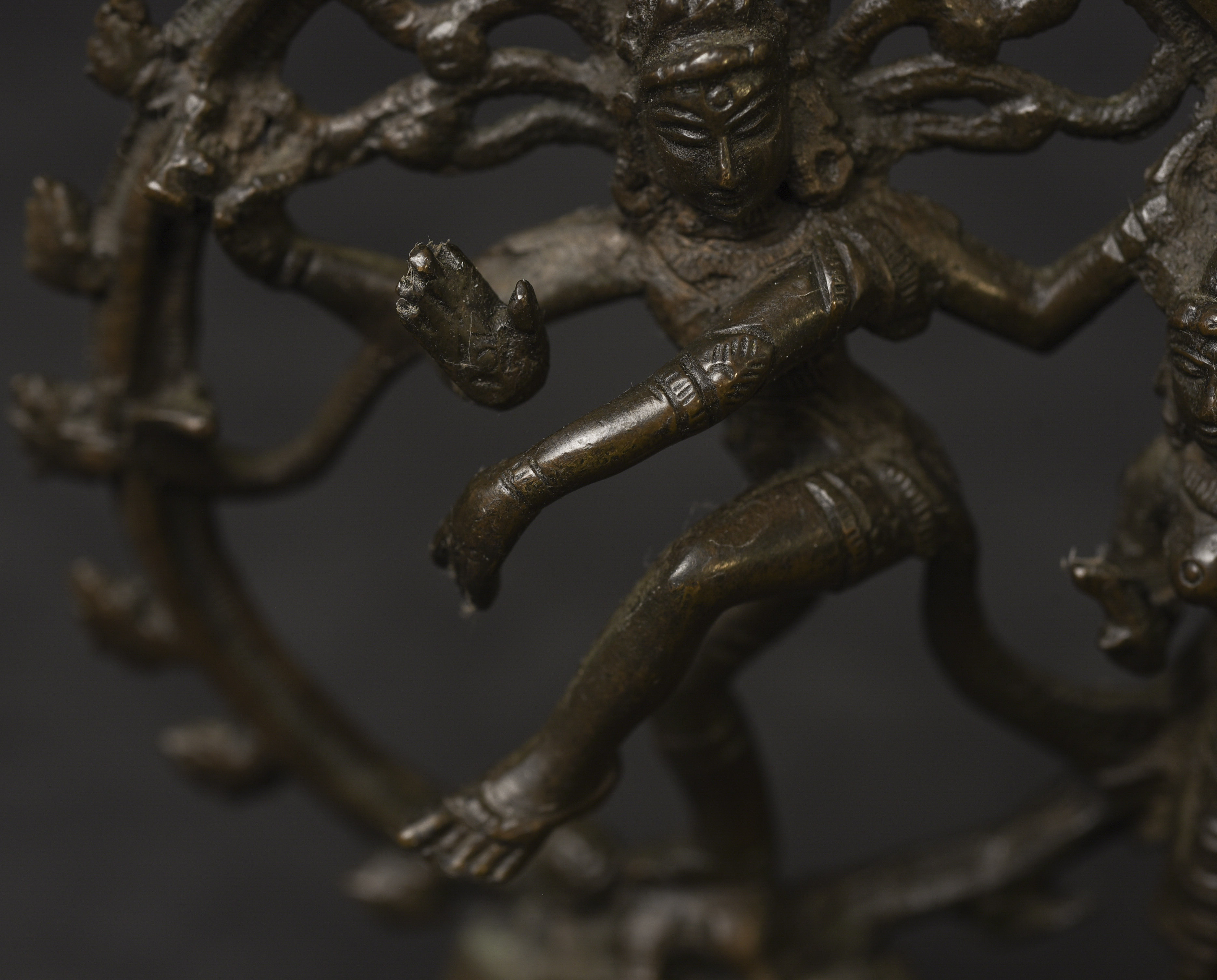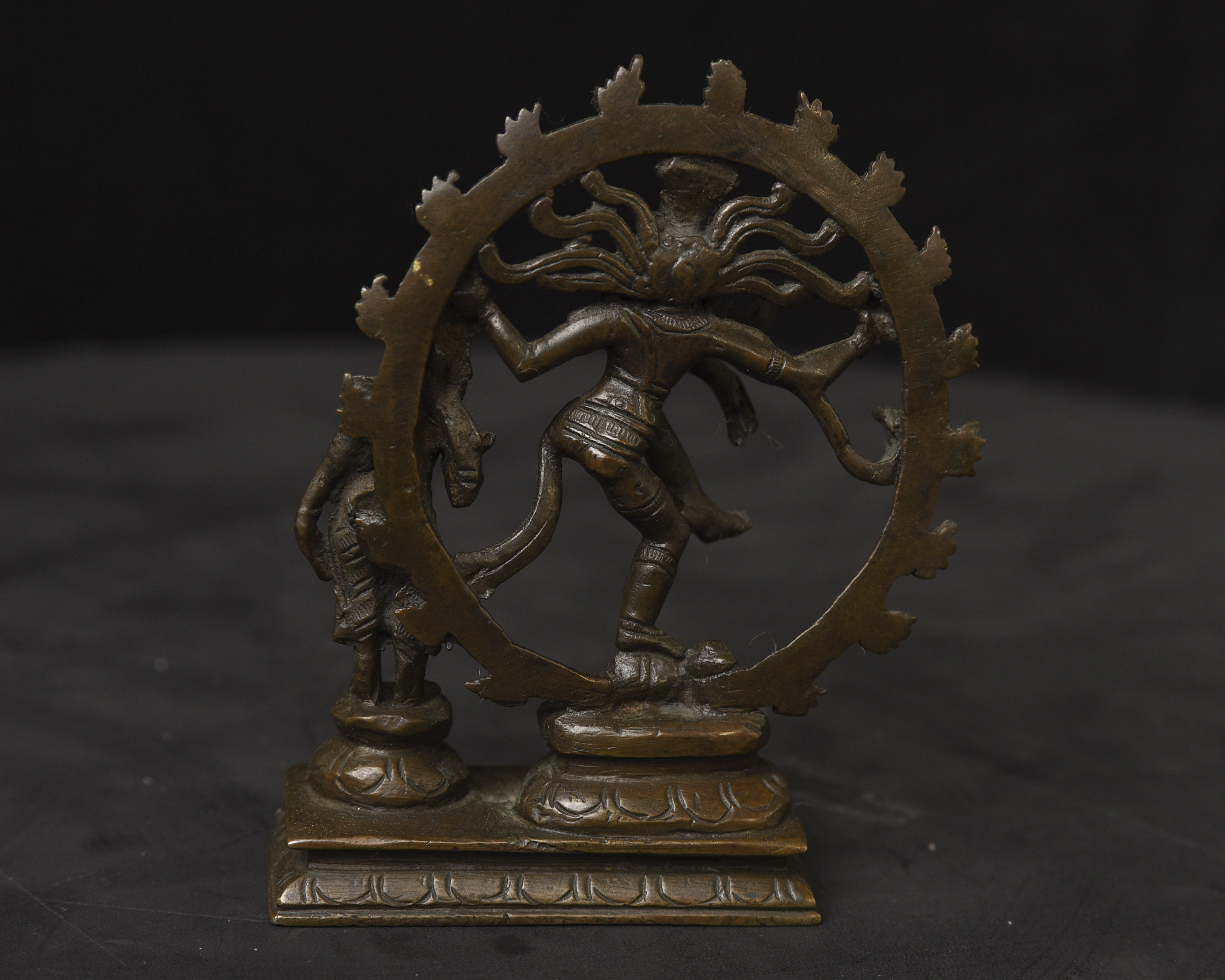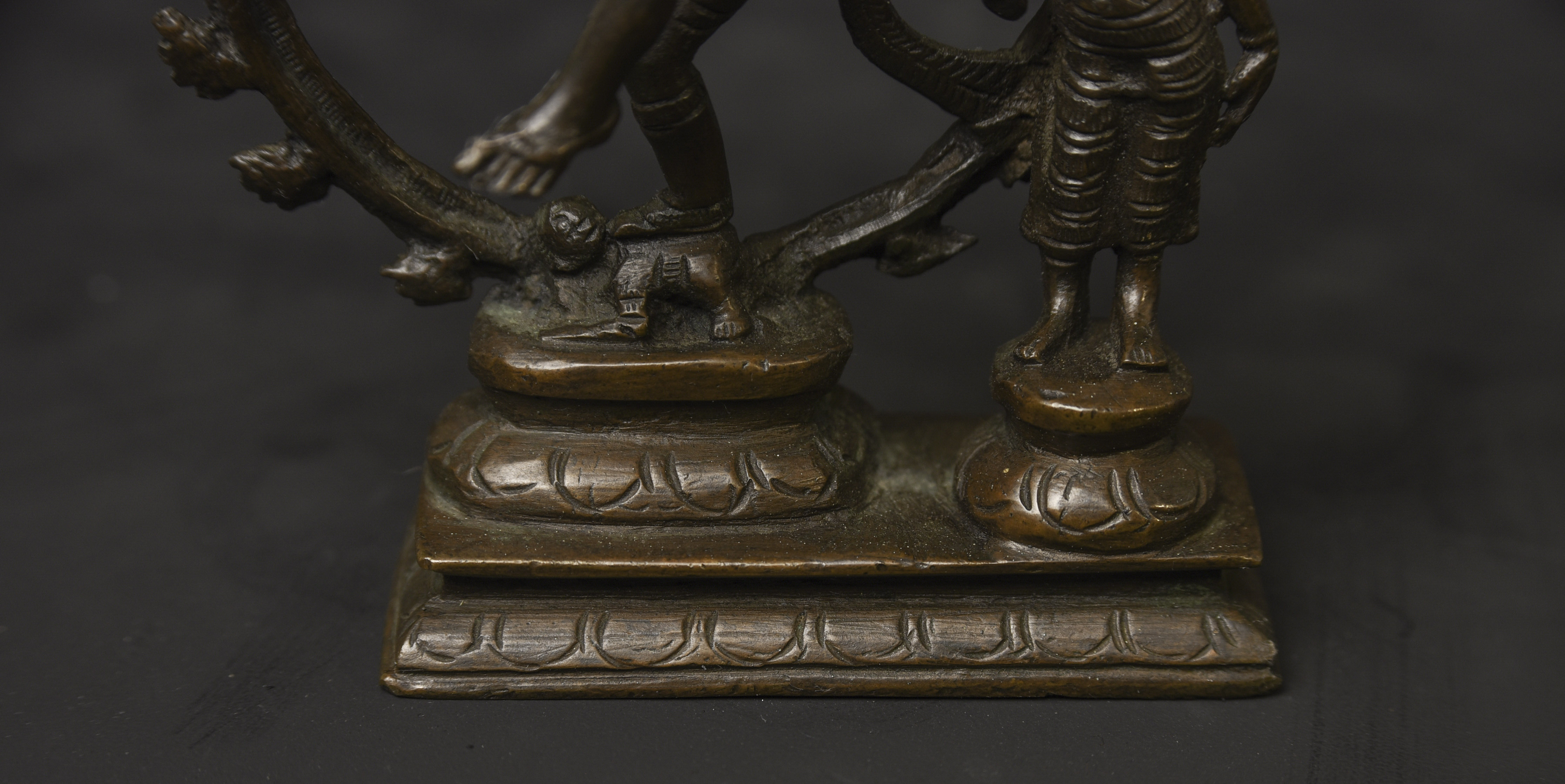 19thC India Bronze Shiva Nataraj-Beautiful lord of the dance. Rare example with consort. Remarkably, only 4.5 inches tall. Hard to find.