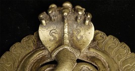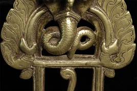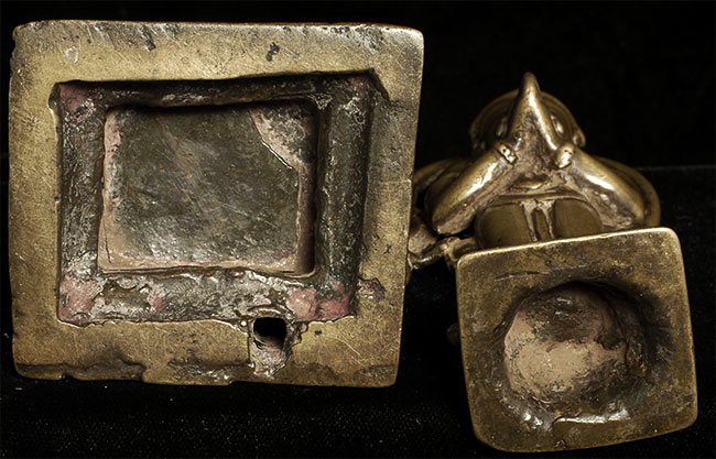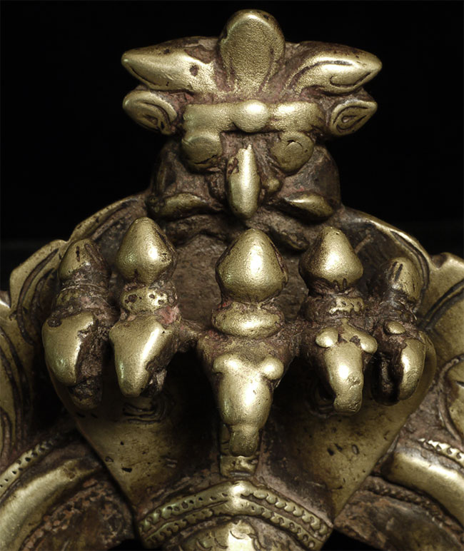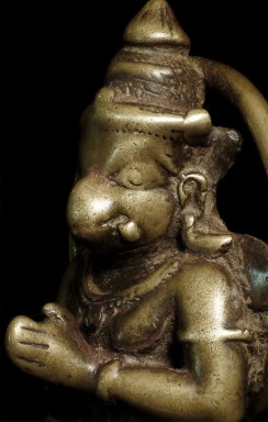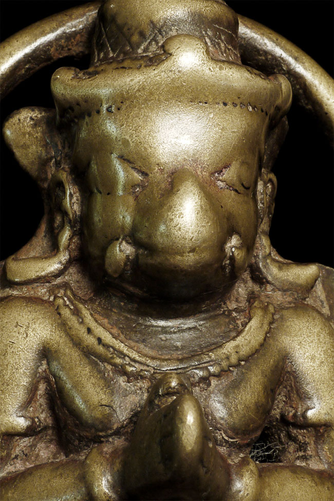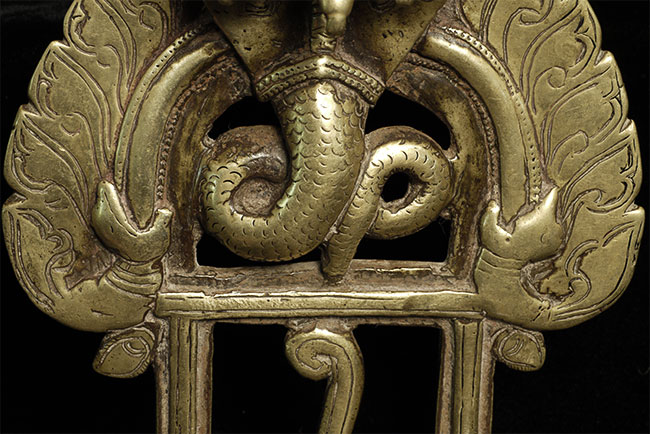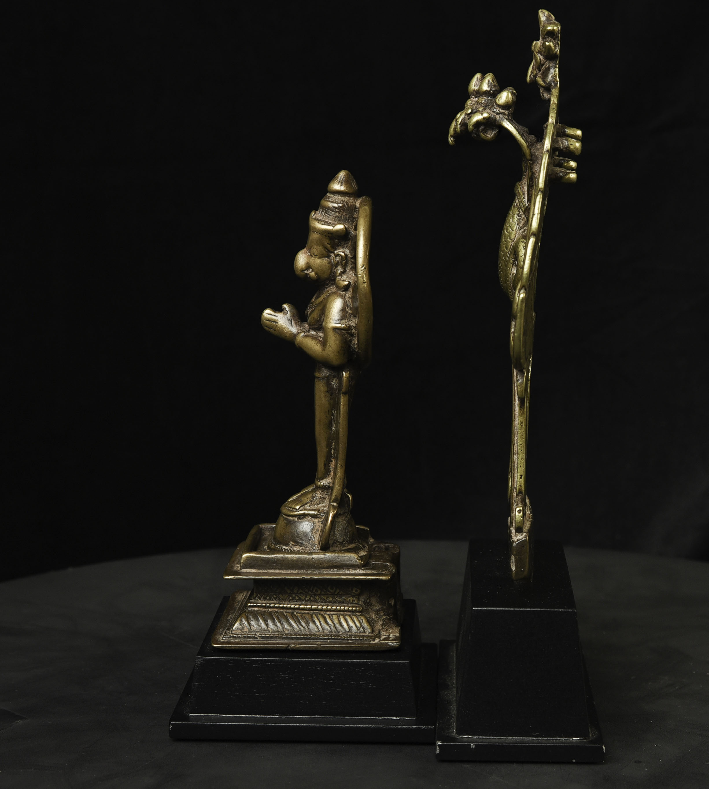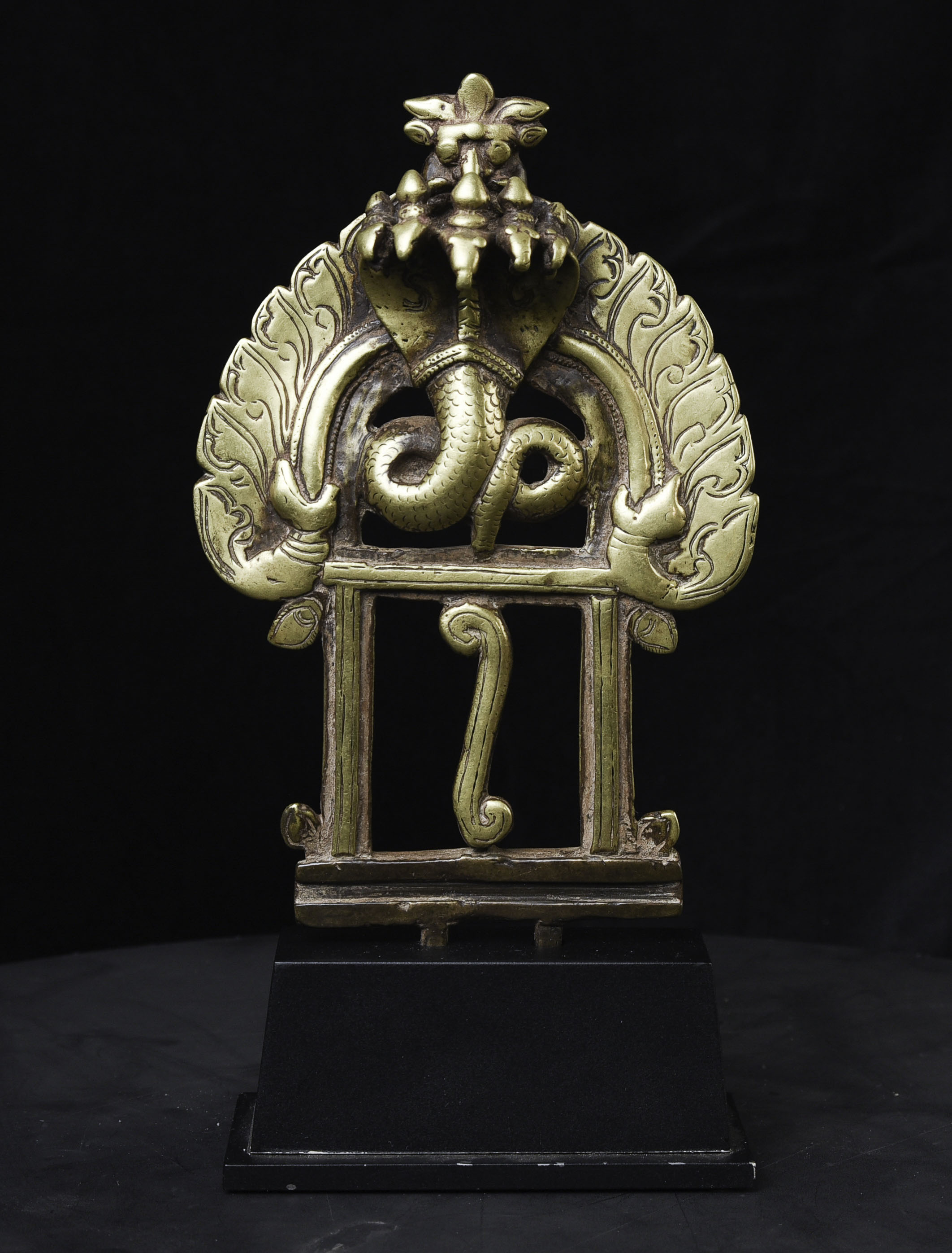 Wonderful 18thC Hanuman protected by nagas. Stands 8.75 inches tall. The widest point is 5-1/8 inches. Purchased by the previous owner from a well-known New York dealer in the 1960s. Note the additional modern base for the backplate(see the recently added photos)