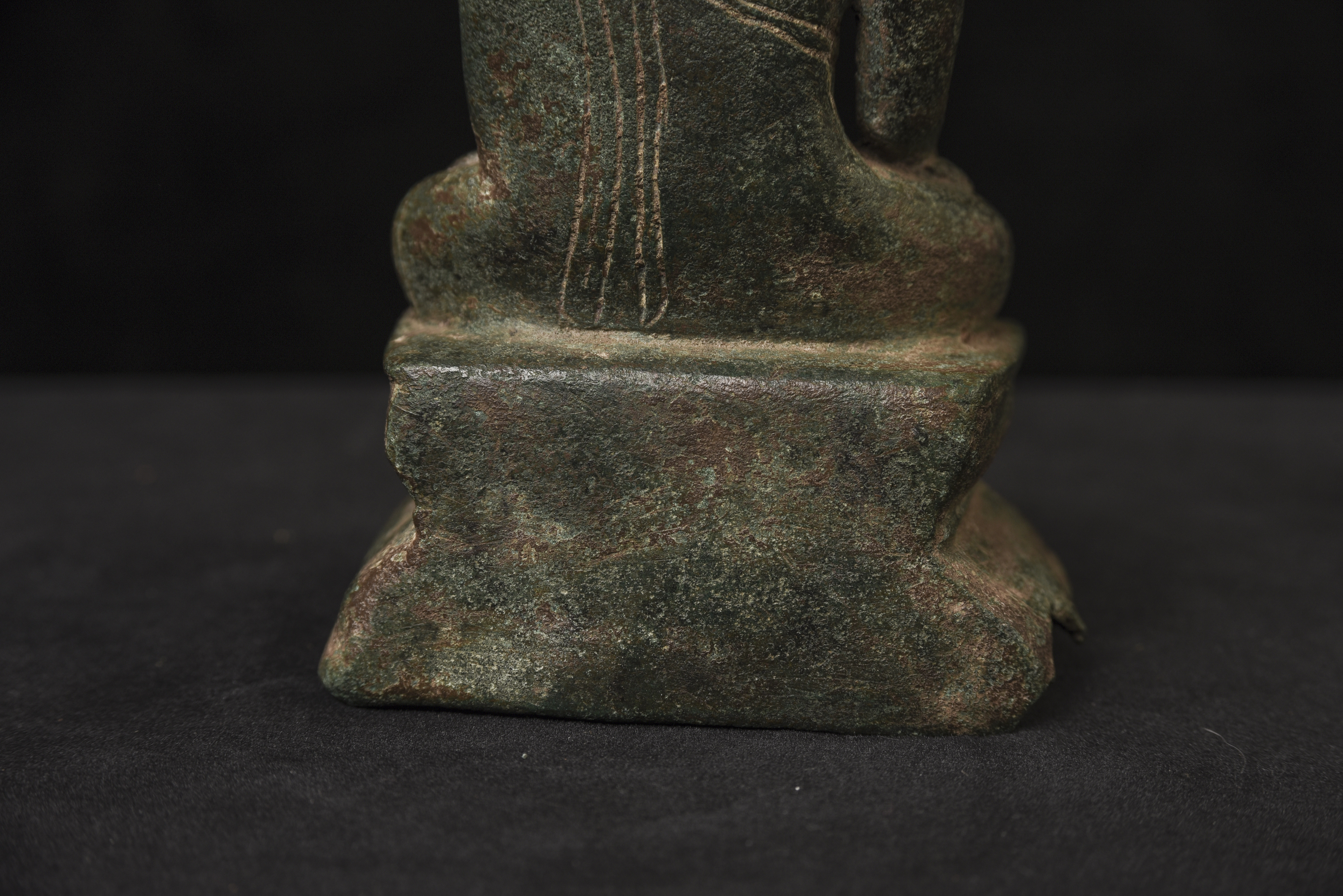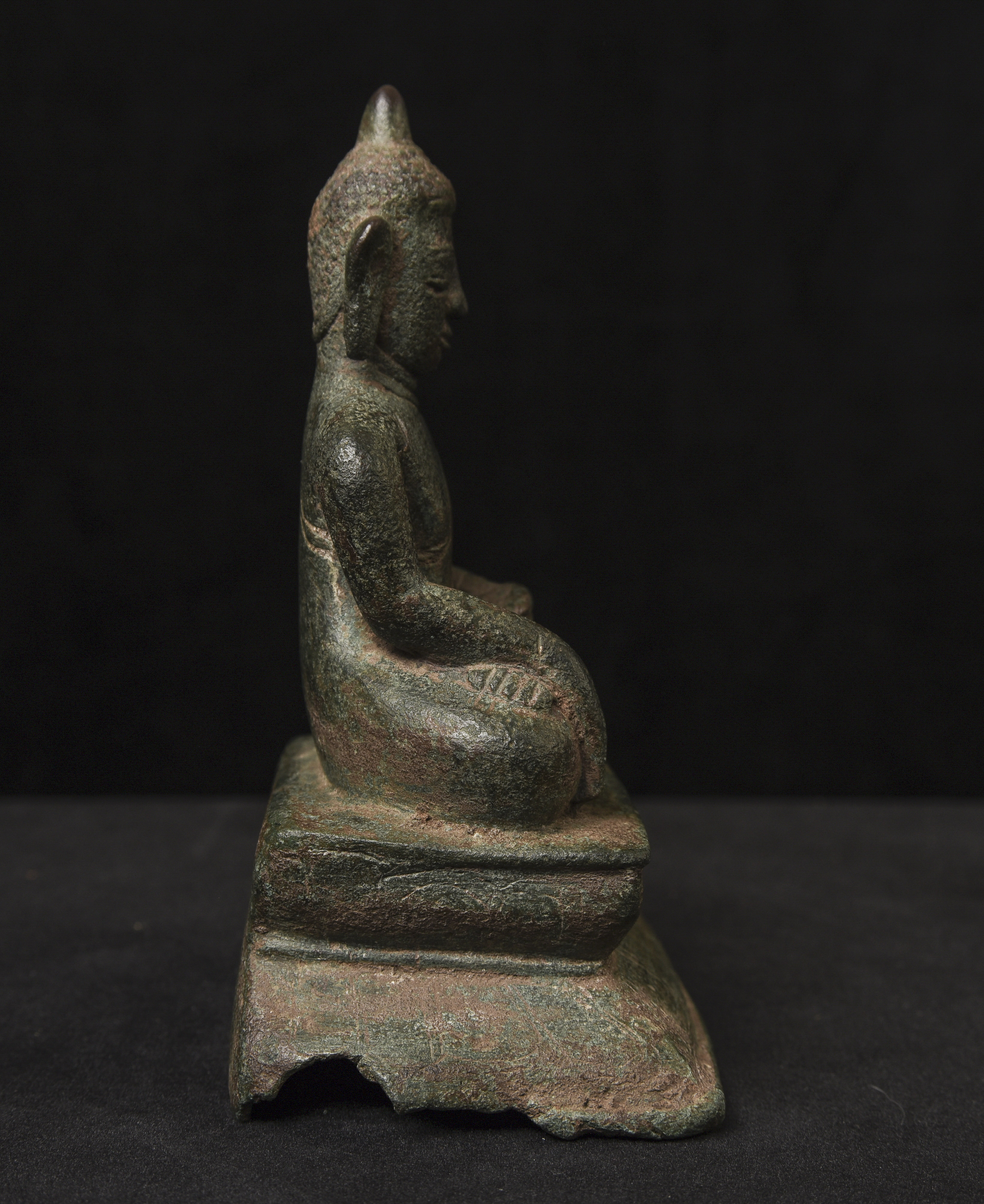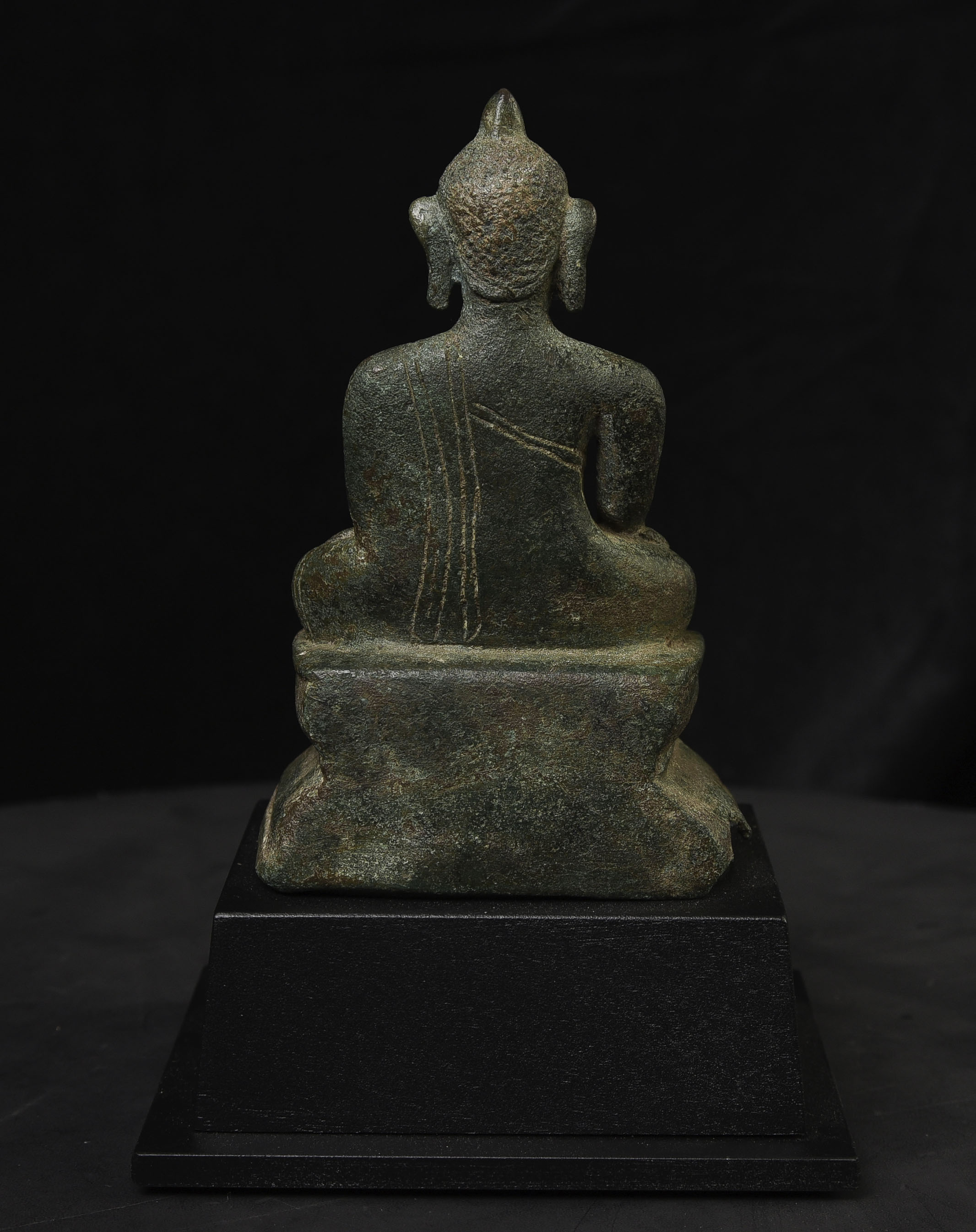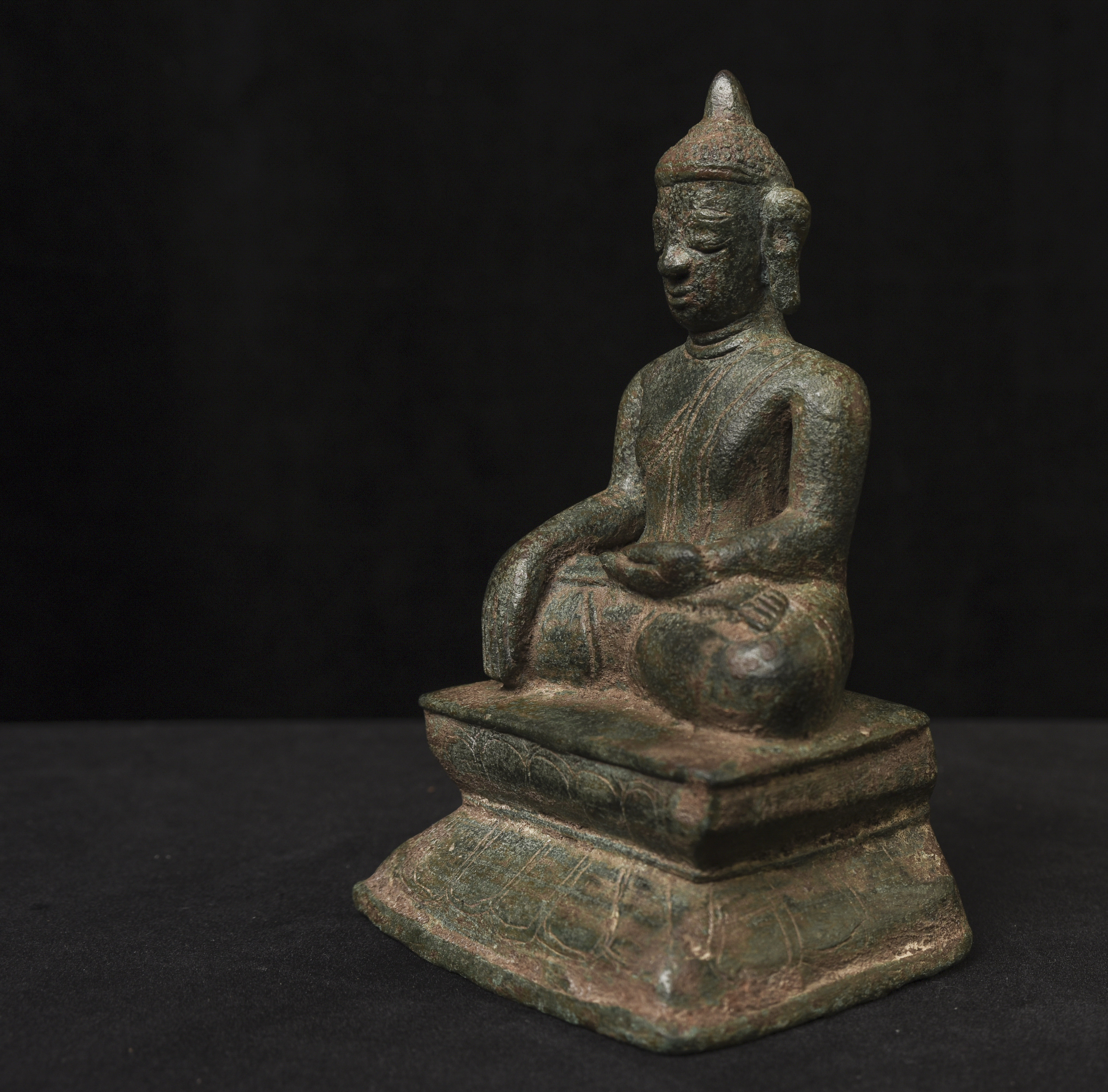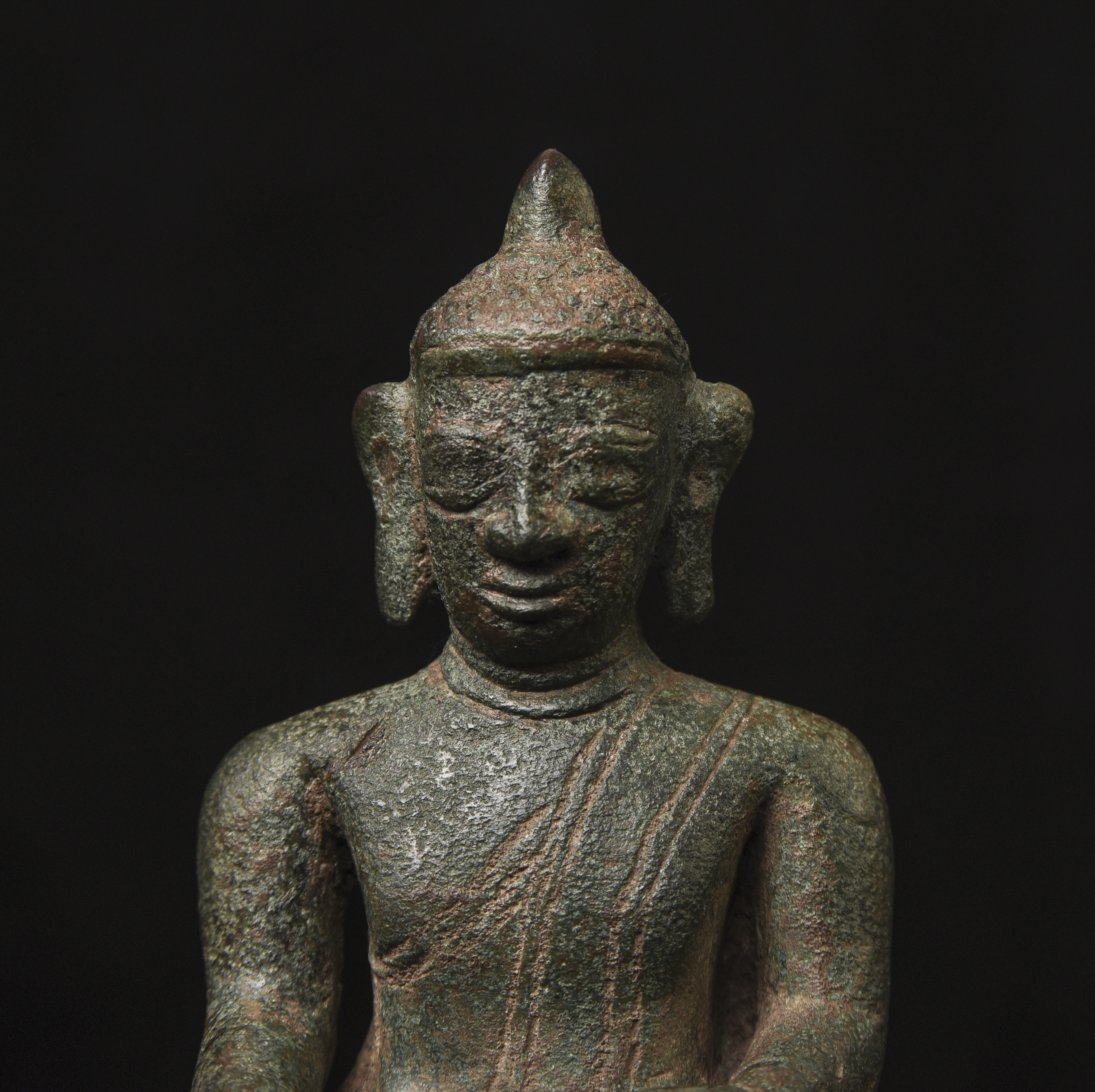 14/15thC Burmese Buddha. Very rare type. I believe it is Pinya, possibly combined with Mon influence, though it is unique. I am sure that it is at least 500 years old and likely older. Wonderful face. Superb patina. Advanced collector's piece. On a custom museum-style base. Domestic shipping with careful packing and insurance is included. International shipping to anywhere in the world is $50.
