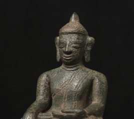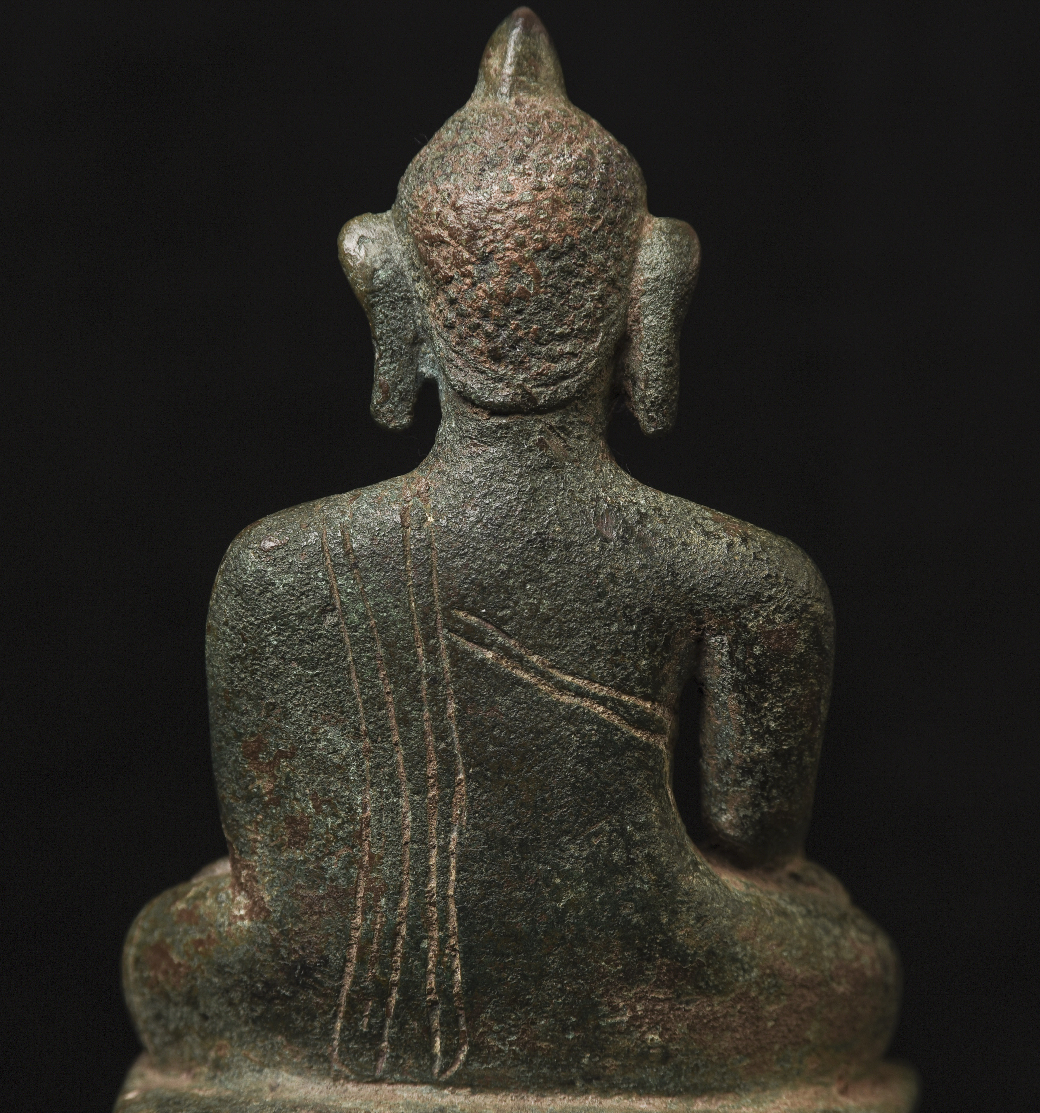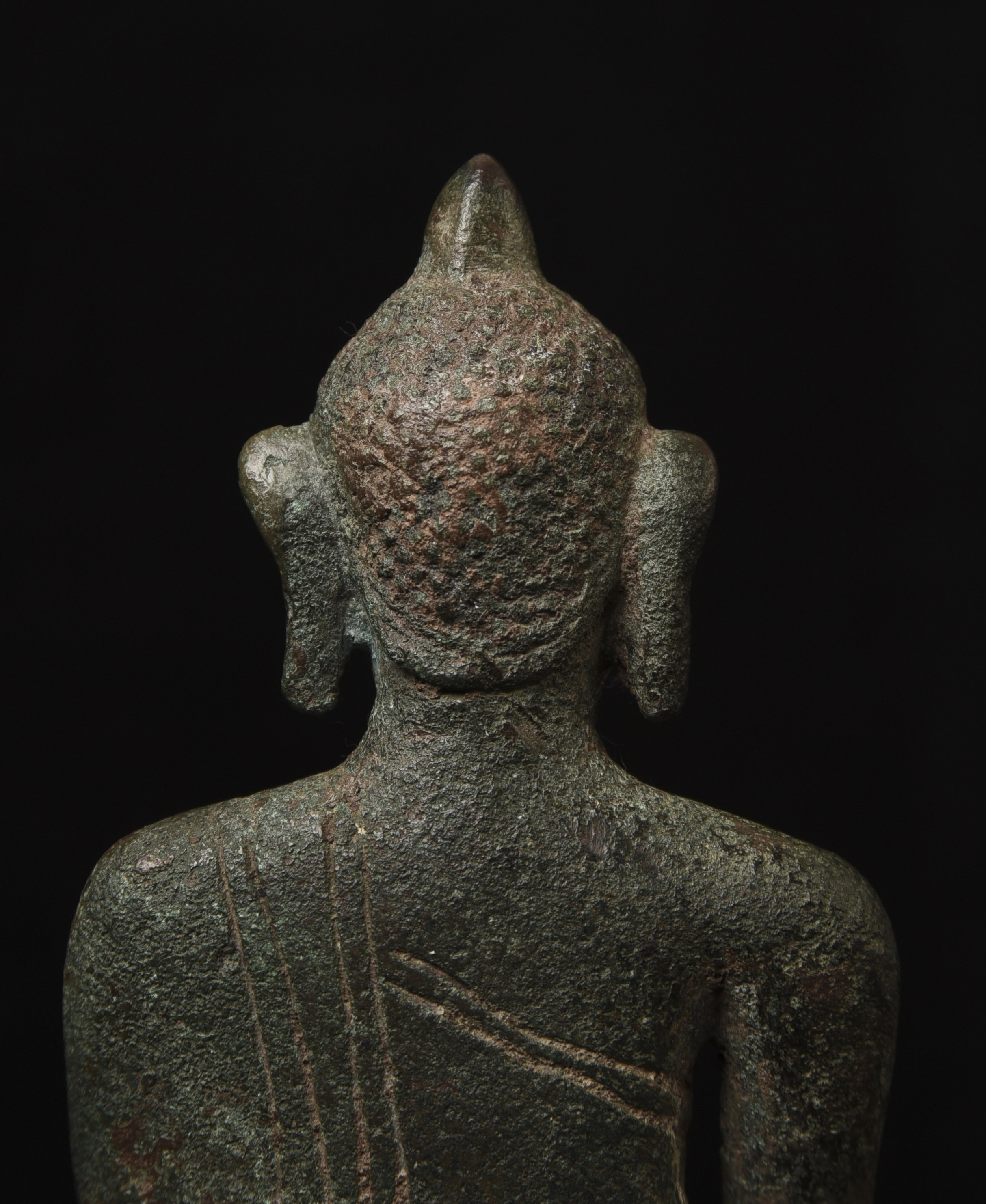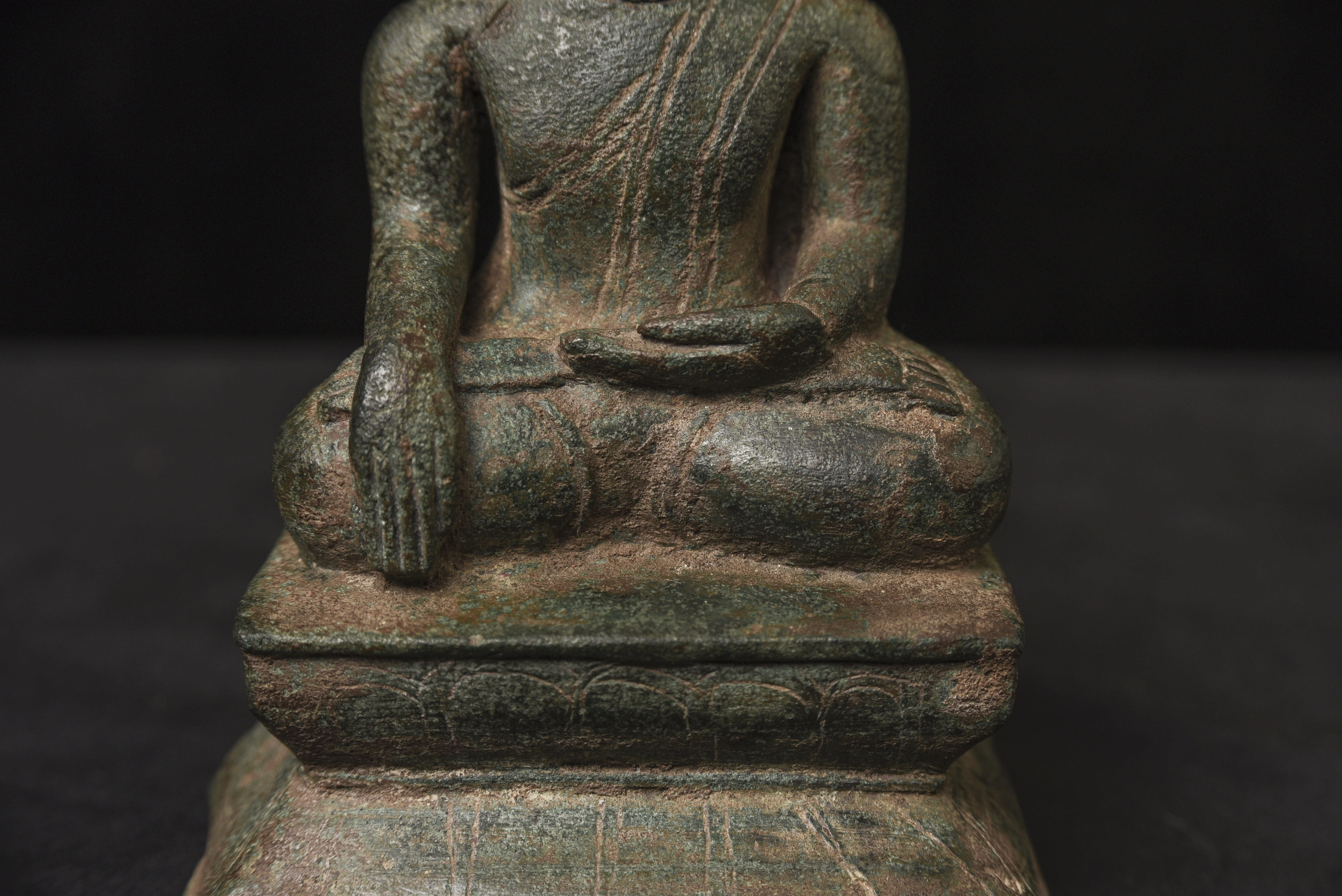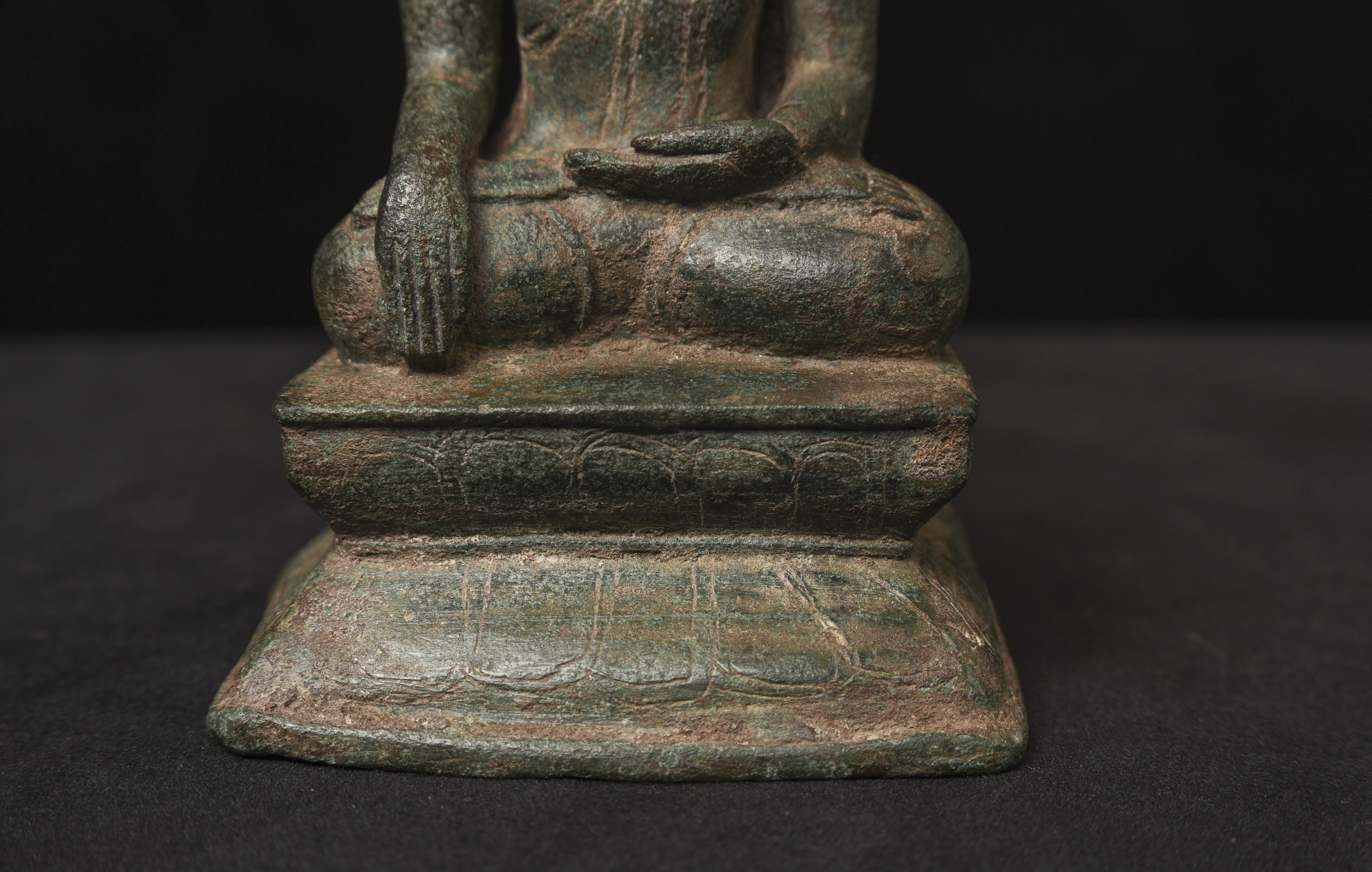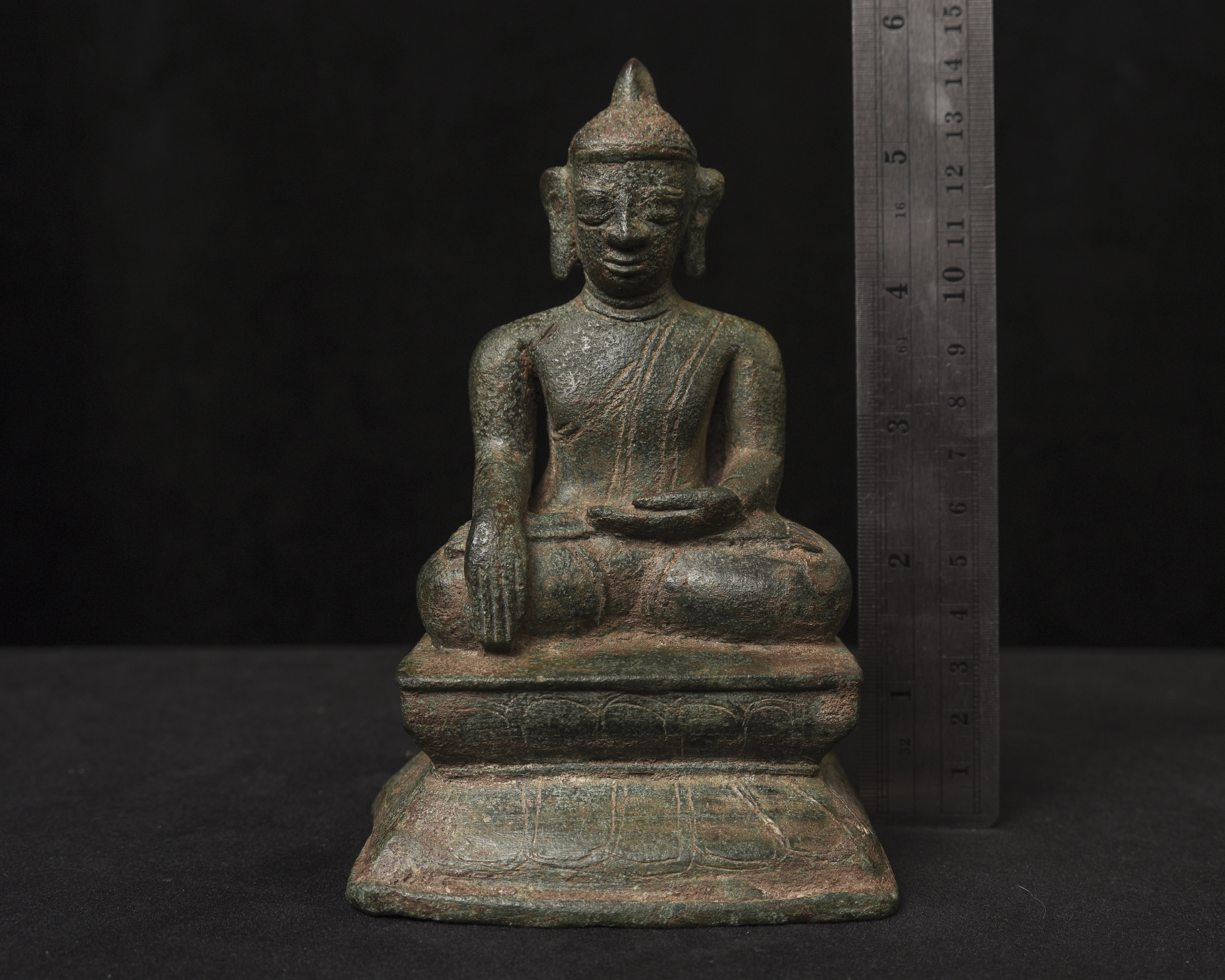 14/15thC Burmese Buddha. Very rare type. I believe it is Pinya, possibly combined with Mon influence, though it is unique. I am sure that it is at least 500 years old and likely older. Wonderful face. Superb patina. Advanced collector's piece. On a custom museum-style base. Domestic shipping with careful packing and insurance is included. International shipping to anywhere in the world is $50.