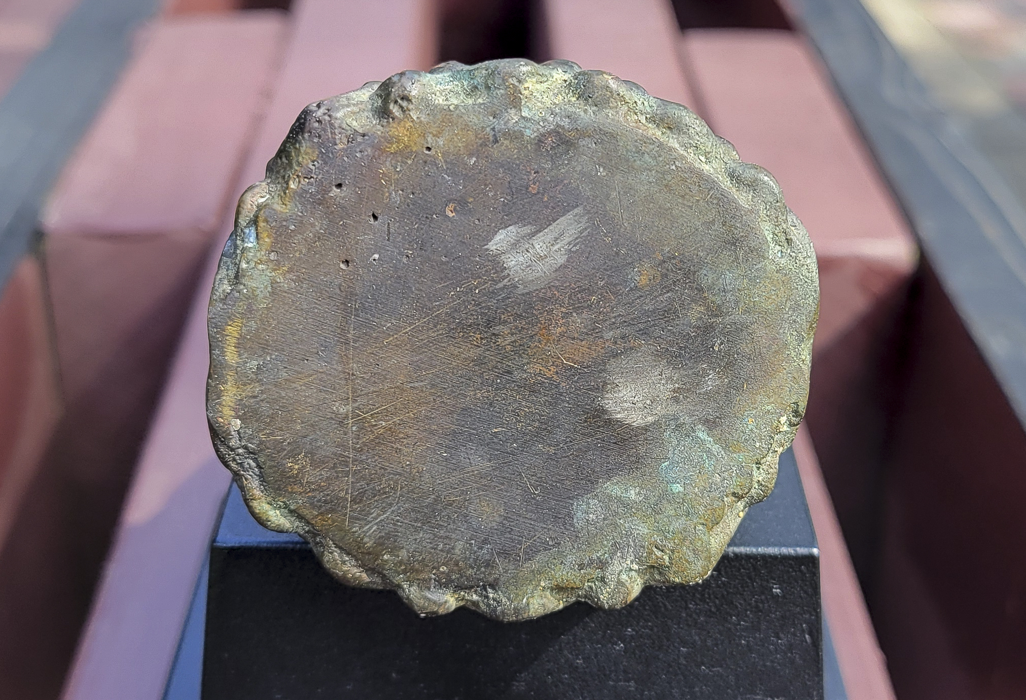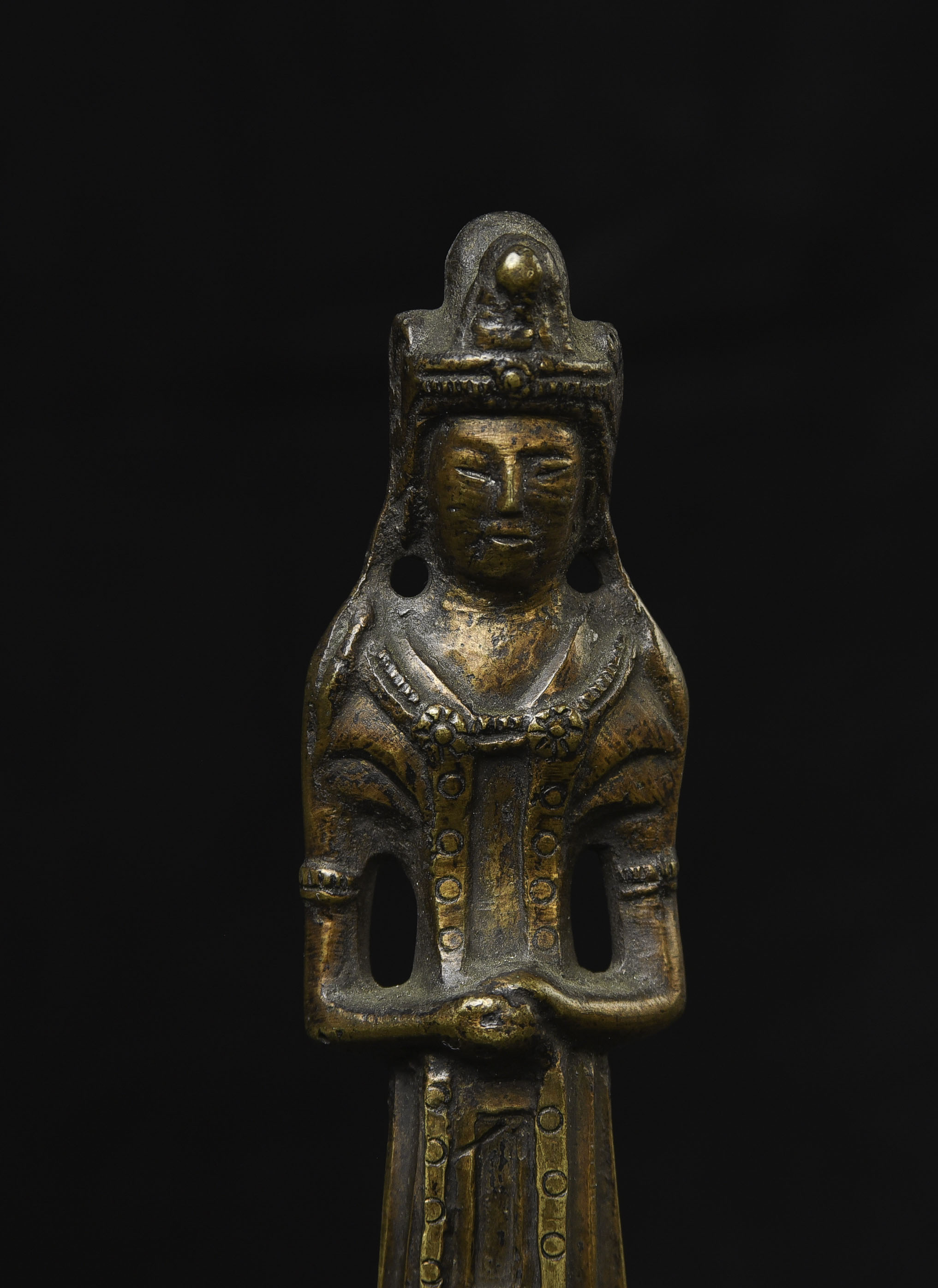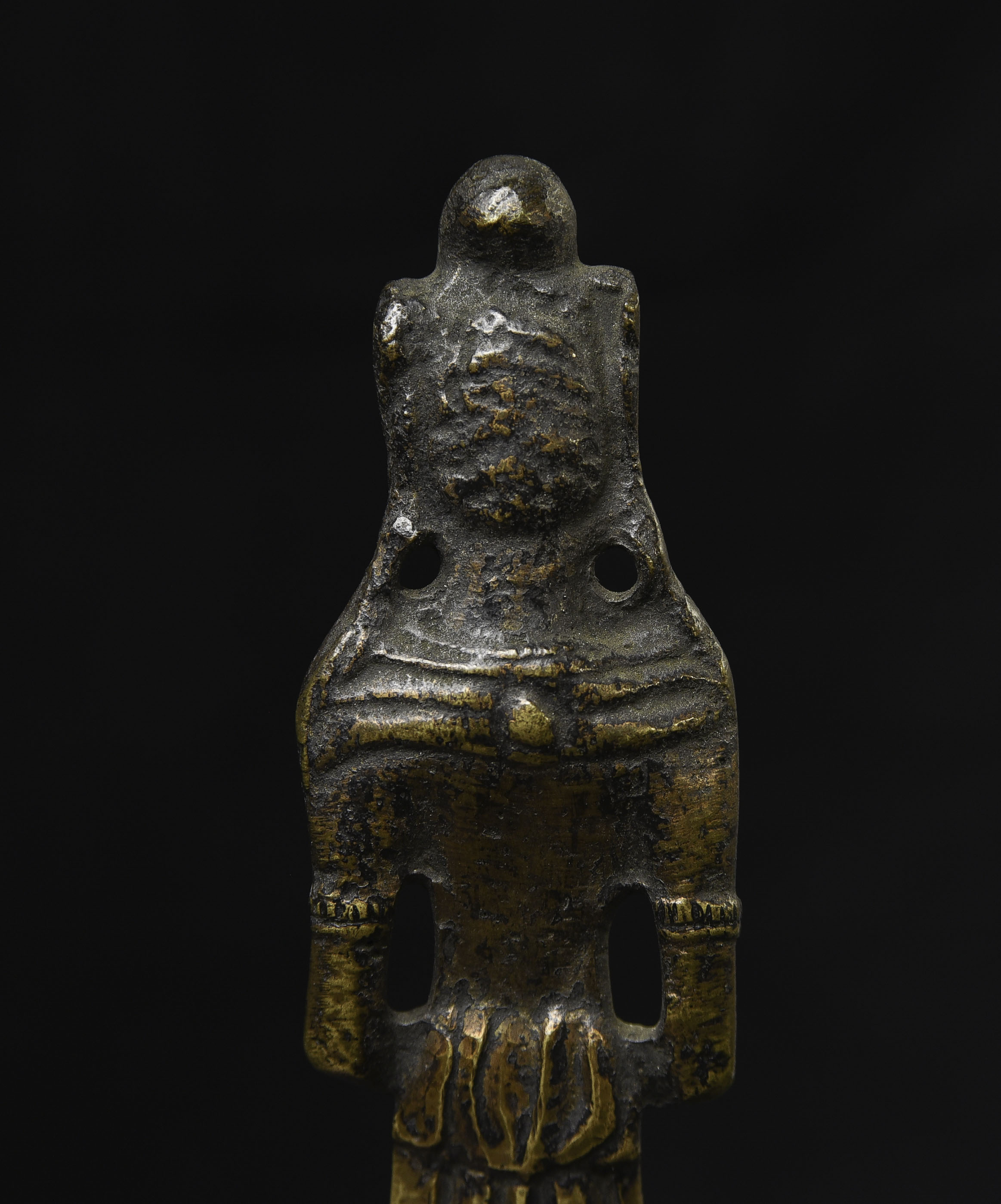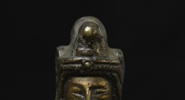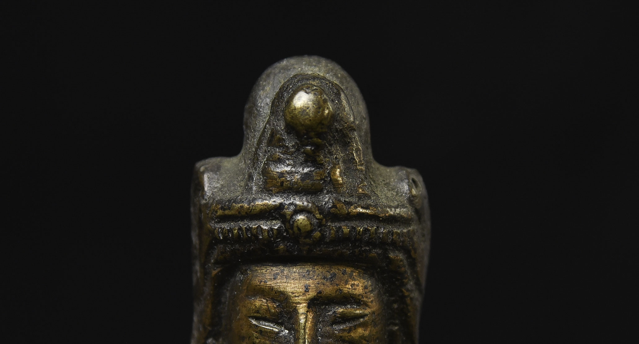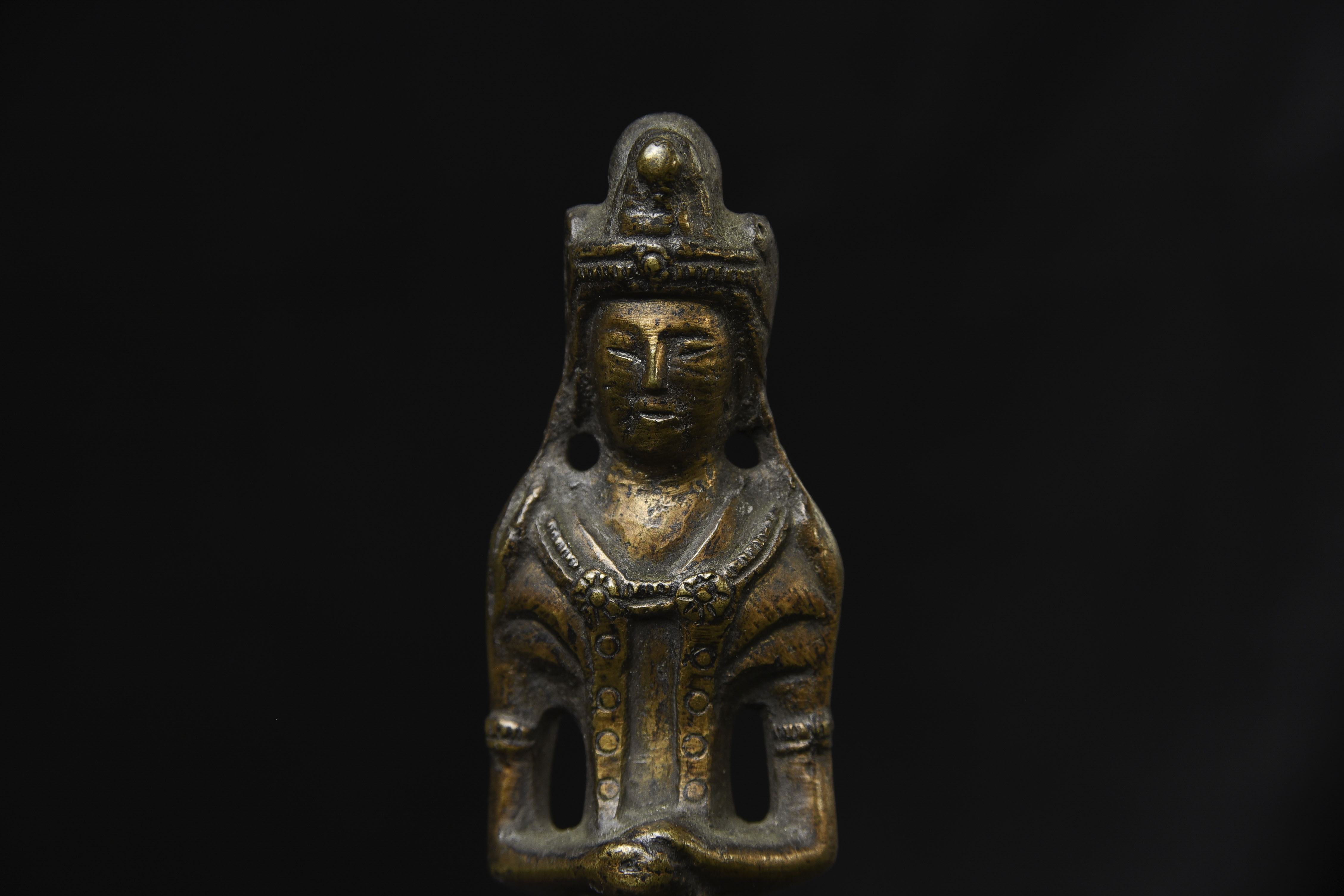 This piece is from China or Korea. I have had three of the style over the past 30 years, this is the largest, and the only one that has this very unusual lead alloy integral base that appears original. The Buddha on the base is 7". Theirs is 4/7/8 ((has no base)to this one has-in their June 2016 auction (lot 175) with a pre-estimate of 2000 to 3000 Swiss dollars. They describe theirs as 6th-century Sui, and Chinese. Koller often sells much higher than their pre-auction estimates. The last photo below is of the Koller example up for auction. Please see my website thebuddhagallery.com and put 6721 and 7419 in the search box (only one at a time)to see related examples. Starting bid lowered.