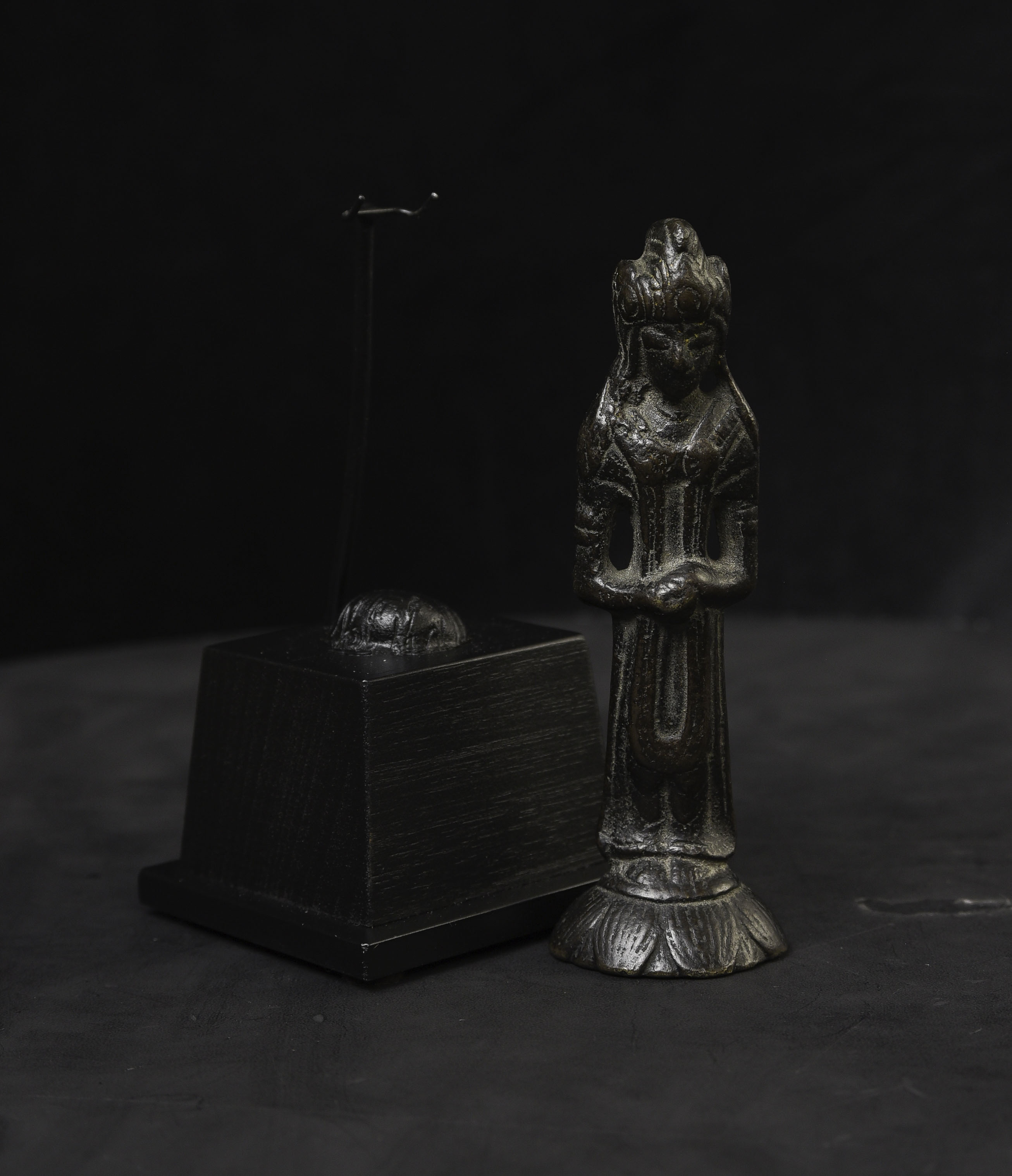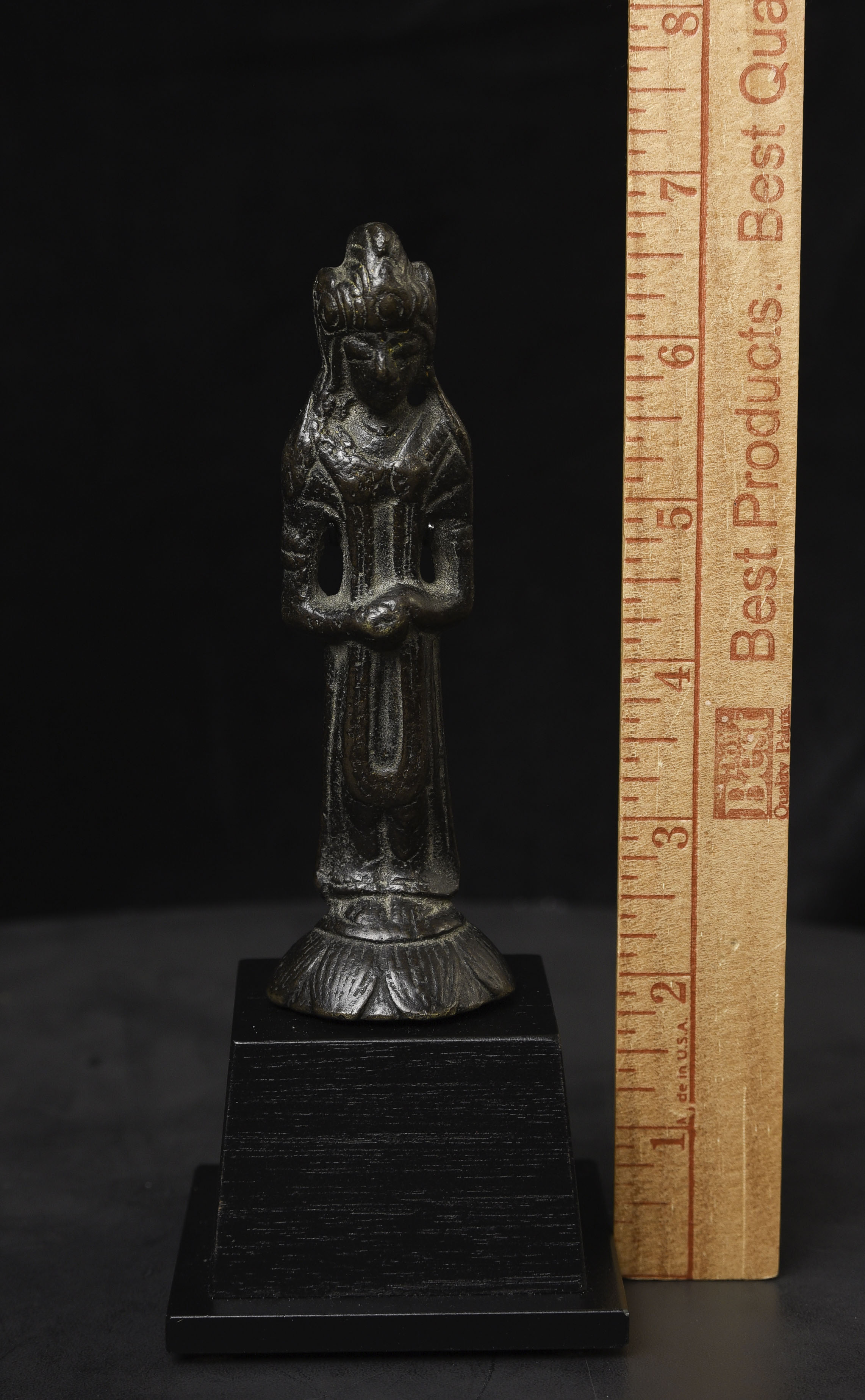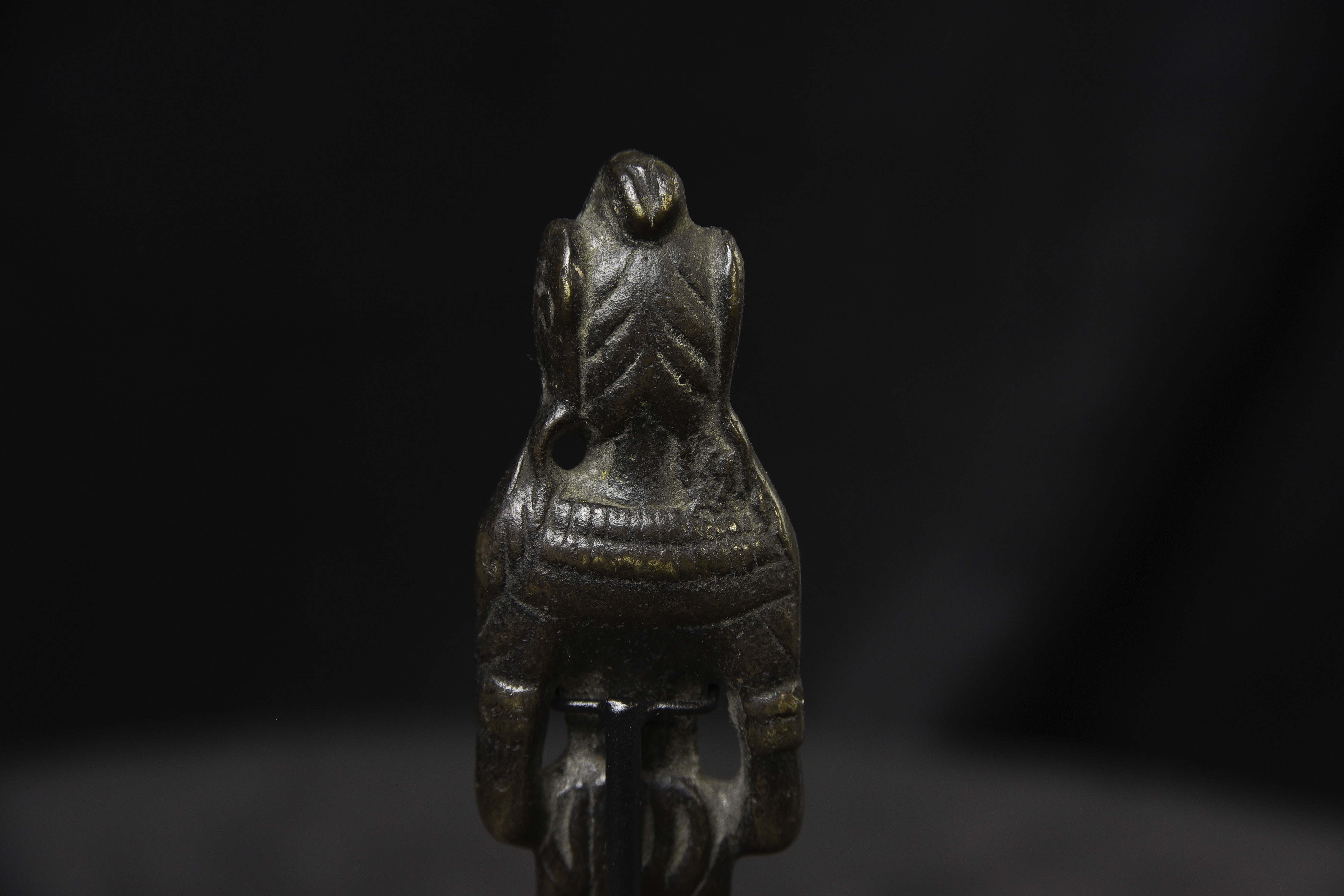 This piece is likely Sui from China o. I have had three of the style over the past 30 years, One came from Koller Auction House with a pre-estimate of 2000 to 3000 Swiss dollars. They describe theirs as 6th-century Sui and Chinese. Koller often sells much higher than their pre-auction estimates. The last photo below is of the Koller example up for auction. (4.75"H x 1.5"W x 1.25"D - 190g)