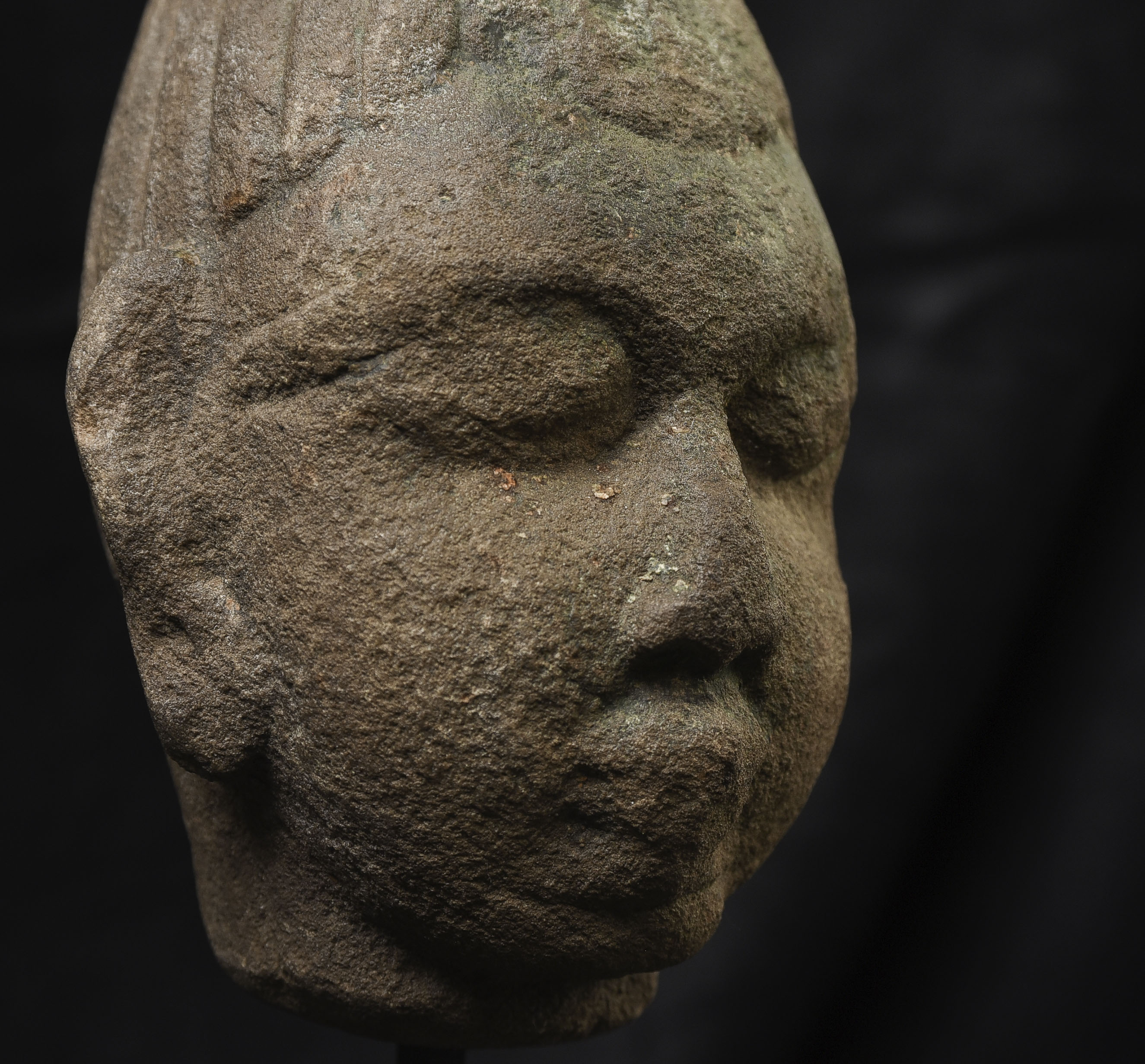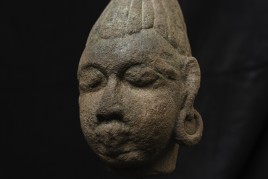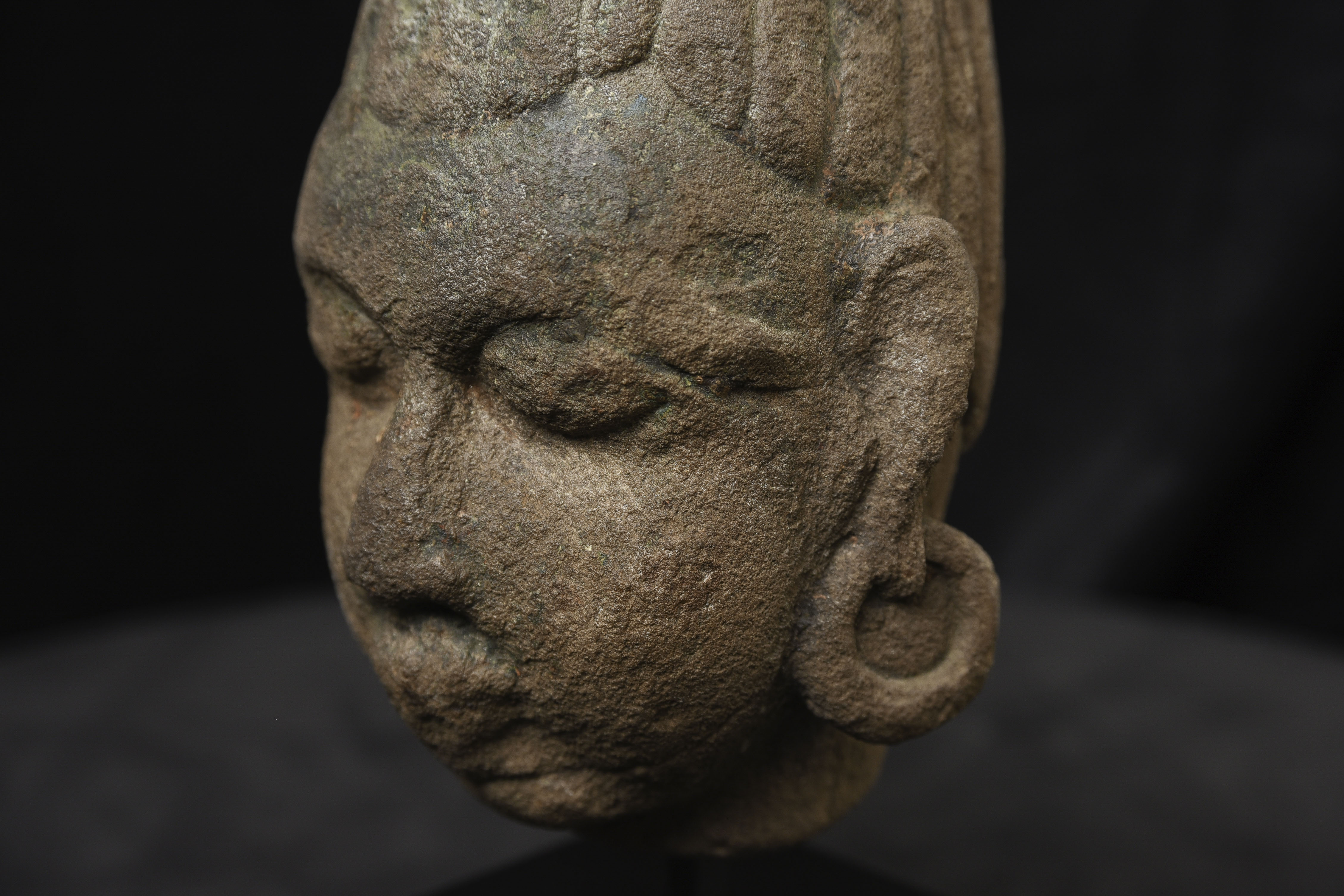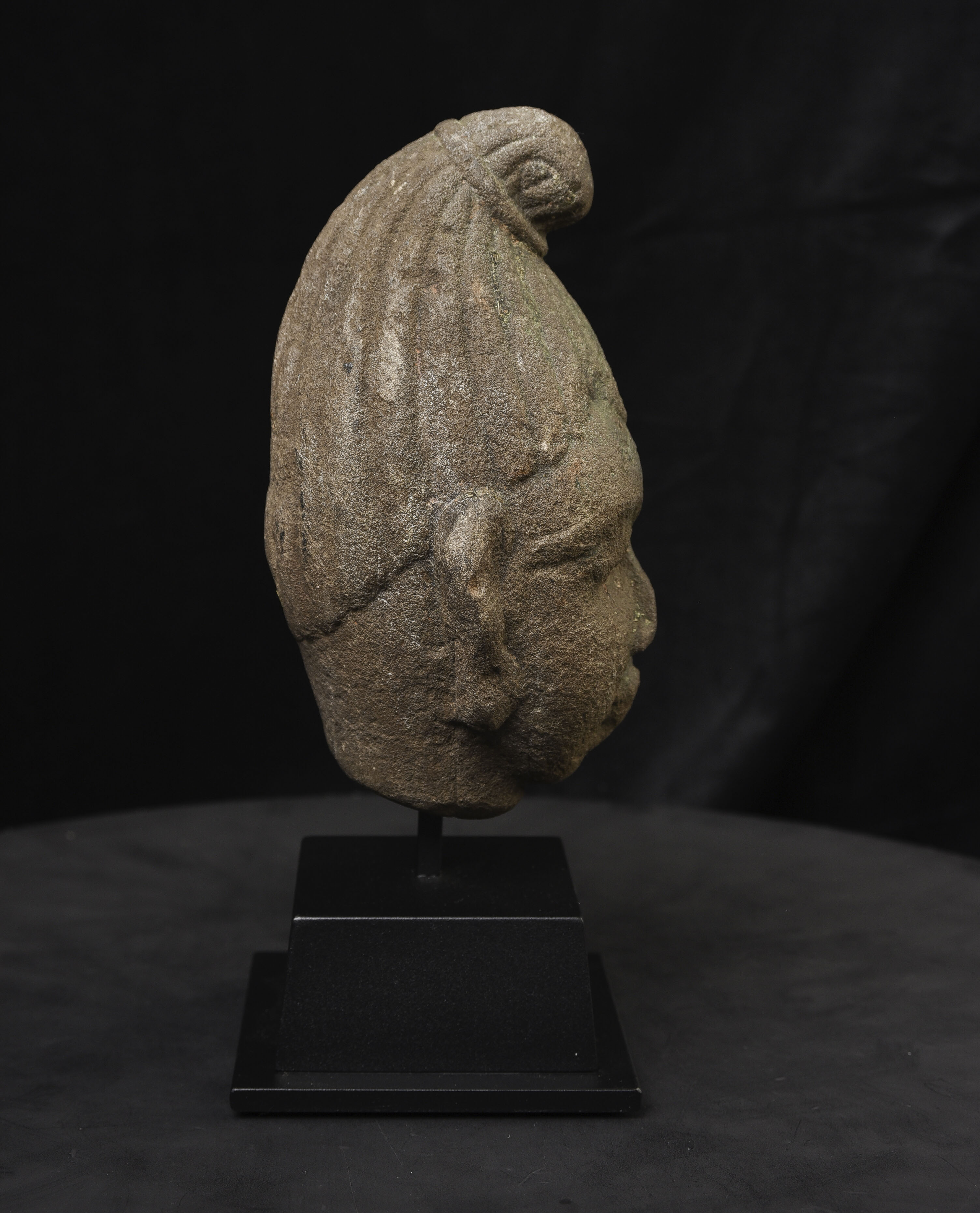Very early Himalayan or SE Asian Stone Head. The few related pieces I've seen were approaching 2,000 years old. Carved with great sensitivity.
