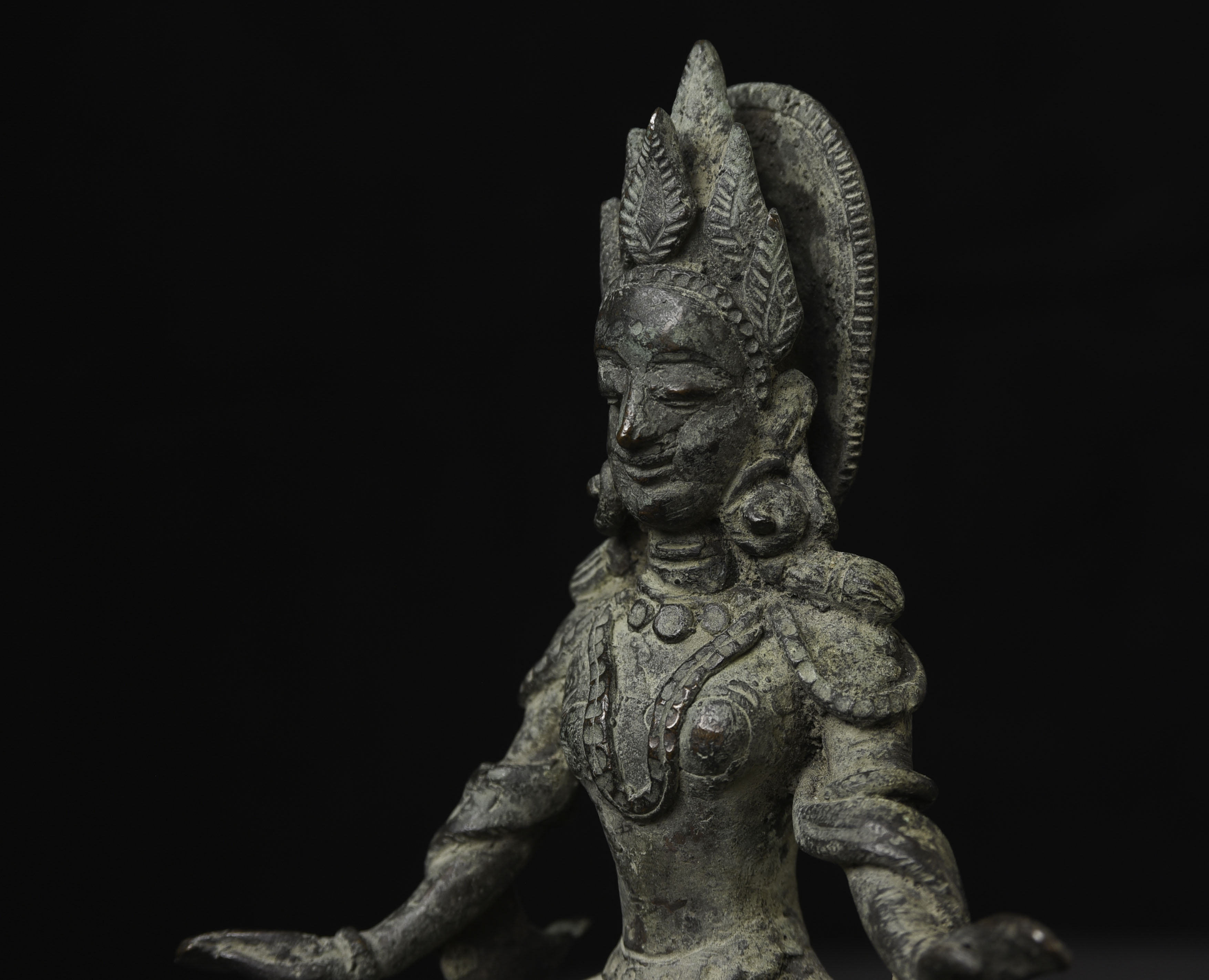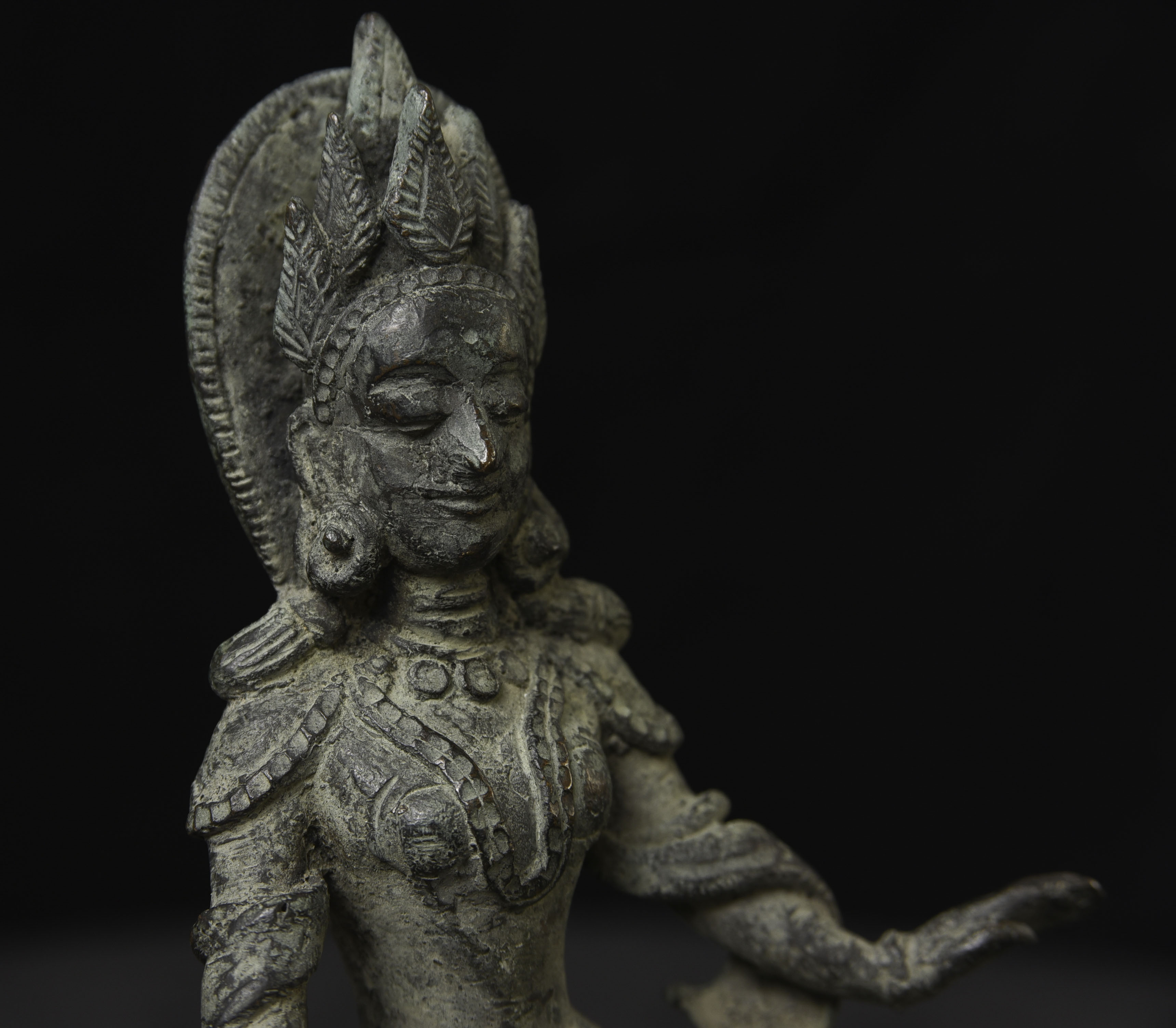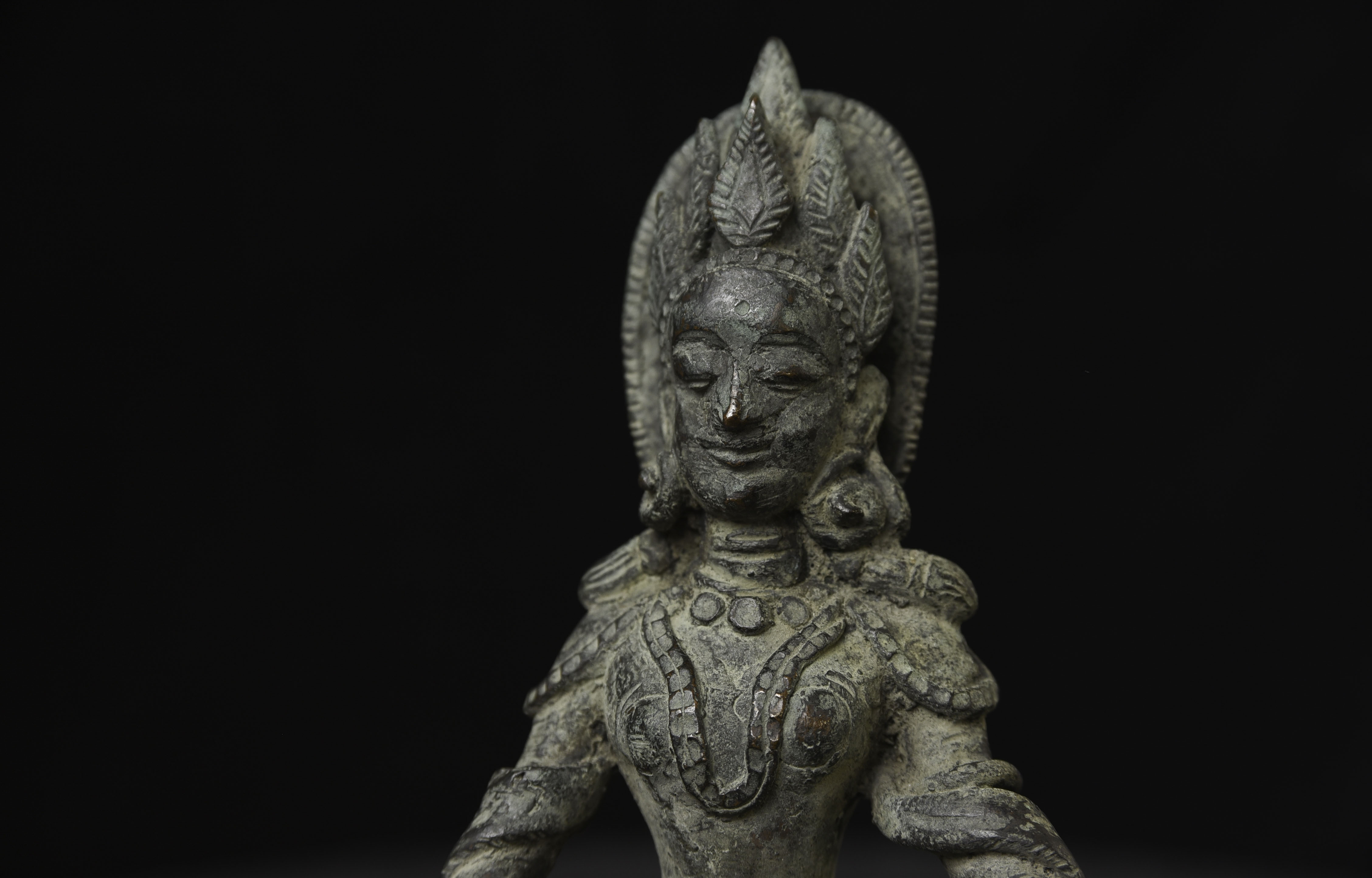Very rare Hindu figure from Burma from possibly as early as Pyu period. Similar to item 9002, though unsure it is quite as early as that example, though they are remarkably related. This piece measures 5.625 H x 3.75"W tall not including the custom base