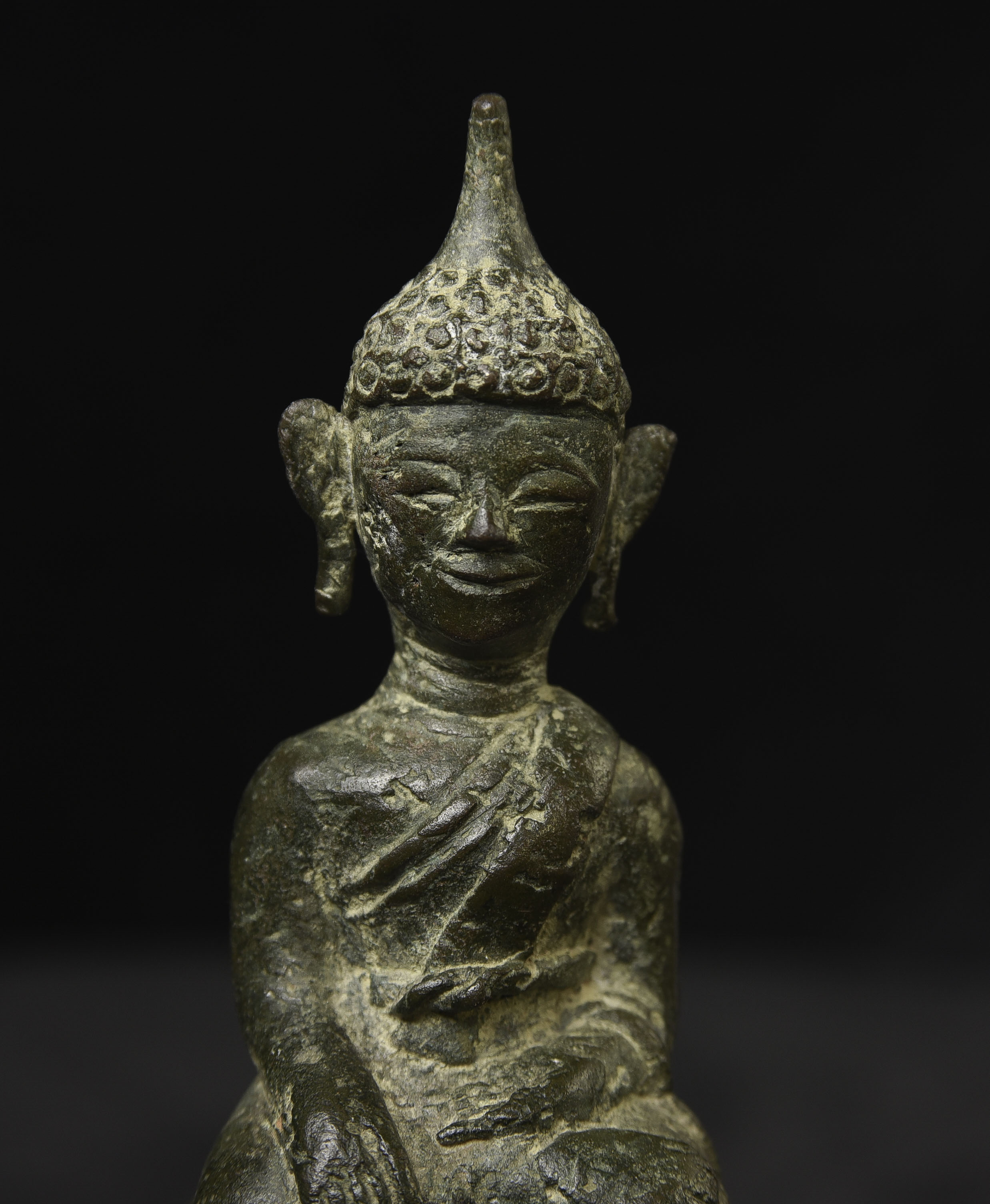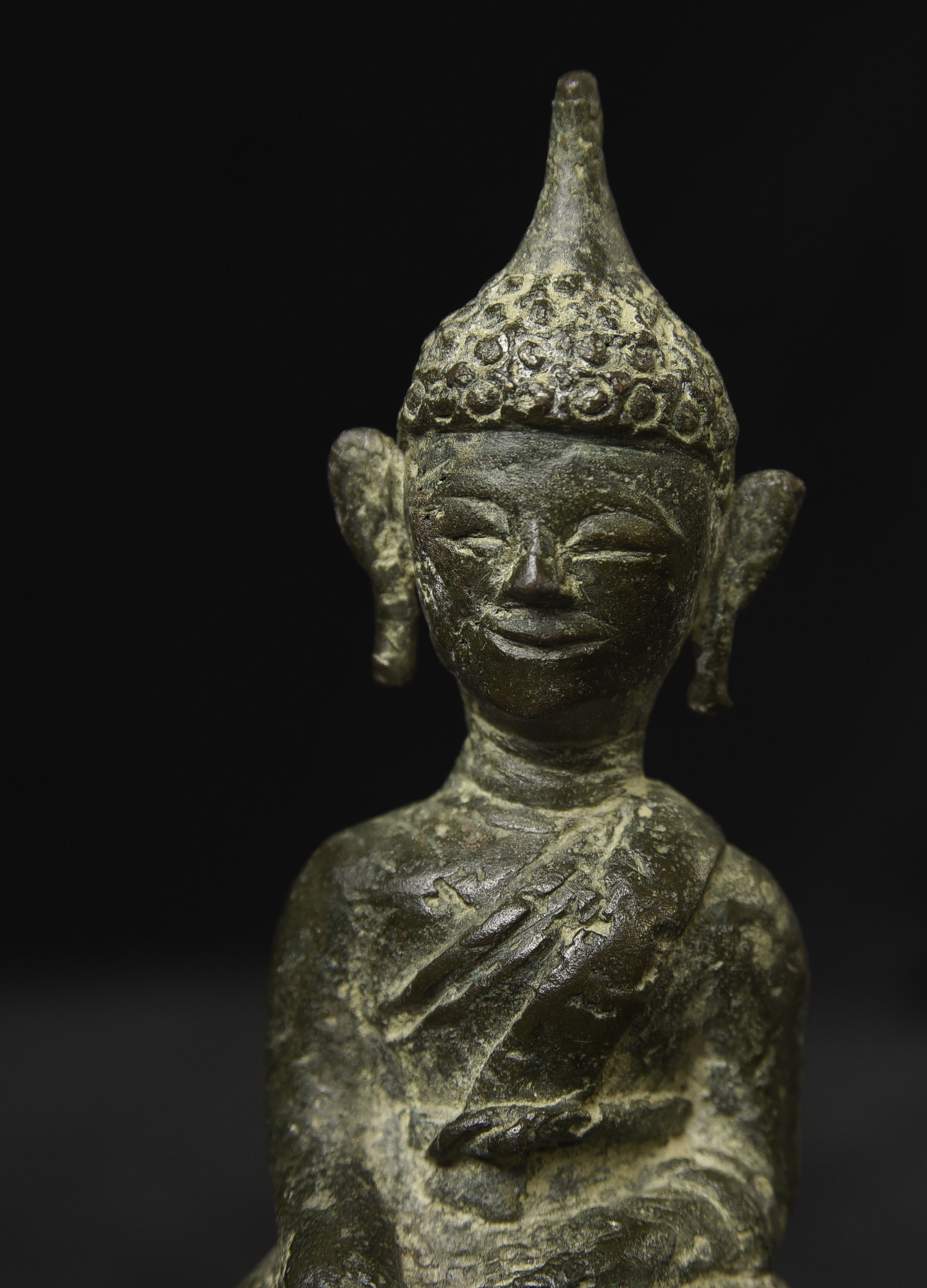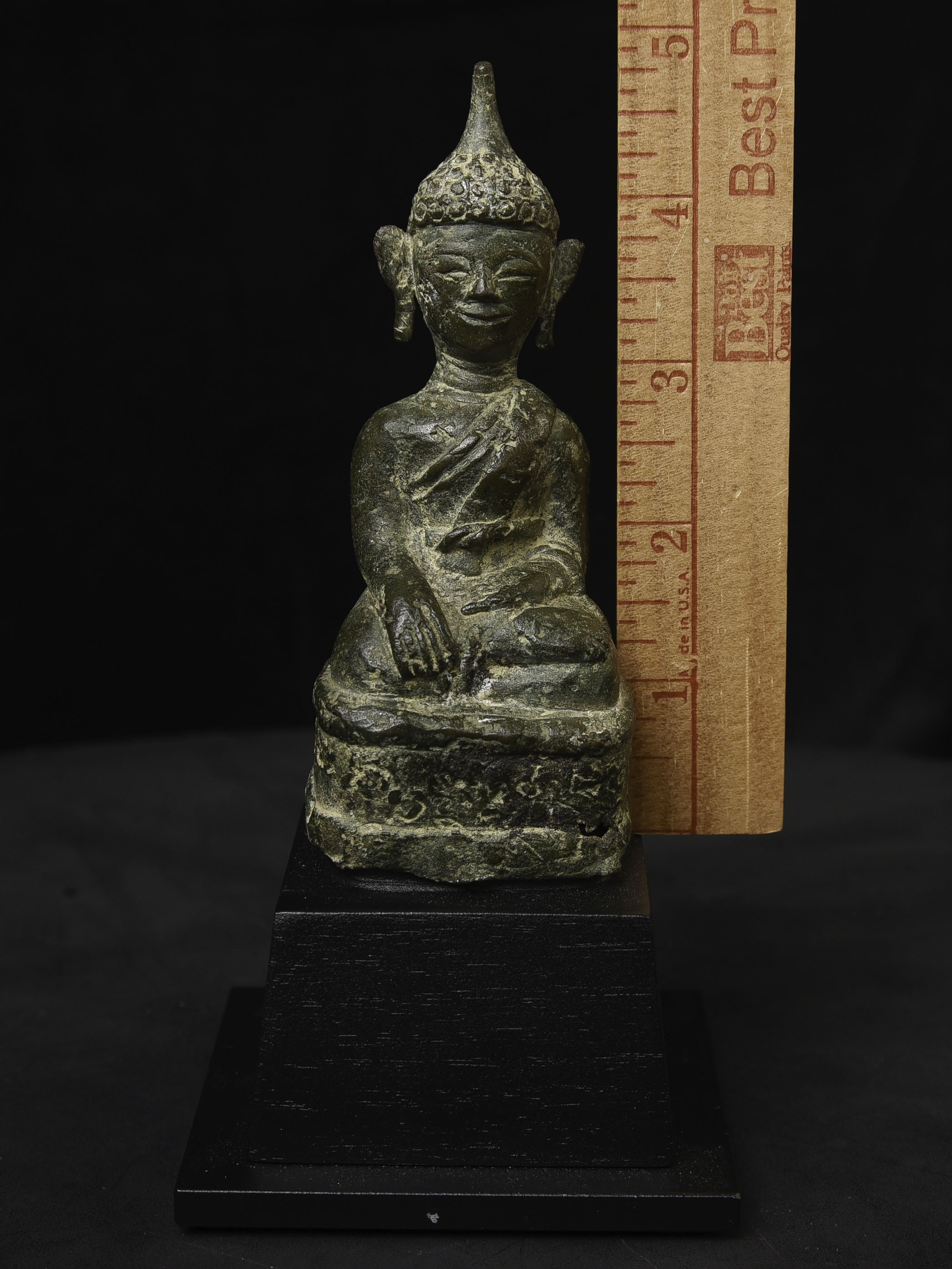 Sweet 17/18thC Lao Bronze Buddha. 4.75" tall, bottom measures 2" x 1.75"