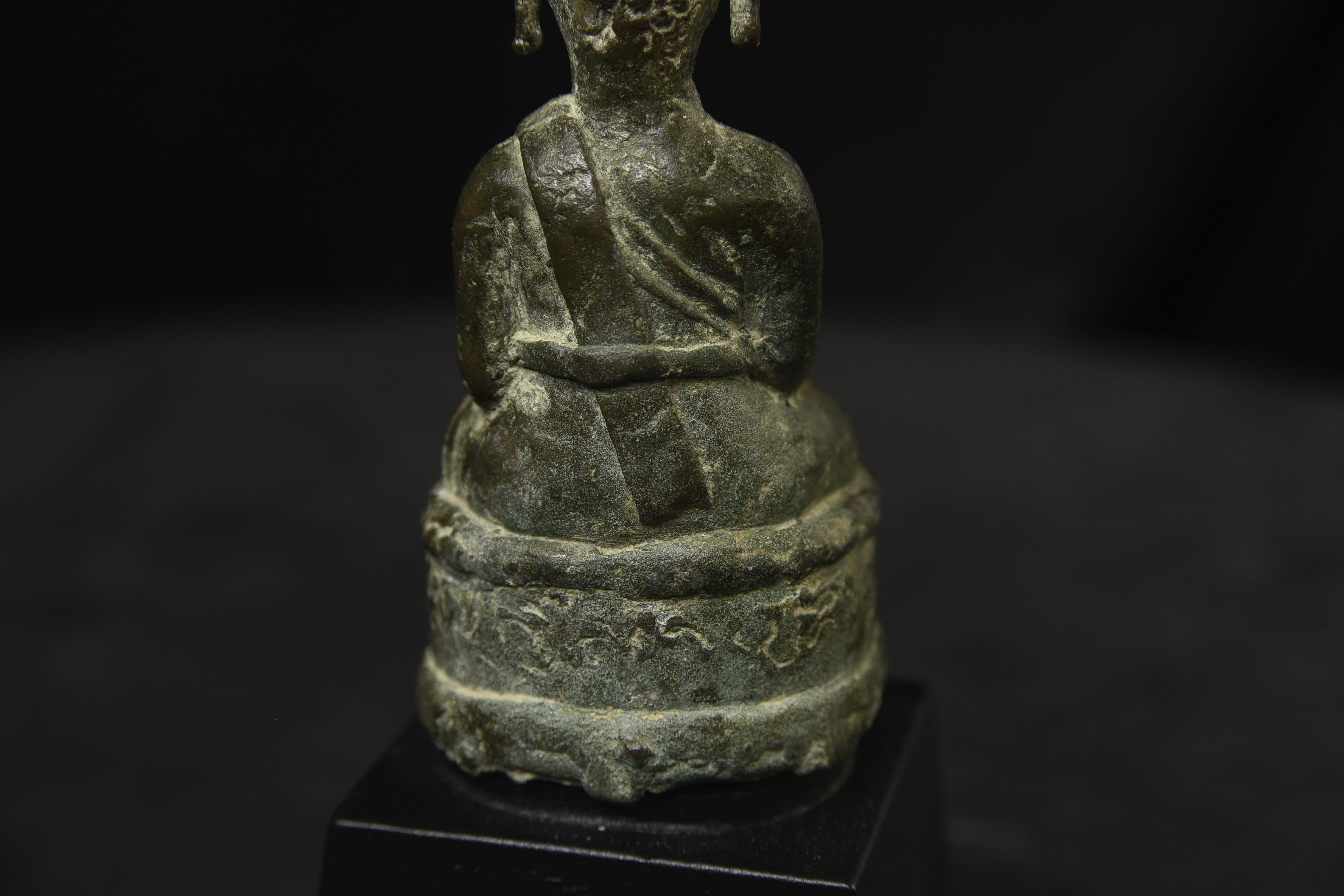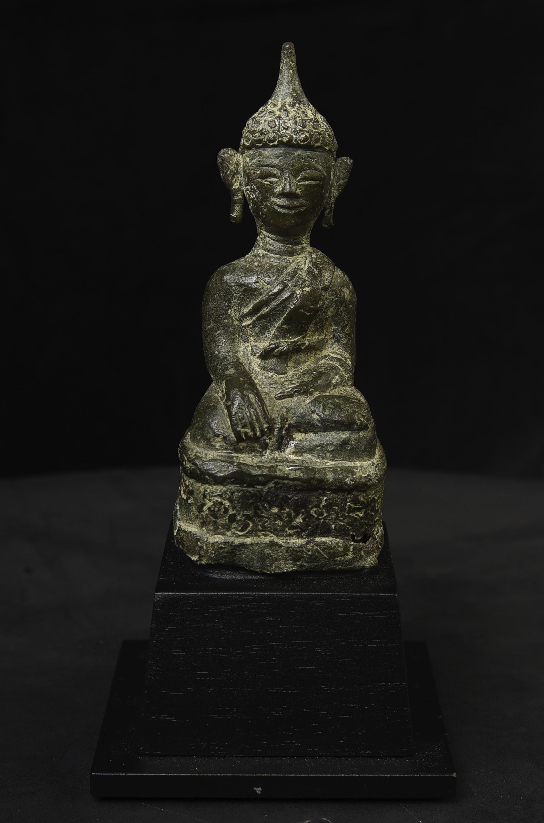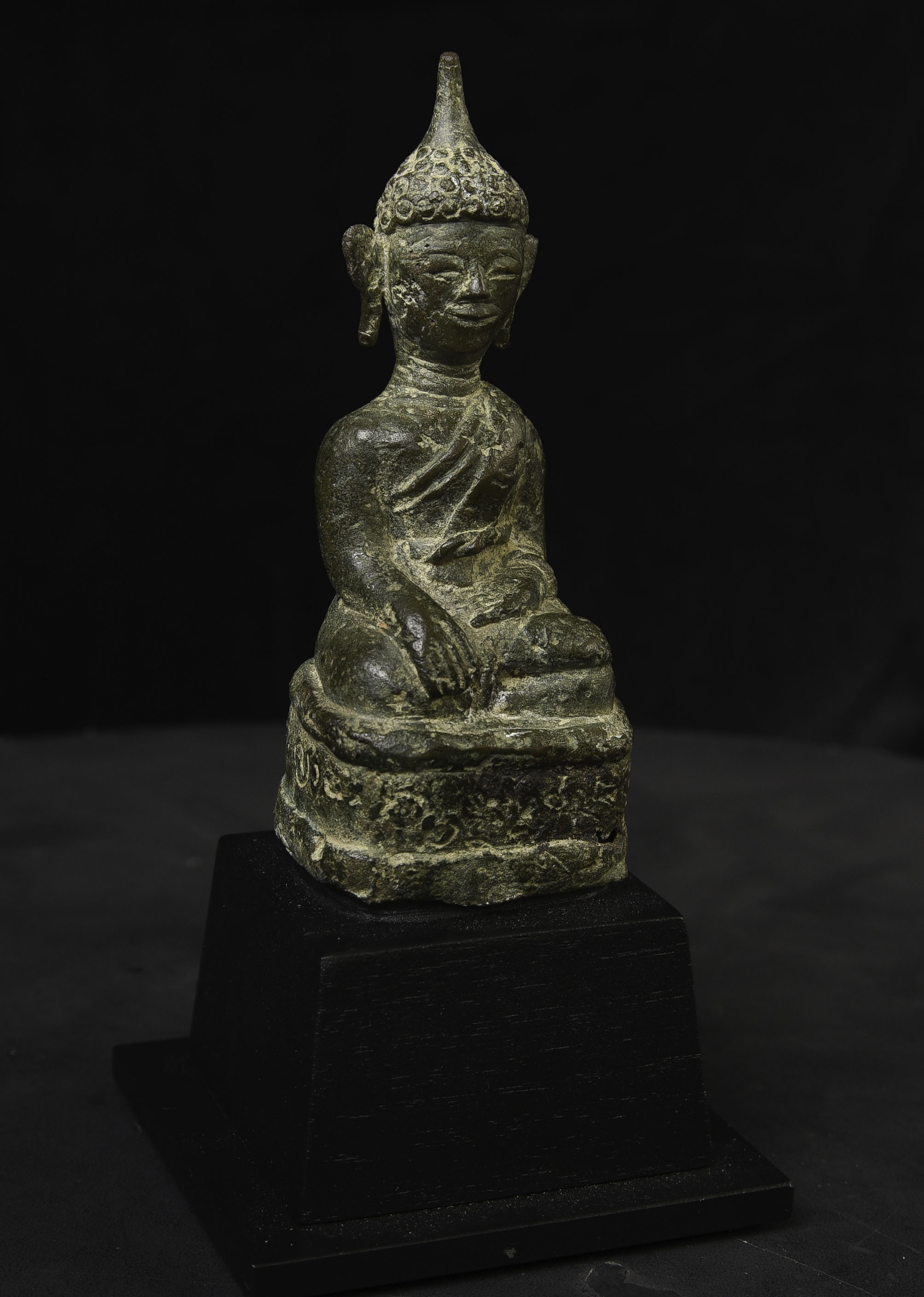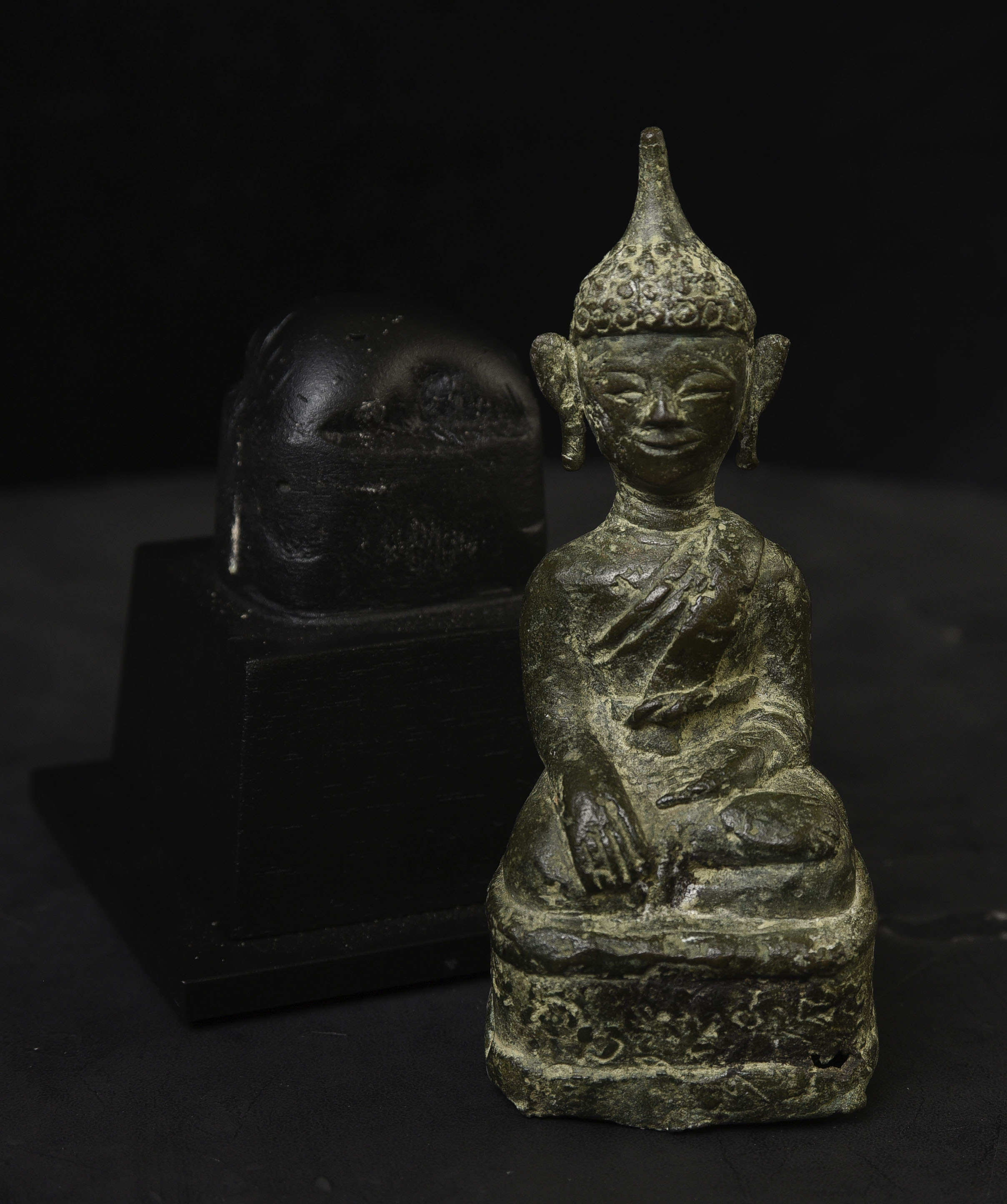 Sweet 17/18thC Lao Bronze Buddha. 4.75" tall, bottom measures 2" x 1.75"