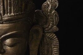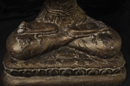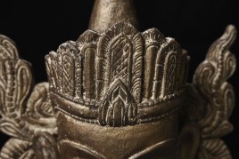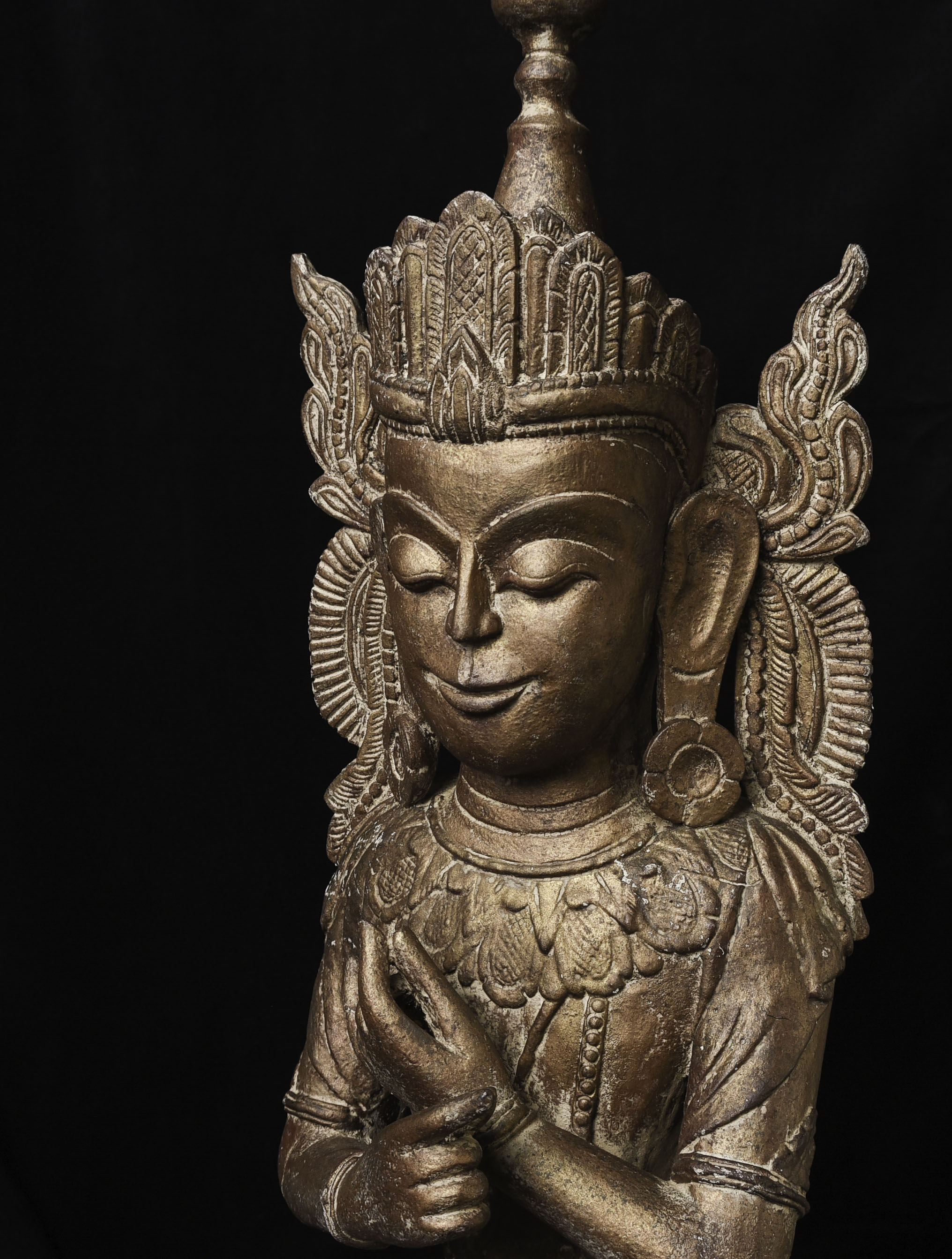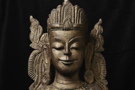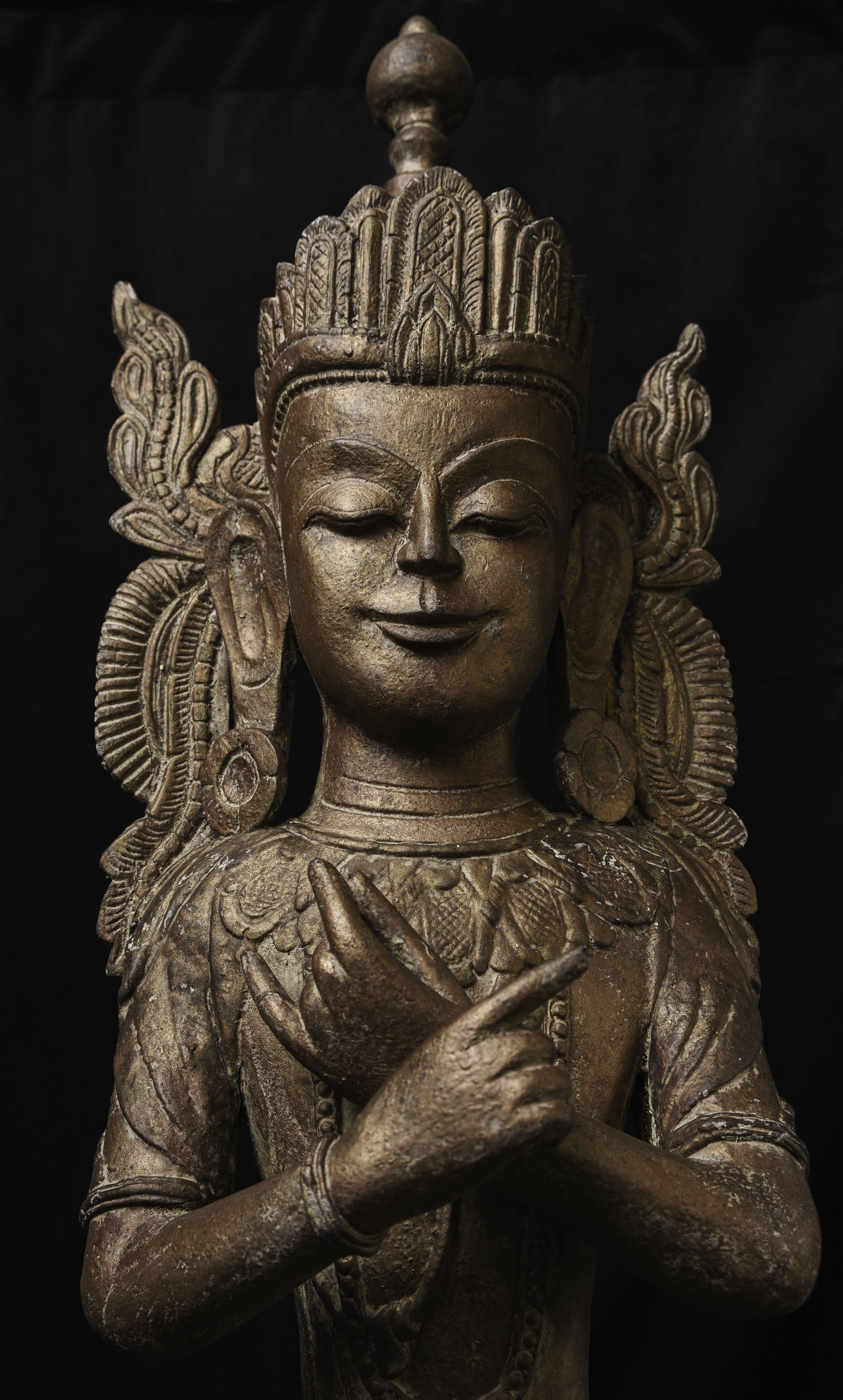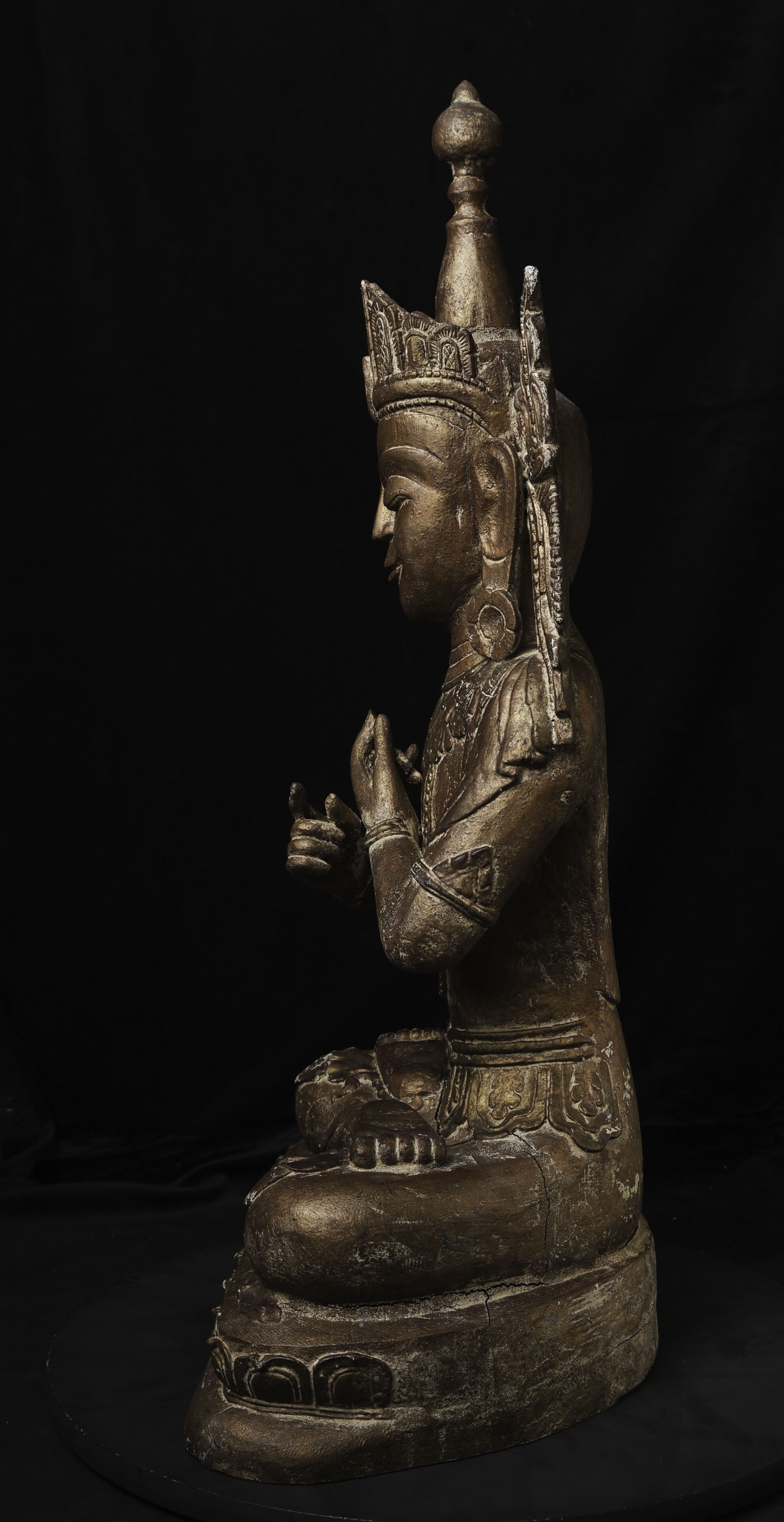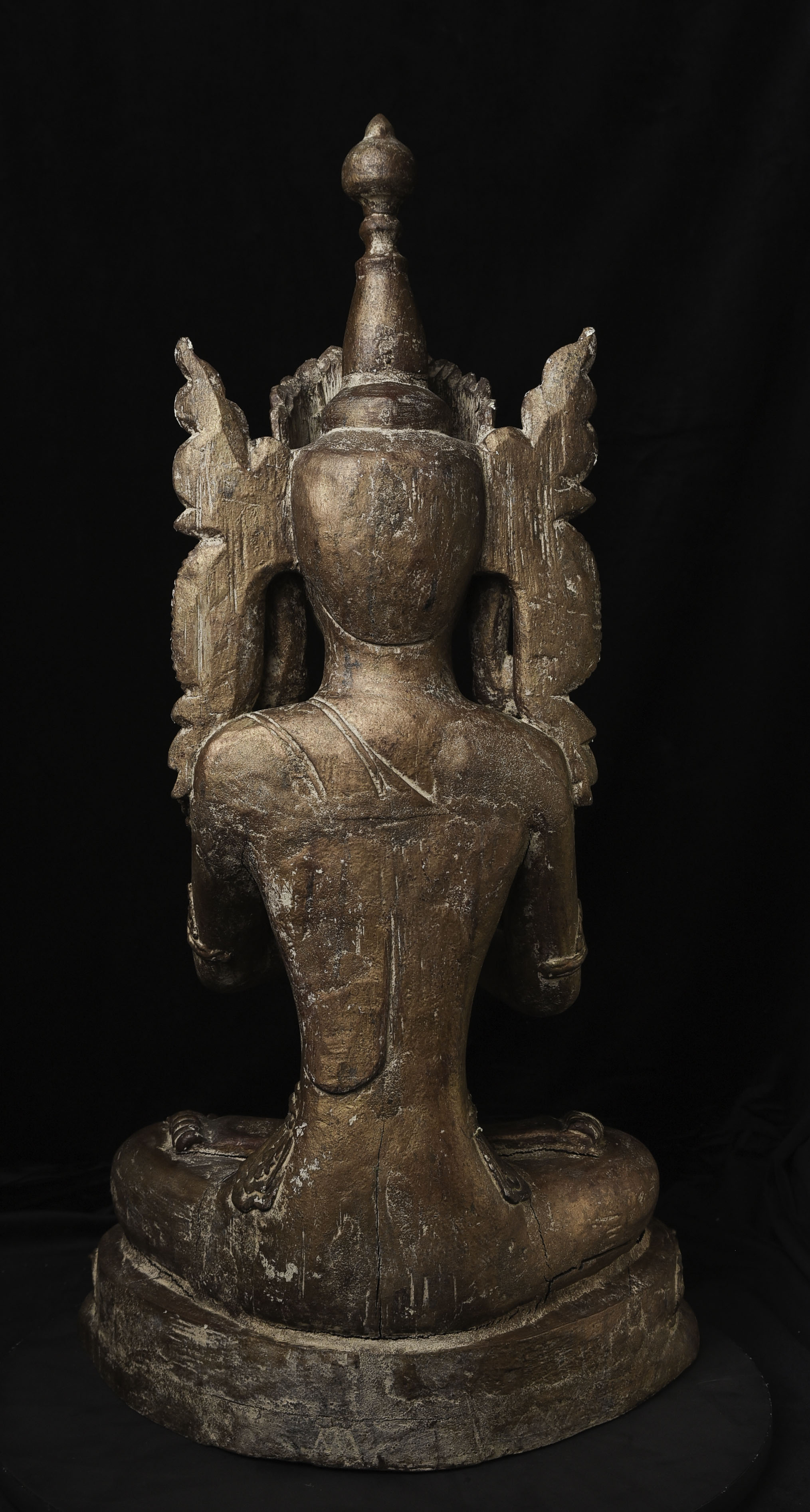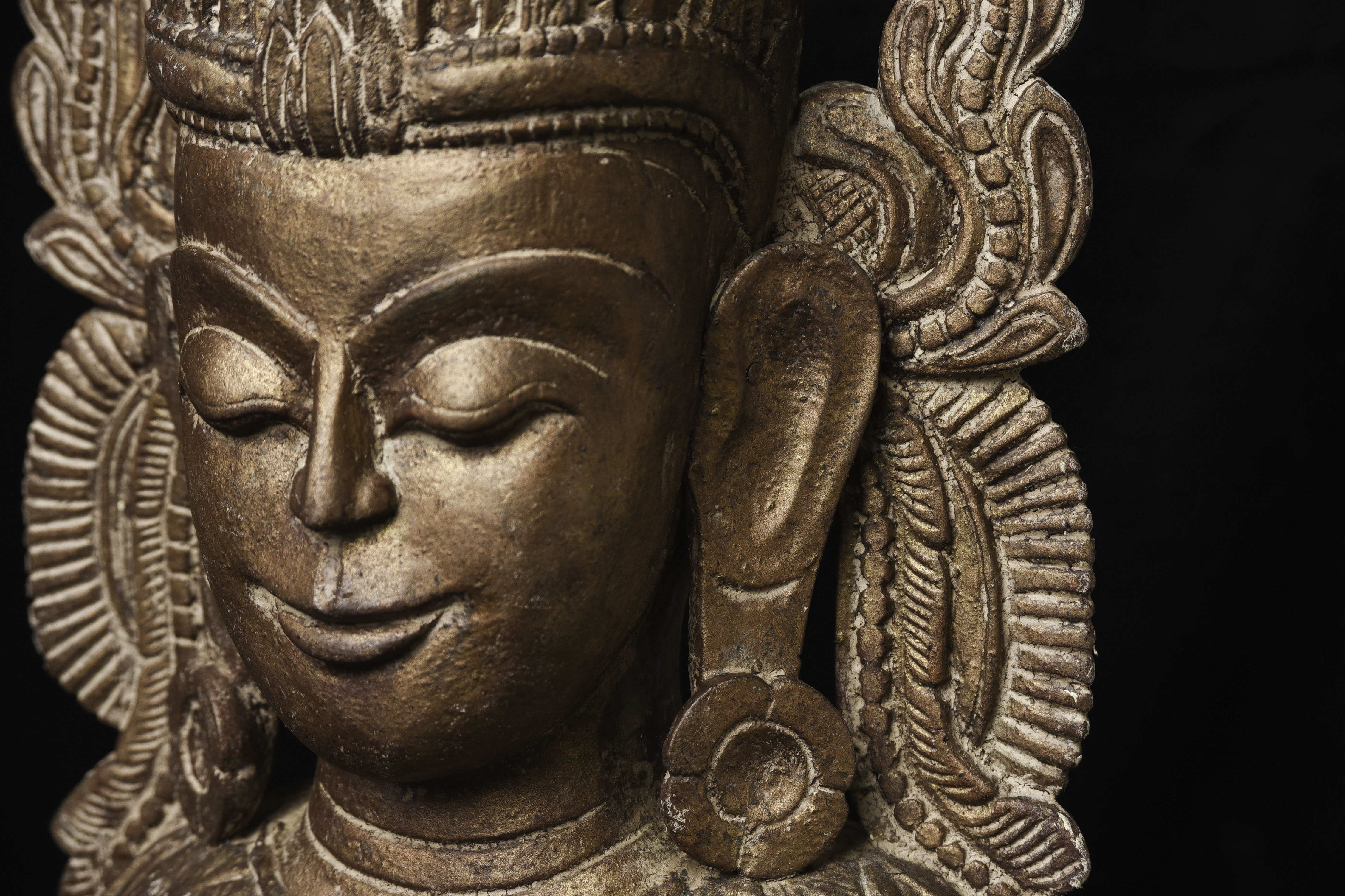 An exceptional example of its type, with a face that brings a smile to all who lays eyes upon him. One of the most sought-after forms of the Burmese Buddha. In the range of 100 years old. In a Mon style, with an exceptional face