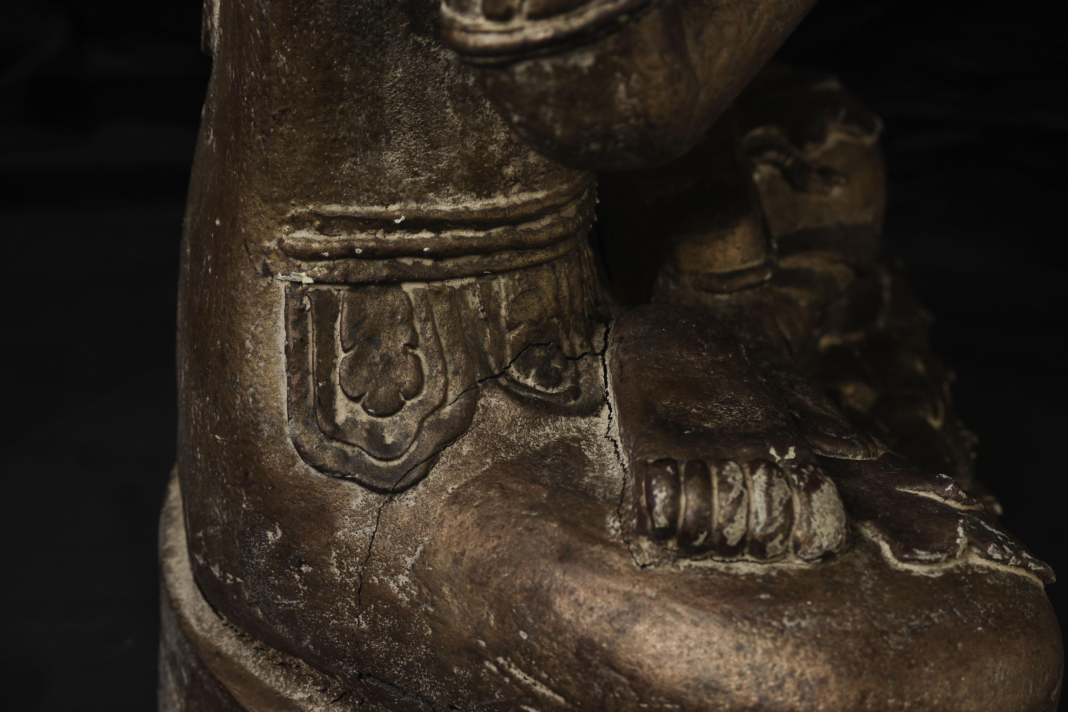 Antique Burmese Mon Style "Jambupati" Bronze Buddha. Large, Beautiful Wood-2.5 feet tall! From the lifetime collection of Roger McCarthy, who served 30 years in the CIA (1952-1982). During his tenure, he held several positions including Case Officer, Regional Officer in Charge, Deputy Chief of Station and Chief of Station. He served in numerous countries: Japan, Thailand, India, Nepal, Vietnam, Peru, Burma and Laos. He was one of the early and few paramilitary trainers that trained many foreigners for a variety of operations. These operations took place in Indonesia, Korea, Tibet, Vietnam & Laos.