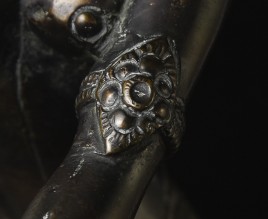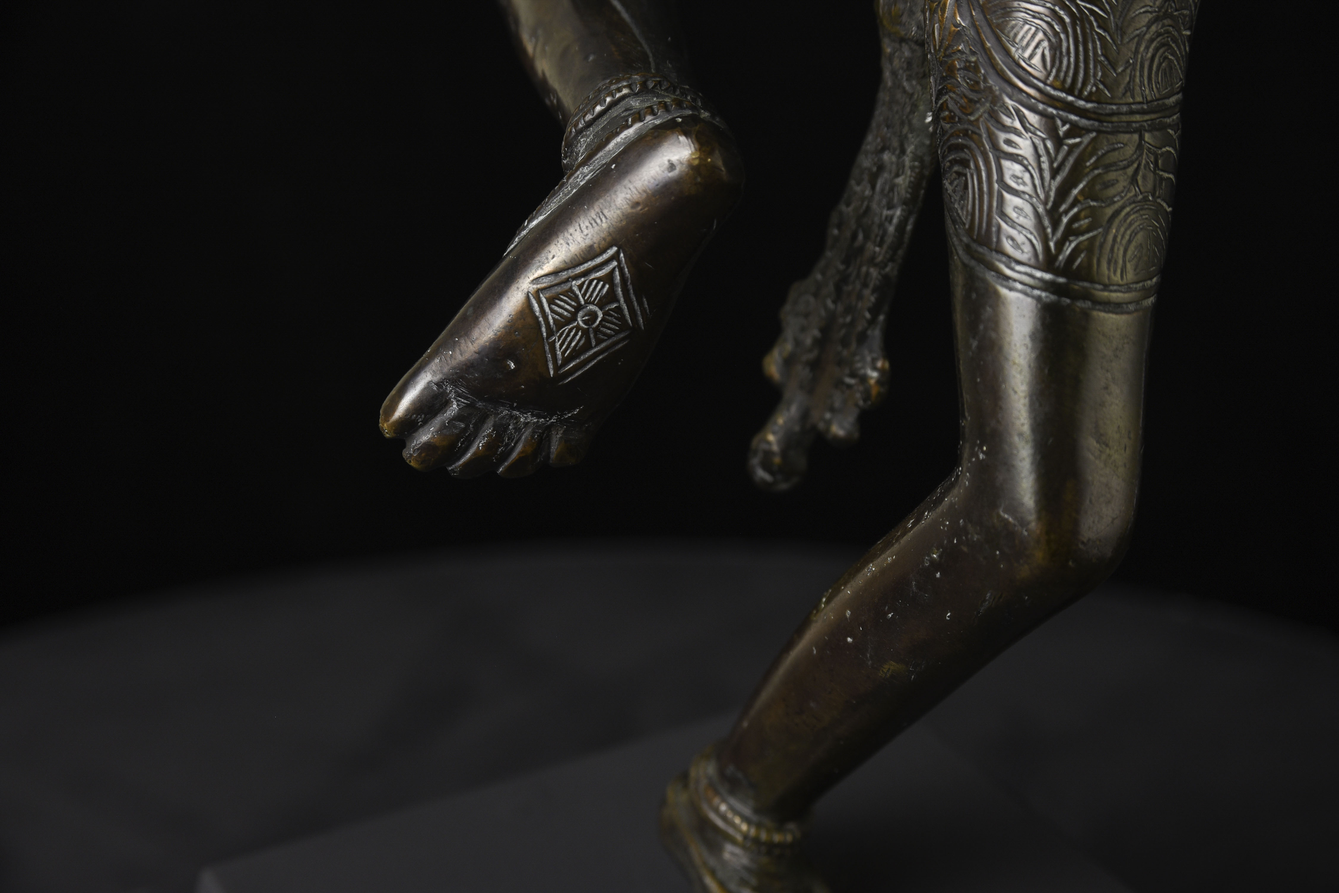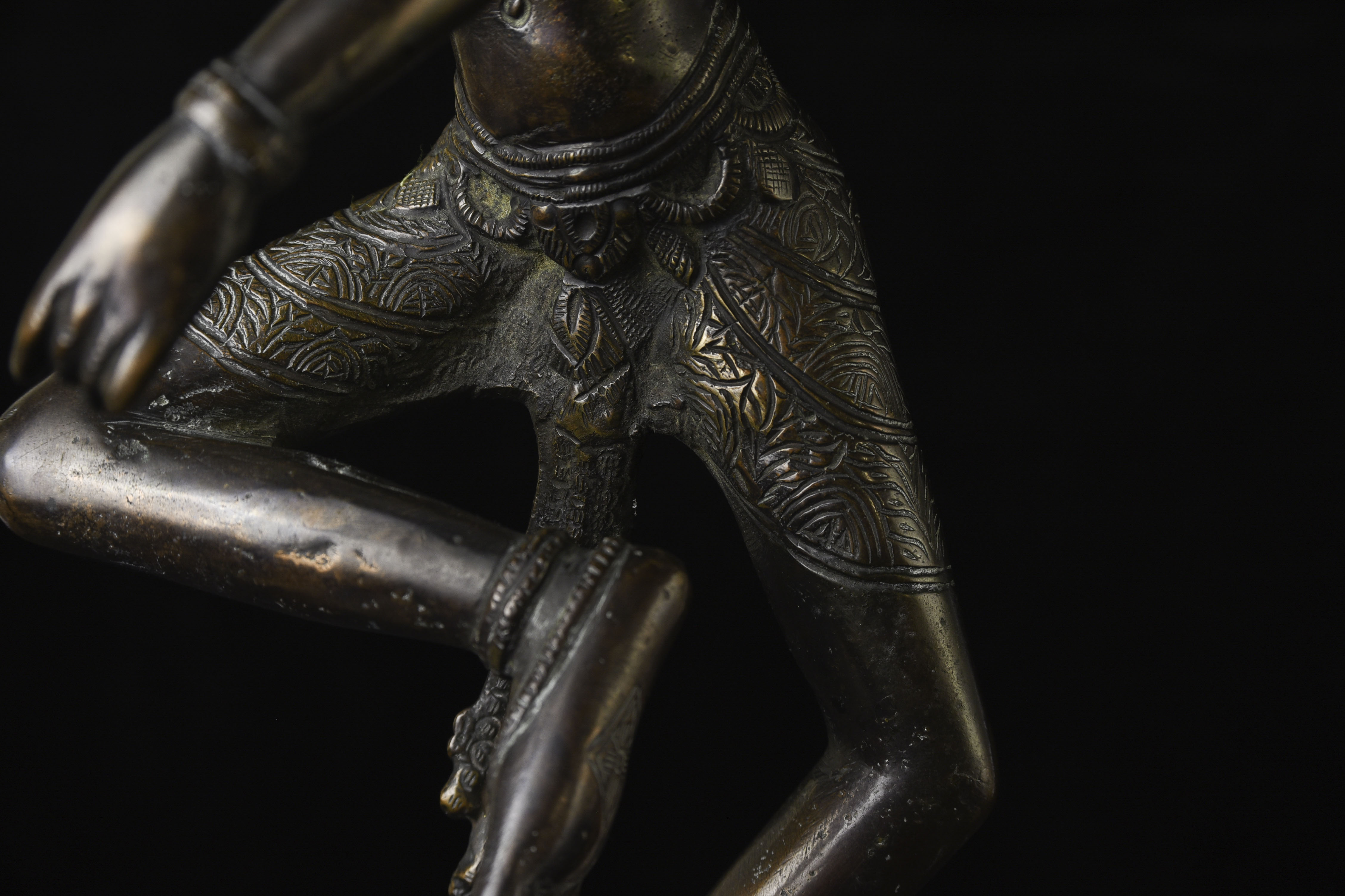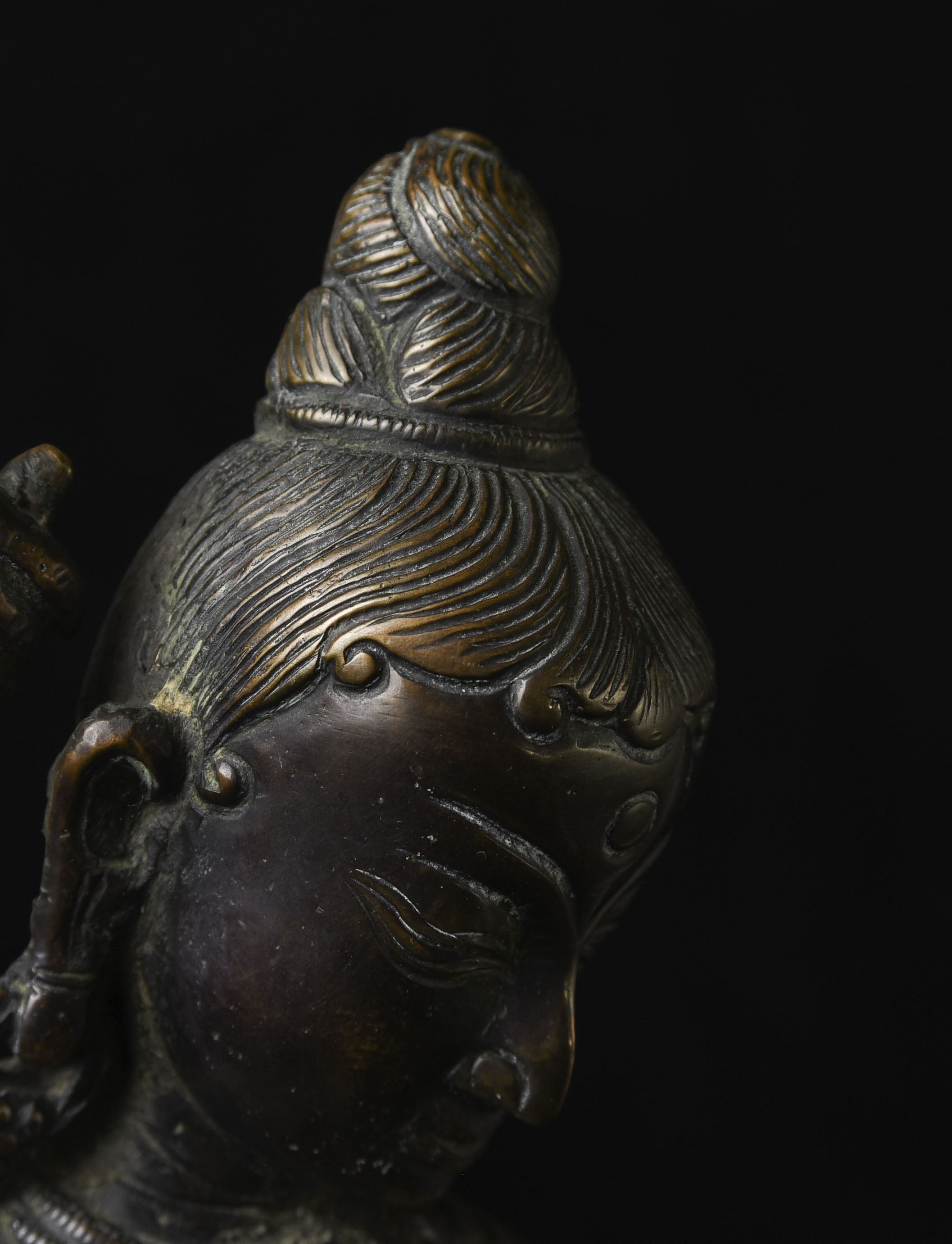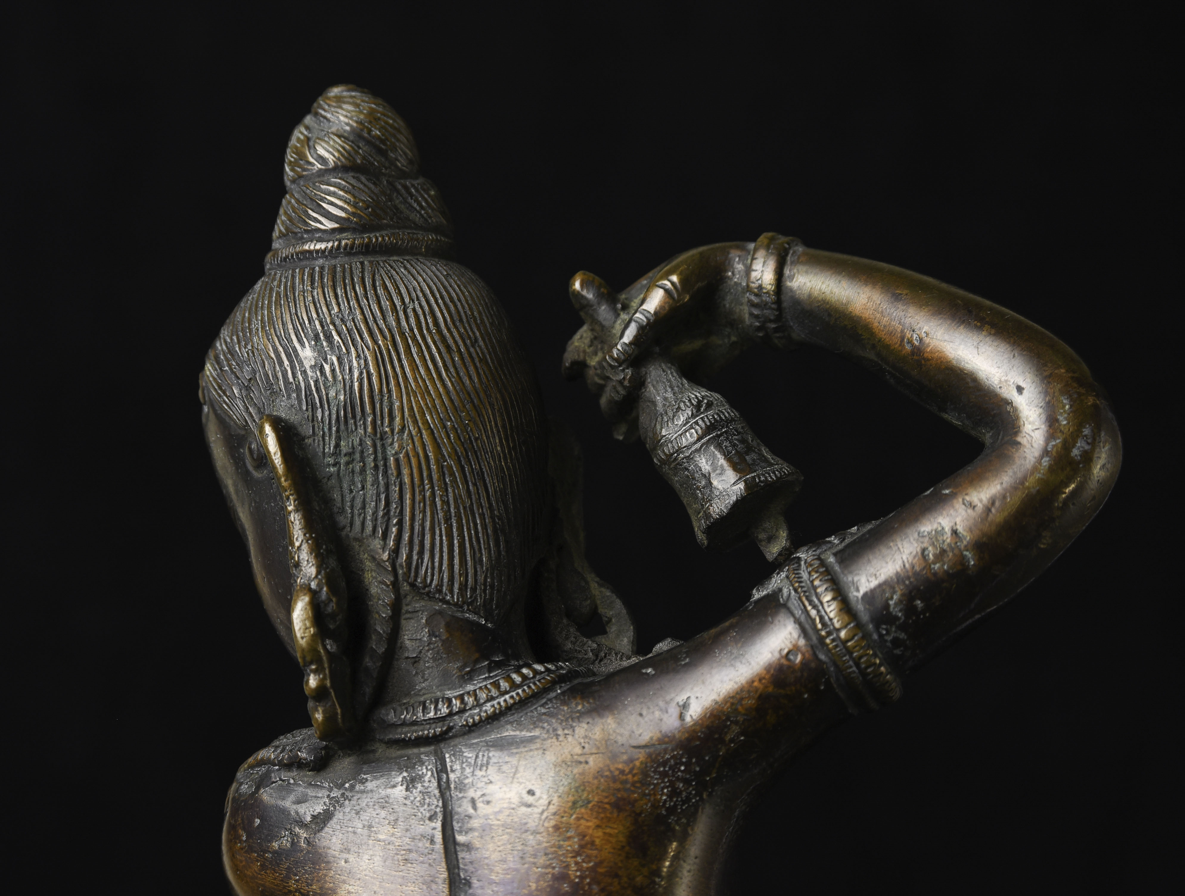 This is a large and lovely Dakini with a wonderful glow to the surface, and a delightful overall balance to the figure. While it would typically be attributed to Tibet or Nepal, over the years I've seen several related examples that were attributed to Burma. I, therefore, leave it to the buyer to determine whether this piece is from Burma or the Himalayas