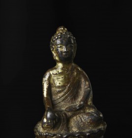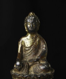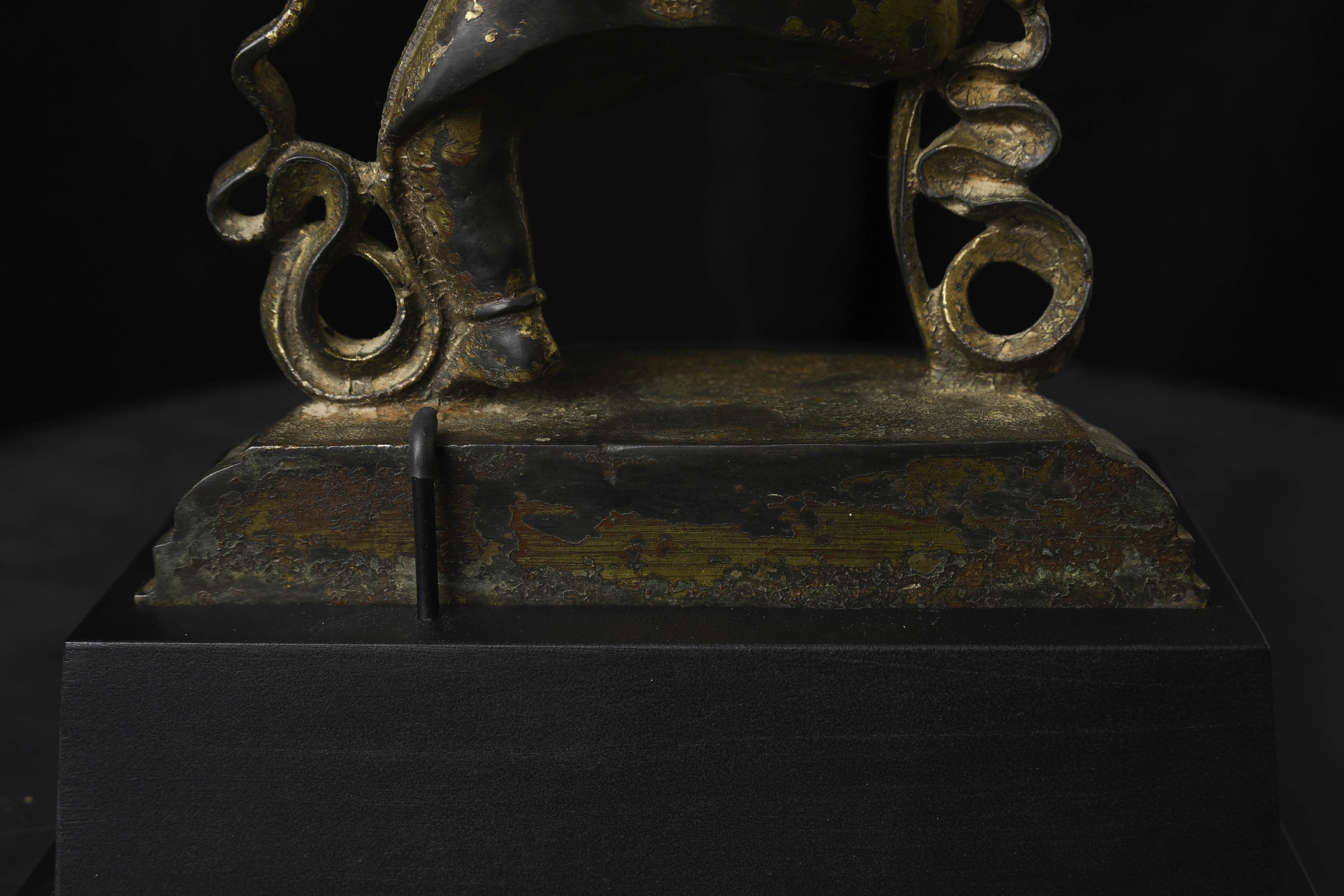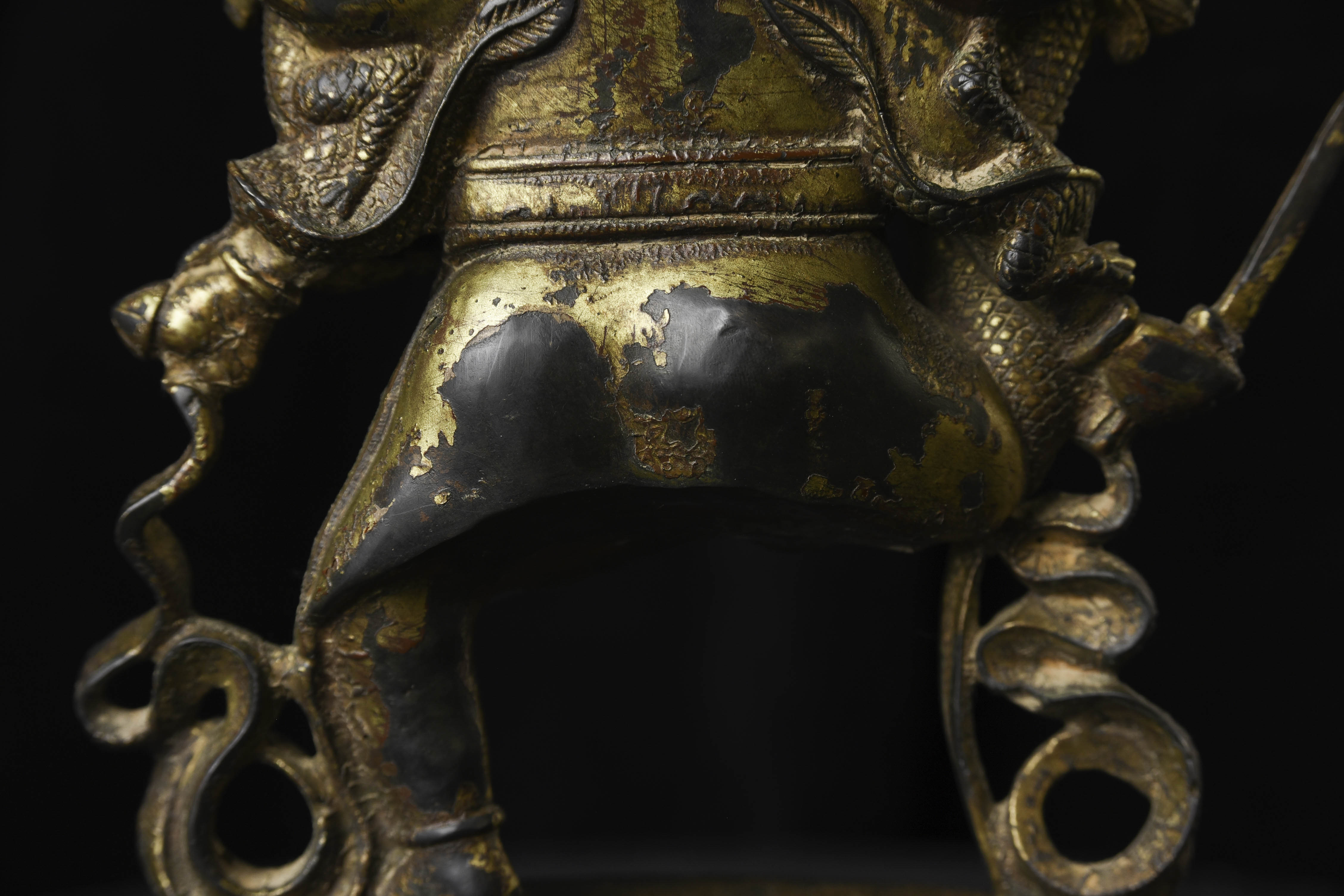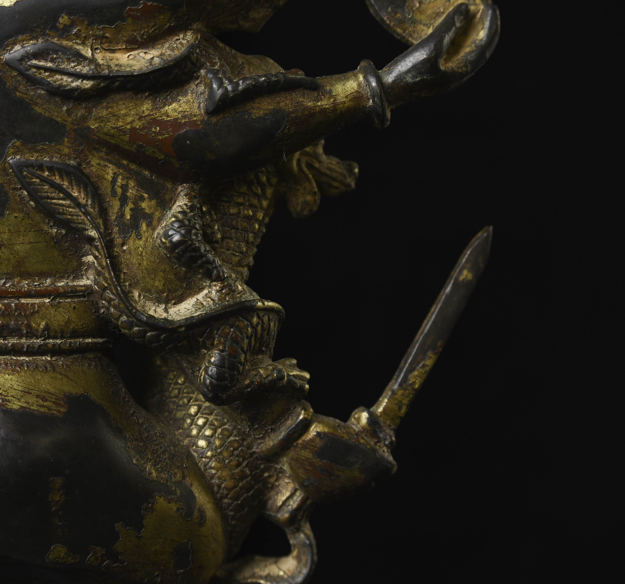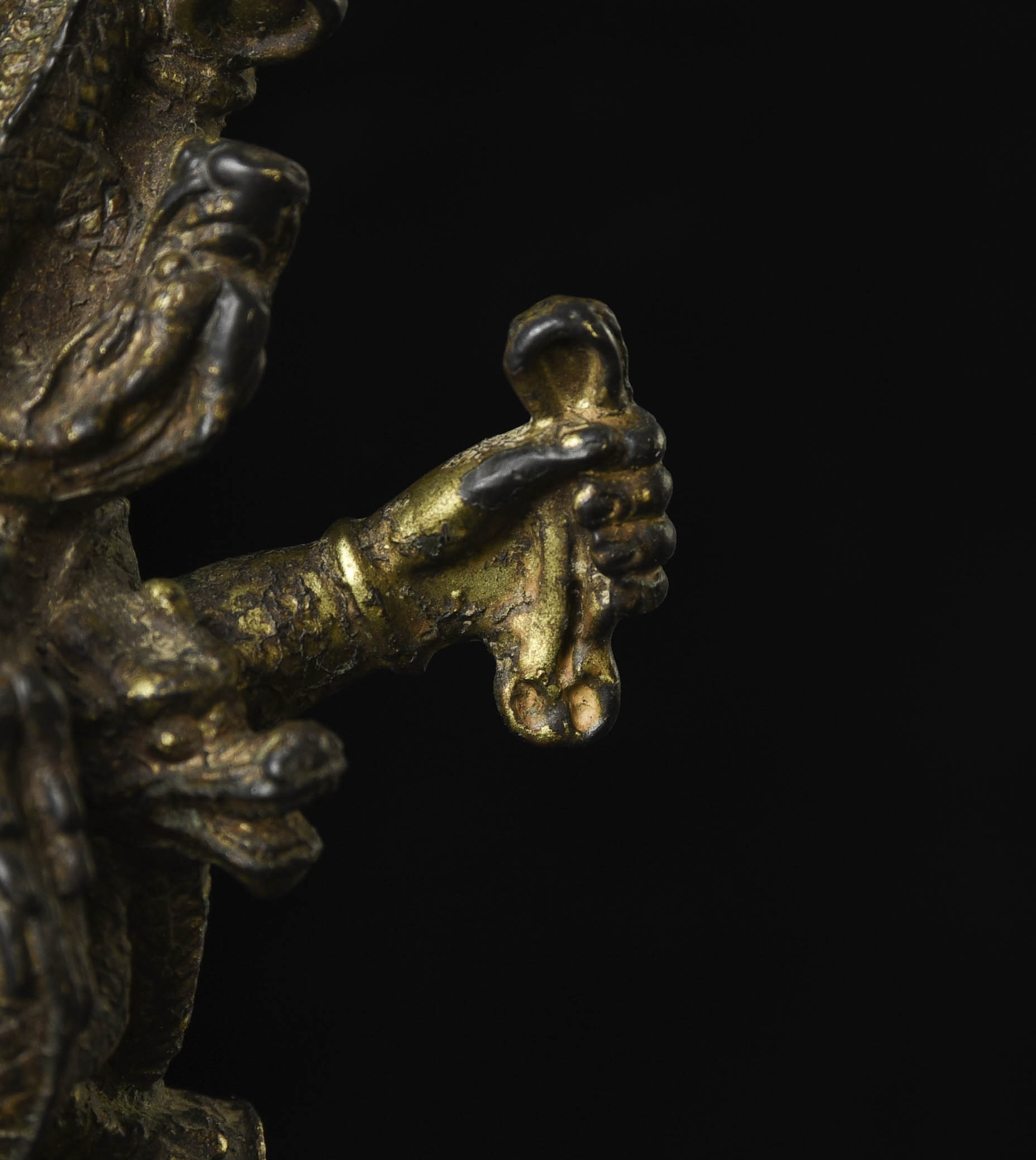 Remarkable Tibetan tantric figure. It is unlike any I have seen before. Take a look at the photos and you will see what I mean. It is hard to know where to look first-from the four main faces to the 8 incredibly detailed dragons to the tiny Buddhas in the crown, It will mesmerize you for hours. you see the quality everywhere-from the subtle striping cast into the Tiger Pelt around his waist to the Precision in all of the casting and finishing in virtually every single tiny detail. I've had many wonderful Tibetan Buddhas over the years that were older than this, that were more classic in their subject matter, etc., but I've had very few that had the level of overall precision, Dynamic energy, and complexity balanced with Beauty. It does not have the look or feel of an early piece. It also does not have the look or feel of a recent fake. based on the wear, patina, and overall quality, my feeling is that it is approaching 100 years old, though hard to know for sure.( 11.25"H x 6.25"W ) - 7.69lbs / 3.485kg including base. Base is 2" Tall.