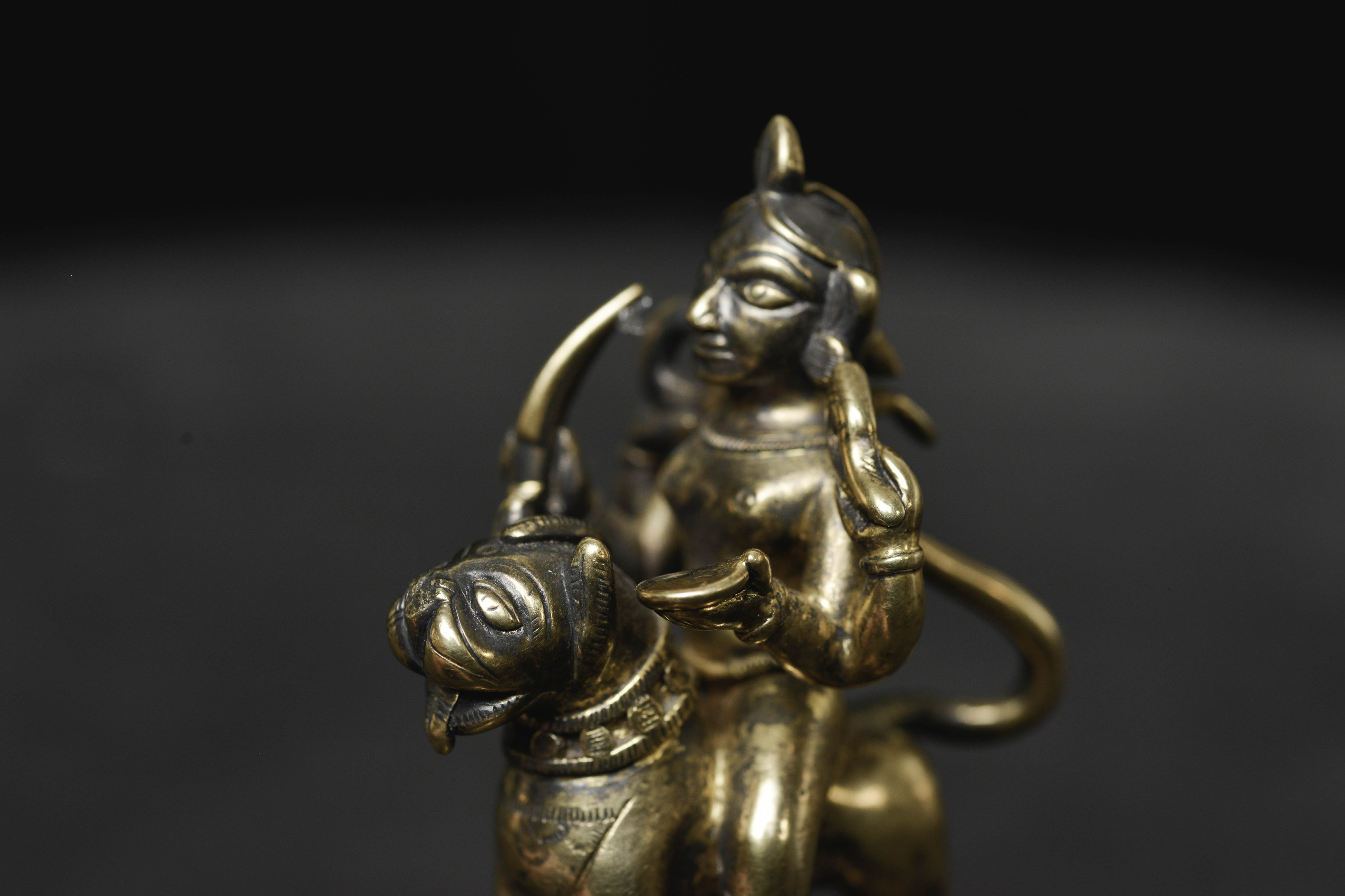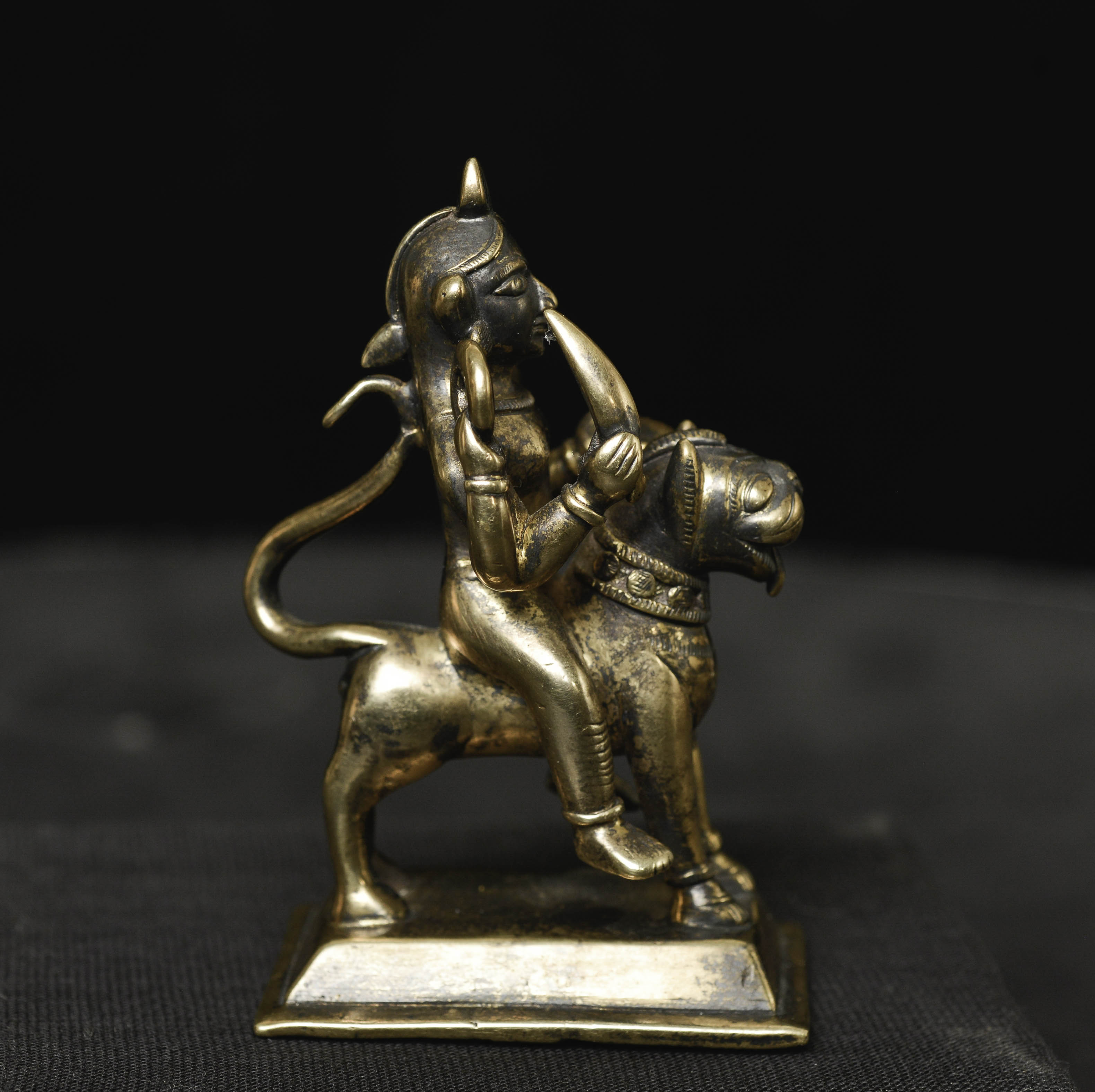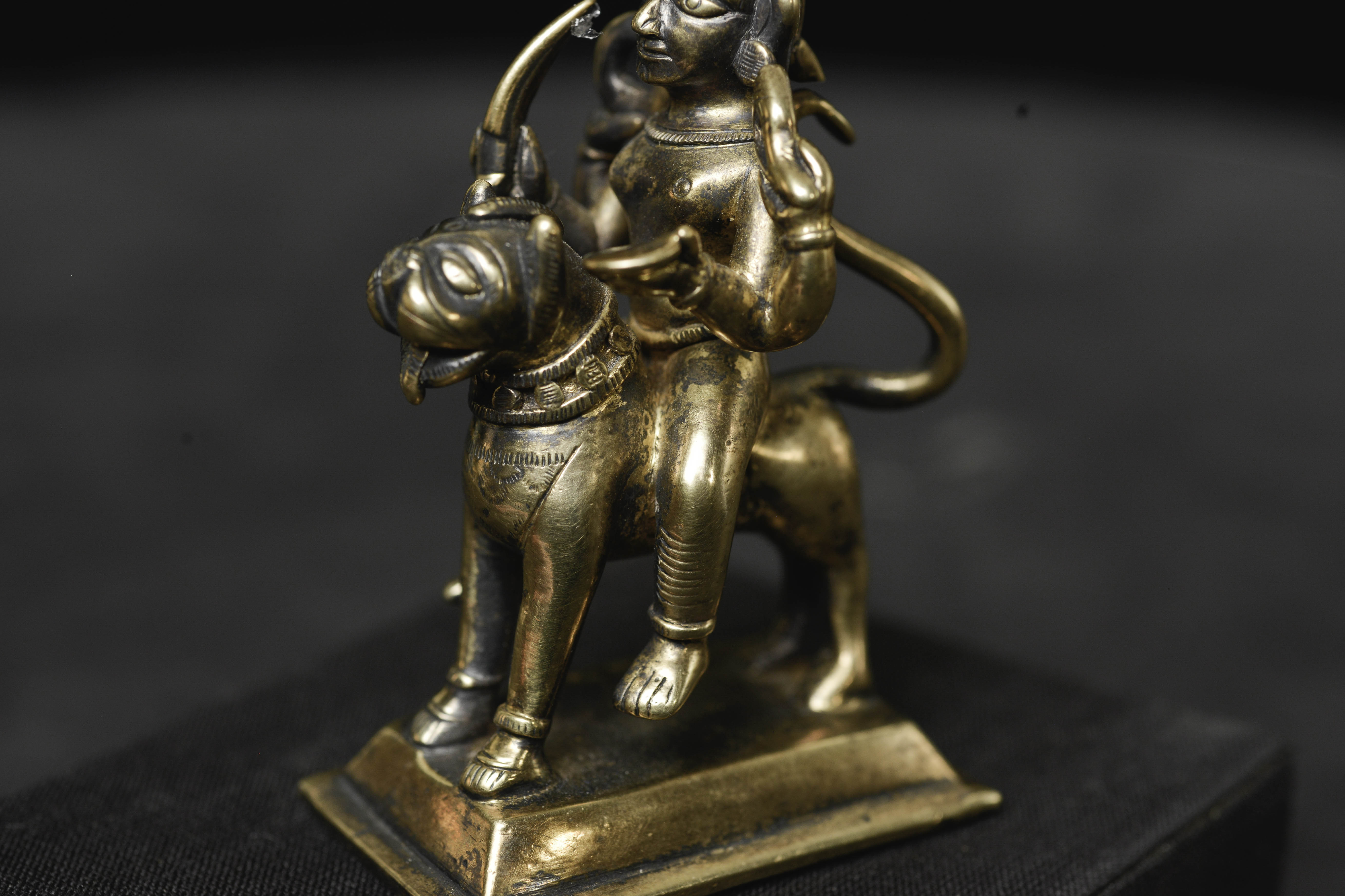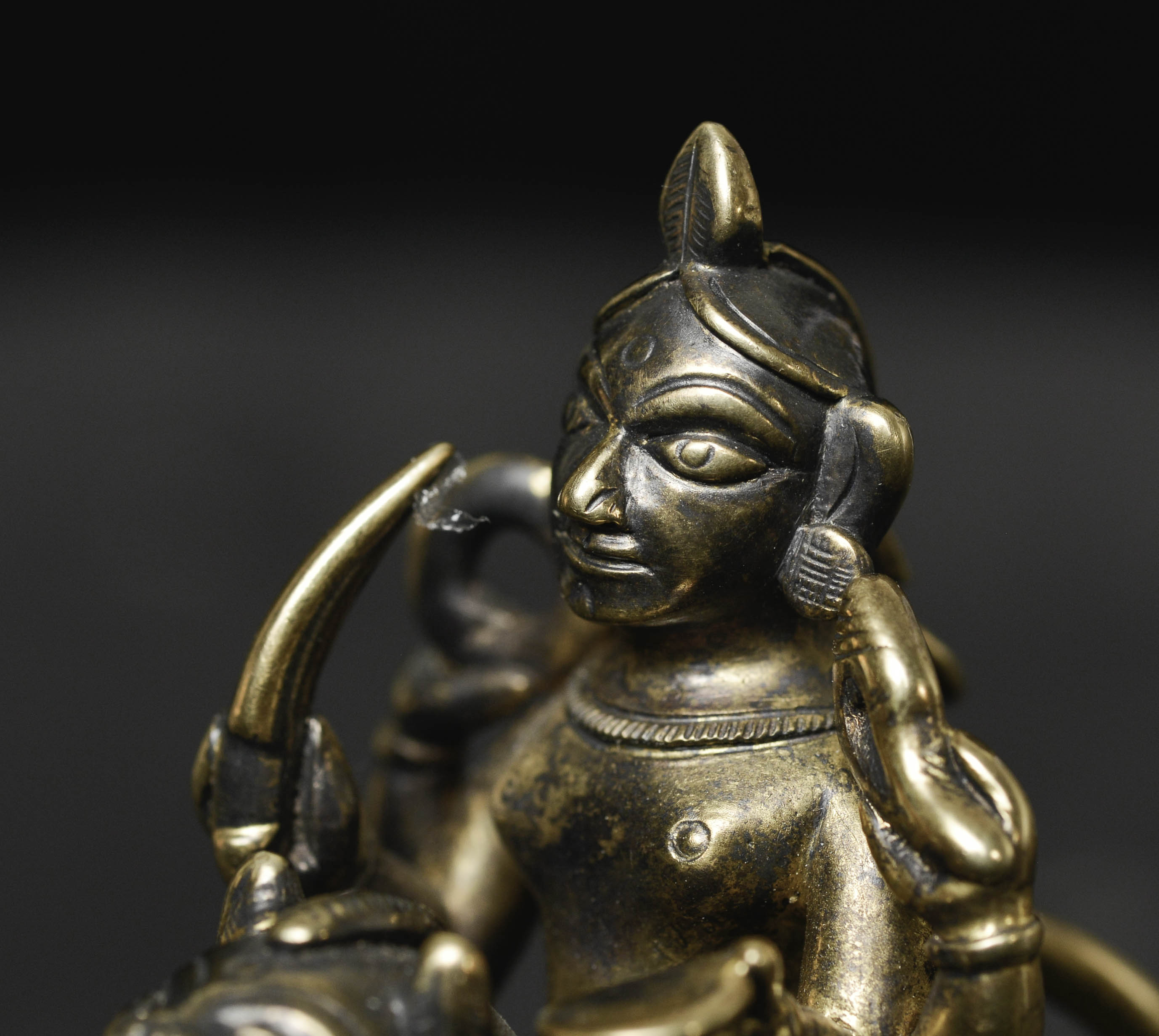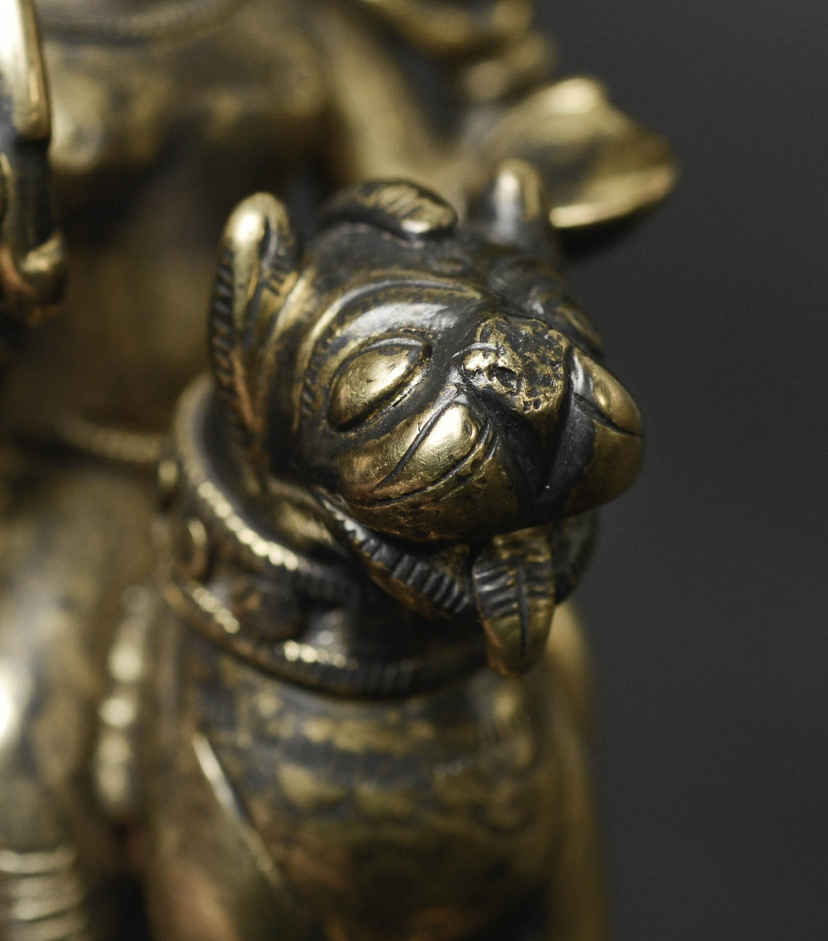 Solid silver Hindu figure with much of original gilding. Quite fine for this type of figure. Very rare to find in solid gilded silver. 3.25" tall.