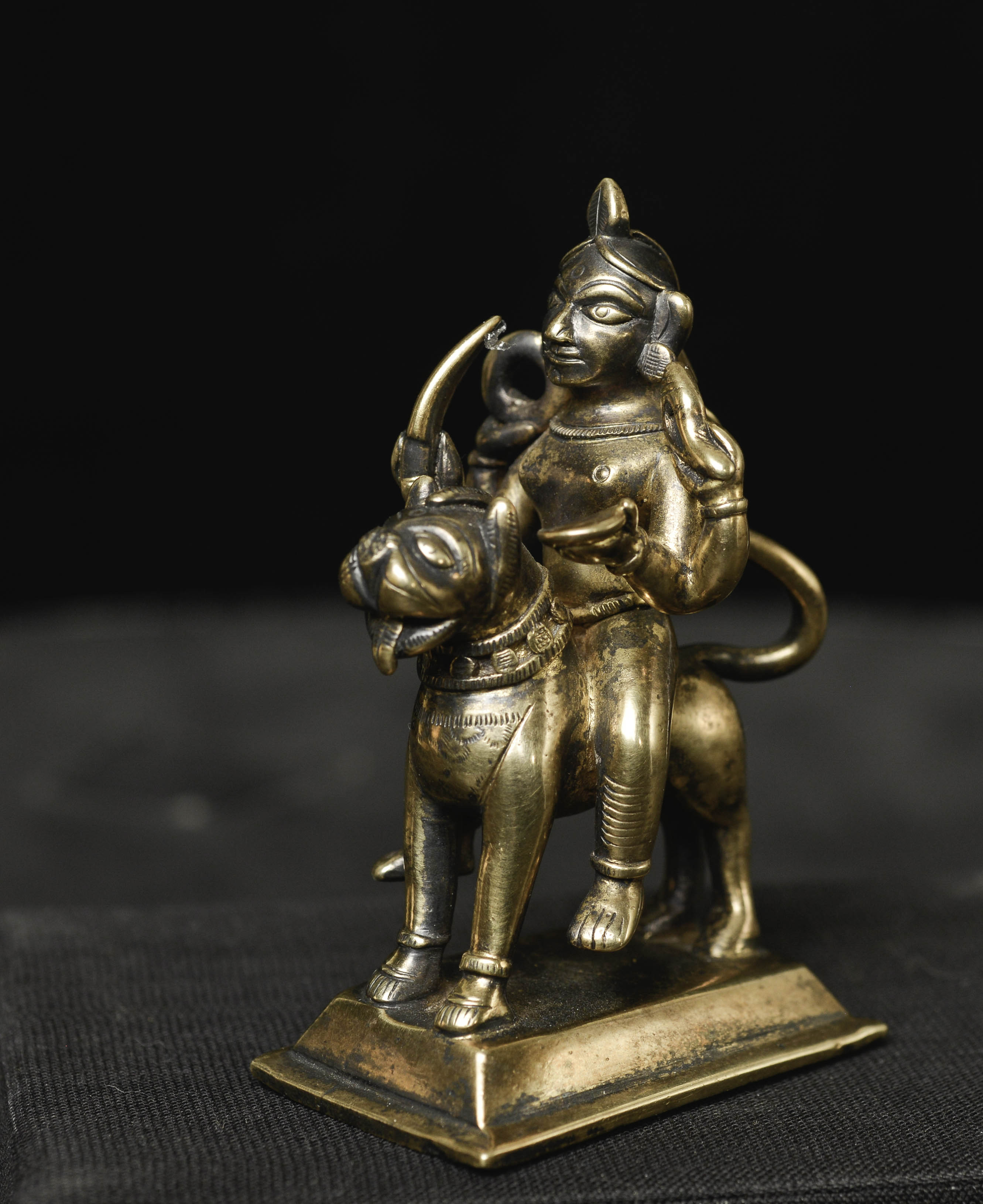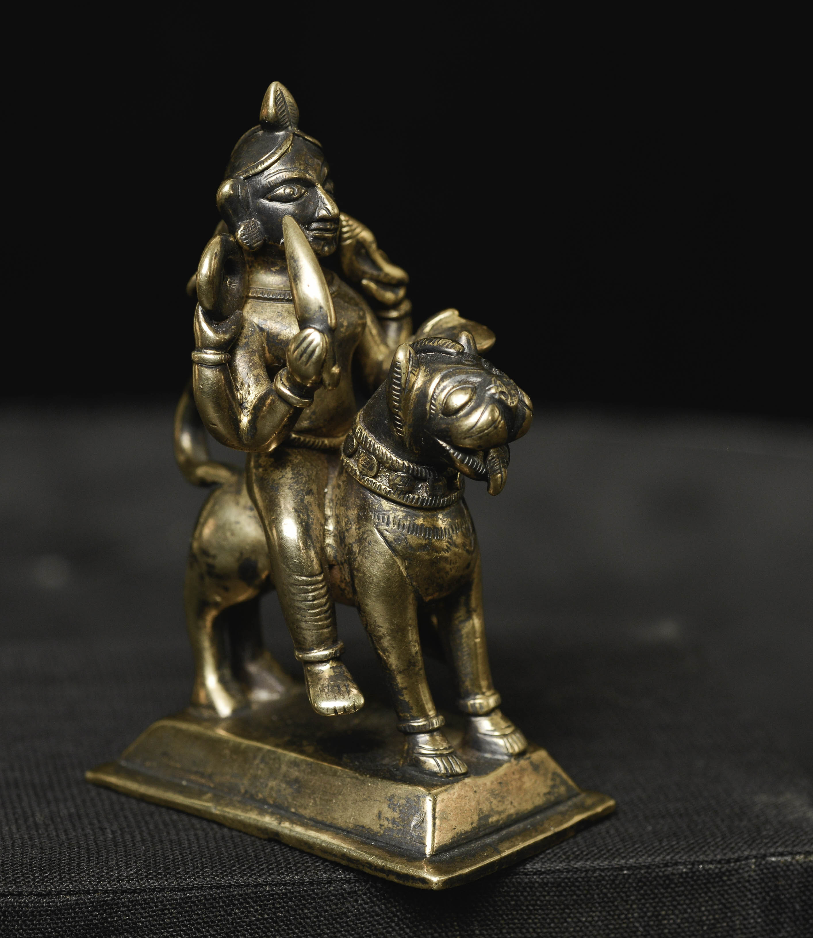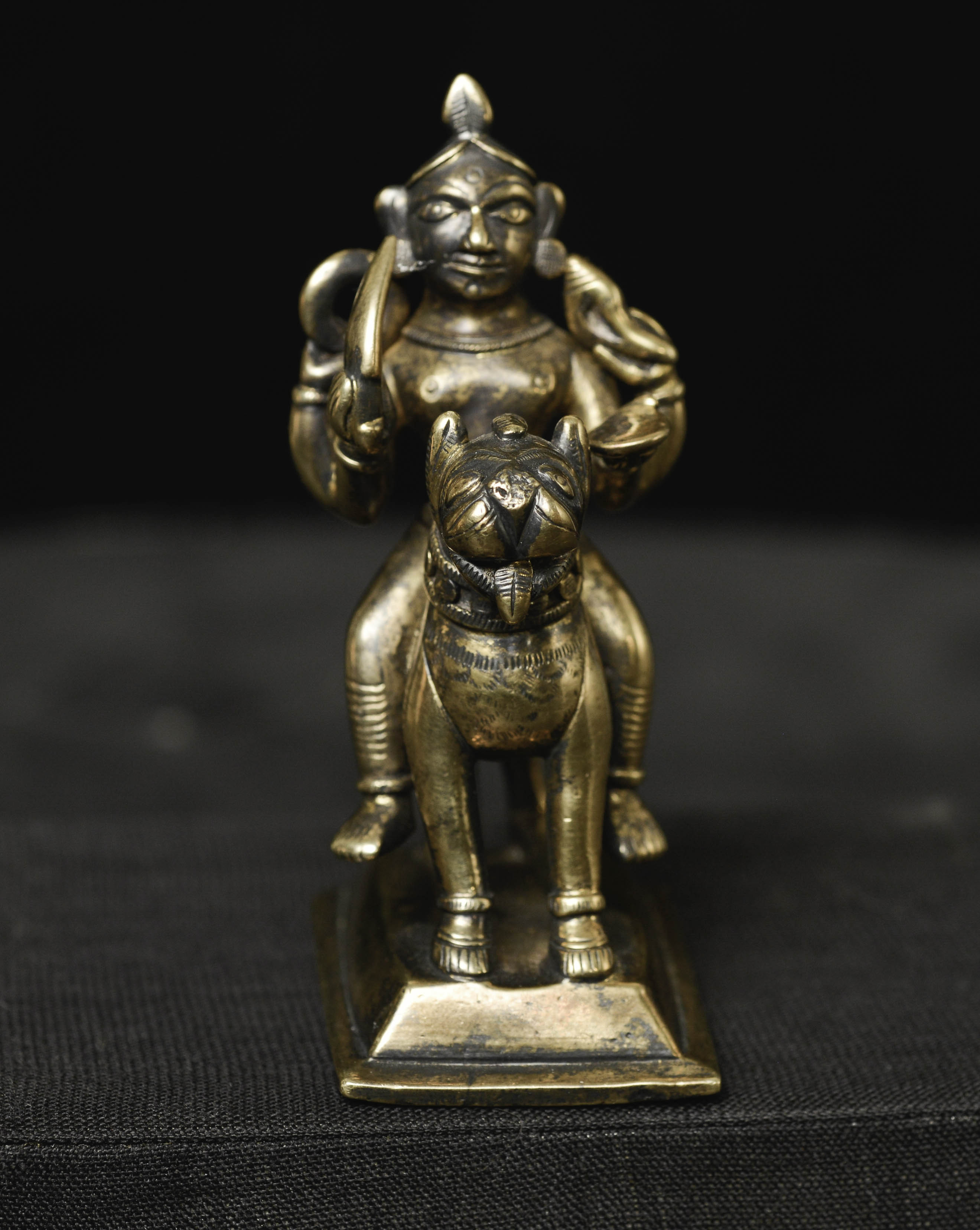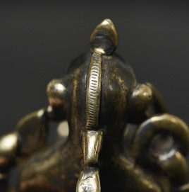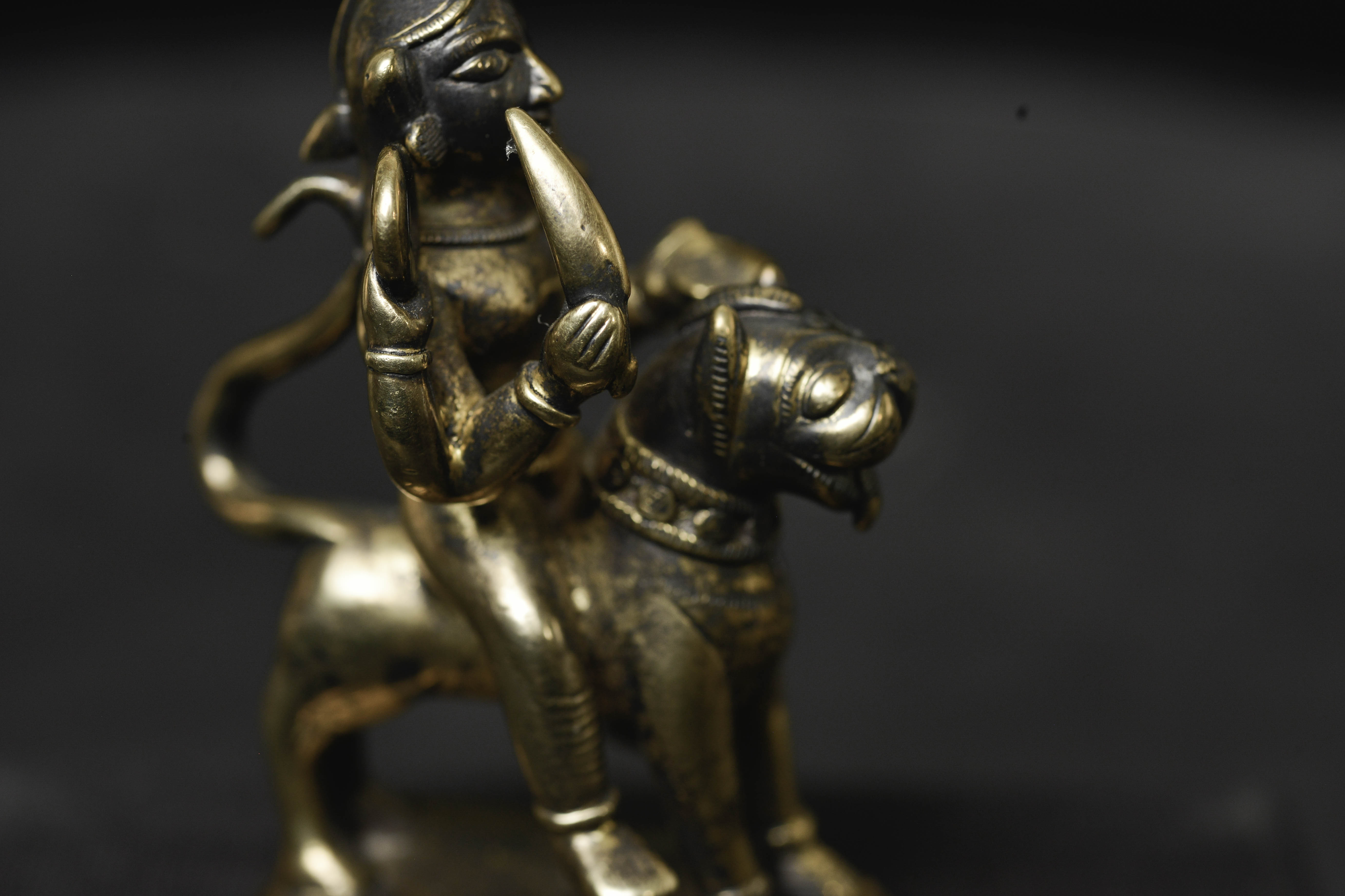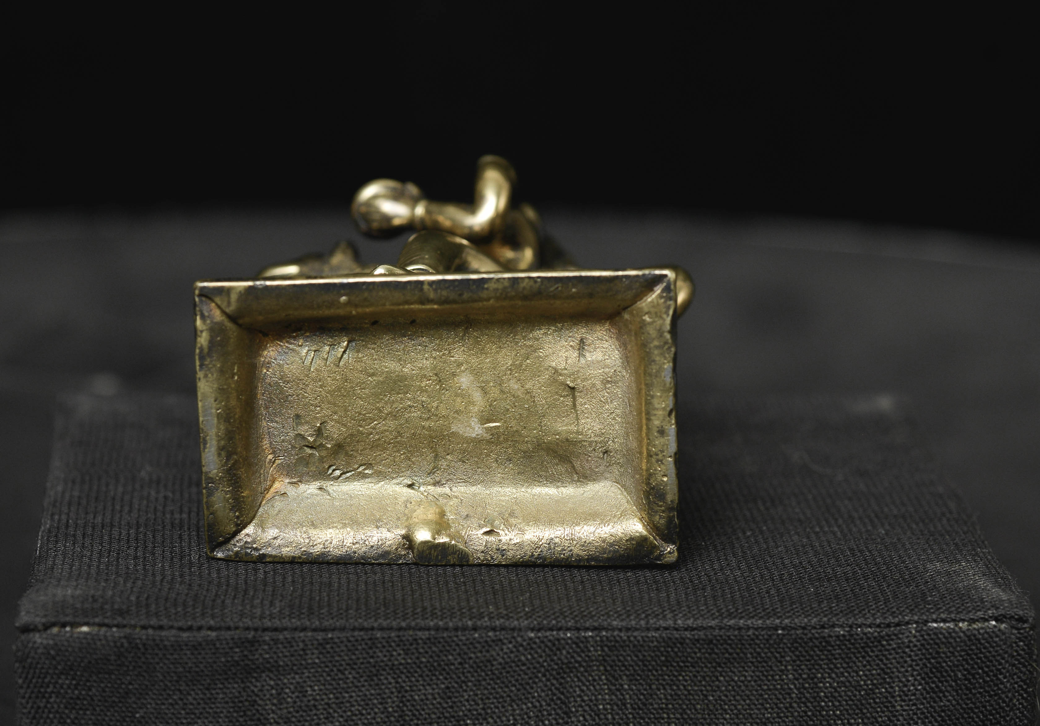 Solid silver Hindu figure with much of original gilding. Quite fine for this type of figure. Very rare to find in solid gilded silver. 3.25" tall.