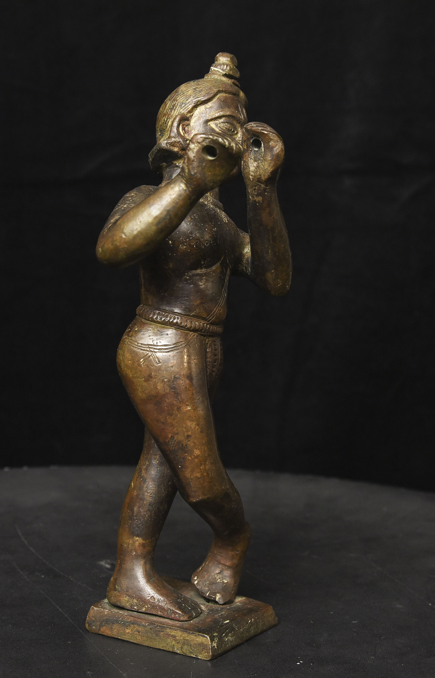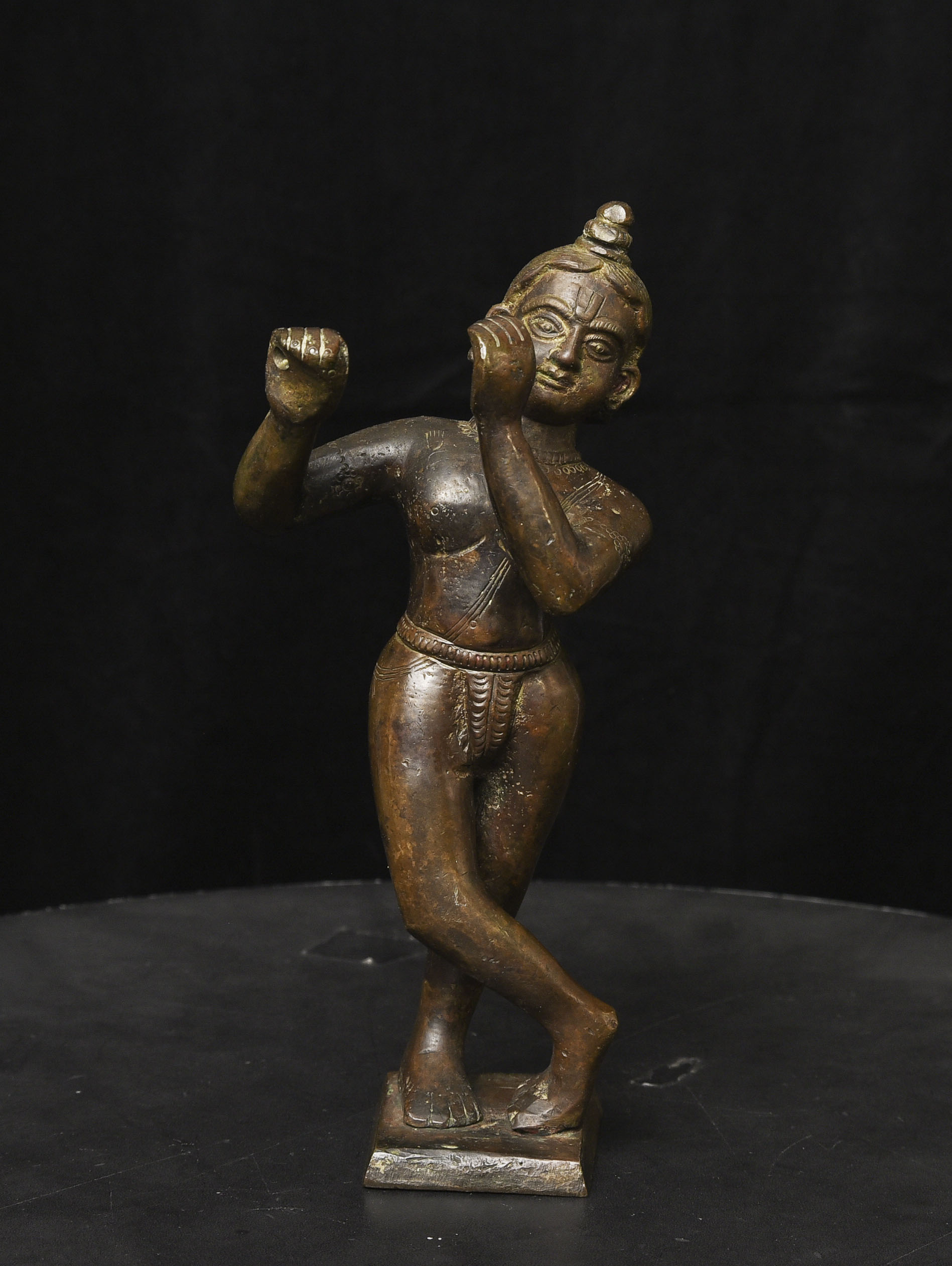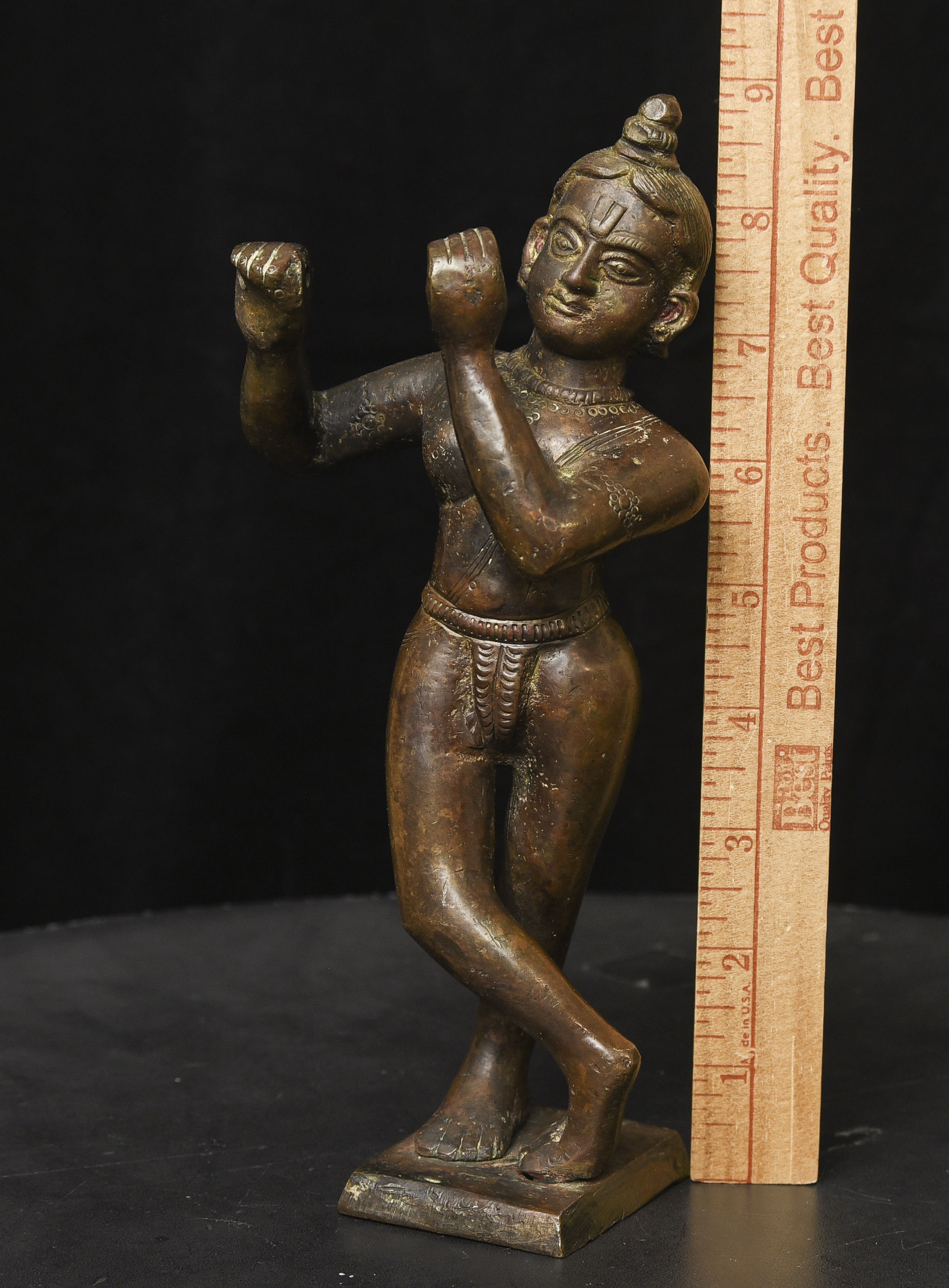 Solid-cast antique bronze Krishna. - ( 8.875"H x 4" W ) - 4.36lbs / 1.975kg.