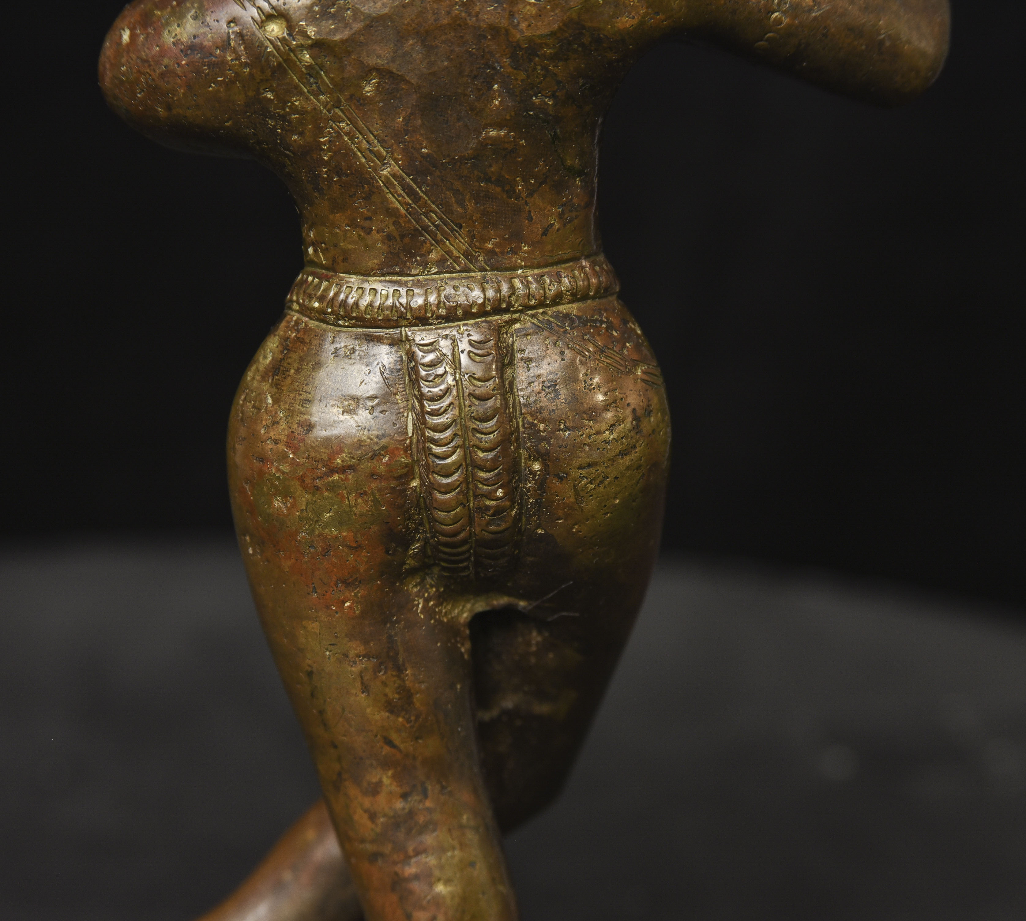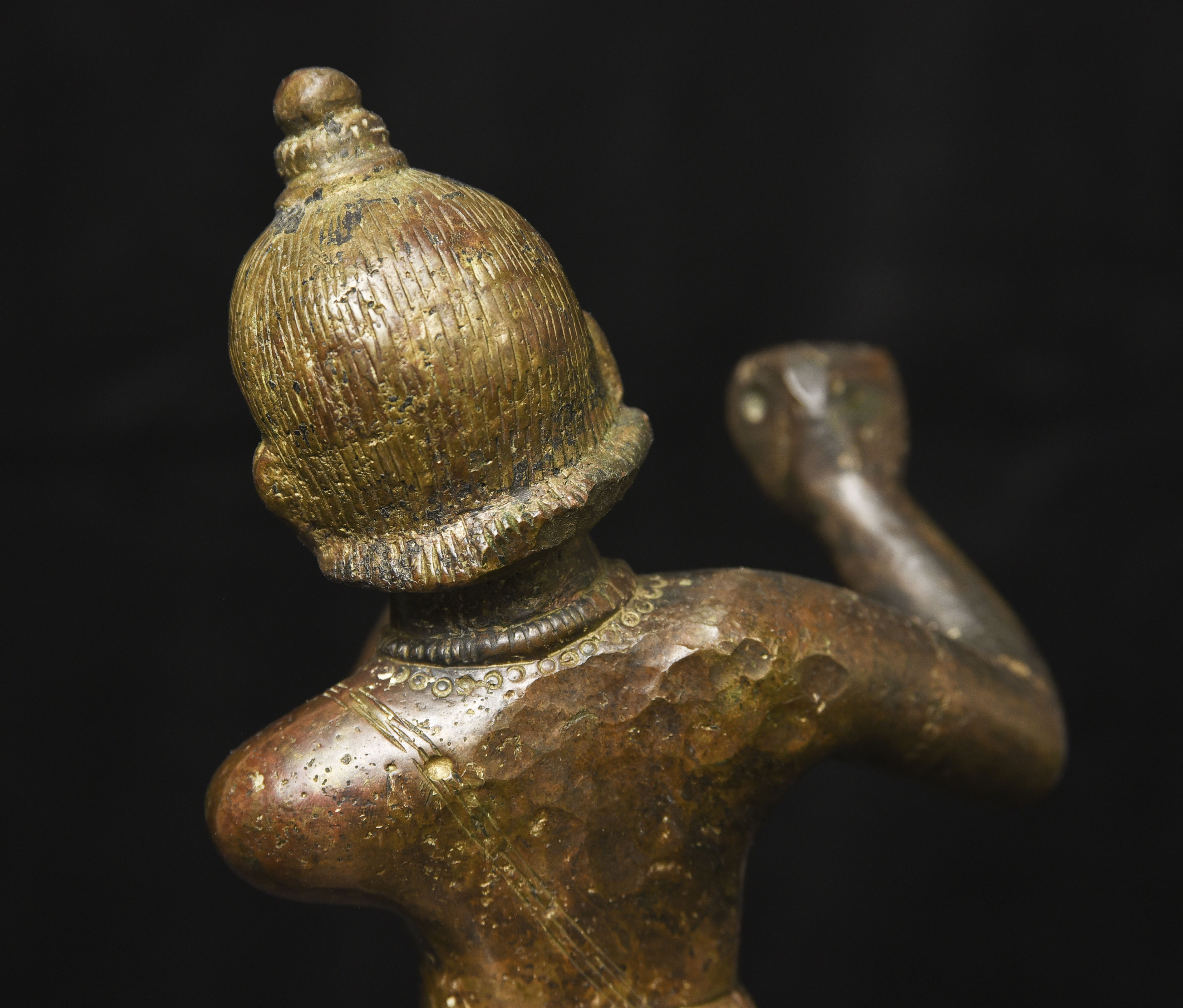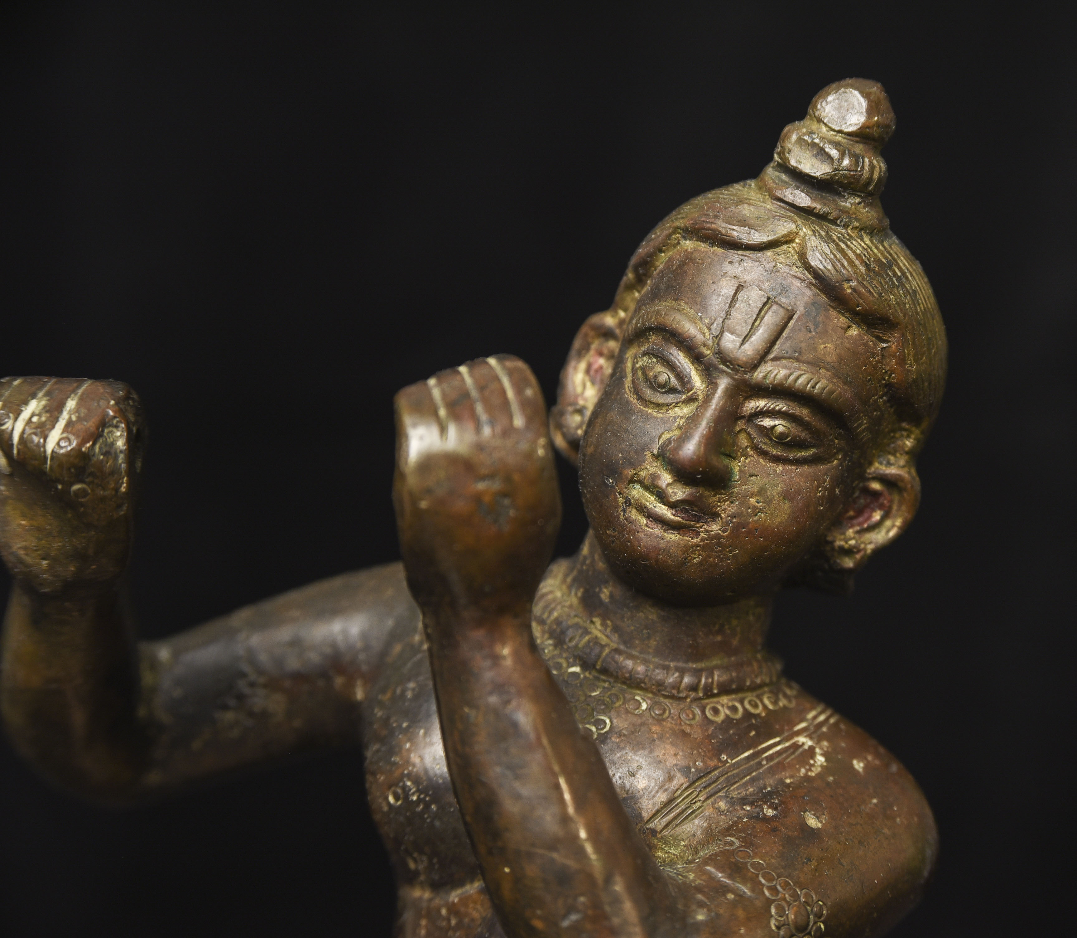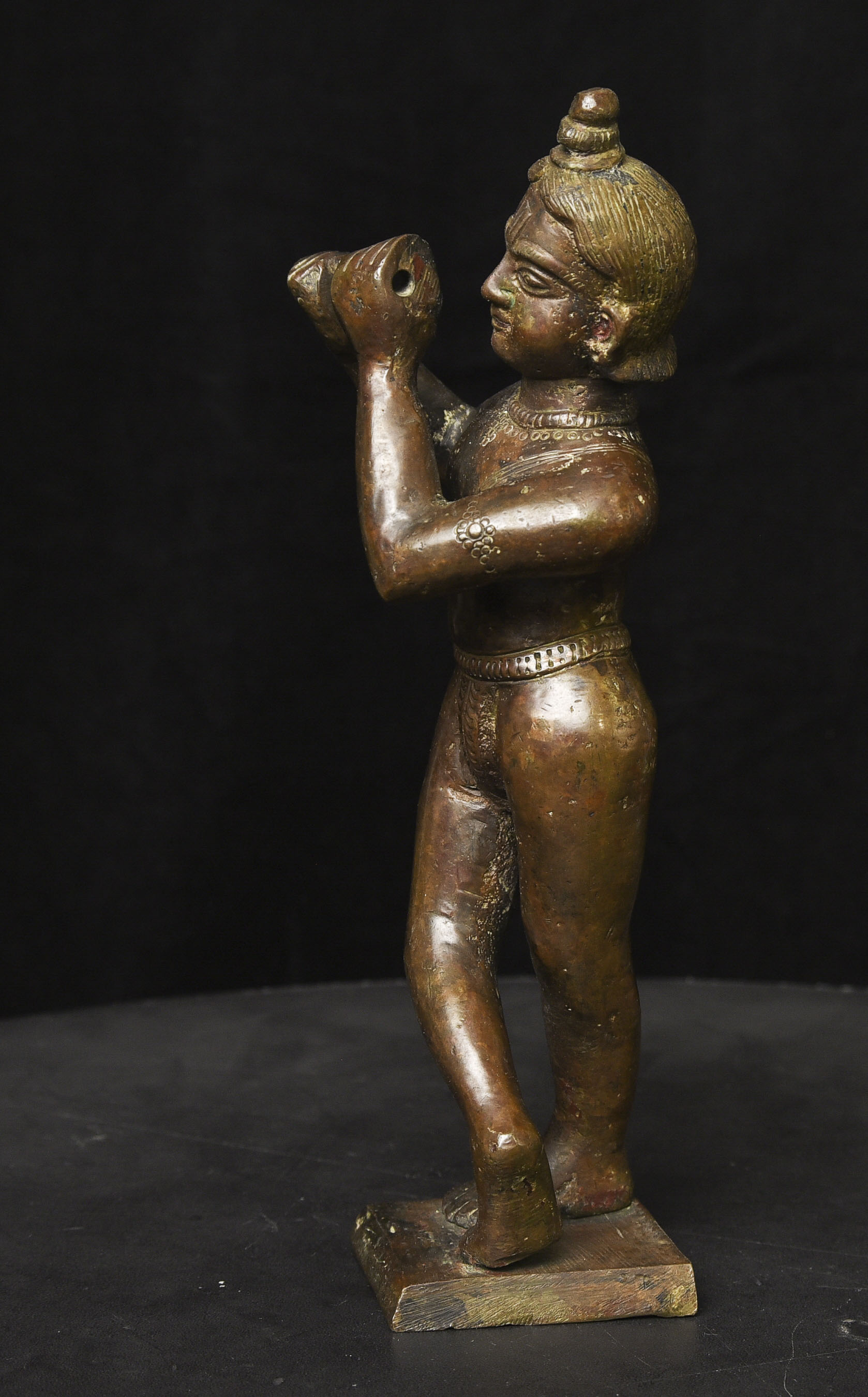 Solid-cast antique bronze Krishna. - ( 8.875"H x 4" W ) - 4.36lbs / 1.975kg.