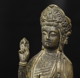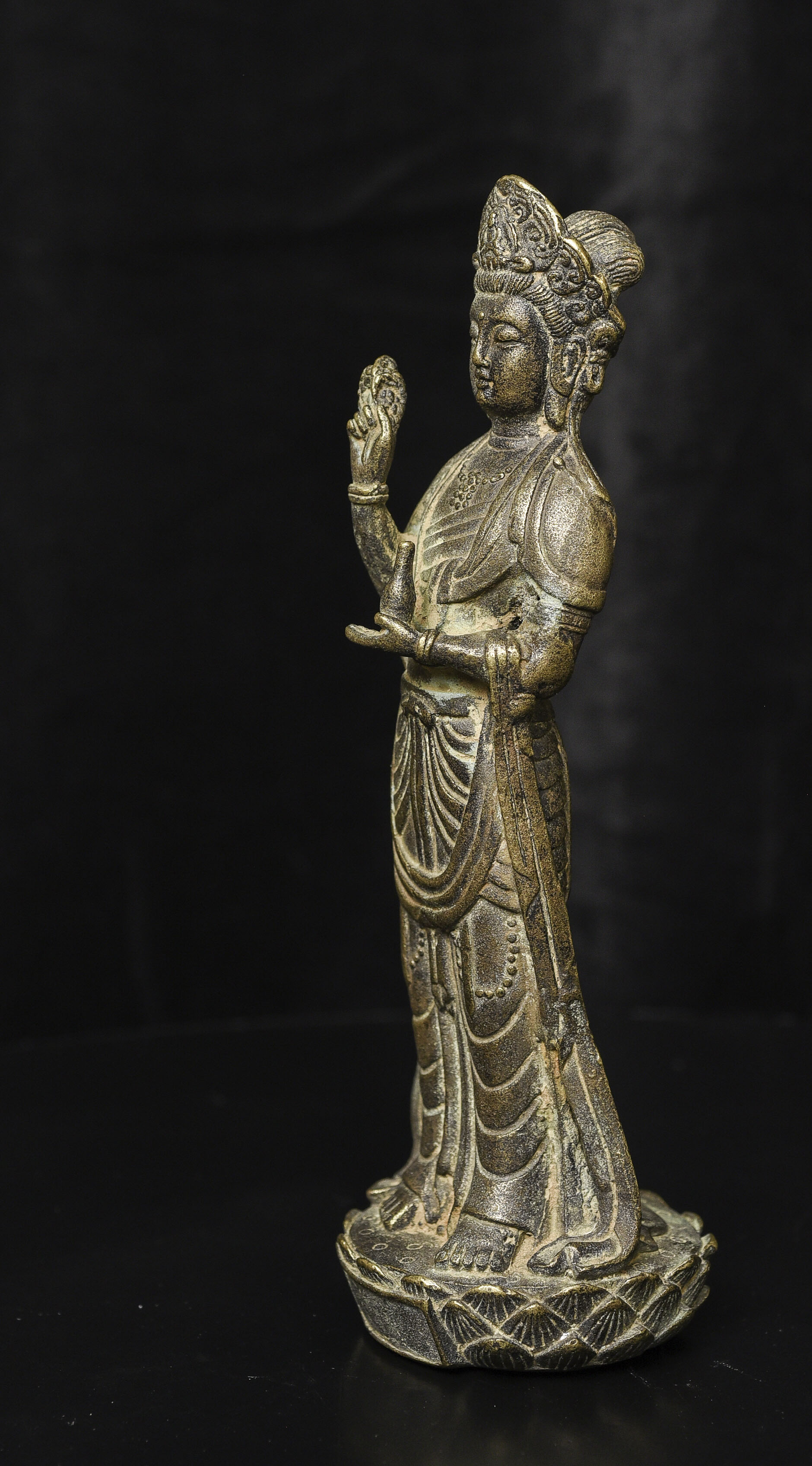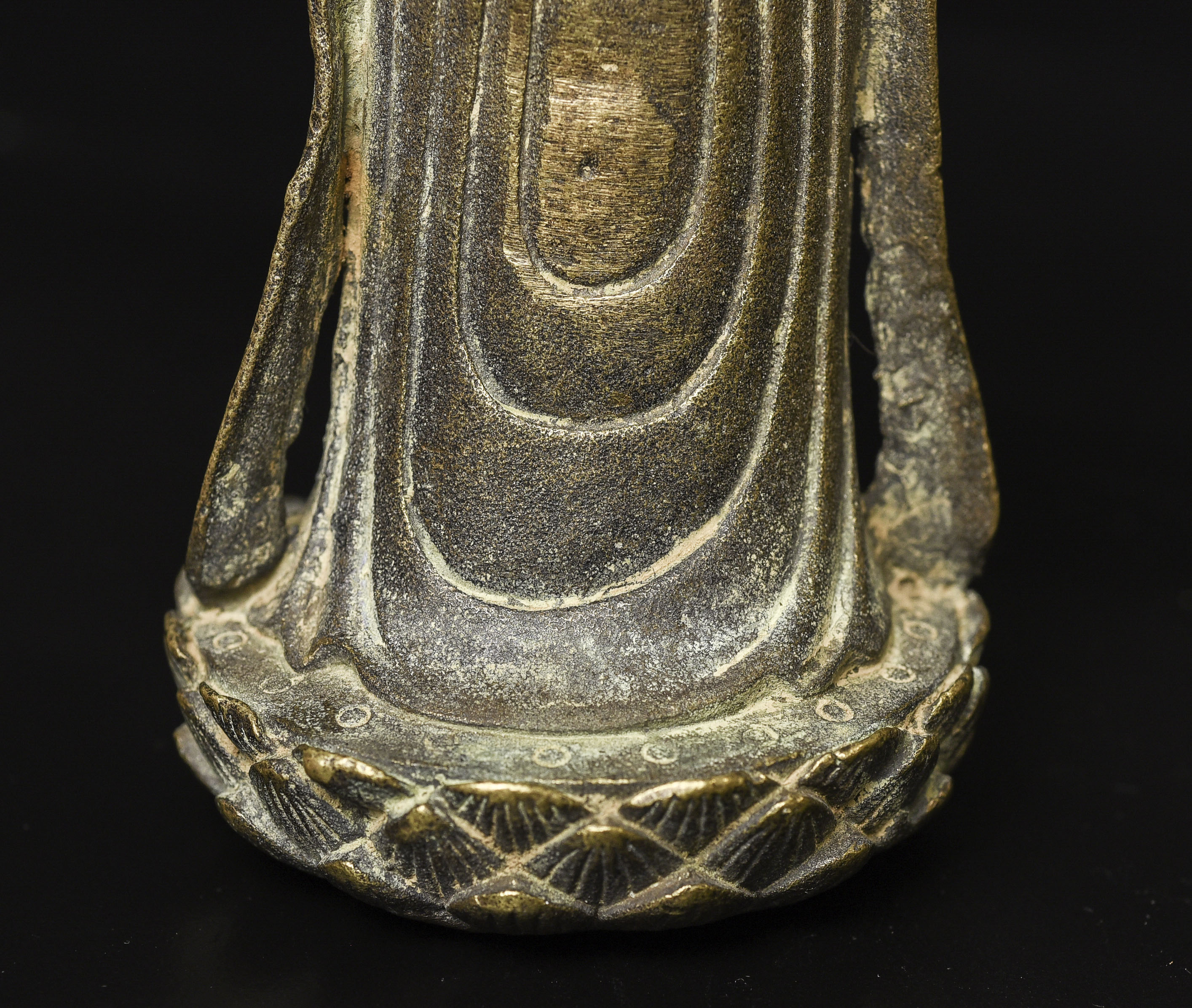 18th/19thC Superb Chinese Buddha of Compassion. Best of this type I have ever seen. May be out of a mold, but does not matter, as the detail and finishing work are superb. Looks to be consecrated. Exceptional! ( 8"H x 2.75"W ) - 575g