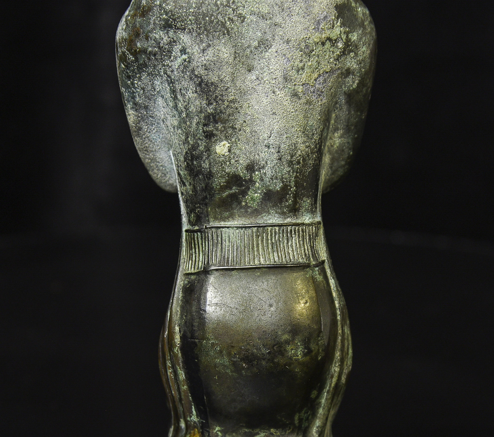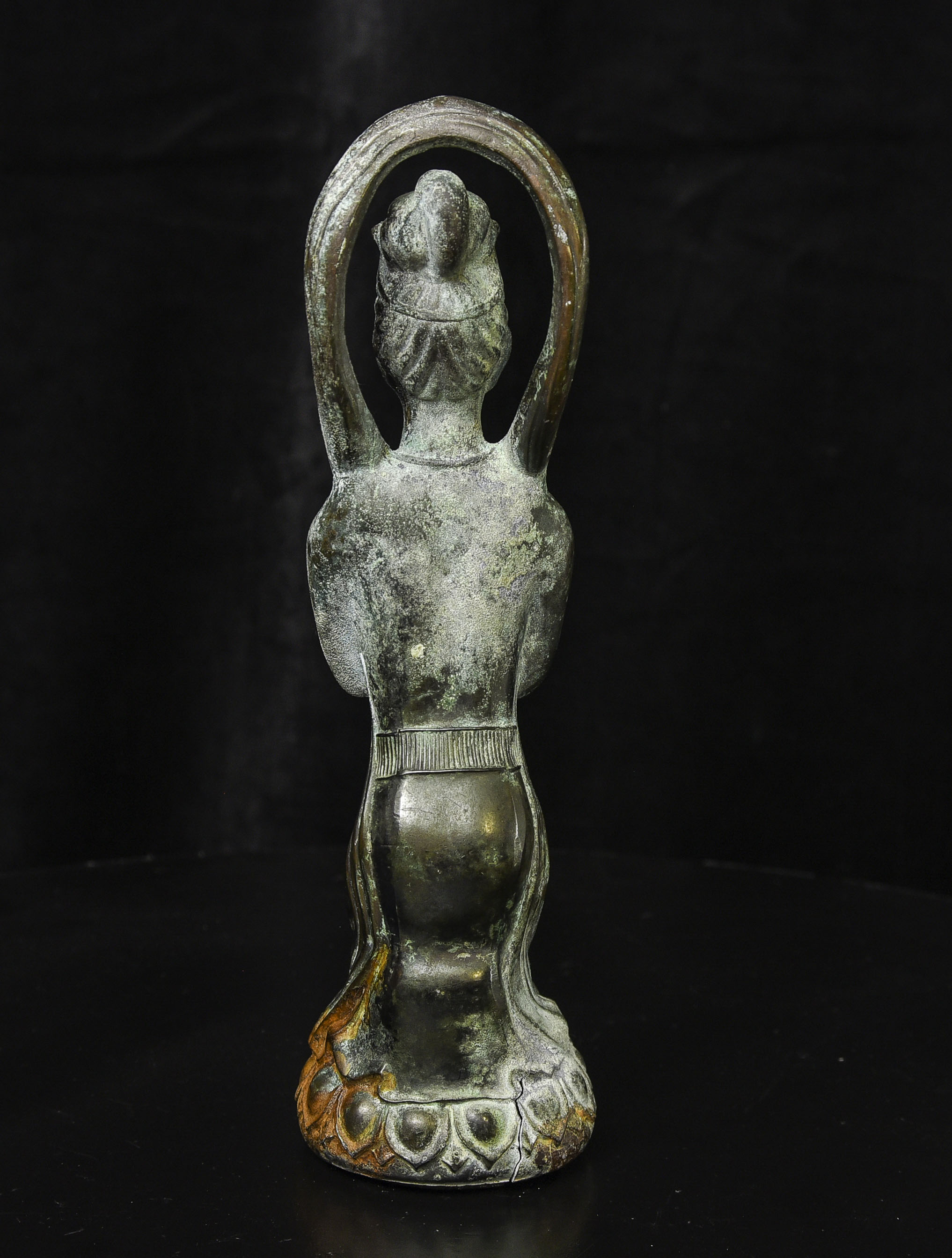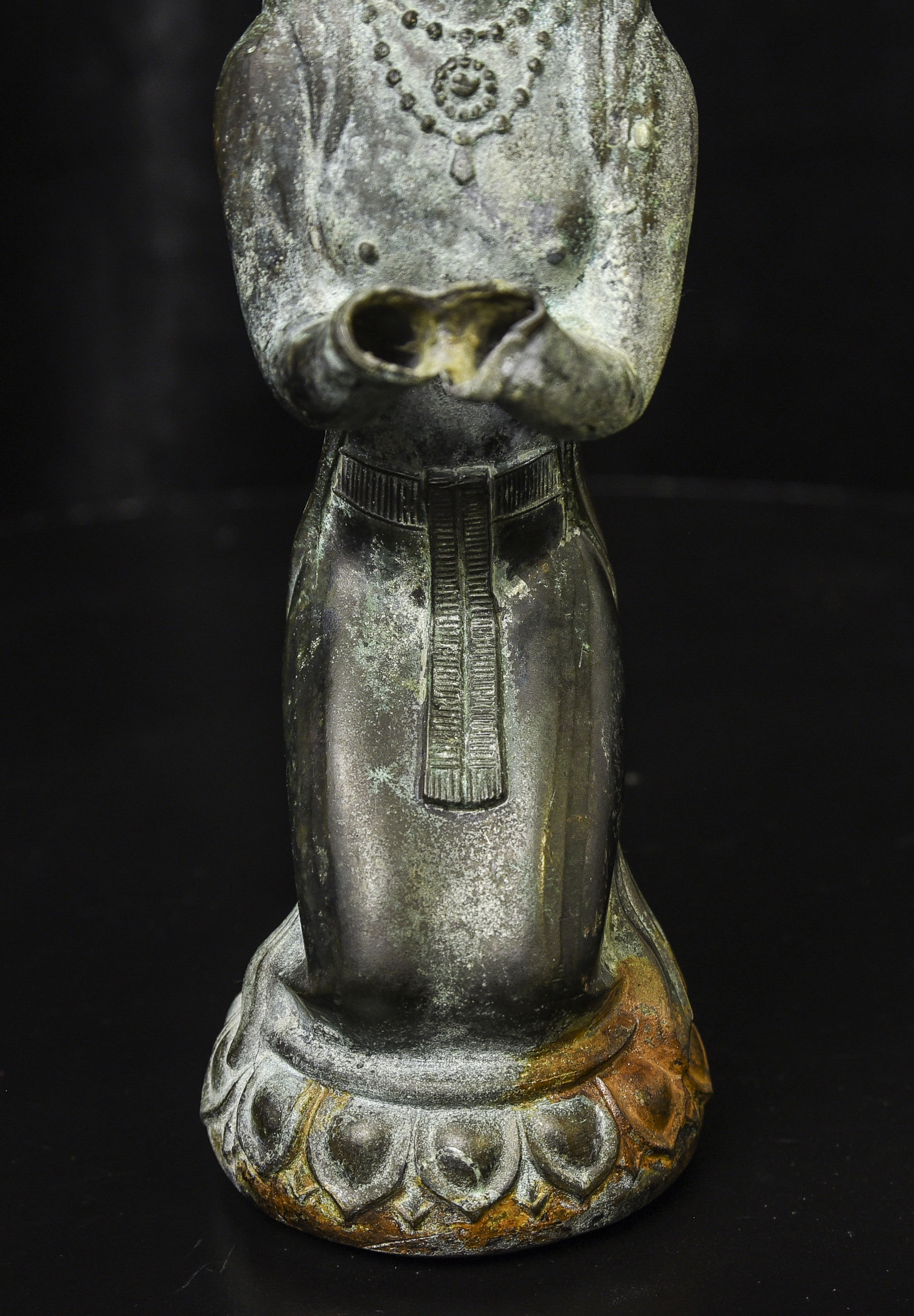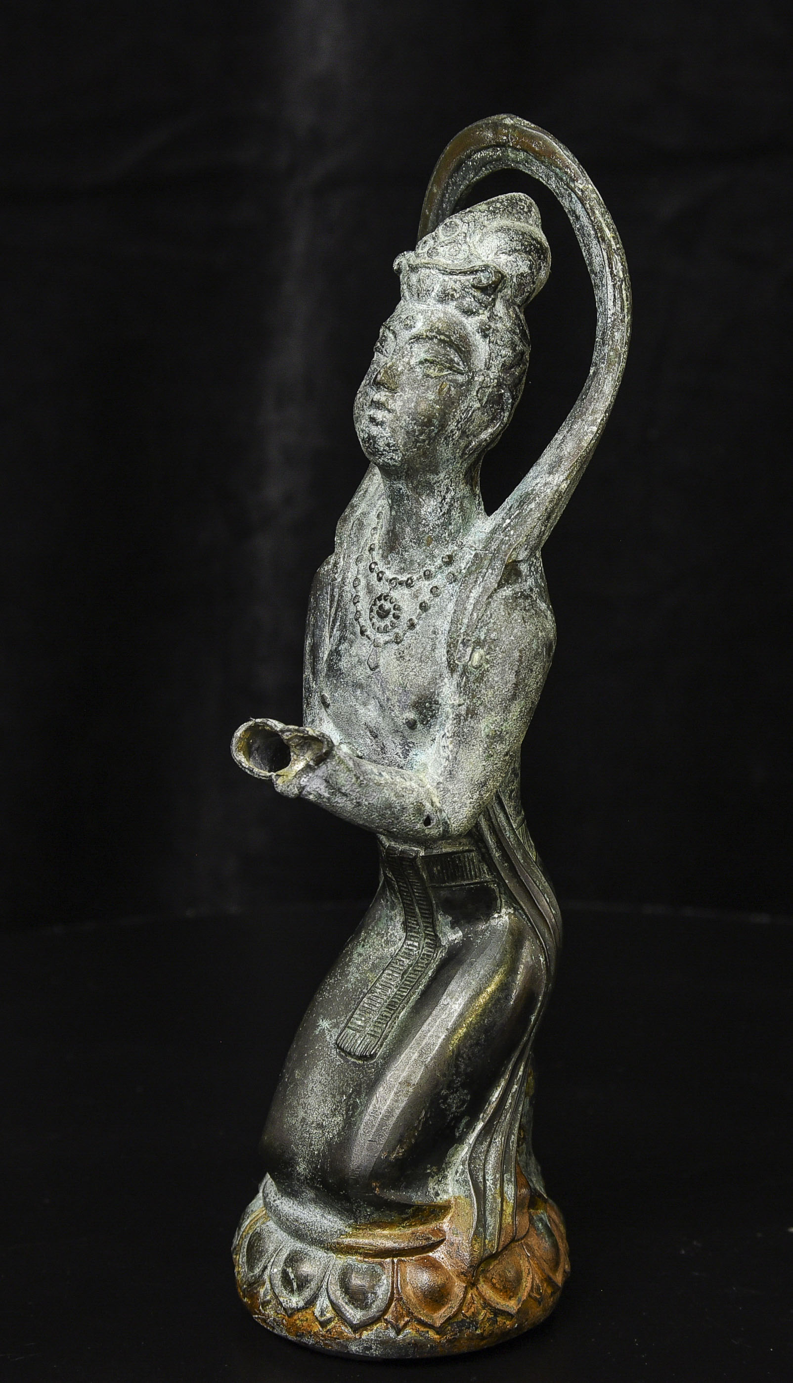 Mystery piece- cast in a lead alloy. Remains of lacquer. Probably Chinese. 8.75"H x 2.5"W